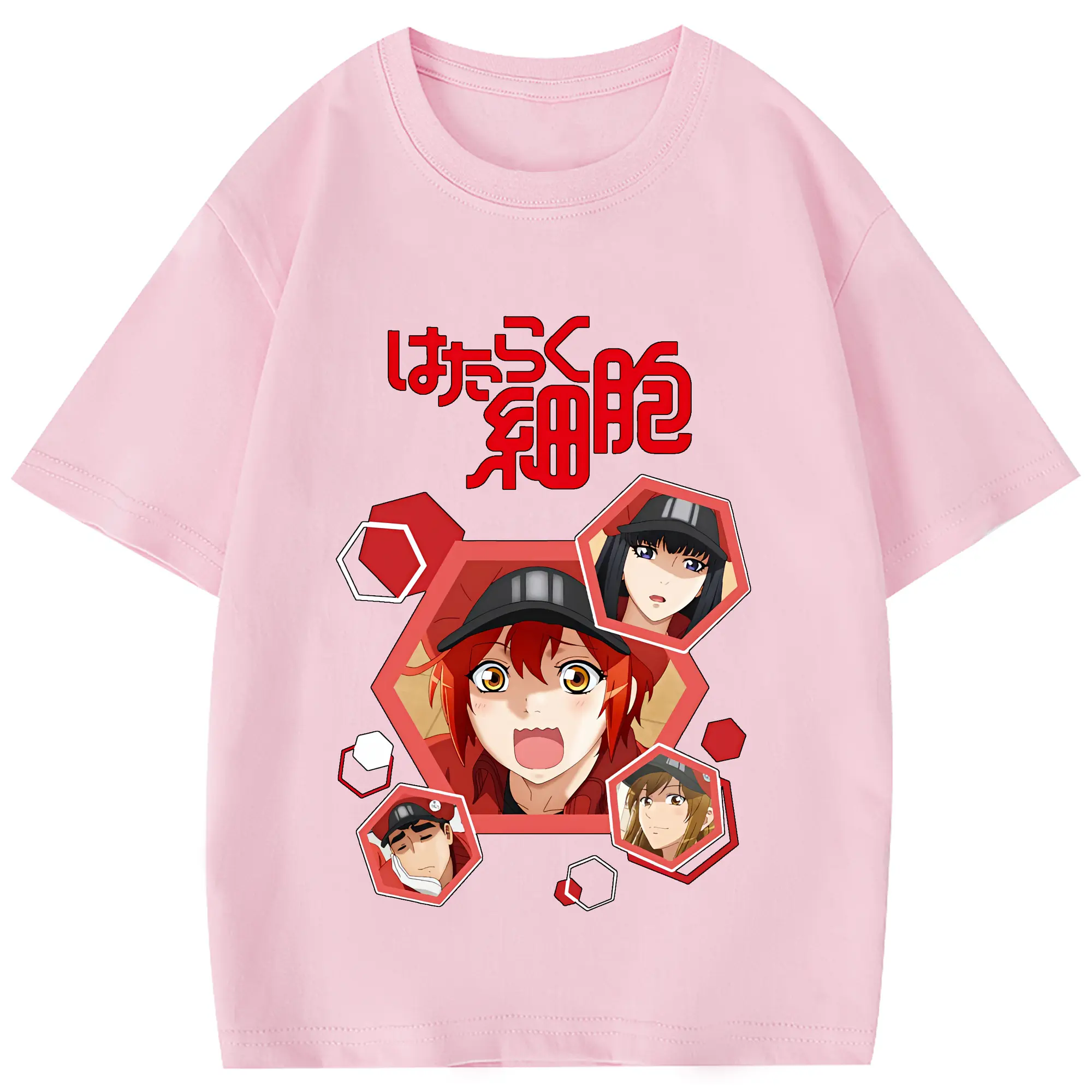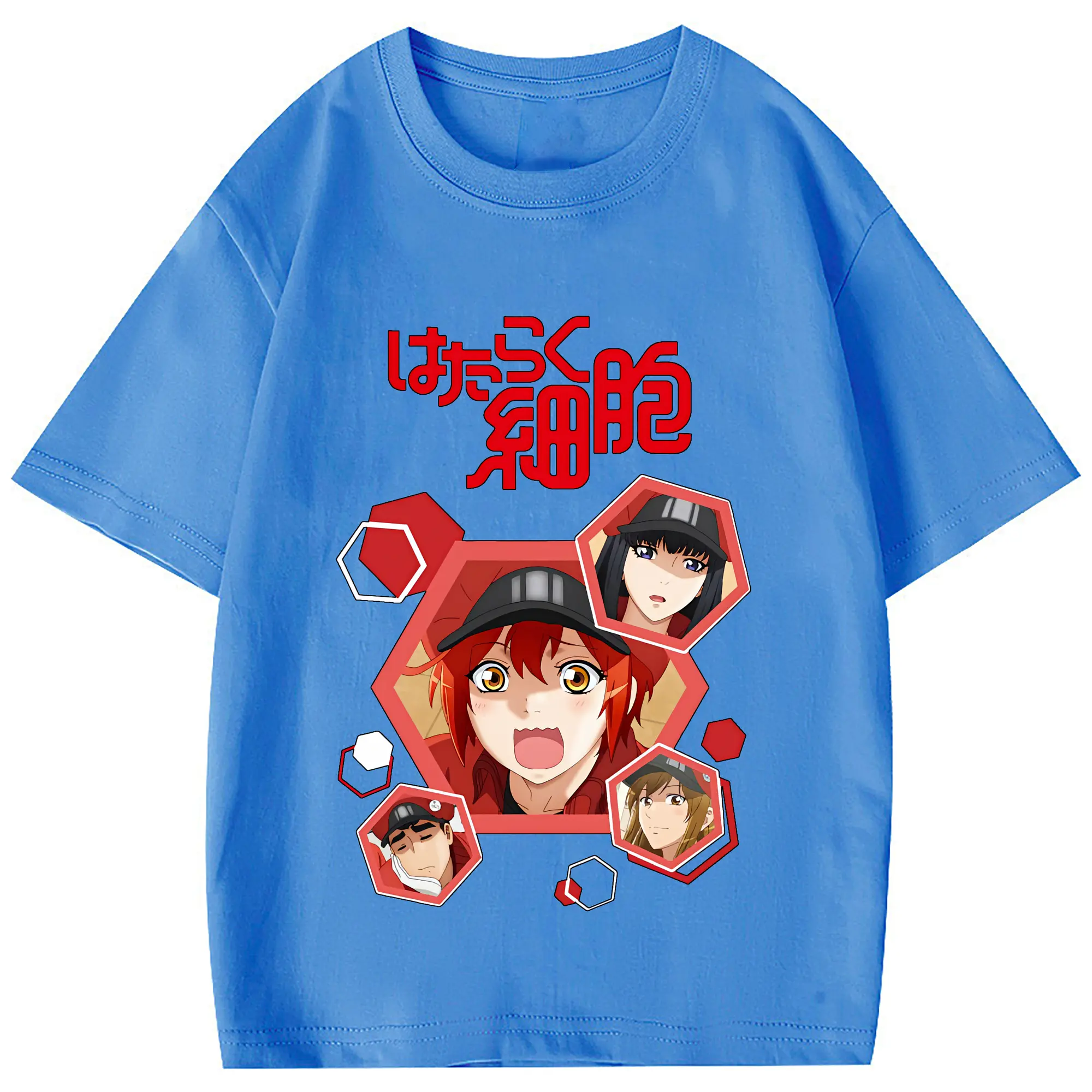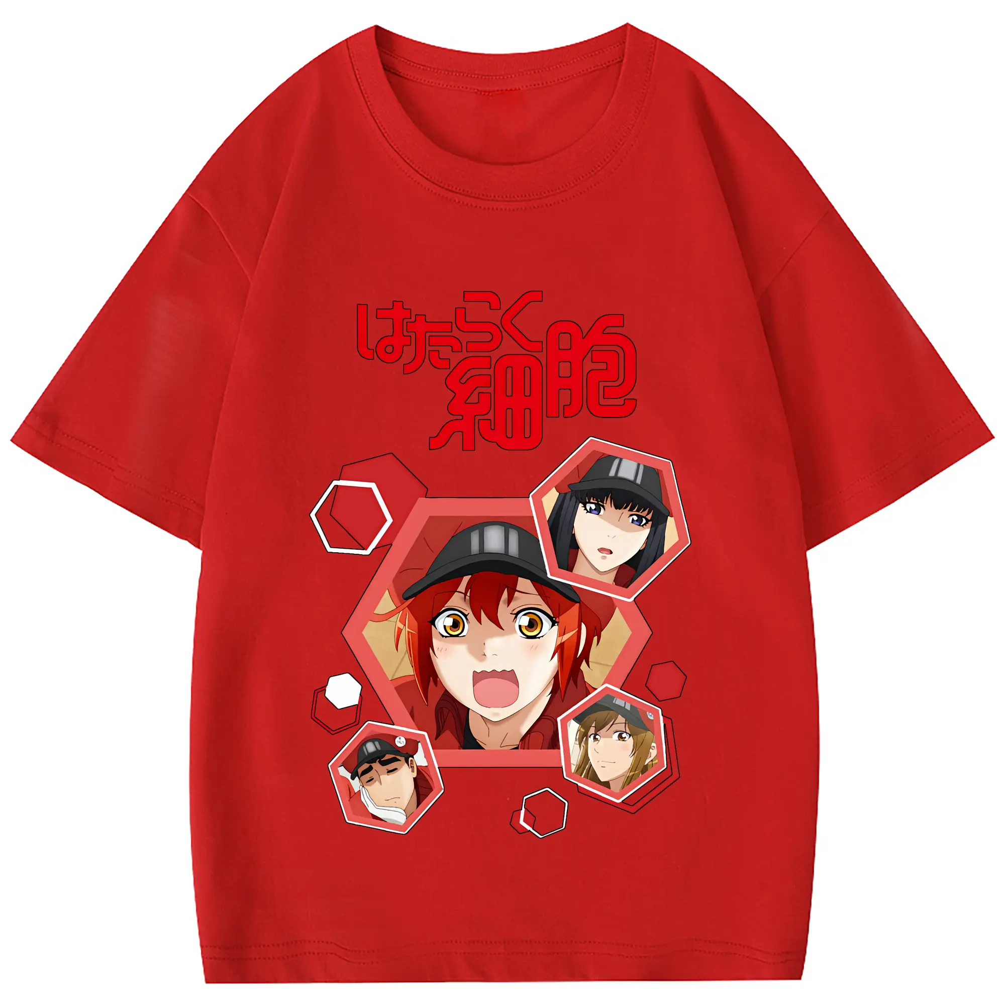 はたらく細胞 グッズ,赤血球 - 綿100% 半袖Tシャツ ・ フロントプリント ・ 快適 通気性 ・ 日常使い 散歩 スポーツ用