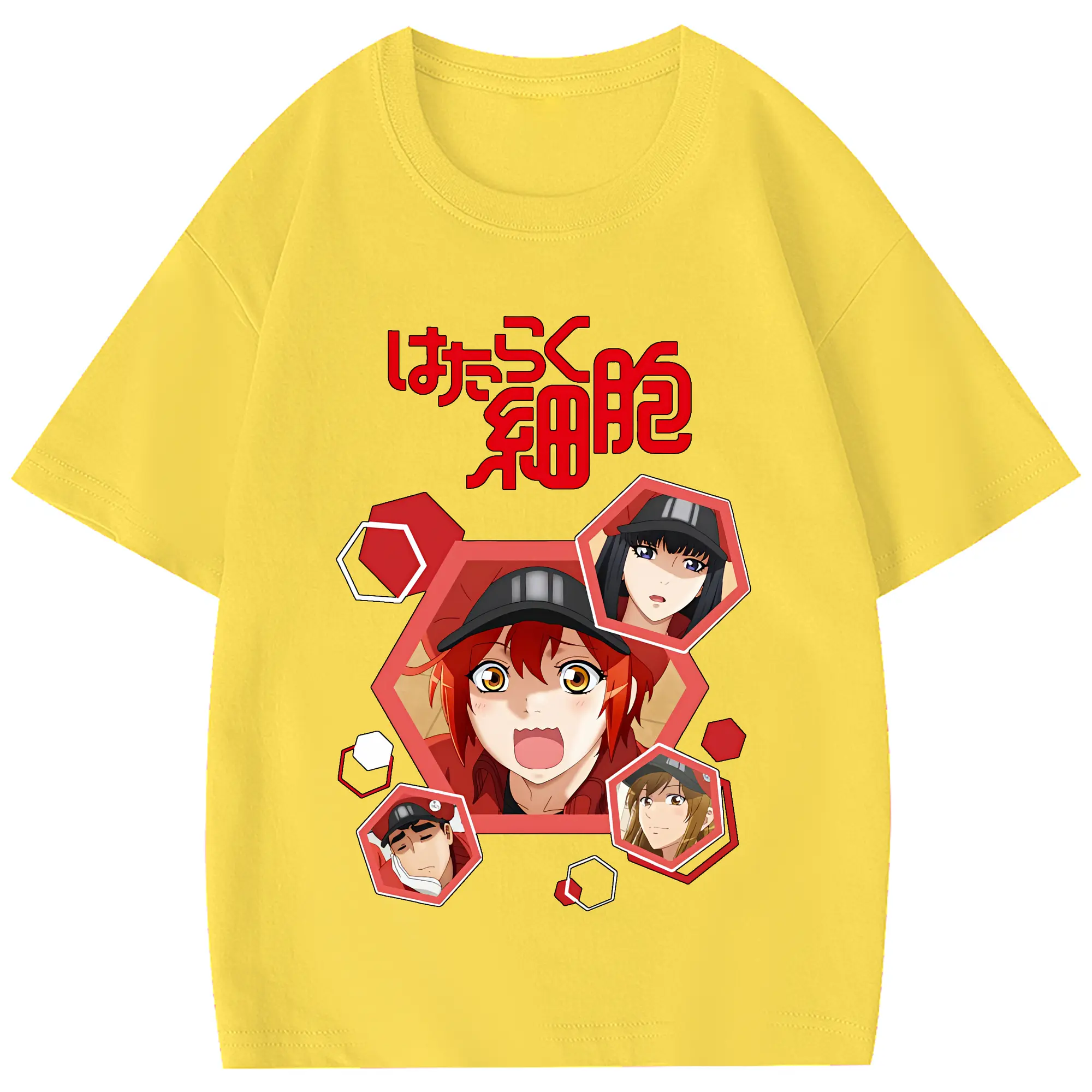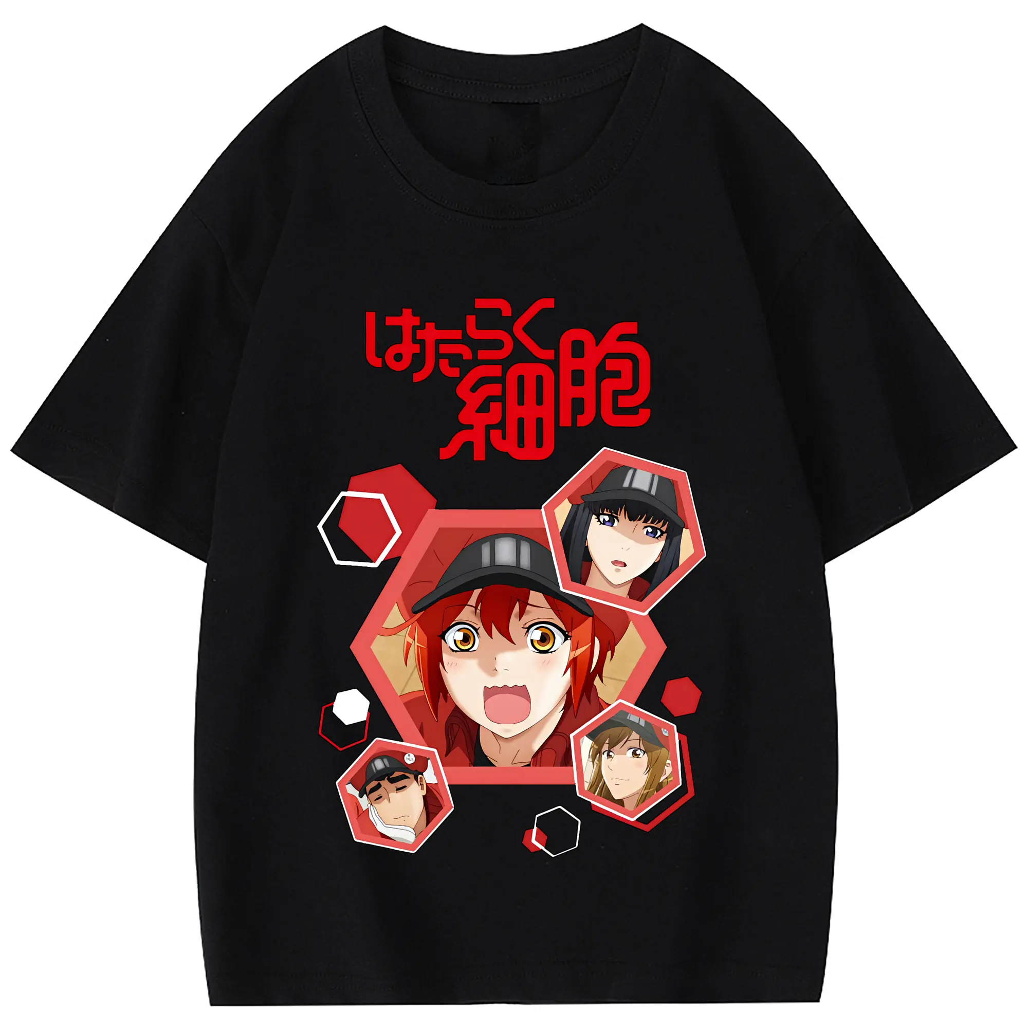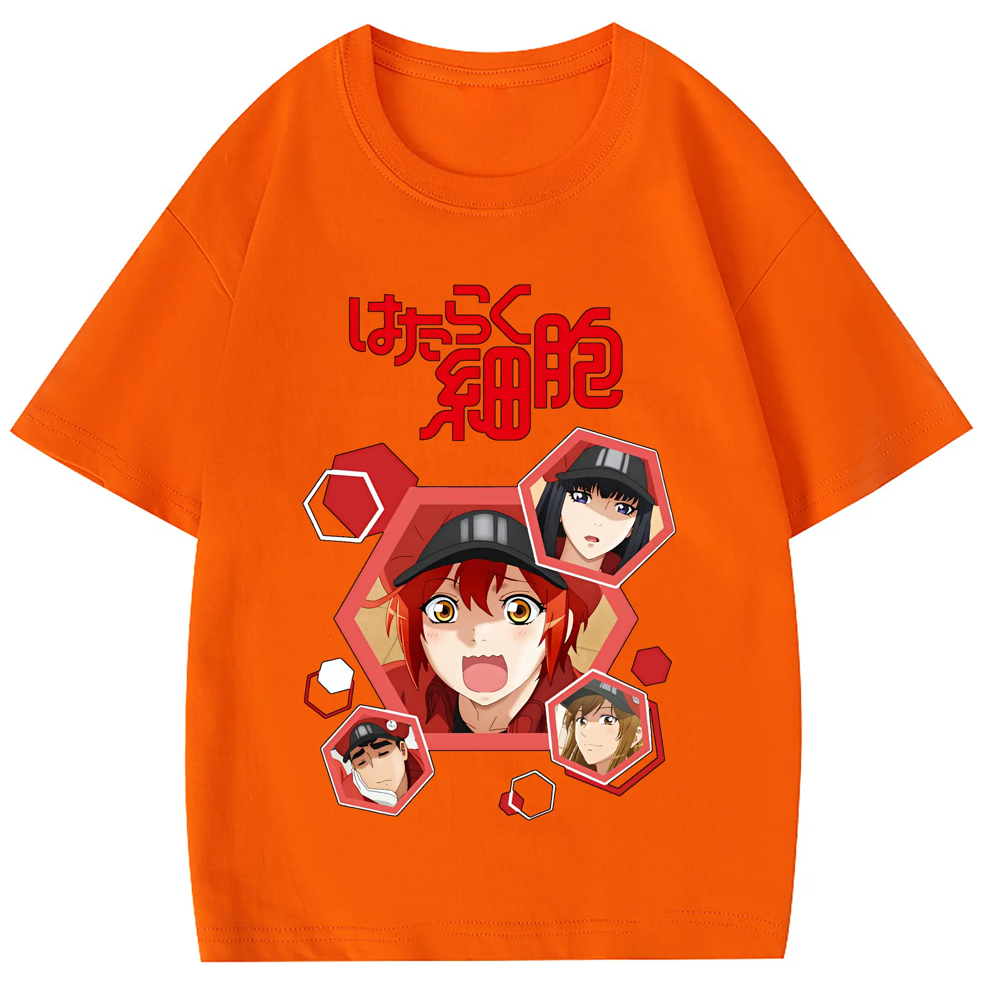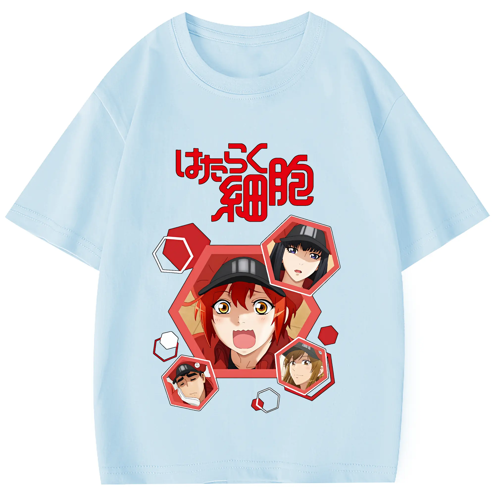 はたらく細胞 グッズ,赤血球 - 綿100% 半袖Tシャツ ・ フロントプリント ・ 快適 通気性 ・ 日常使い 散歩 スポーツ用