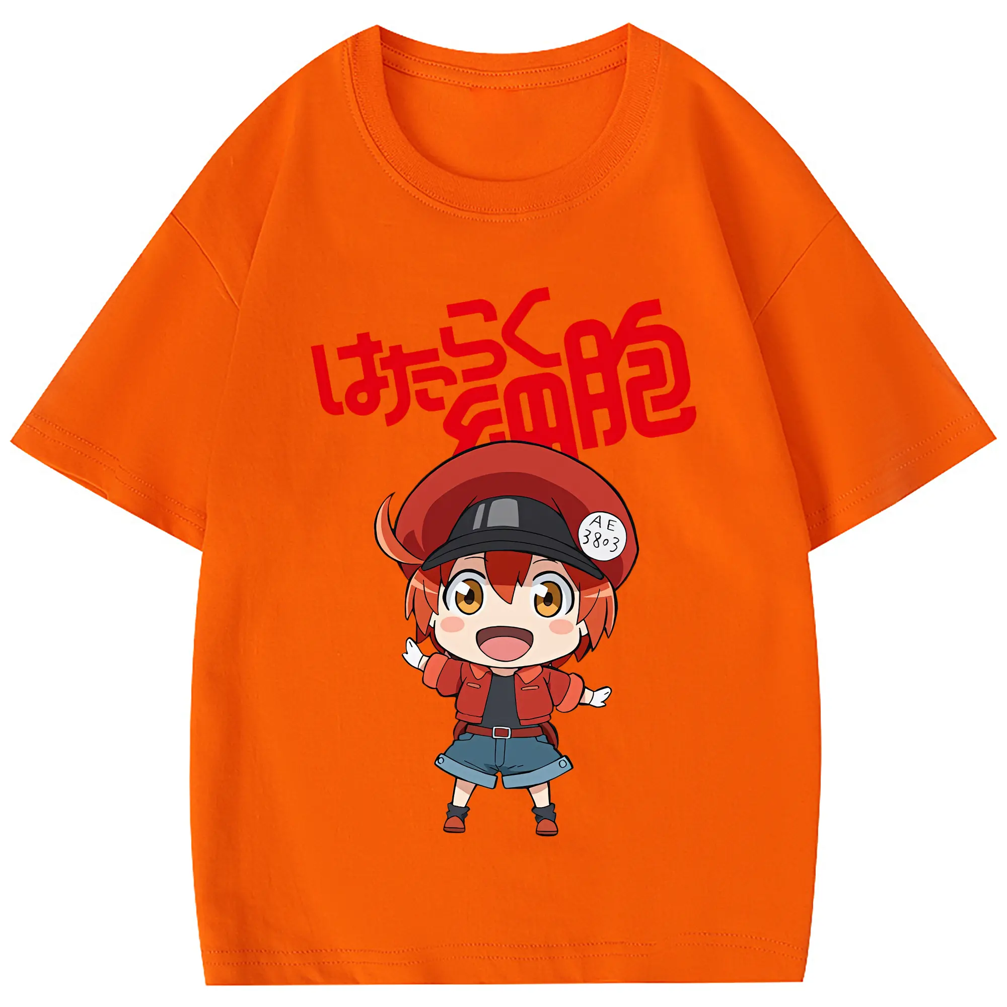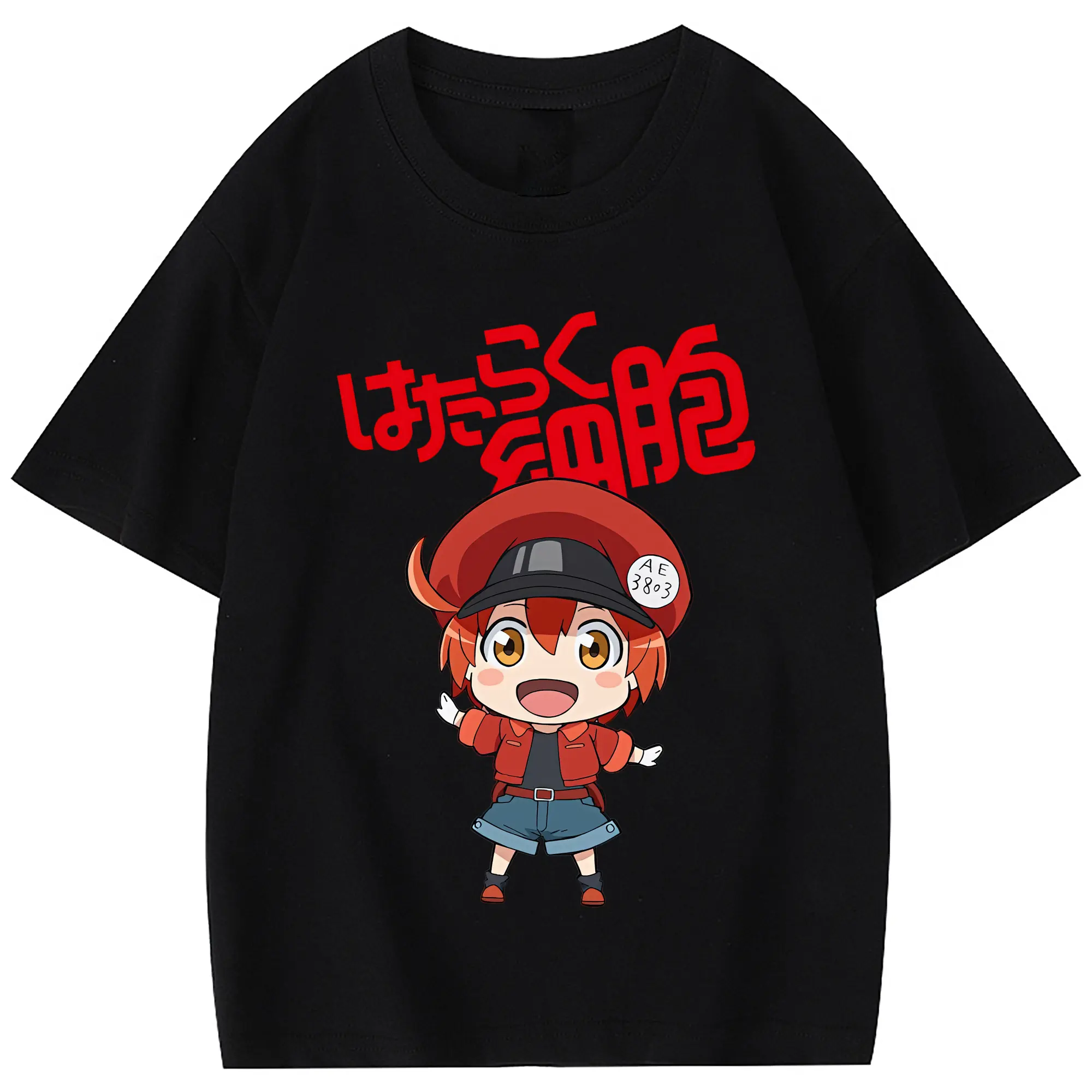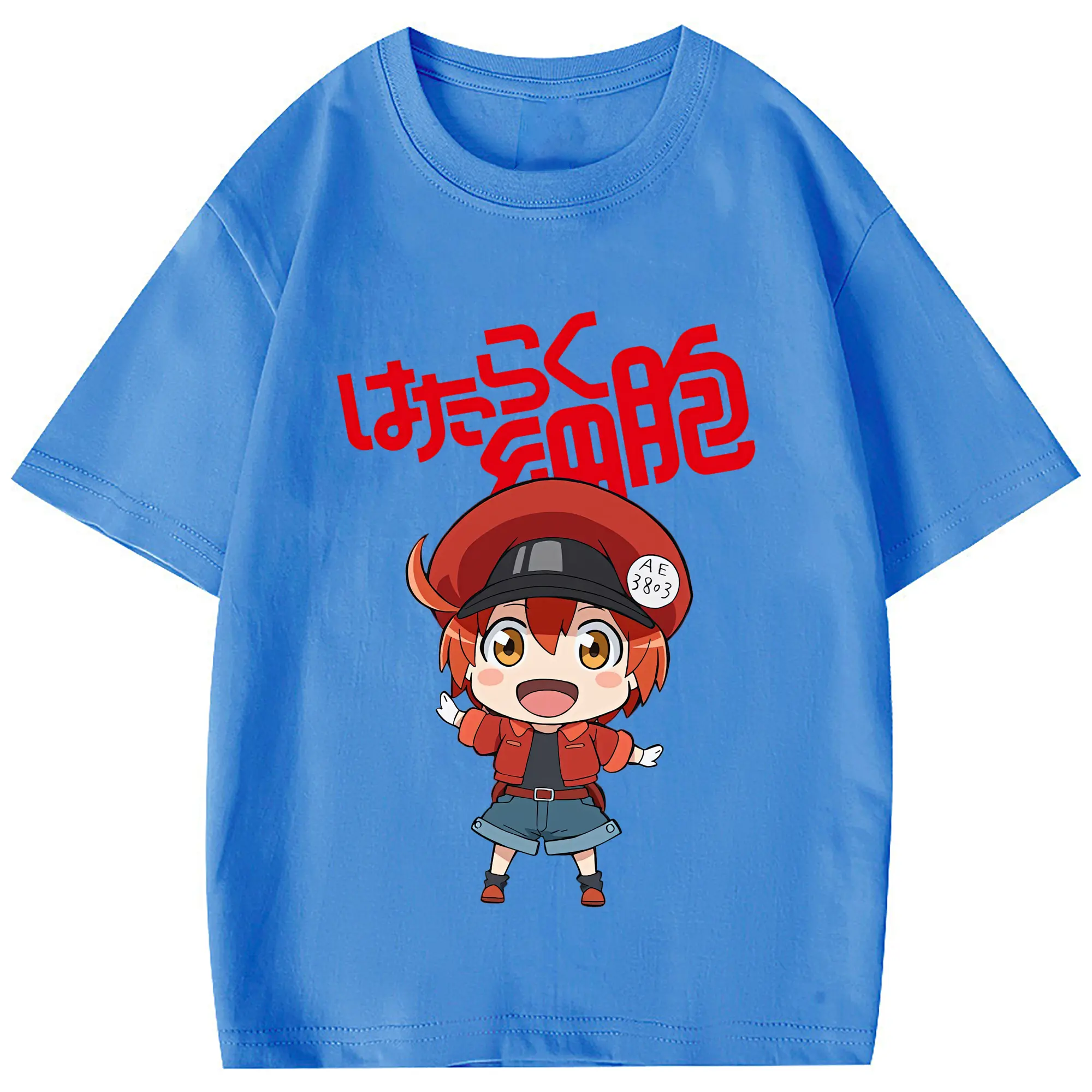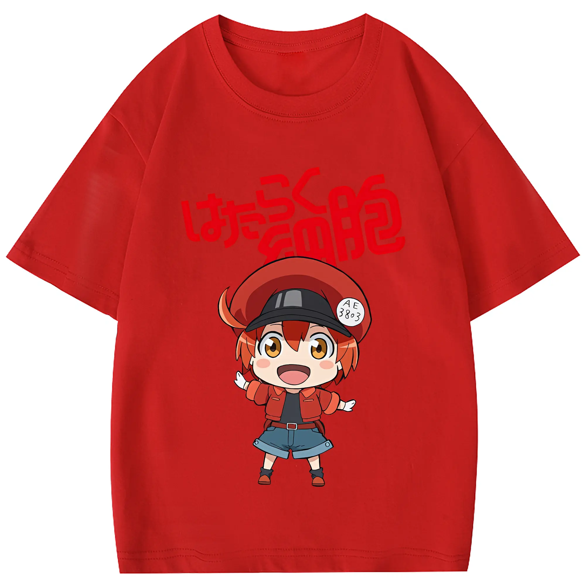 はたらく細胞 グッズ,赤血球 - 綿100% 半袖Tシャツ ・ フロントプリント ・ 快適 通気性 ・ 日常使い 散歩 スポーツ用