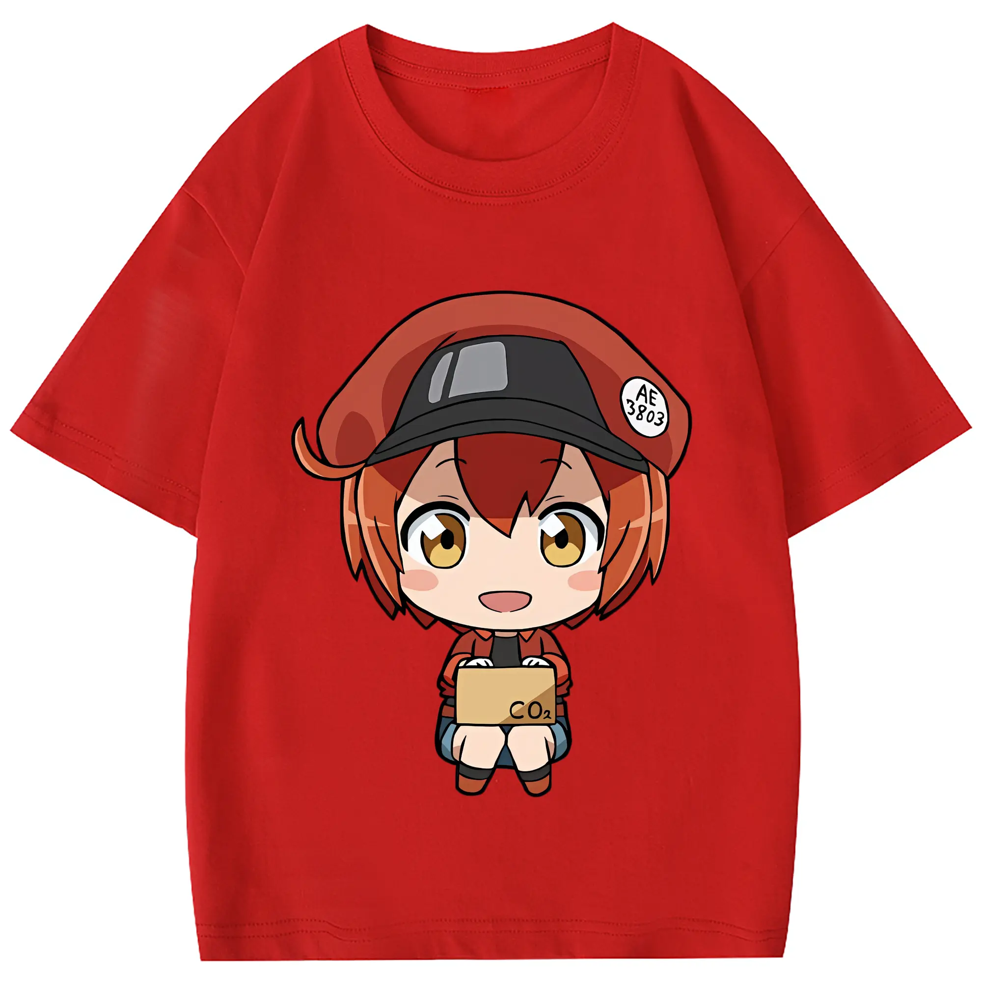 はたらく細胞 グッズ,赤血球 - 綿100% 半袖Tシャツ ・ フロントプリント ・ 快適 通気性 ・ 日常使い 散歩 スポーツ用