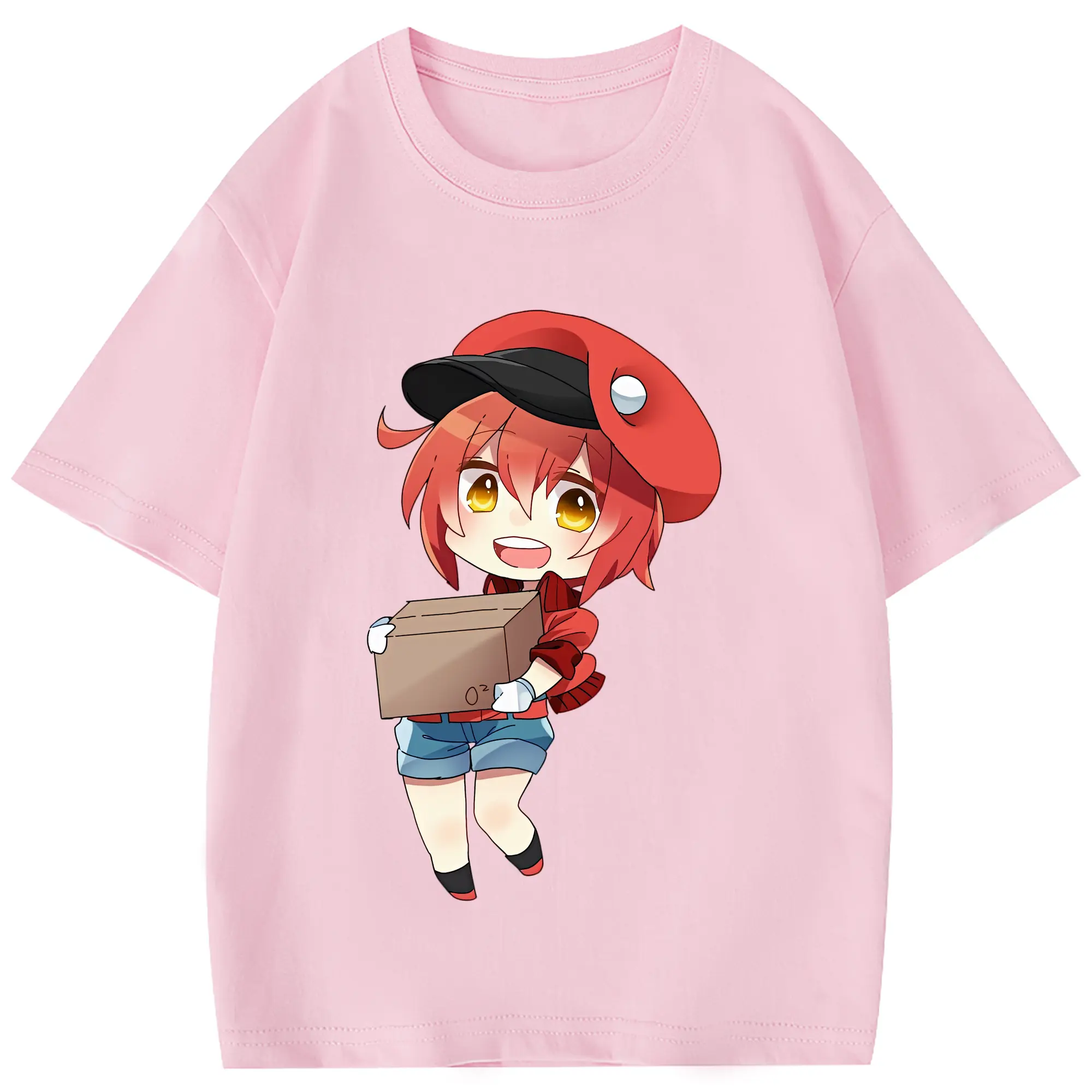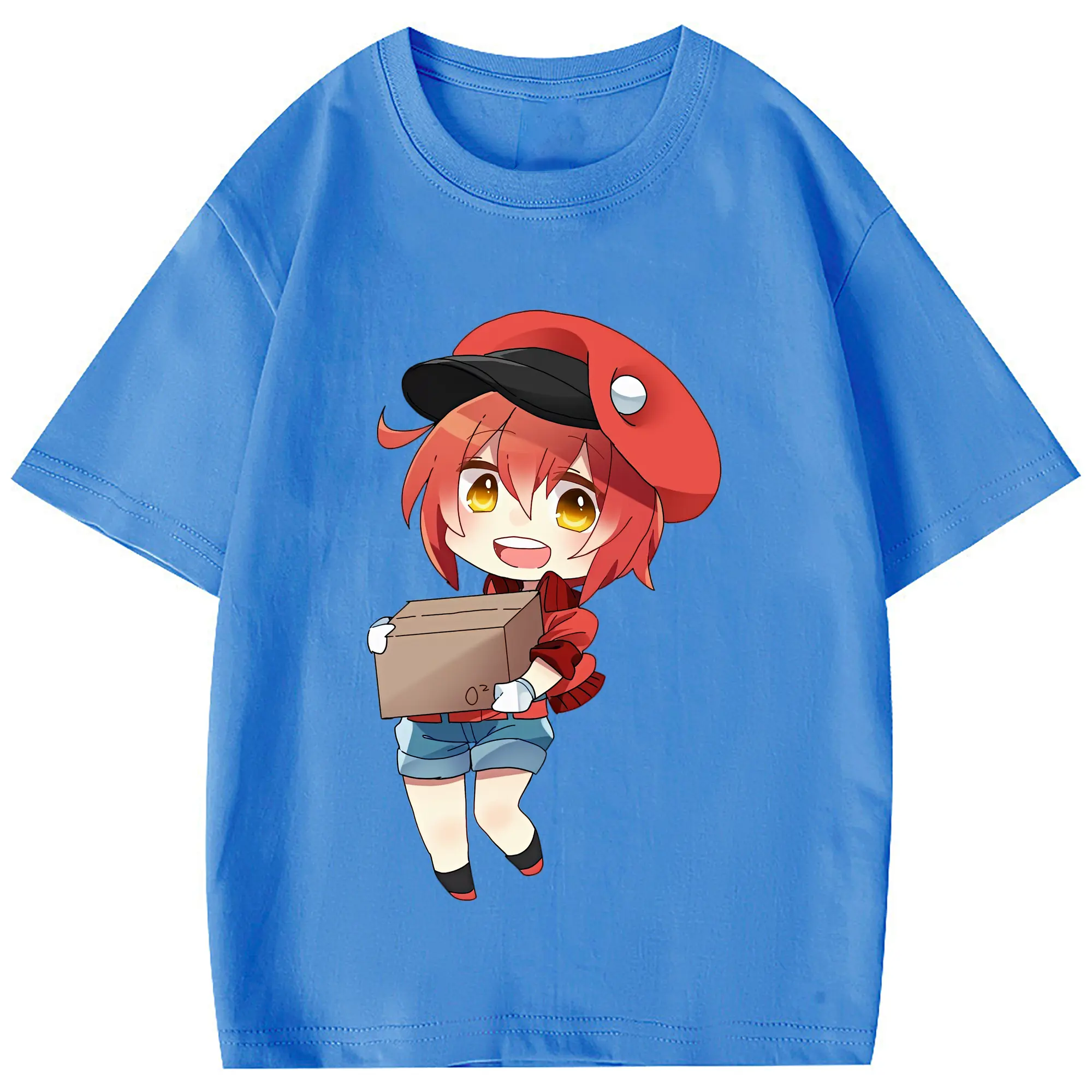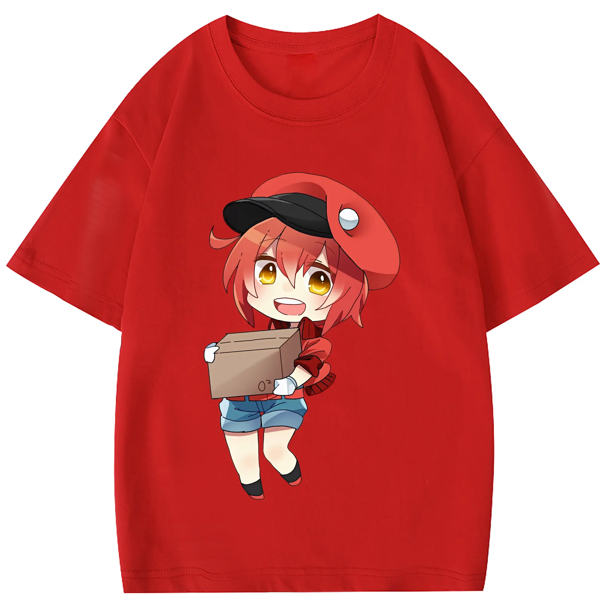 はたらく細胞 グッズ,赤血球 - 綿100% 半袖Tシャツ ・ フロントプリント ・ 快適 通気性 ・ 日常使い 散歩 スポーツ用