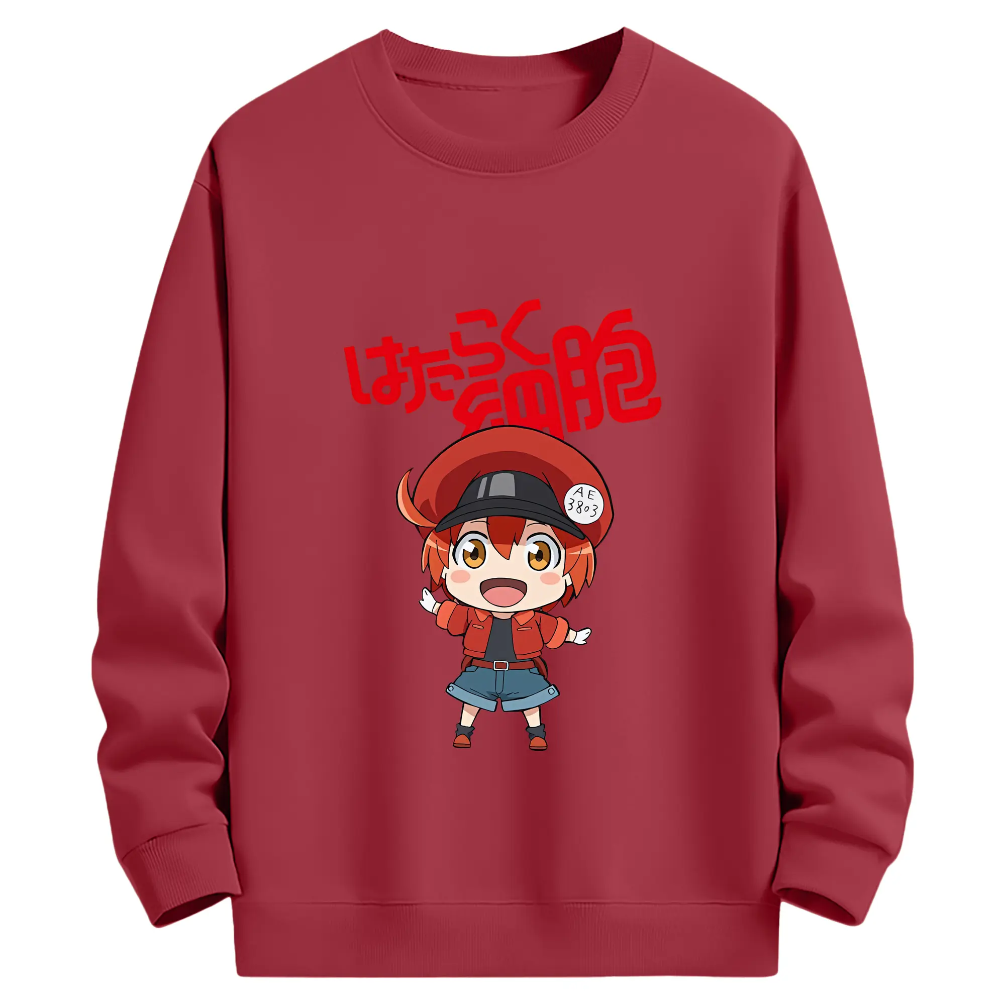 はたらく細胞 グッズ,赤血球 - 薄手 クルーネック スウェット 裏毛260g · ポリエステル 春秋向け カジュアル 男女兼用 · トレーナー デイリー スポーツ 散歩に最適