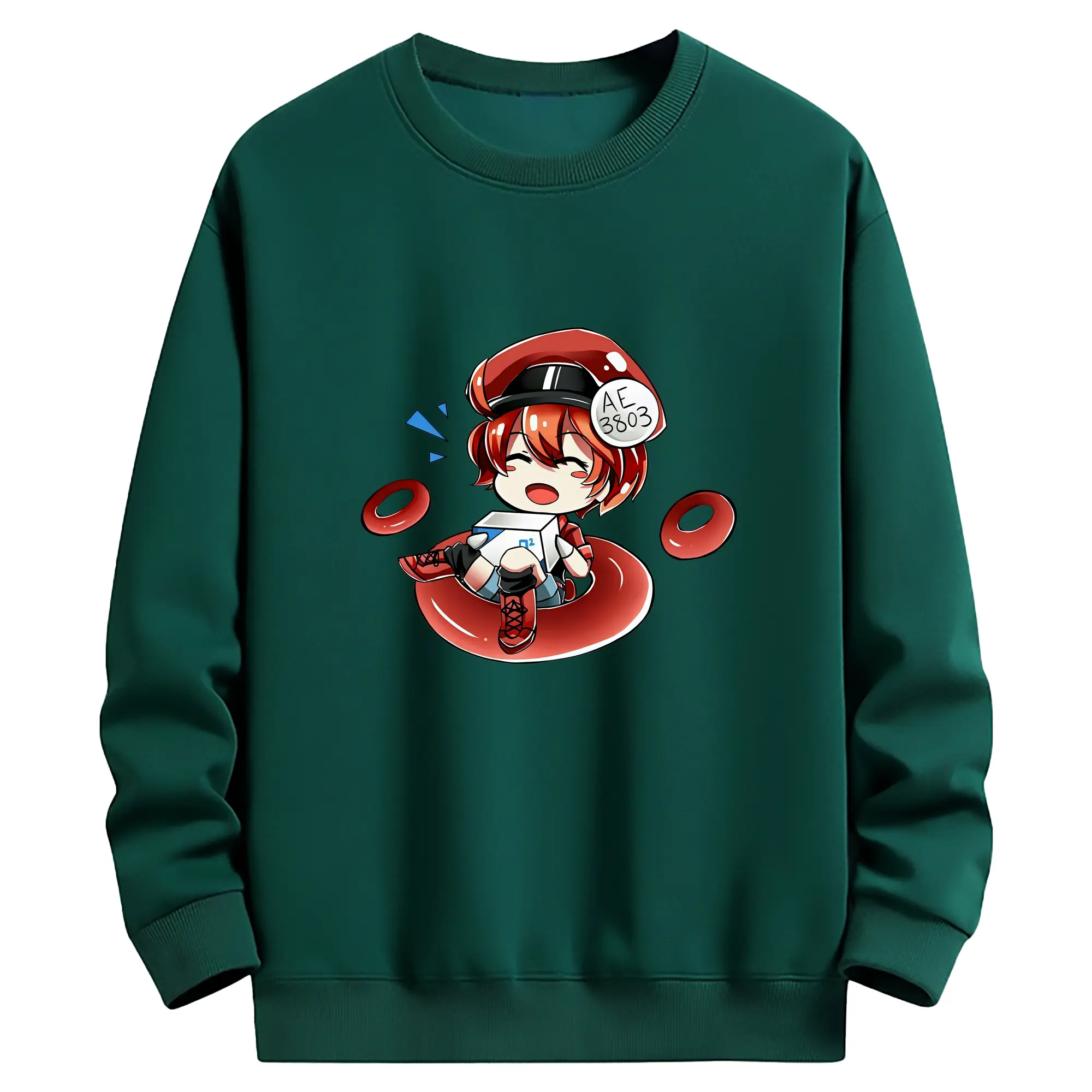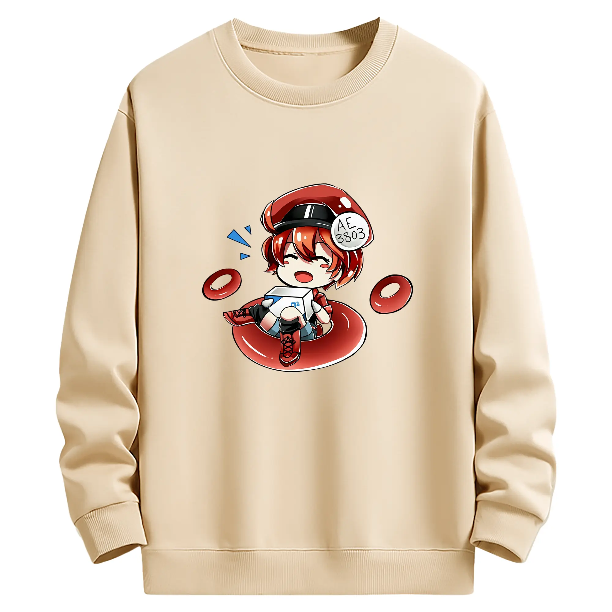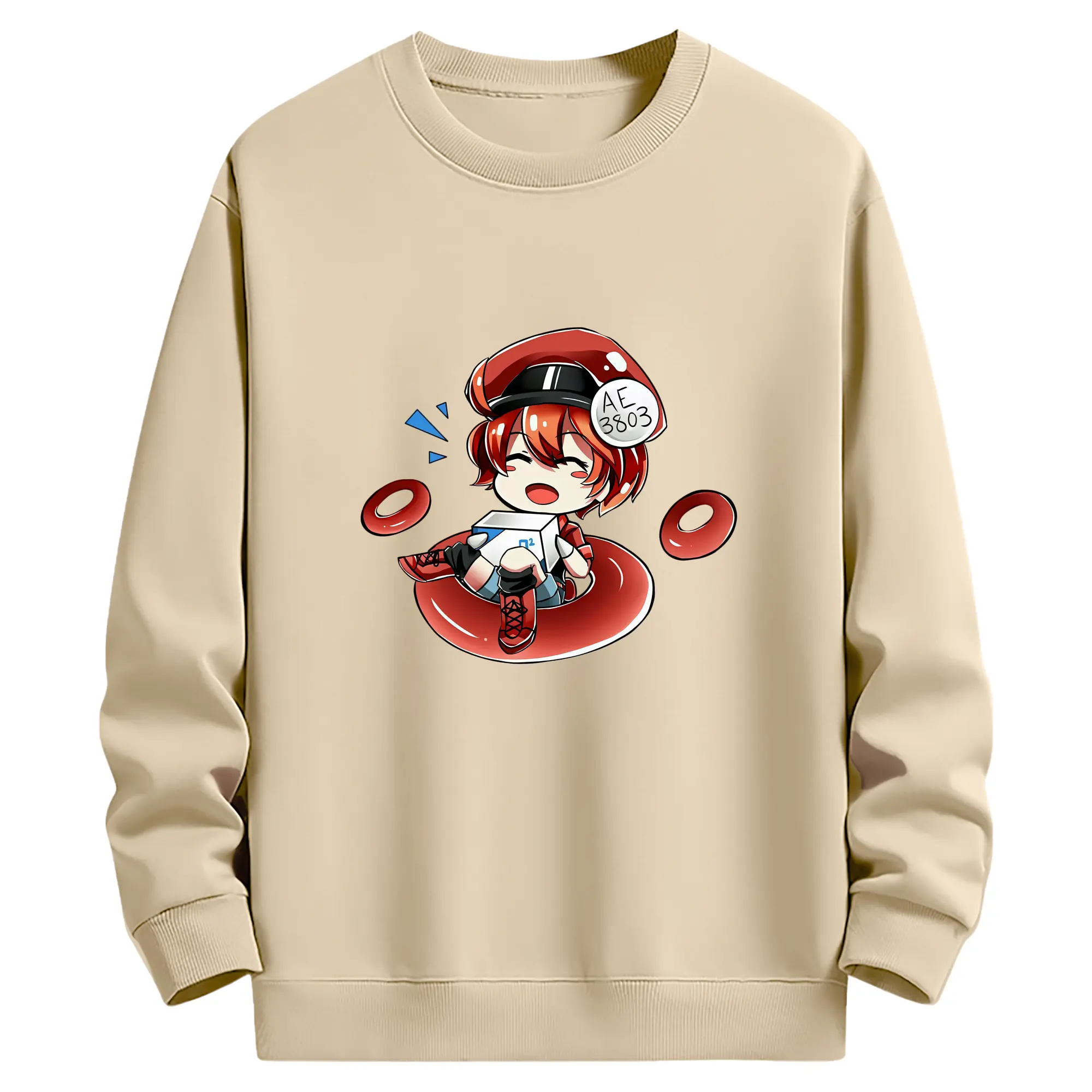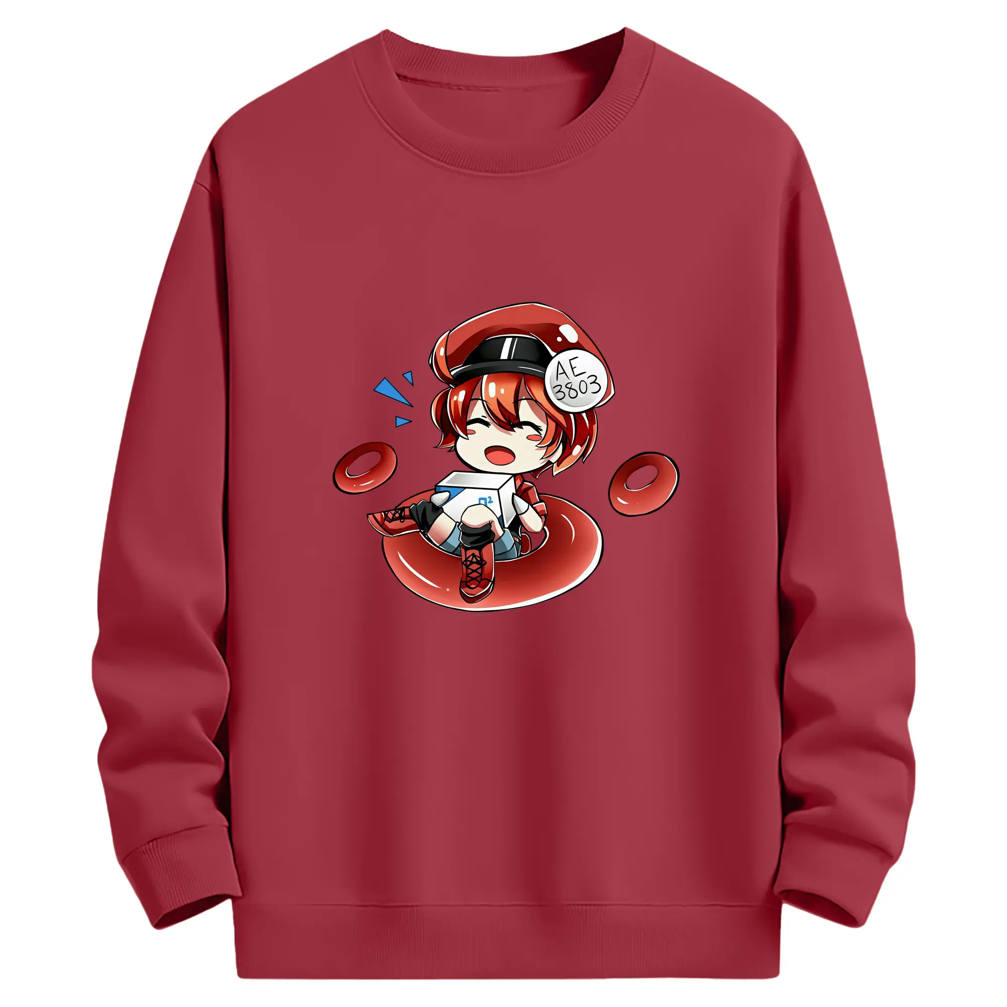 はたらく細胞 グッズ,赤血球 - 薄手 クルーネック スウェット 裏毛260g · ポリエステル 春秋向け カジュアル 男女兼用 · トレーナー デイリー スポーツ 散歩に最適