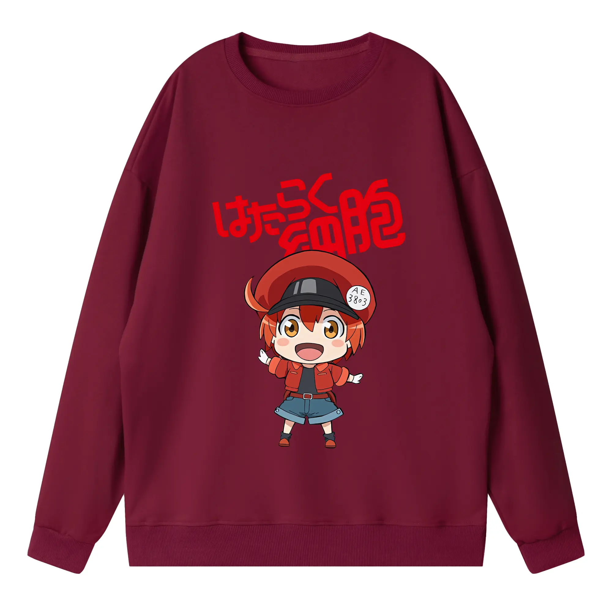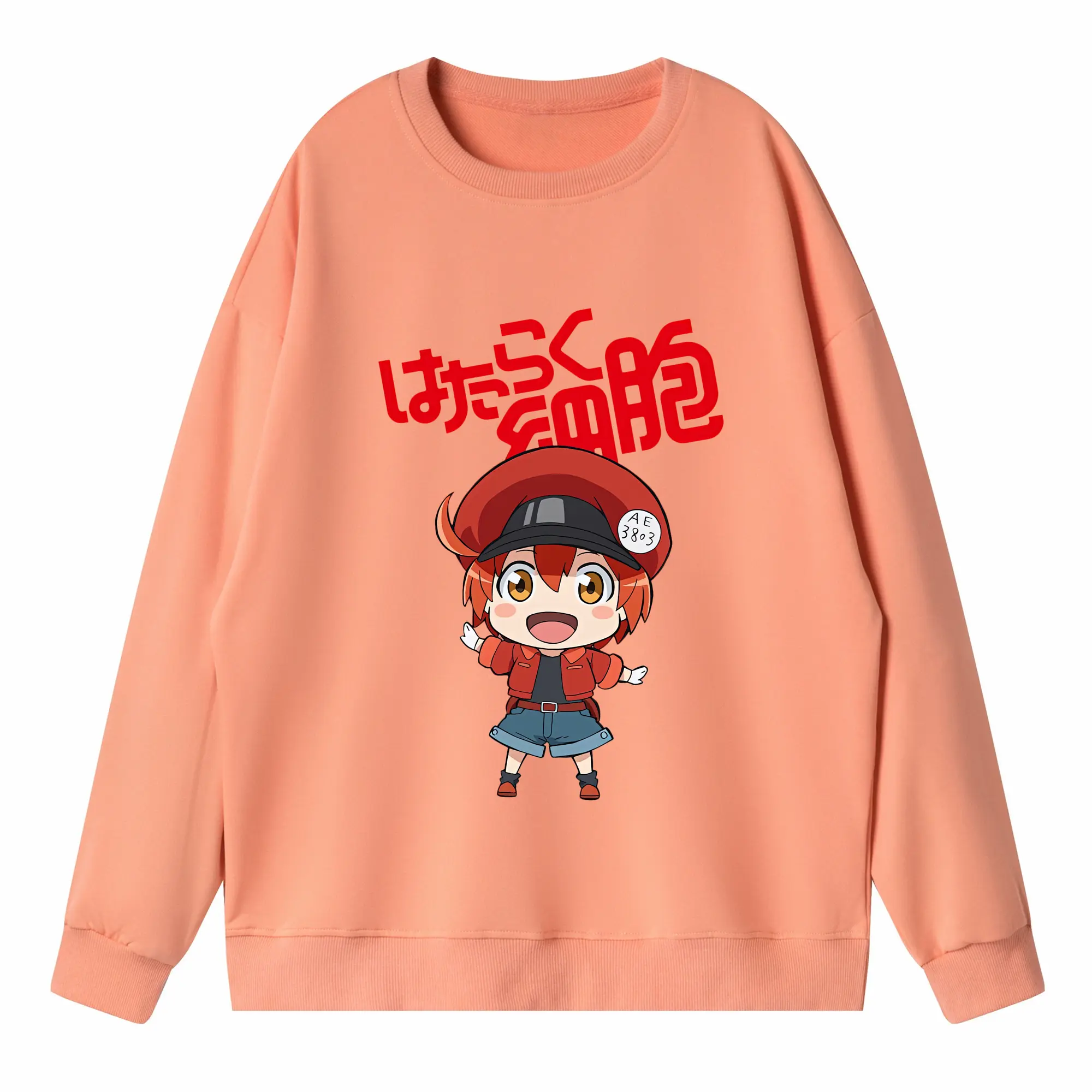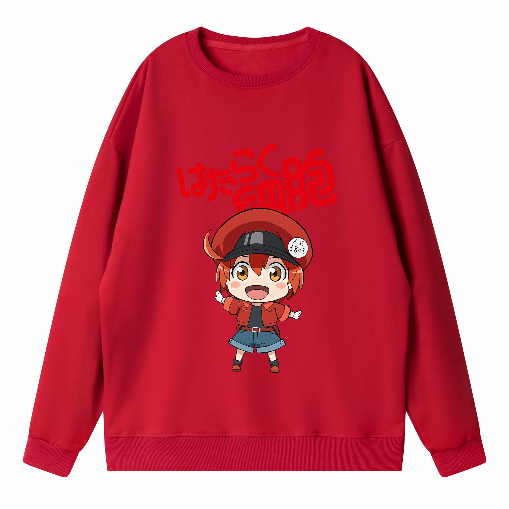はたらく細胞 グッズ,赤血球 - 高品質 クルーネック スウェット ・ コットン59% ポリエステル41% ・ ユニセックス 長袖 トレーナー ・ カジュアル デイリー スポーツ 散歩用