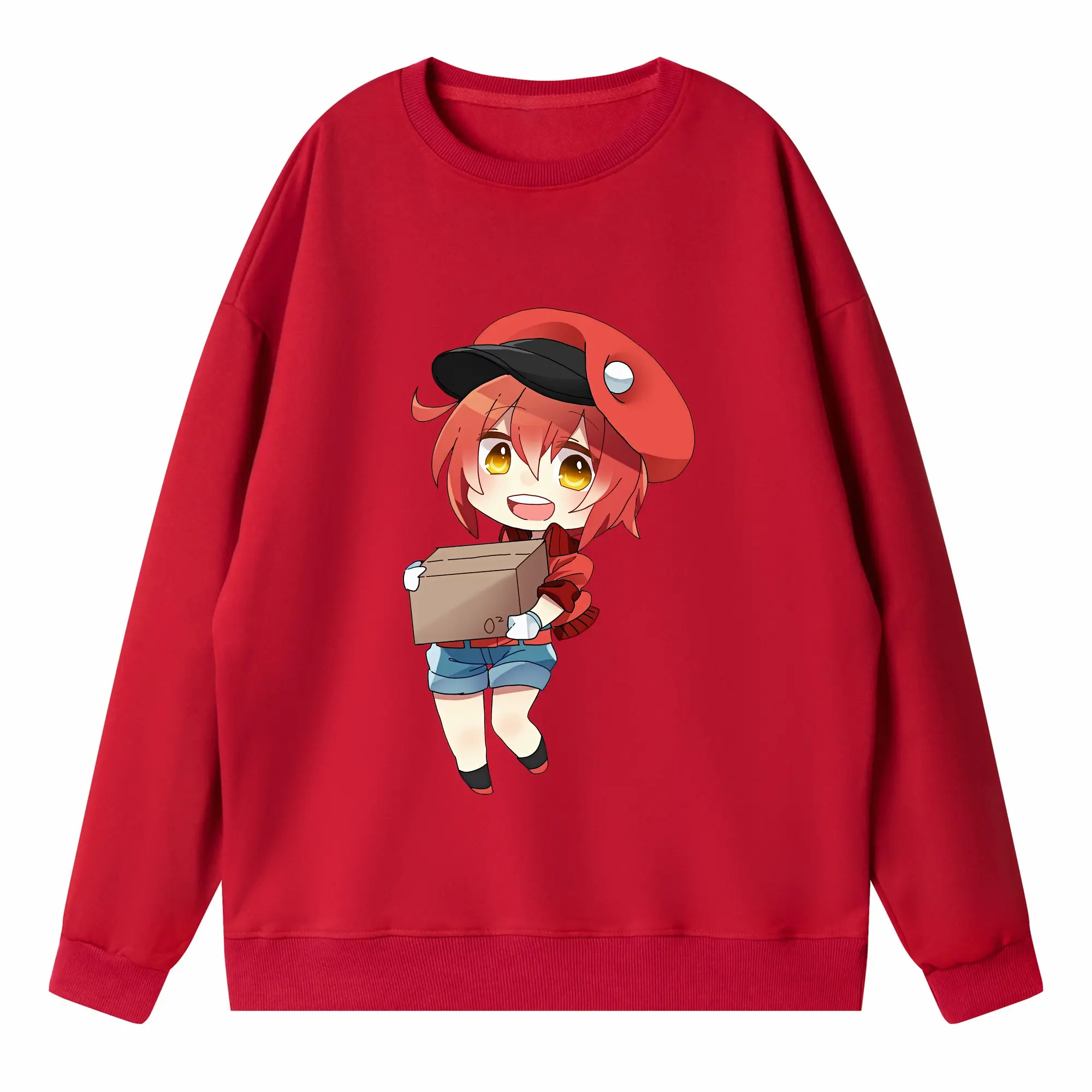 はたらく細胞 グッズ,赤血球 - 高品質 クルーネック スウェット ・ コットン59% ポリエステル41% ・ ユニセックス 長袖 トレーナー ・ カジュアル デイリー スポーツ 散歩用