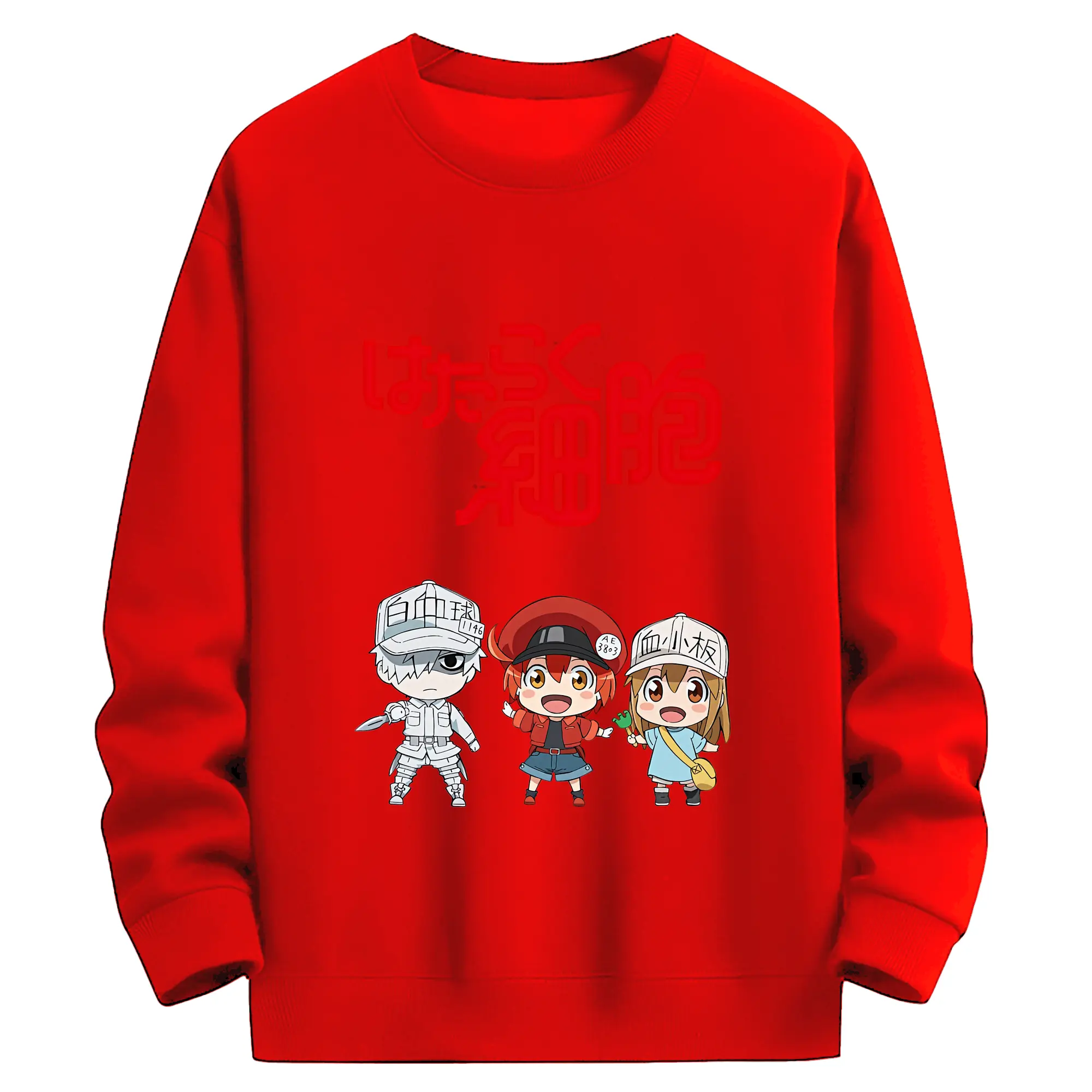 はたらく細胞 グッズ,赤血球 - 高品質 クルーネック スウェット ・ コットン59% ポリエステル41% ・ ユニセックス 長袖 トレーナー ・ カジュアル デイリー スポーツ 散歩用