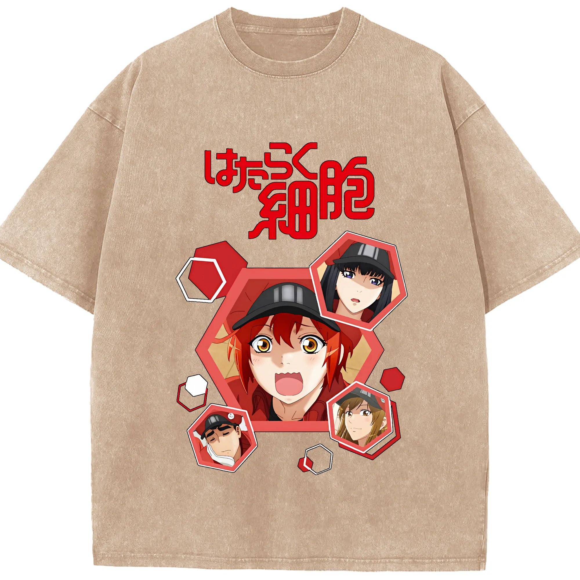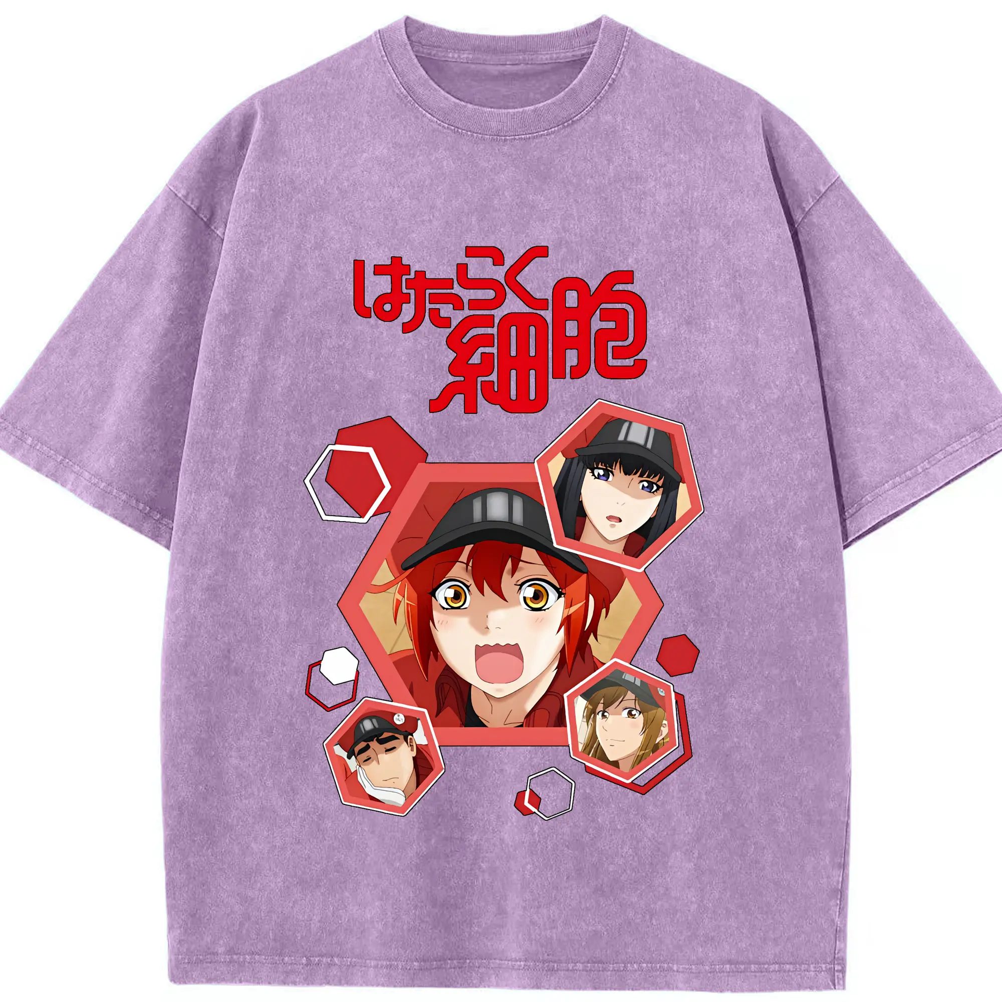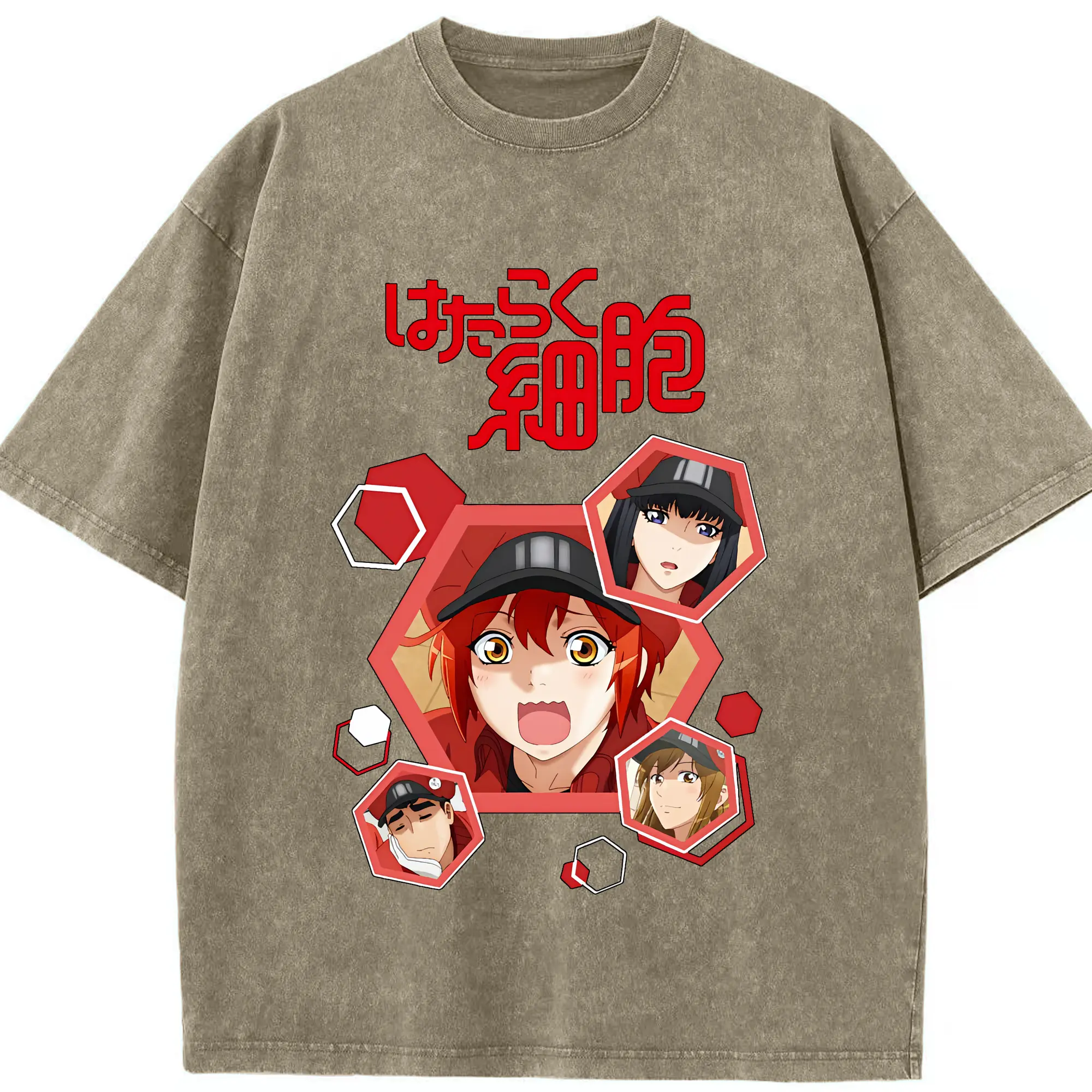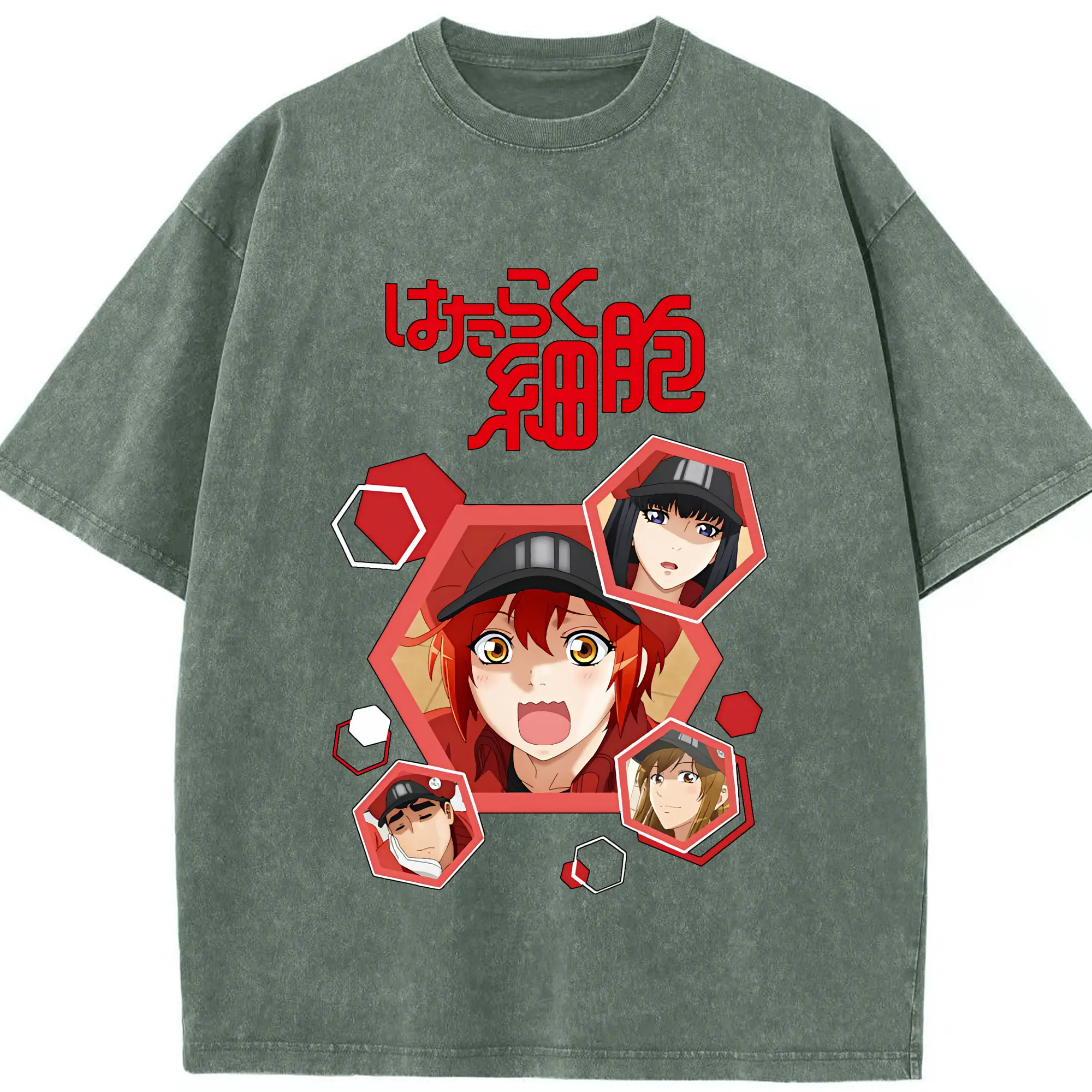 はたらく細胞 グッズ,赤血球 - 綿100% ヴィンテージ風 半袖Tシャツ ・ 背面プリント ・ 柔らか肌触り ・ 通気性 快適 ・ スポーツ カジュアル 外出用
