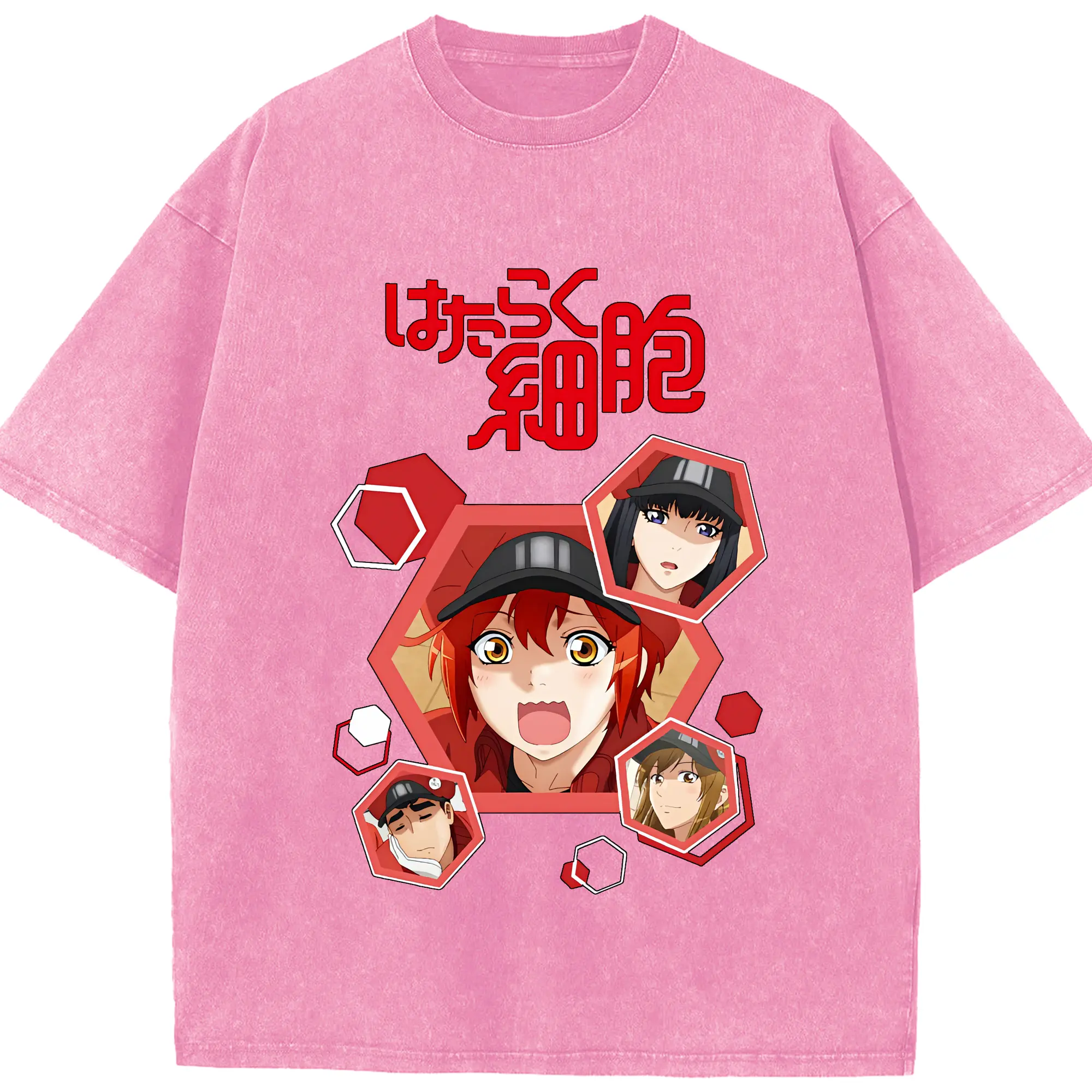 はたらく細胞 グッズ,赤血球 - 綿100% 半袖Tシャツ ・ フロントプリント ・ 快適 通気性 ・ 日常使い 散歩 スポーツ用
