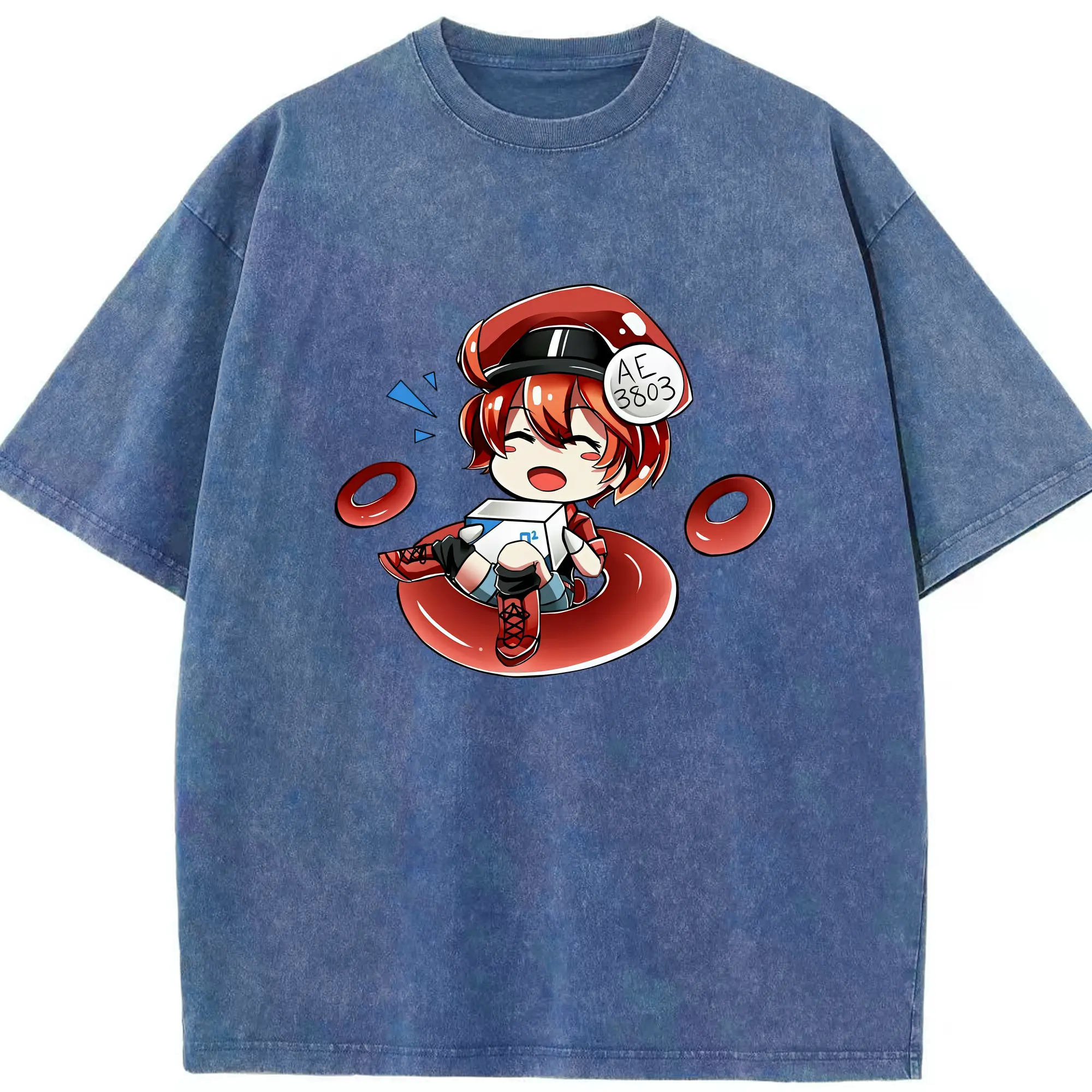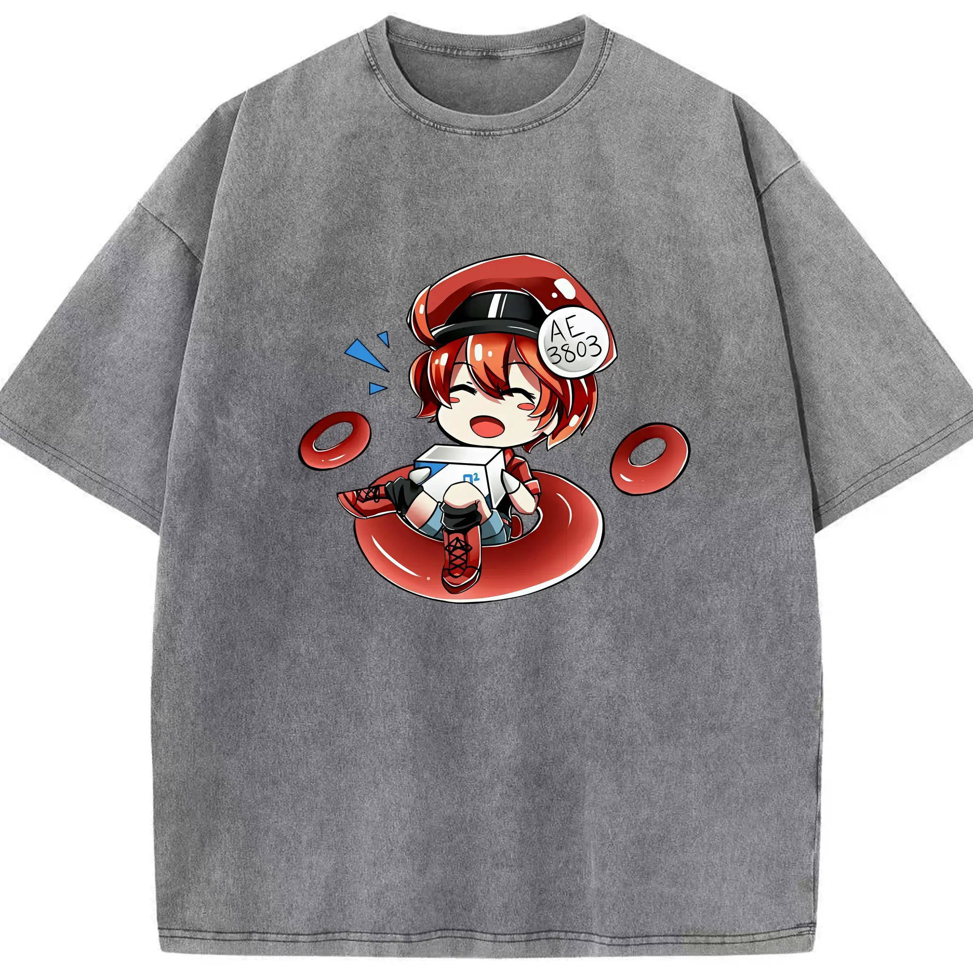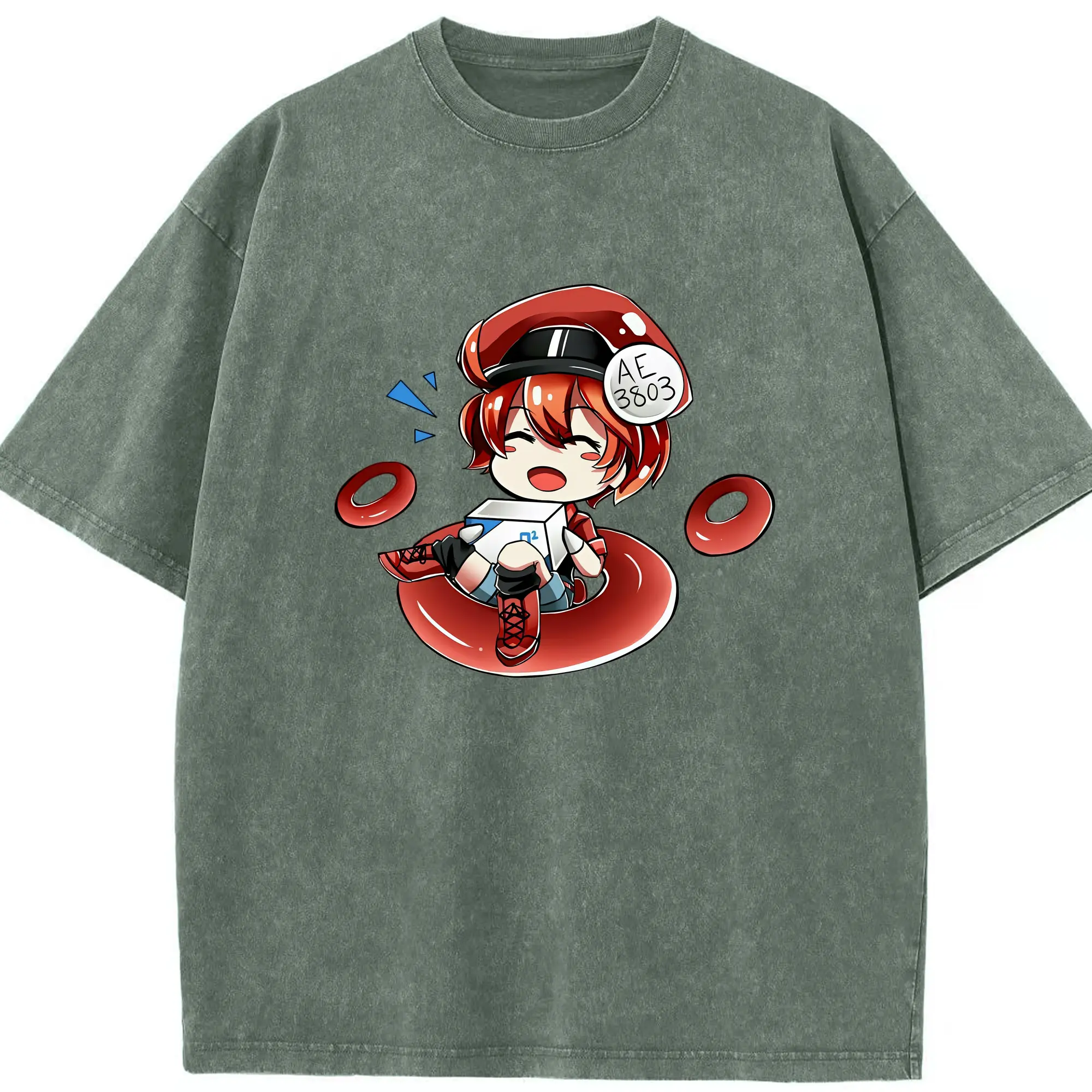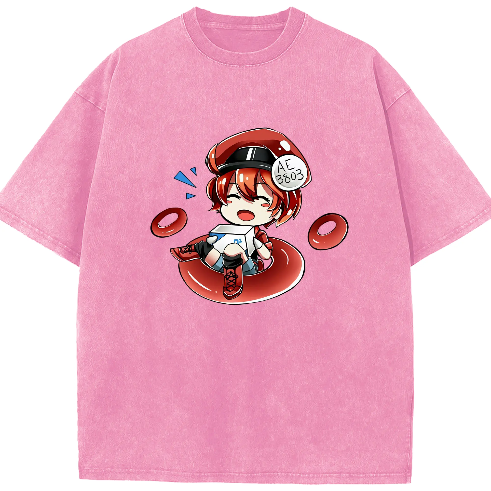はたらく細胞 グッズ,赤血球 - 綿100% ヴィンテージ風 半袖Tシャツ ・ 背面プリント ・ 柔らか肌触り ・ 通気性 快適 ・ スポーツ カジュアル 外出用