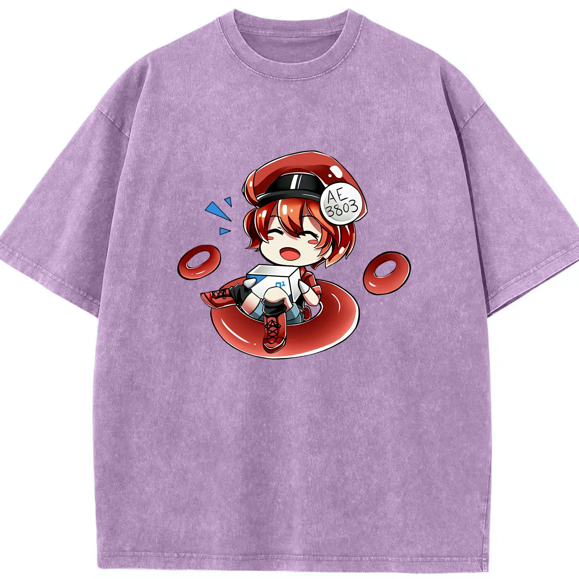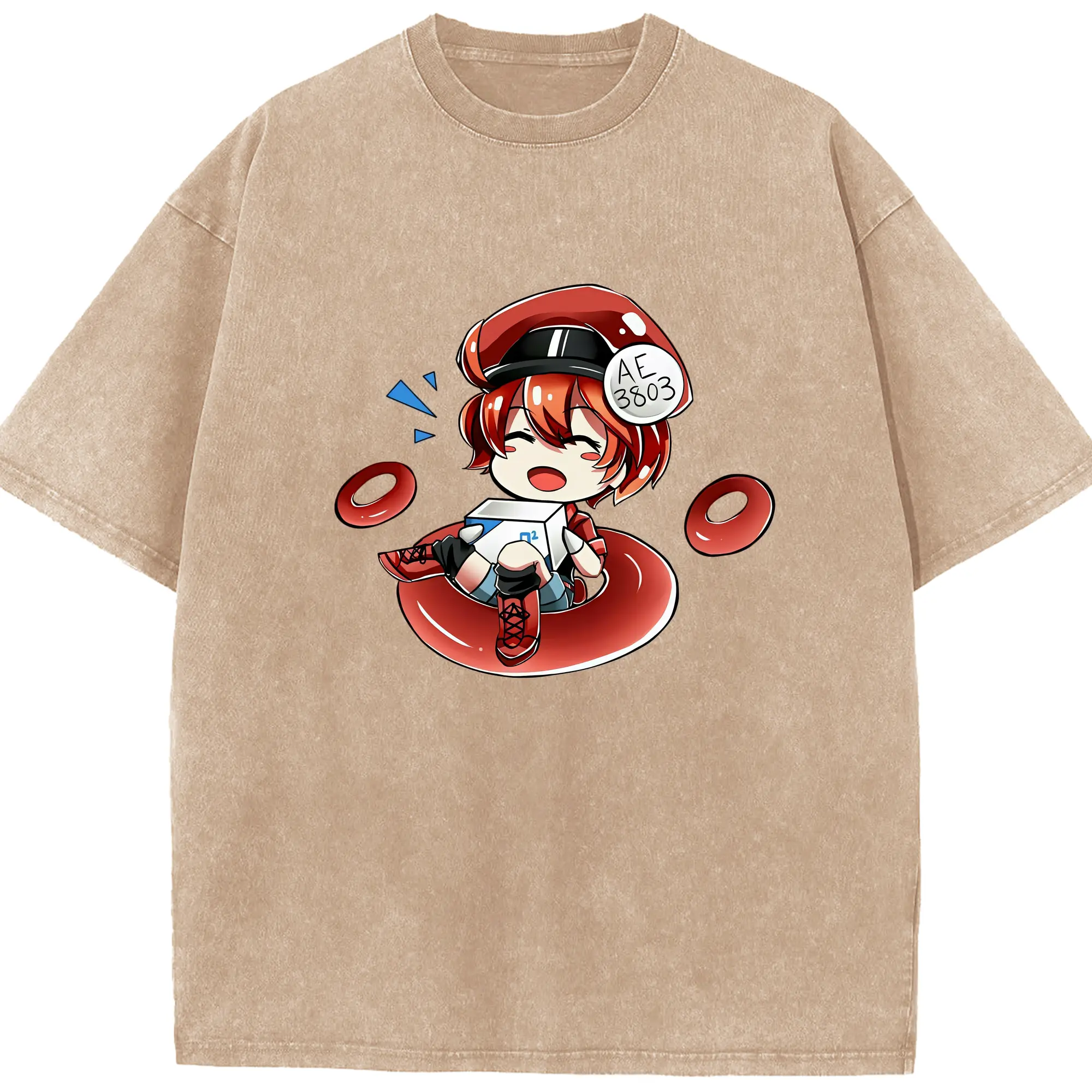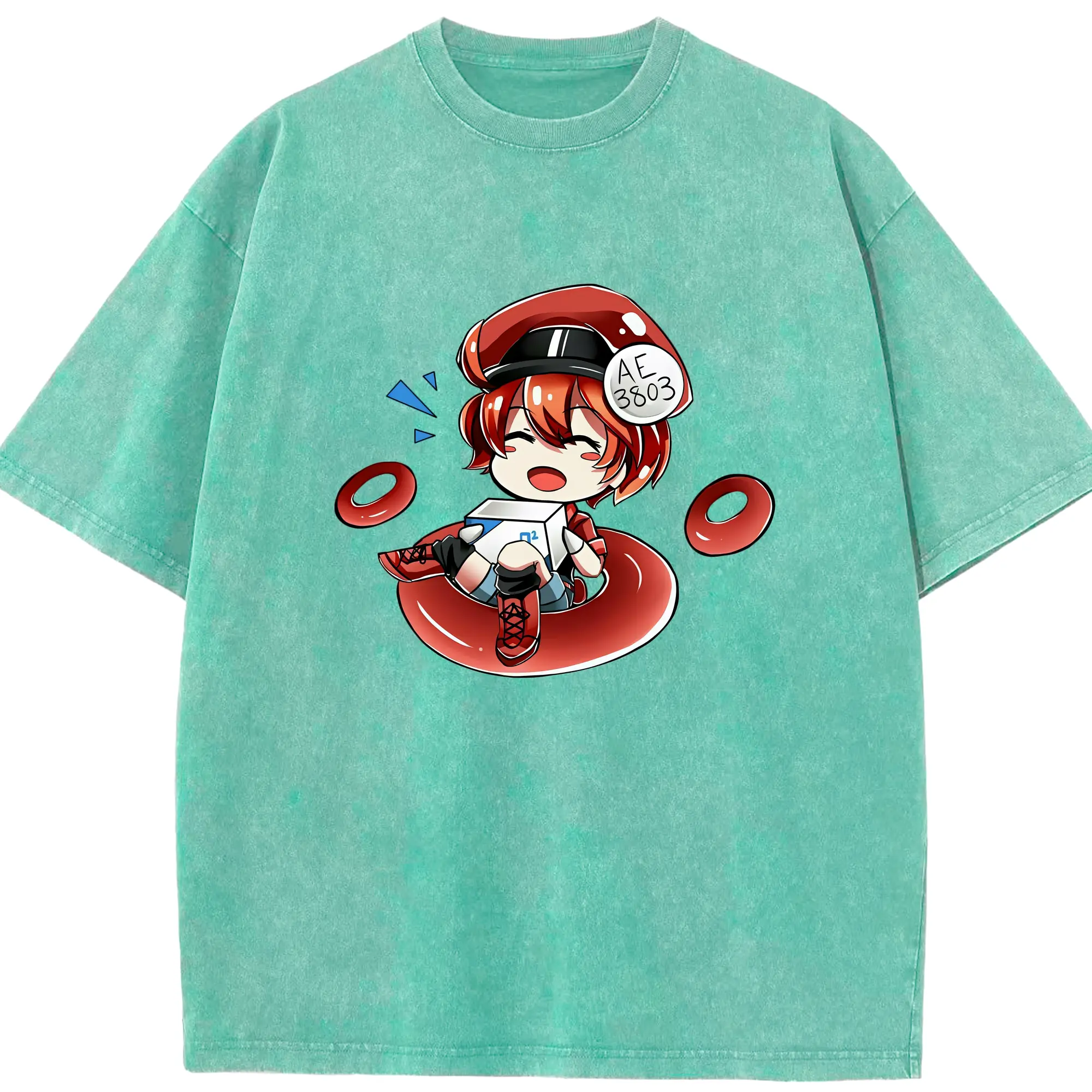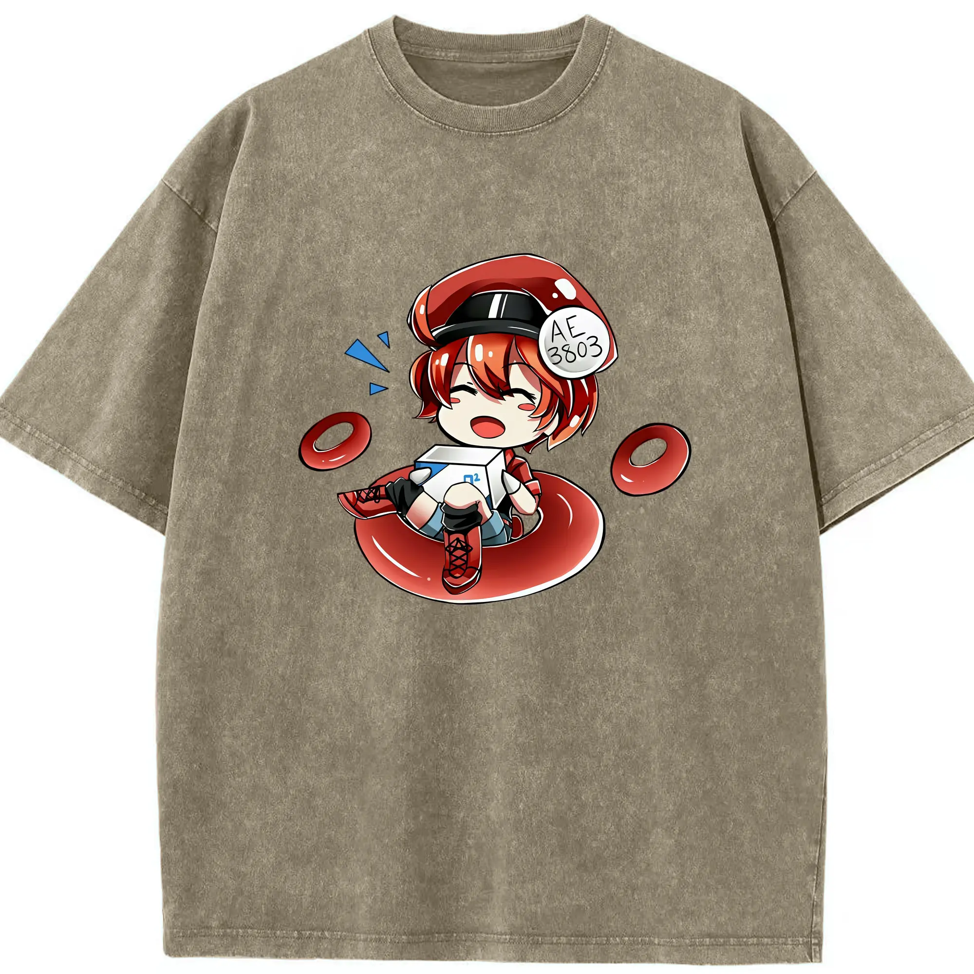 はたらく細胞 グッズ,赤血球 - 綿100% ヴィンテージ風 半袖Tシャツ ・ 背面プリント ・ 柔らか肌触り ・ 通気性 快適 ・ スポーツ カジュアル 外出用