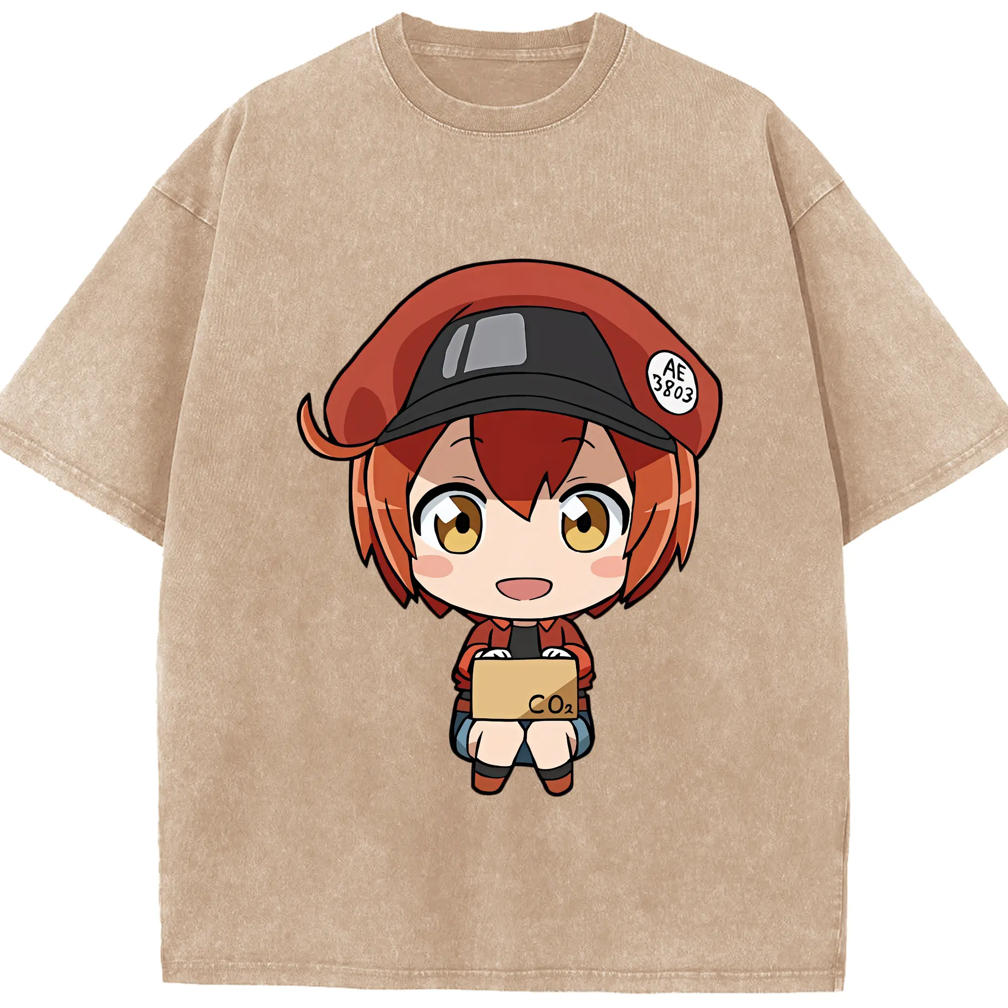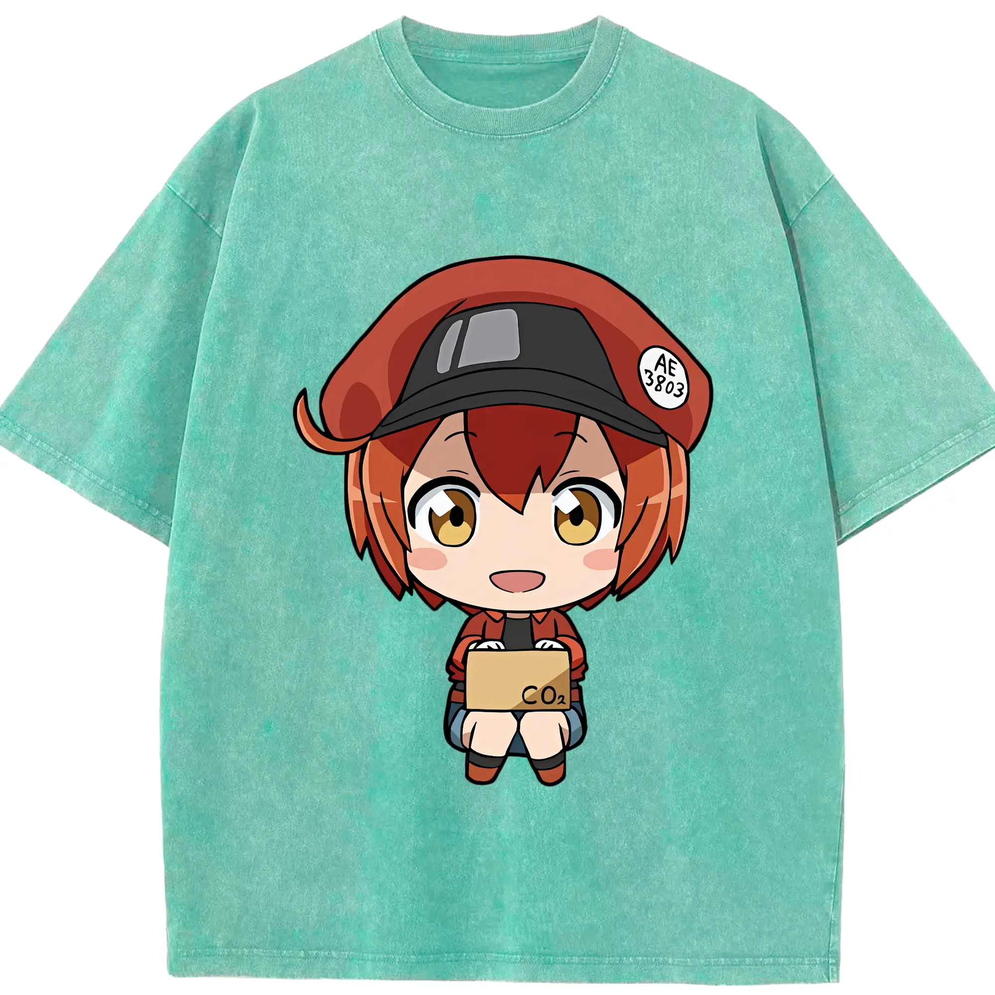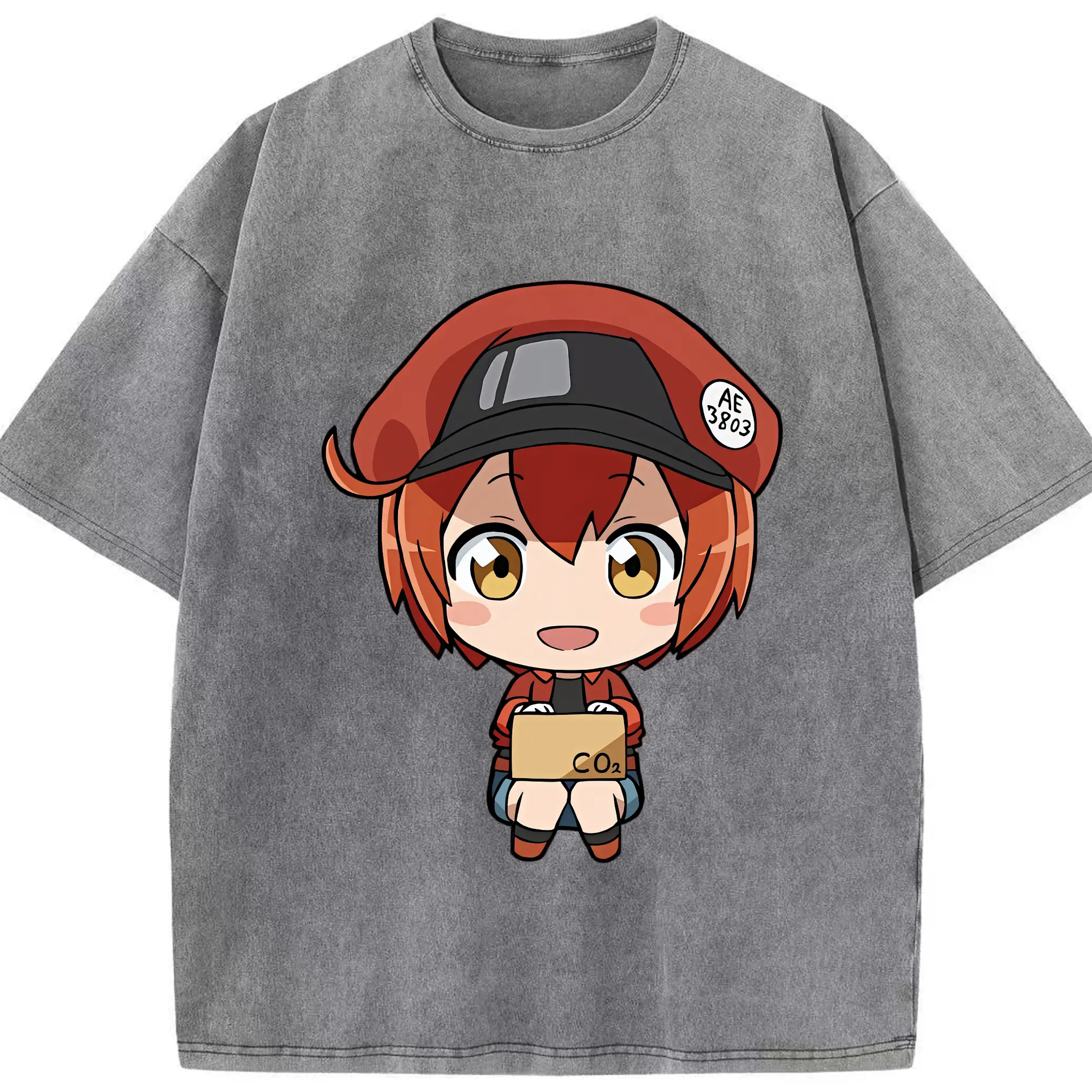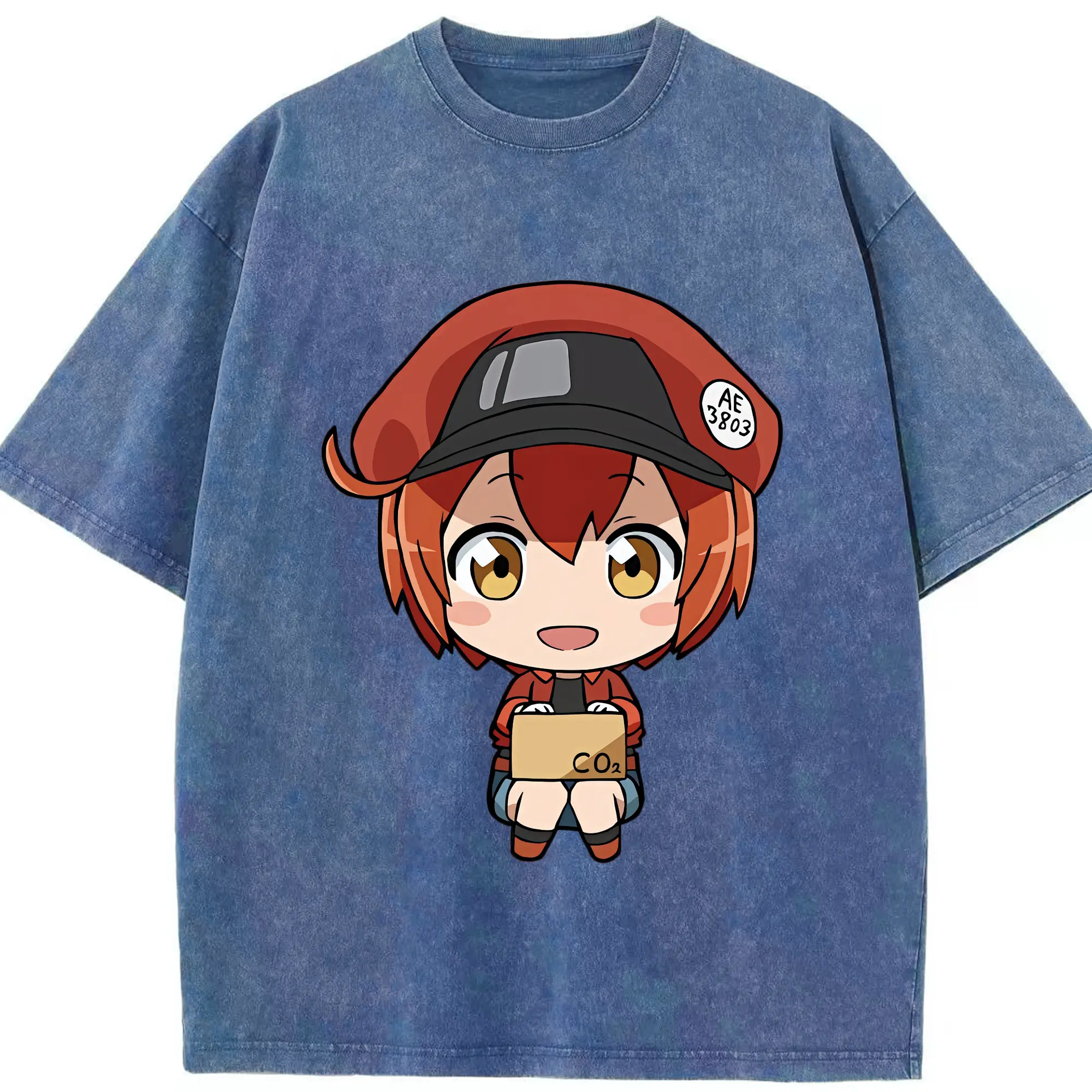はたらく細胞 グッズ,赤血球 - 綿100% ヴィンテージ風 半袖Tシャツ ・ 背面プリント ・ 柔らか肌触り ・ 通気性 快適 ・ スポーツ カジュアル 外出用