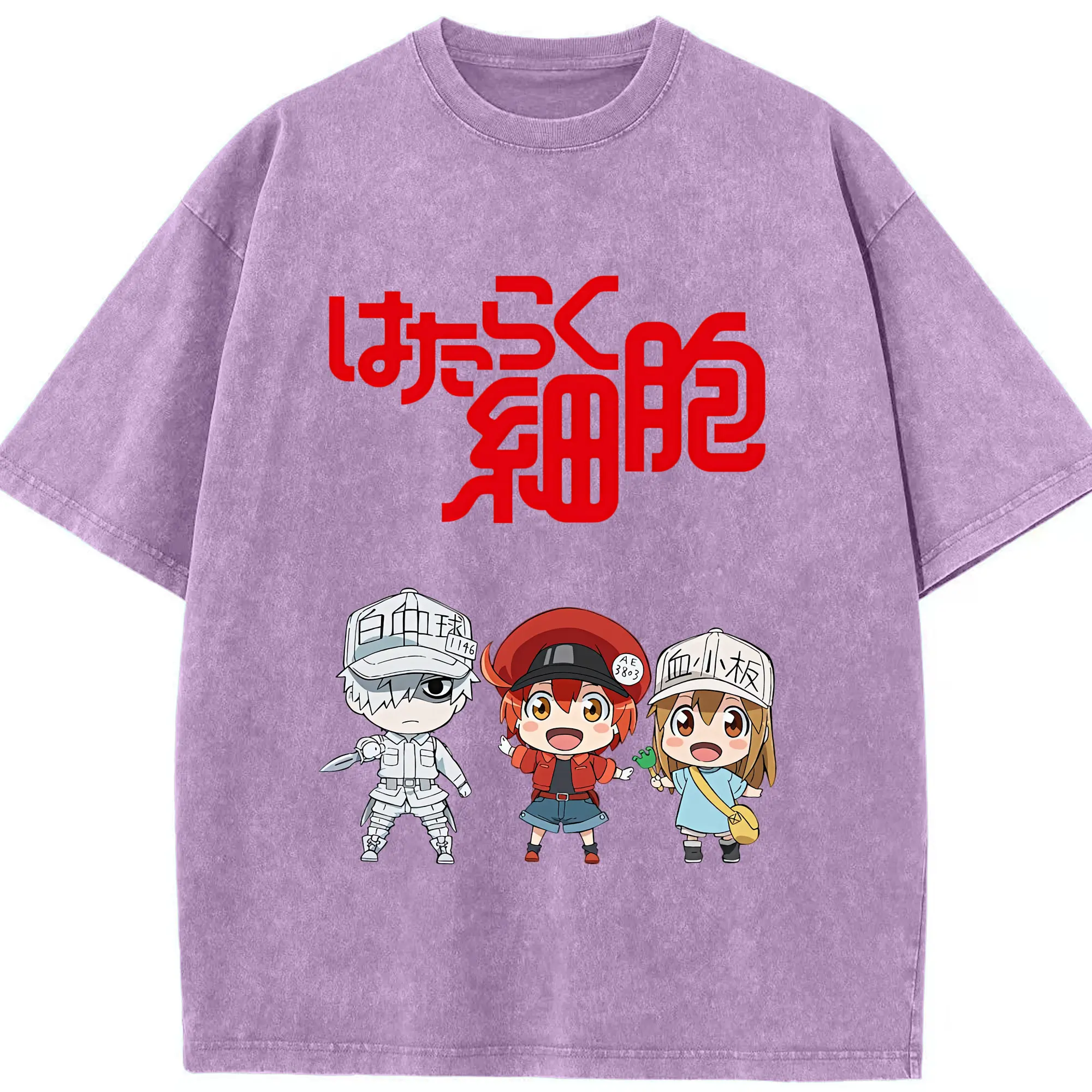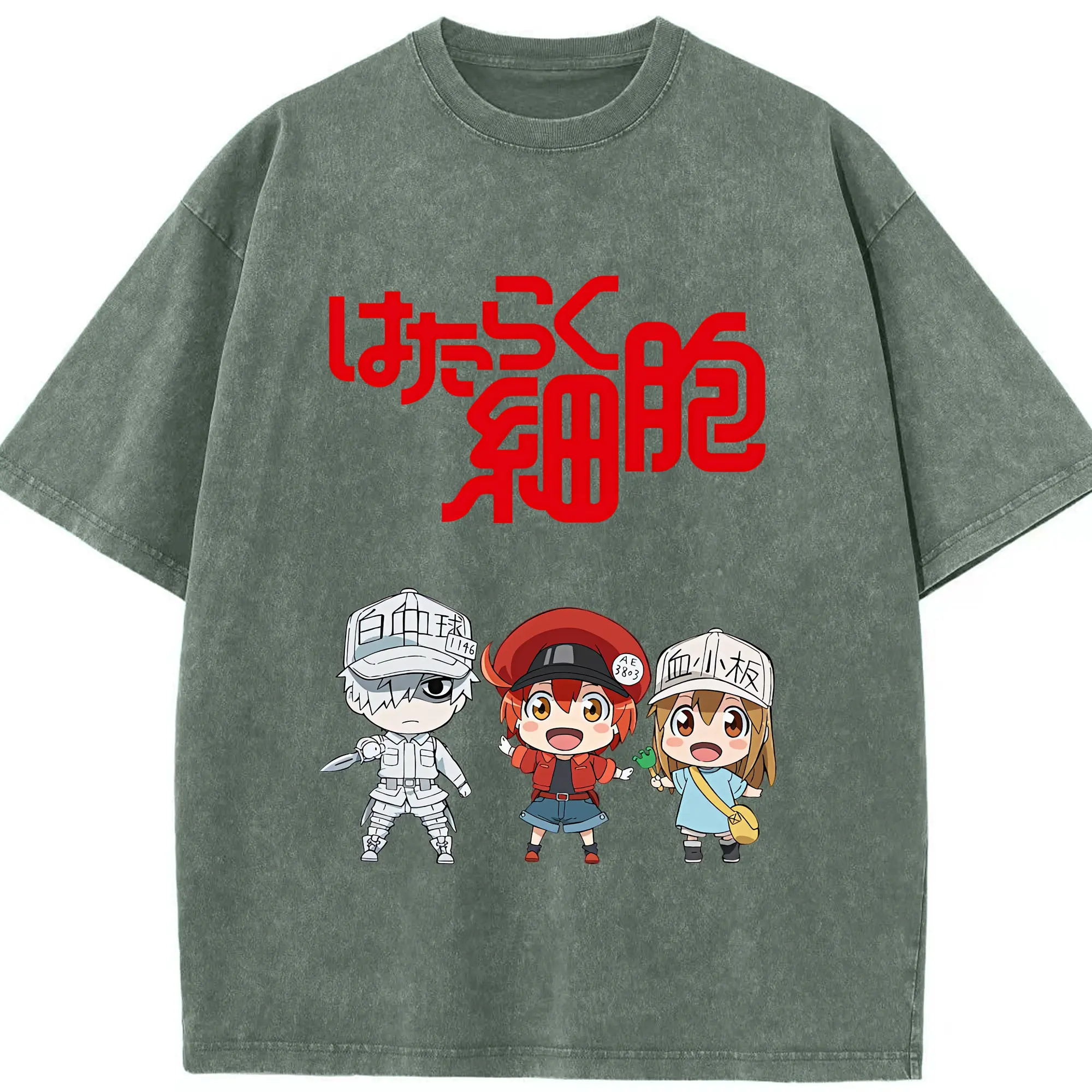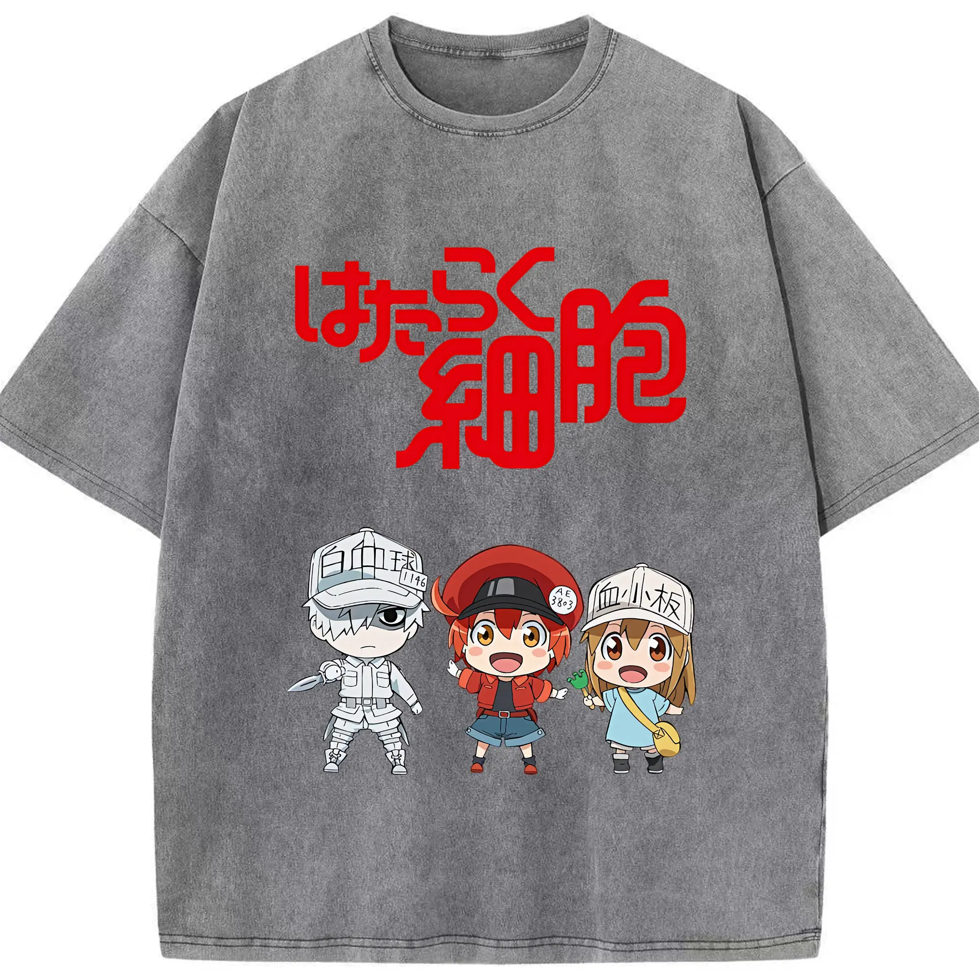 はたらく細胞 グッズ,赤血球 - 綿100% ヴィンテージ風 半袖Tシャツ ・ 背面プリント ・ 柔らか肌触り ・ 通気性 快適 ・ スポーツ カジュアル 外出用