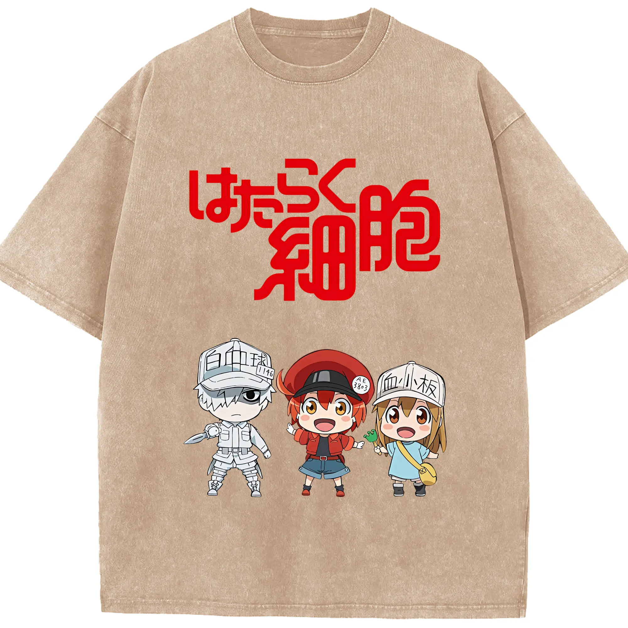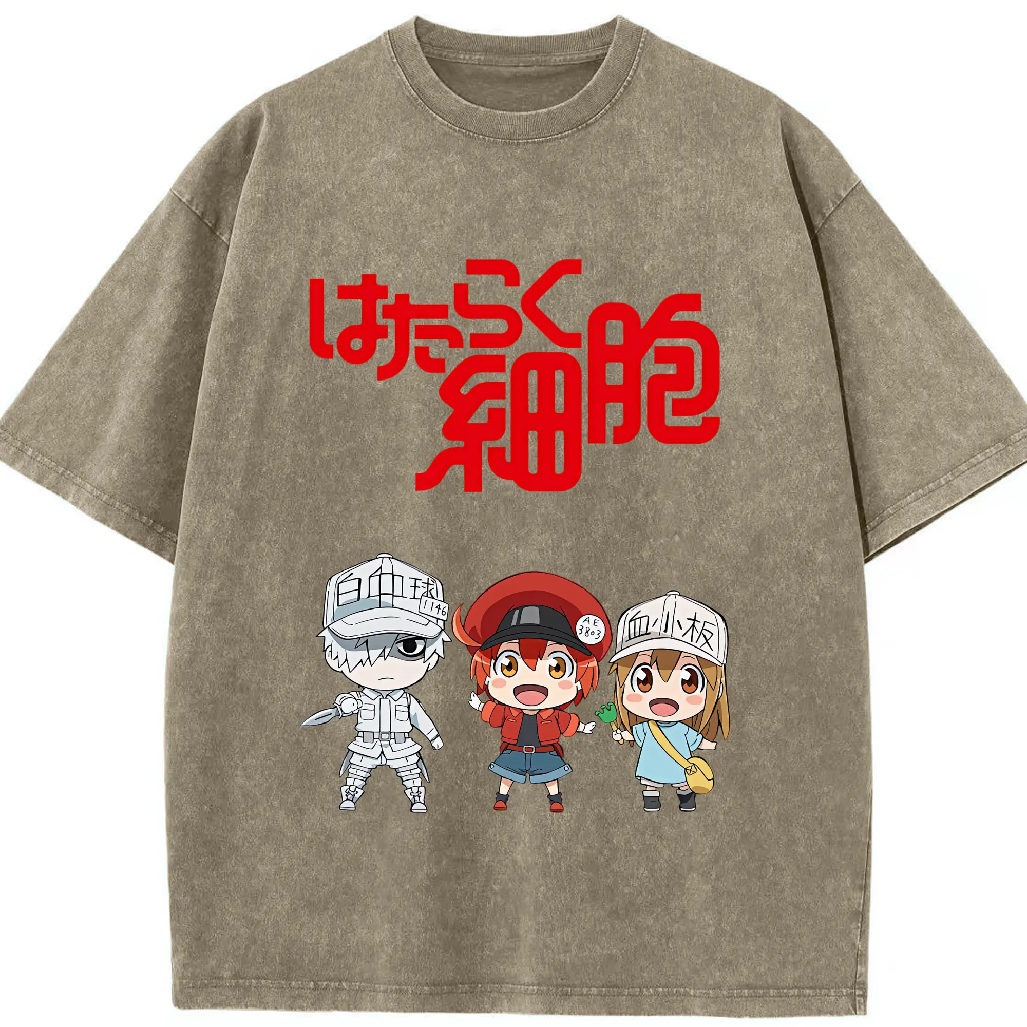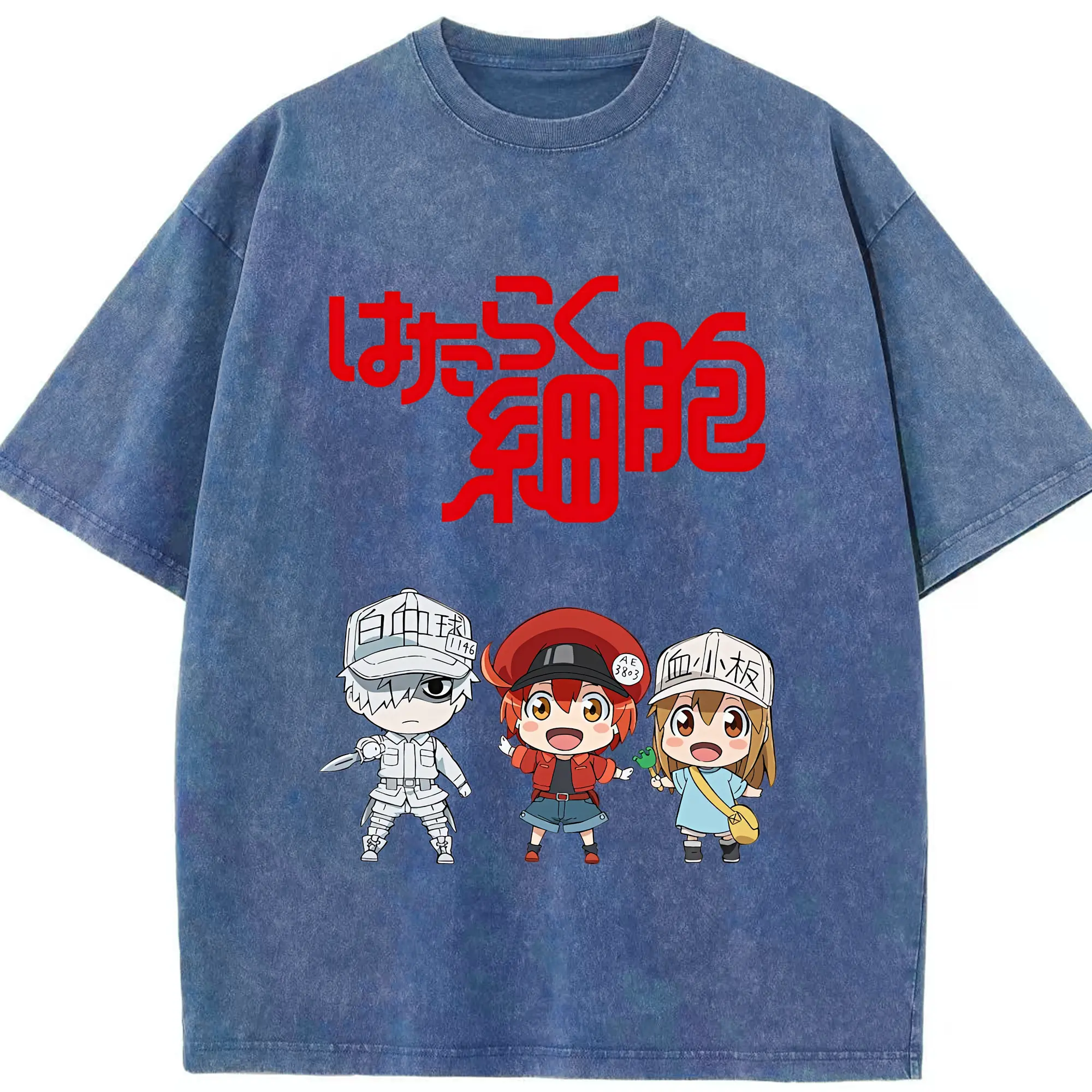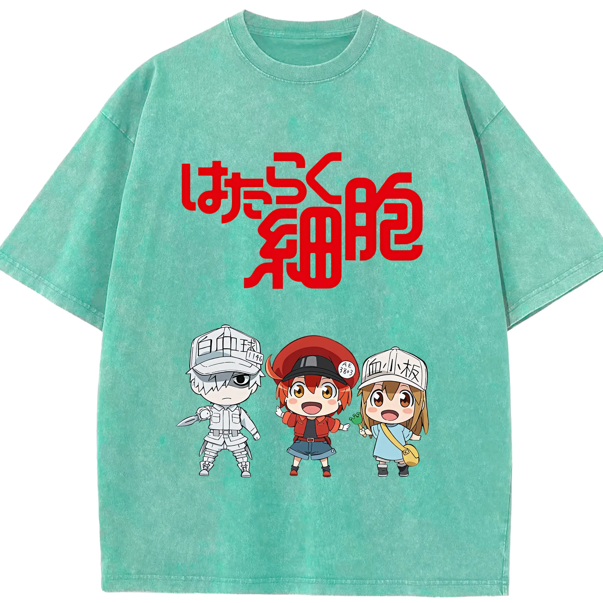はたらく細胞 グッズ,赤血球 - 綿100% ヴィンテージ風 半袖Tシャツ ・ 背面プリント ・ 柔らか肌触り ・ 通気性 快適 ・ スポーツ カジュアル 外出用