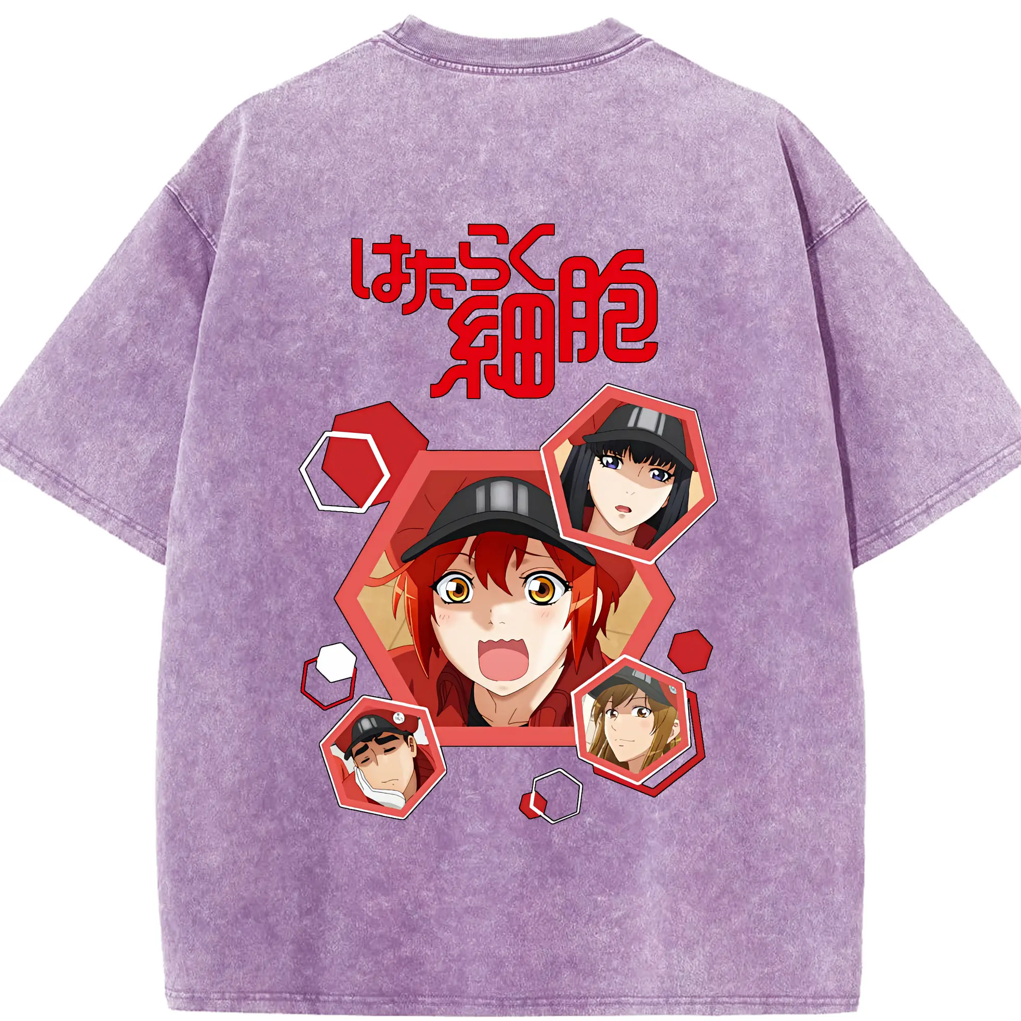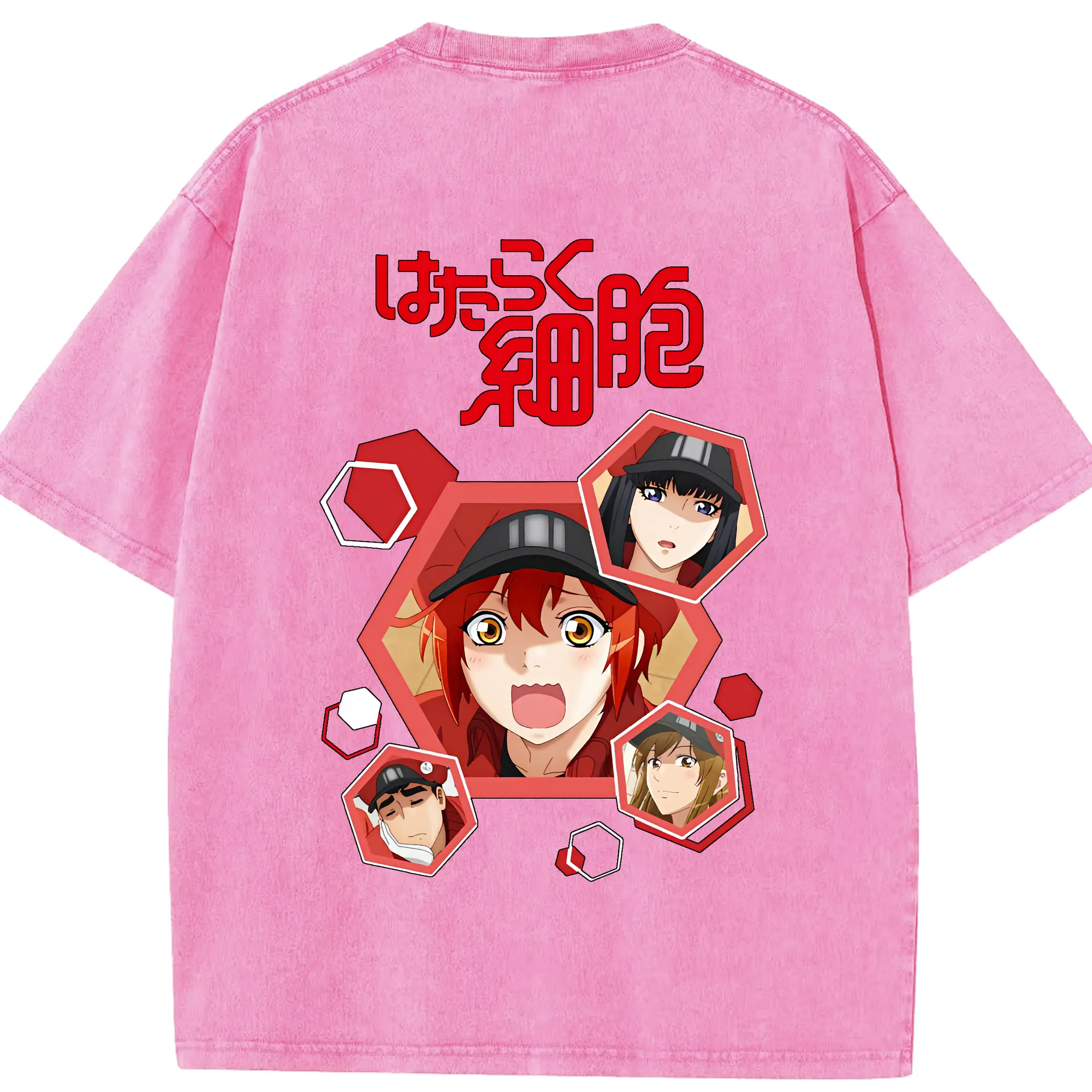 はたらく細胞 グッズ,赤血球 - 綿100% 半袖Tシャツ ・ バックプリント ・ 快適 通気性 ・ 日常使い 散歩 スポーツ用