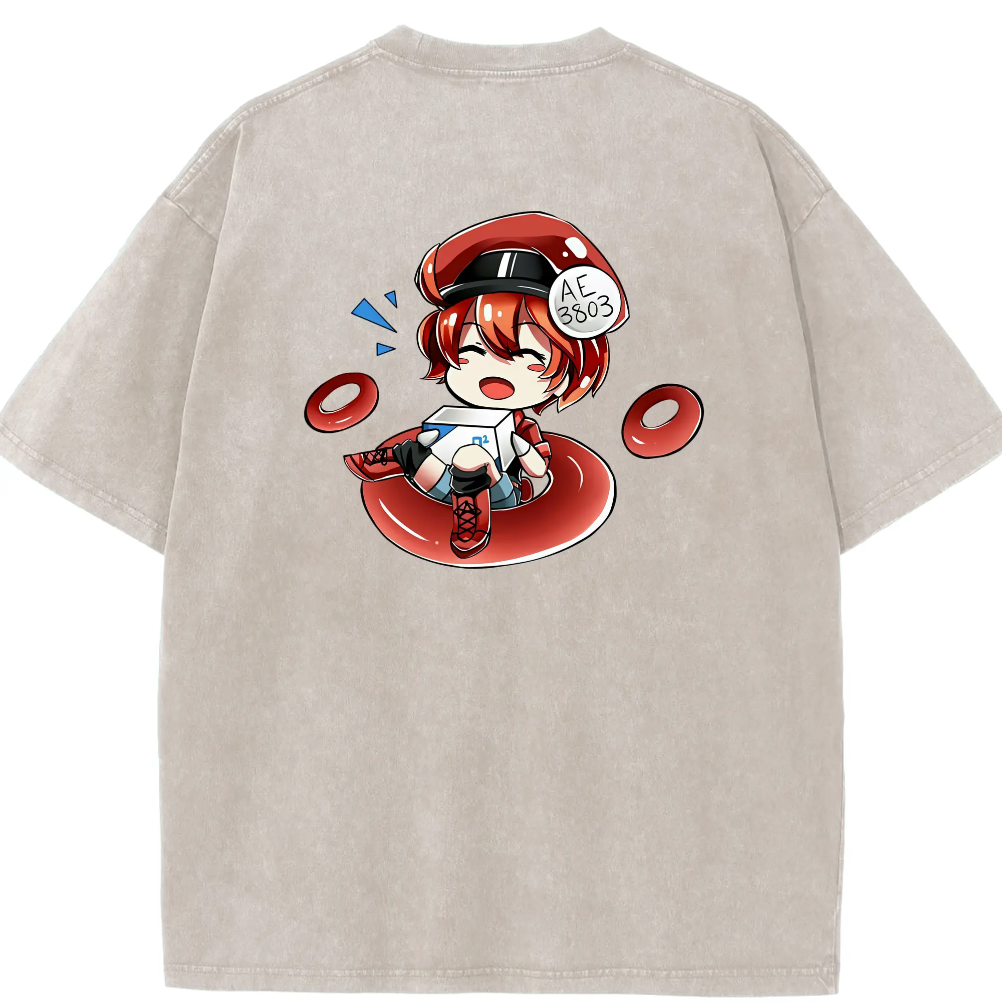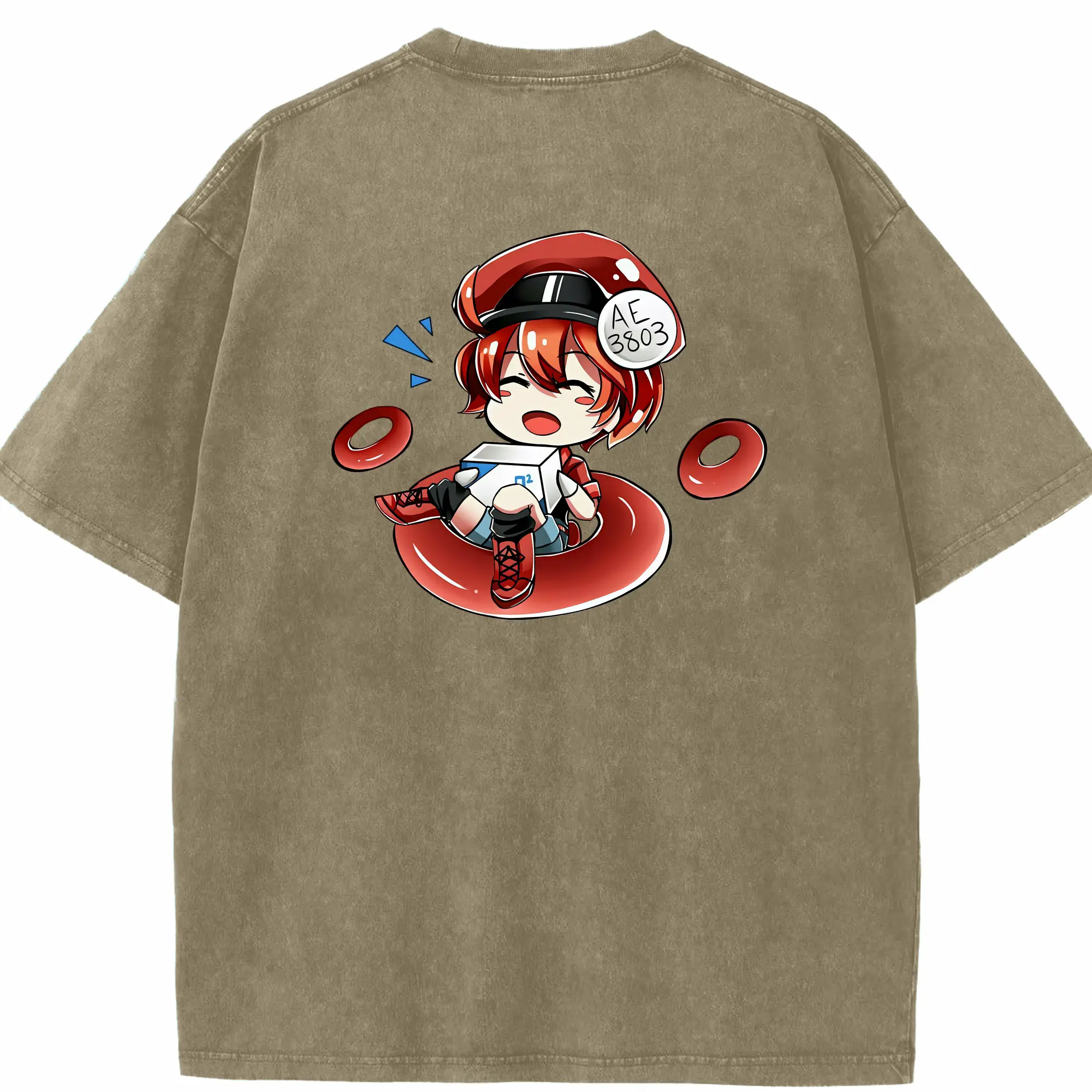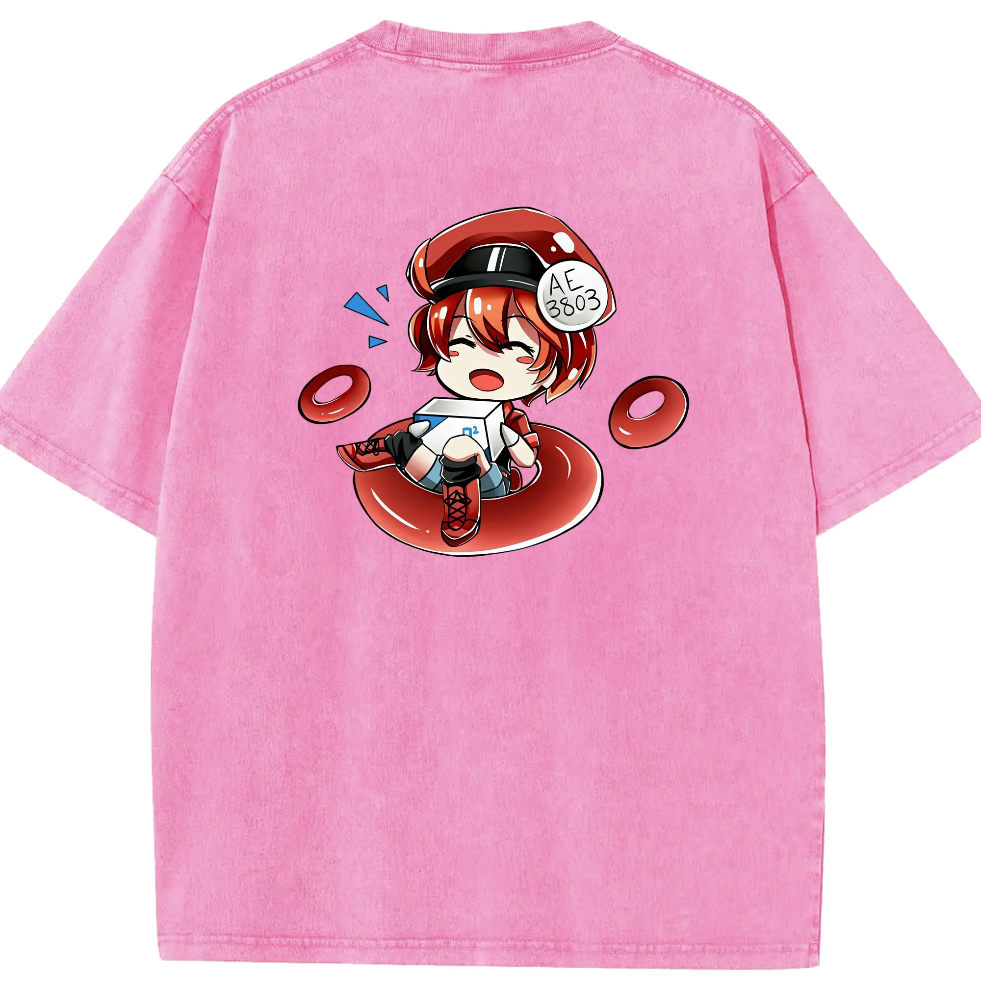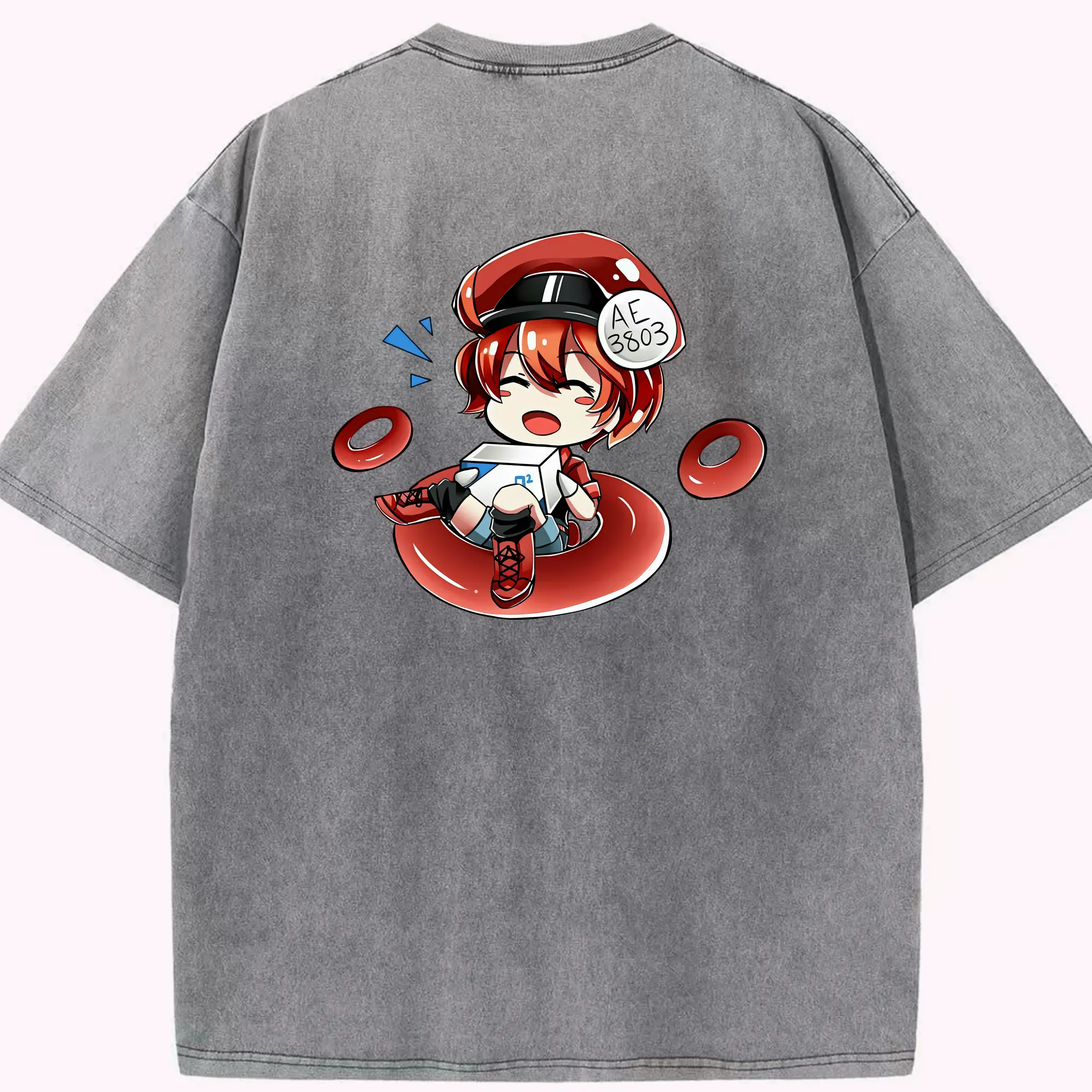 はたらく細胞 グッズ,赤血球 - 綿100% ヴィンテージ風 半袖Tシャツ ・ フロントプリント ・ 柔らか肌触り ・ 通気性 快適 ・ スポーツ カジュアル 外出用