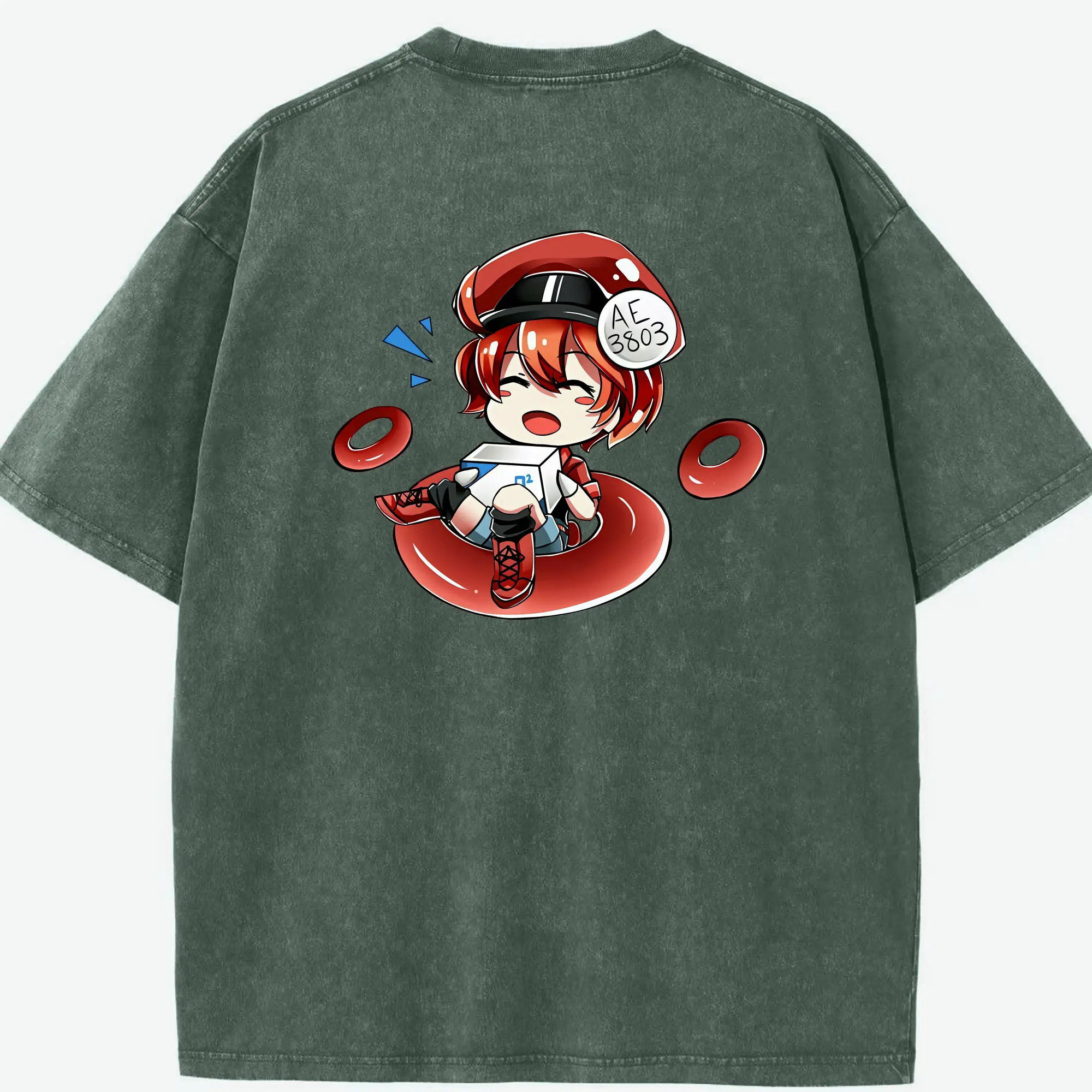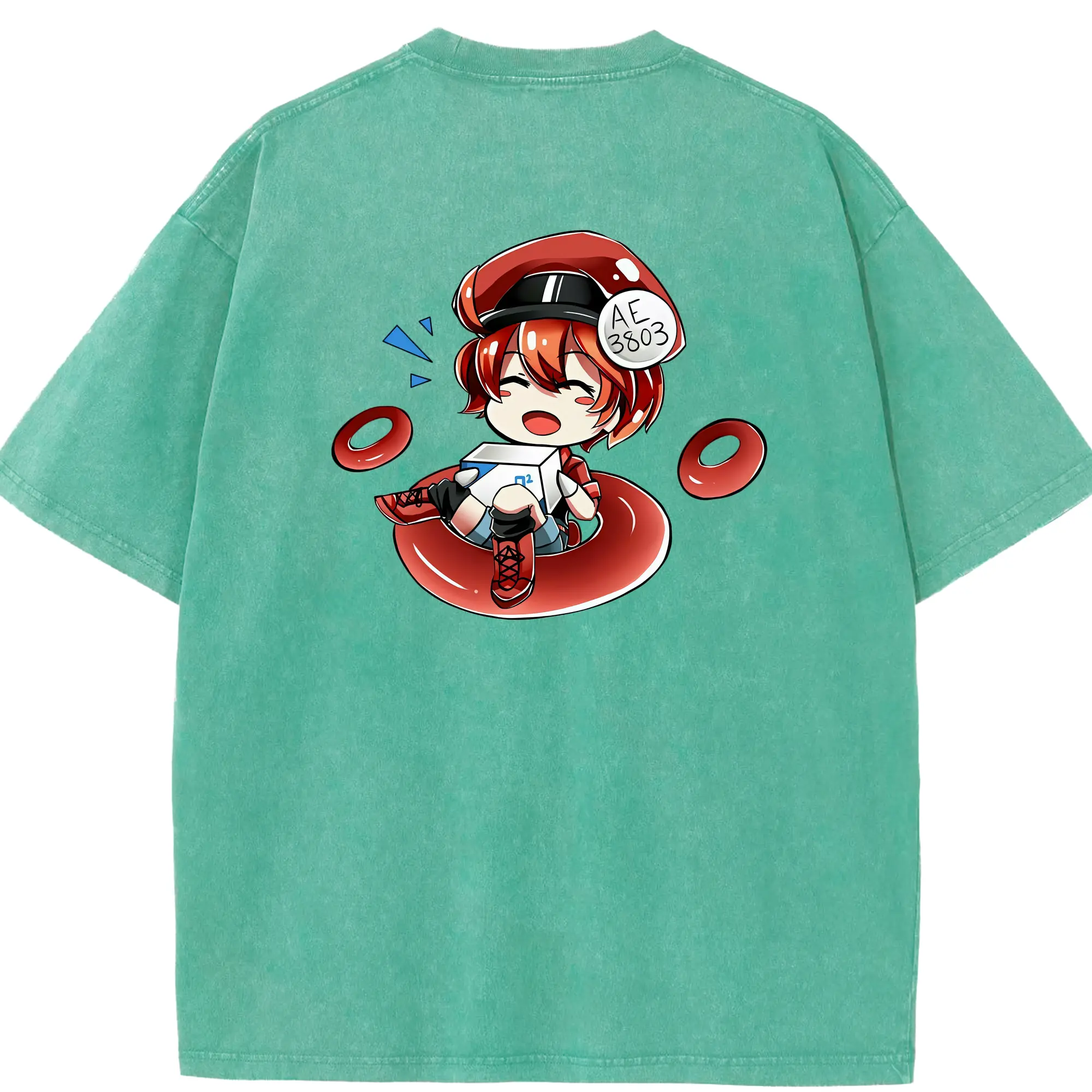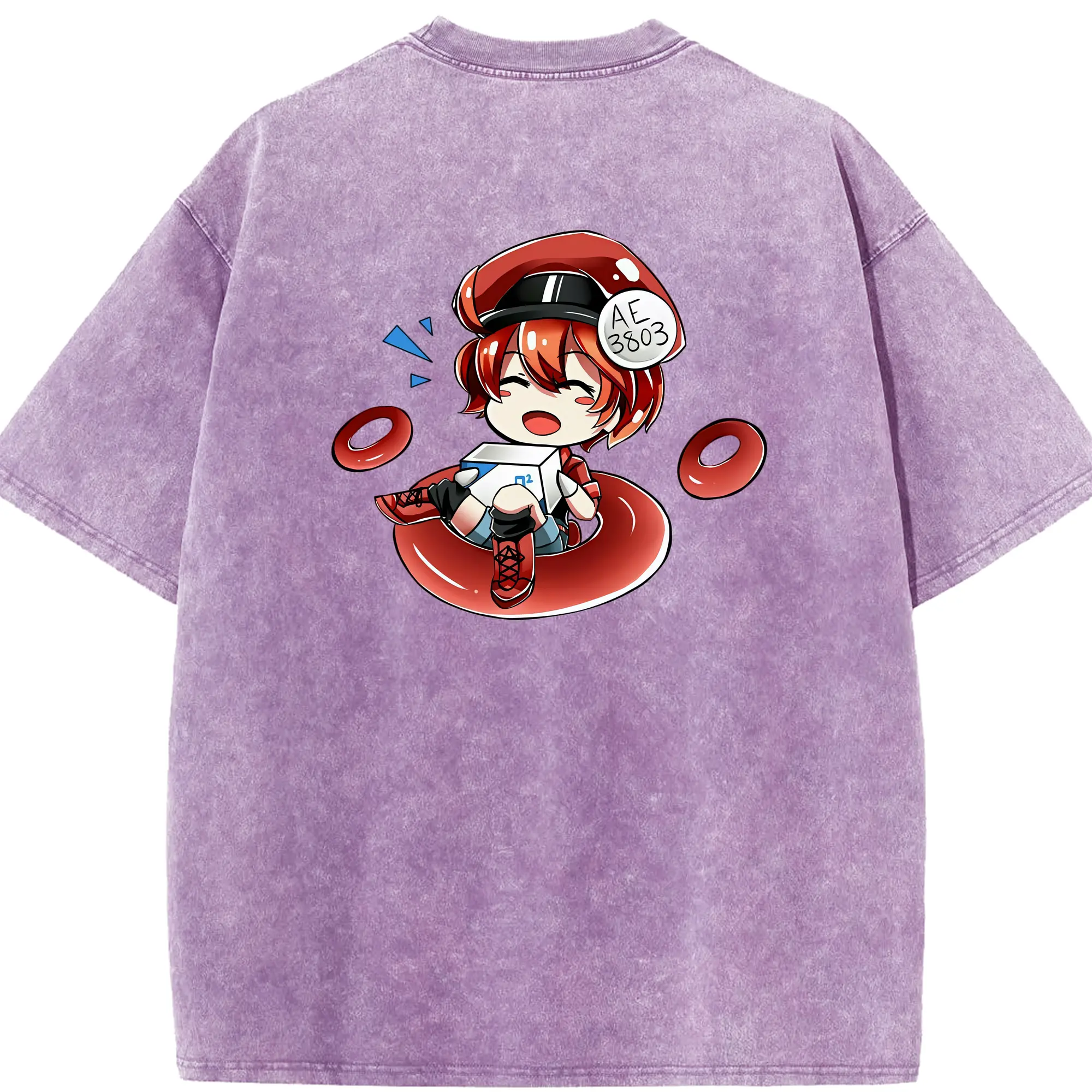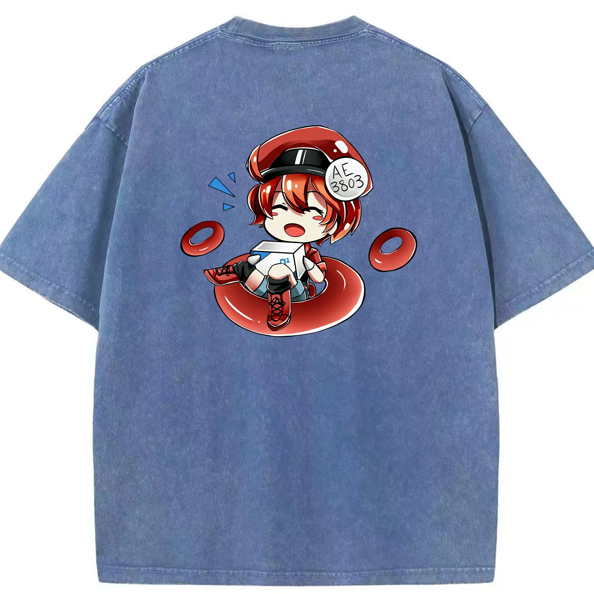 はたらく細胞 グッズ,赤血球 - 綿100% ヴィンテージ風 半袖Tシャツ ・ フロントプリント ・ 柔らか肌触り ・ 通気性 快適 ・ スポーツ カジュアル 外出用