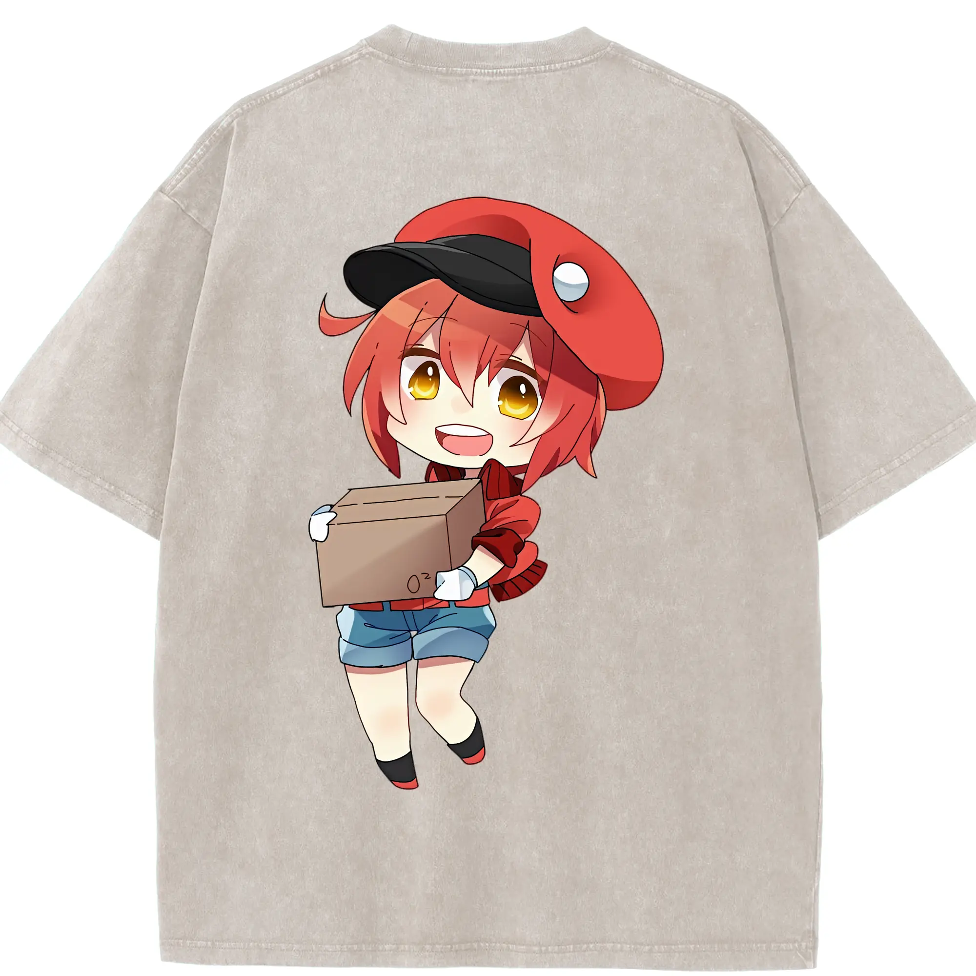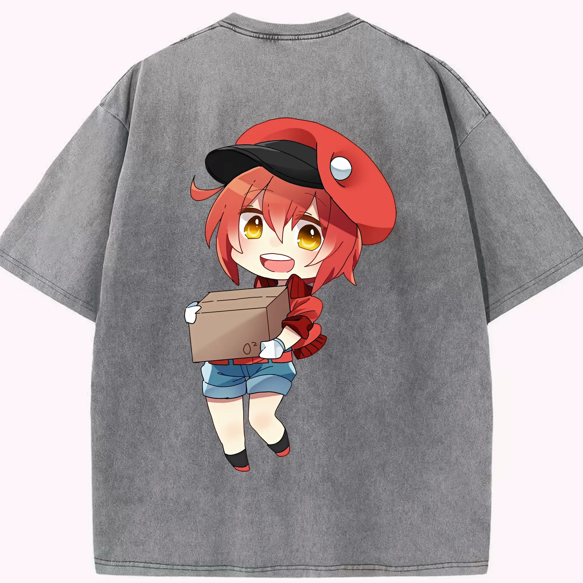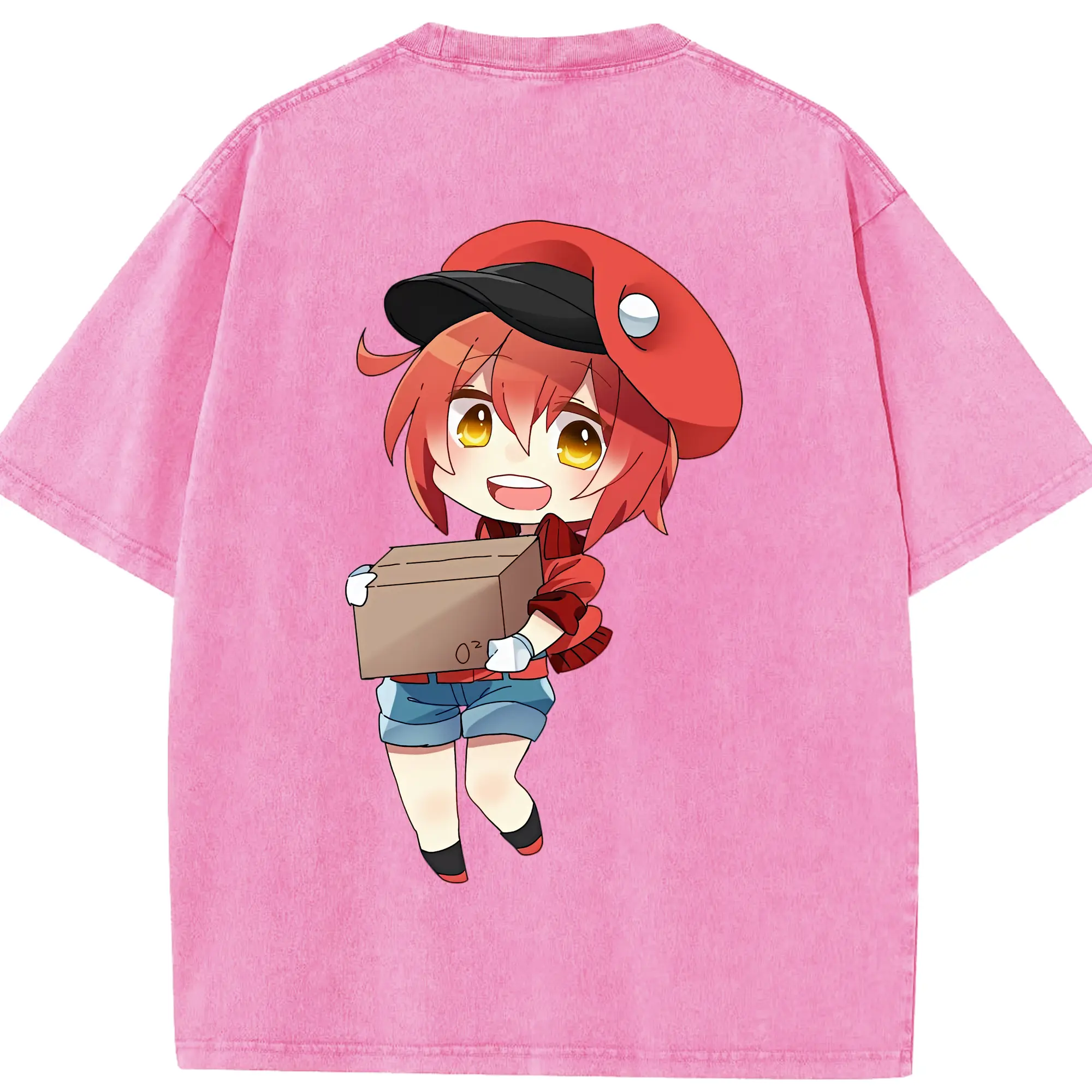 はたらく細胞 グッズ,赤血球 - 綿100% ヴィンテージ風 半袖Tシャツ ・ 背面プリント ・ 柔らか肌触り ・ 通気性 快適 ・ スポーツ カジュアル 外出用
