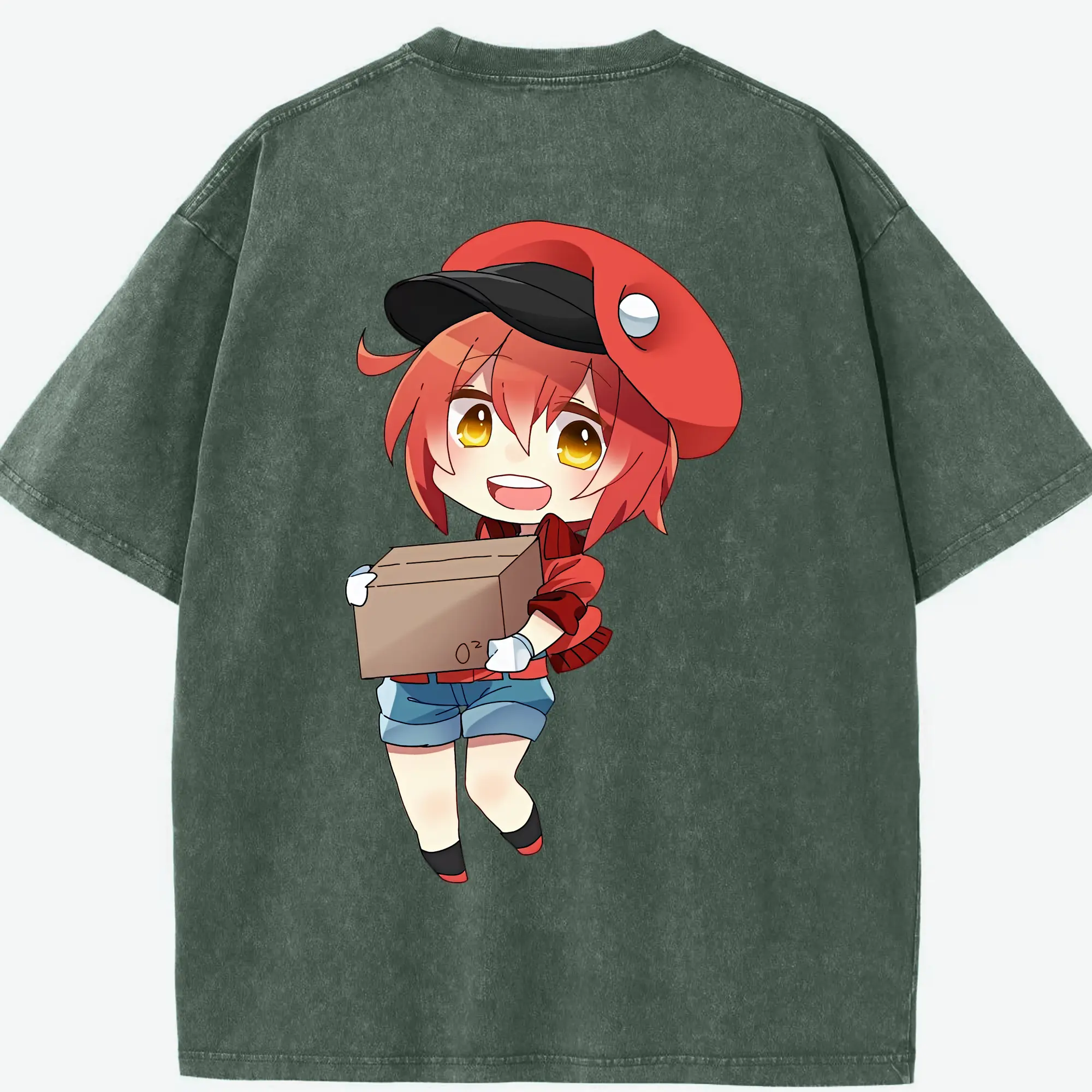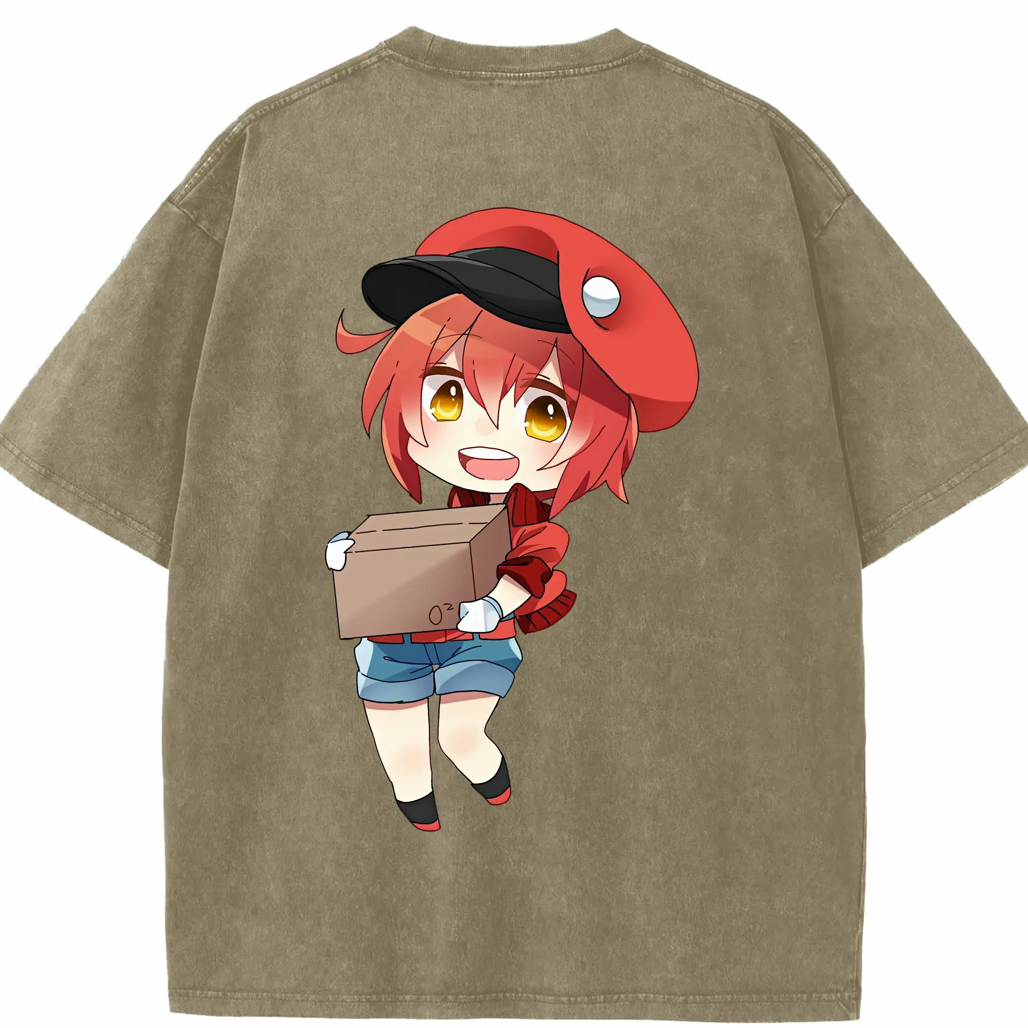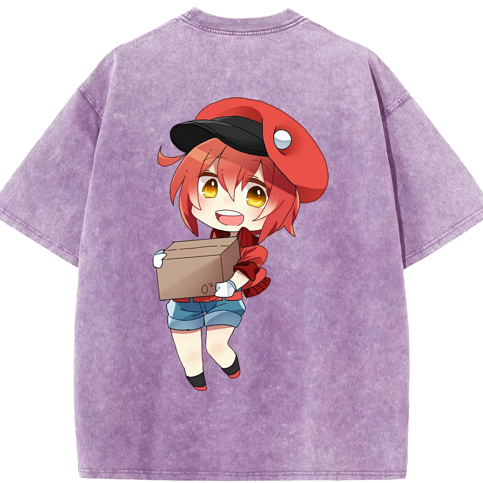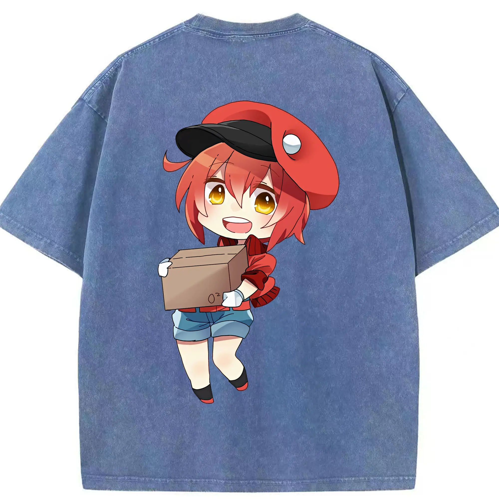 はたらく細胞 グッズ,赤血球 - 綿100% ヴィンテージ風 半袖Tシャツ ・ 背面プリント ・ 柔らか肌触り ・ 通気性 快適 ・ スポーツ カジュアル 外出用