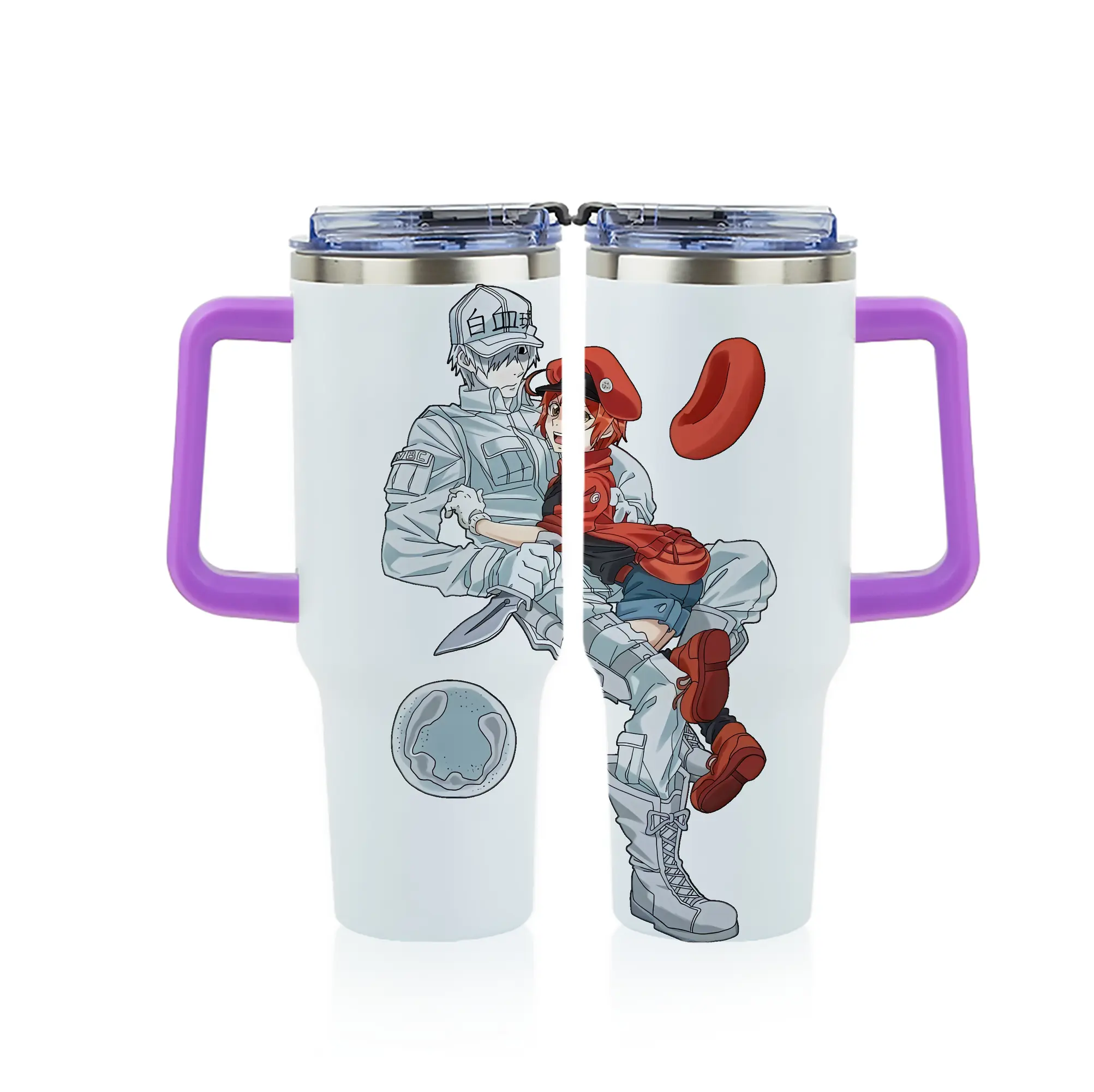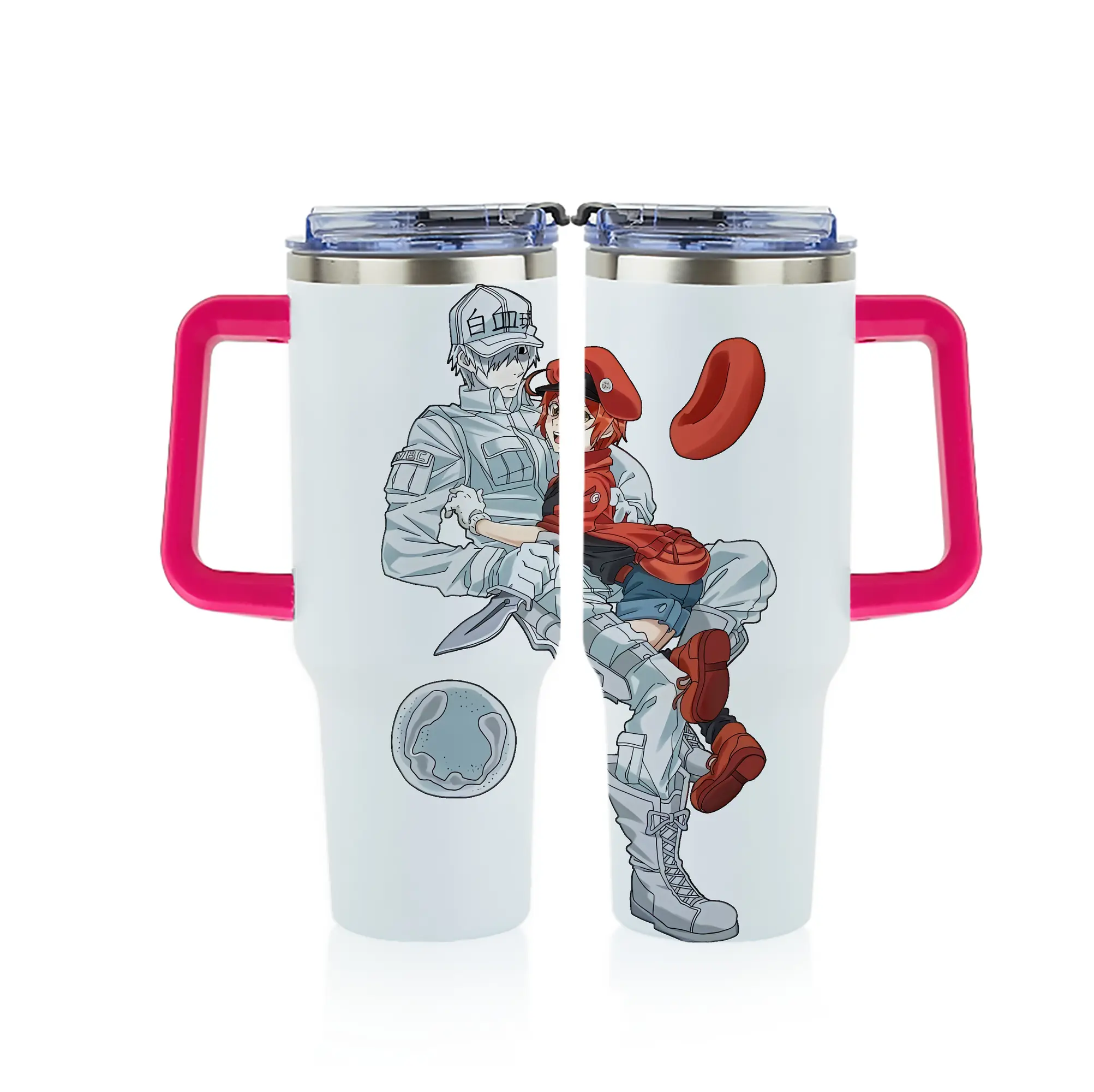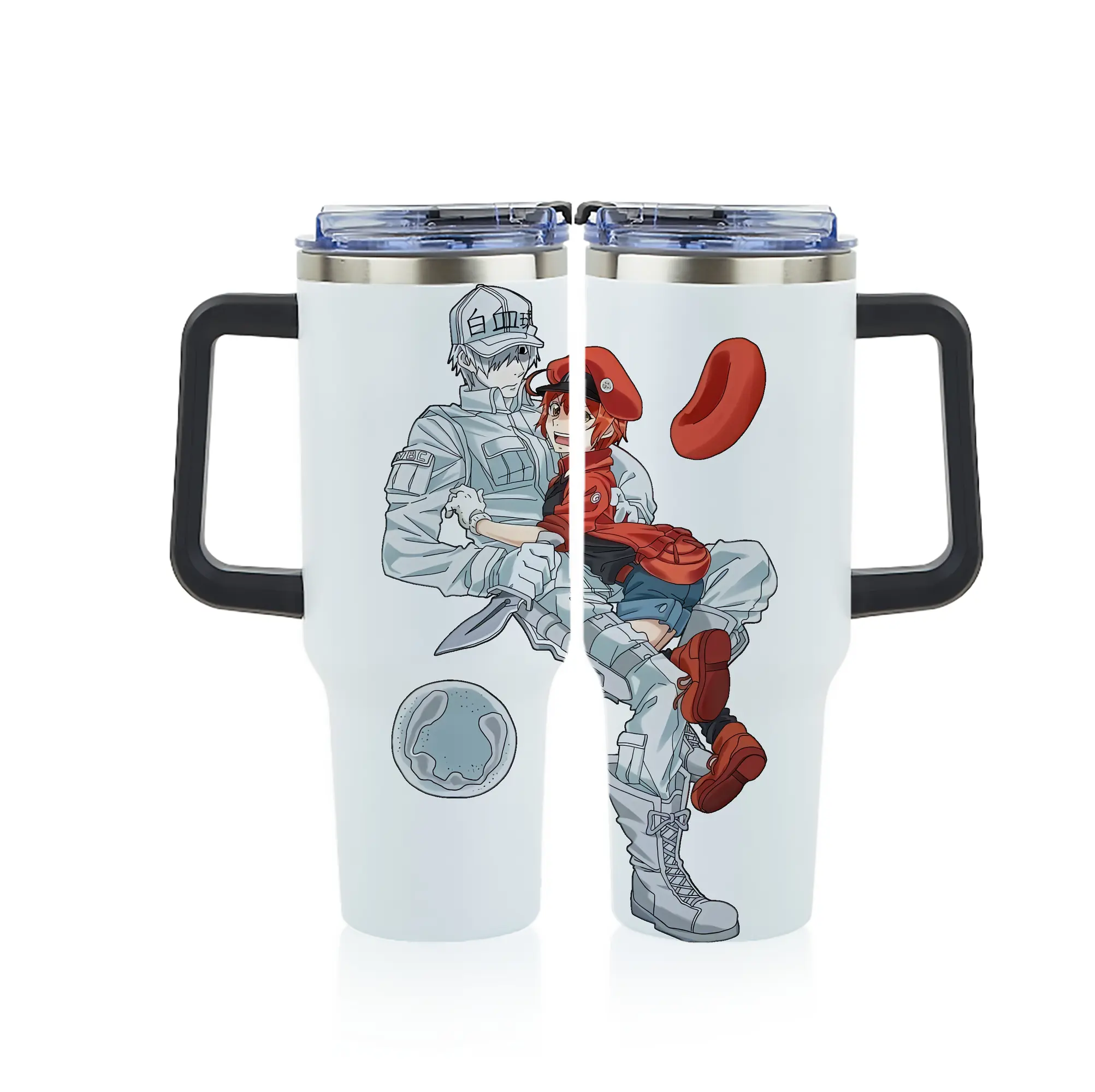 はたらく細胞 グッズ,白血球 - 1200mL フルプリント車用タンブラー ・ 304ステンレス 内側 ・ 201ステンレス 外側 ・ 保温 保冷 ・ 通勤 ドライブ アウトドア用