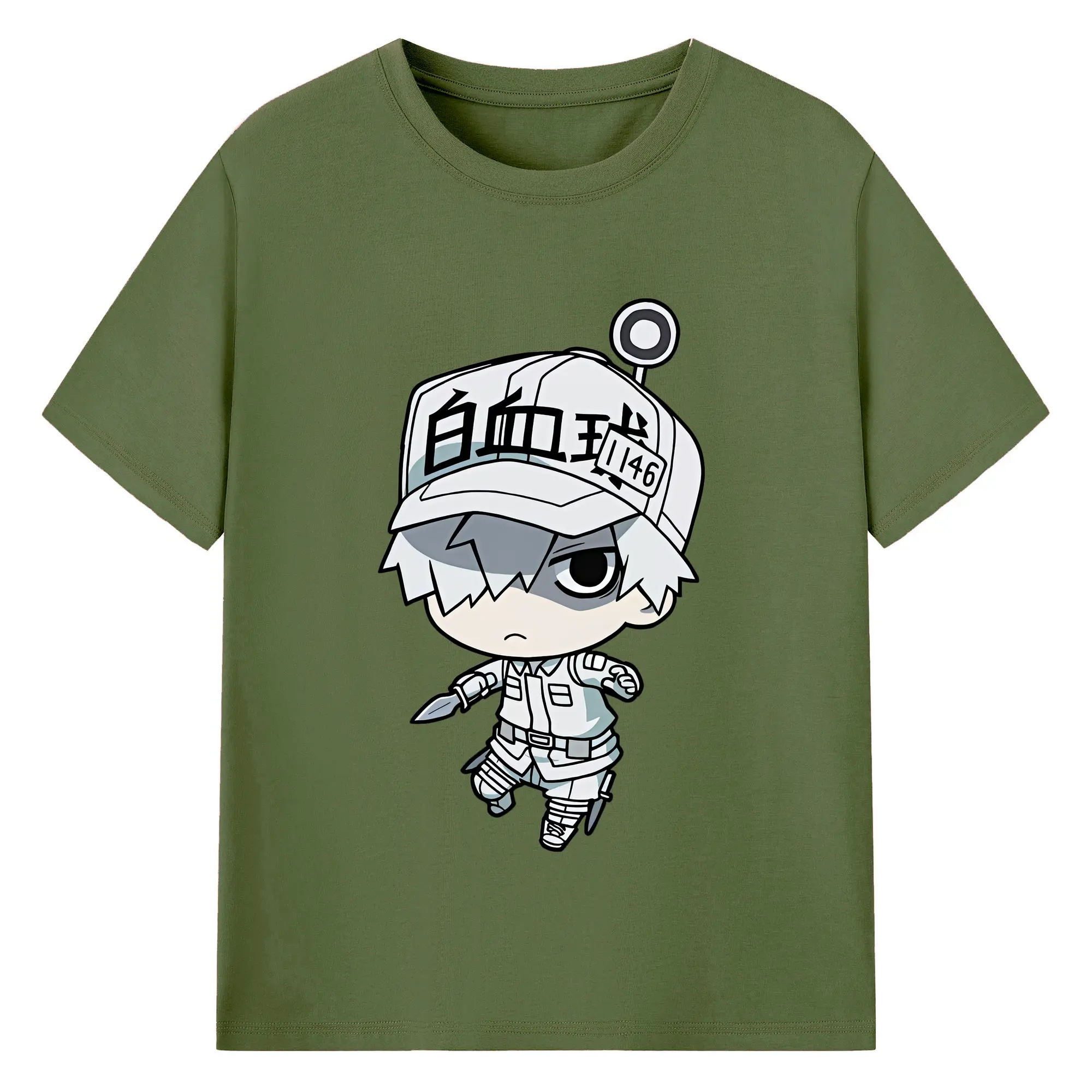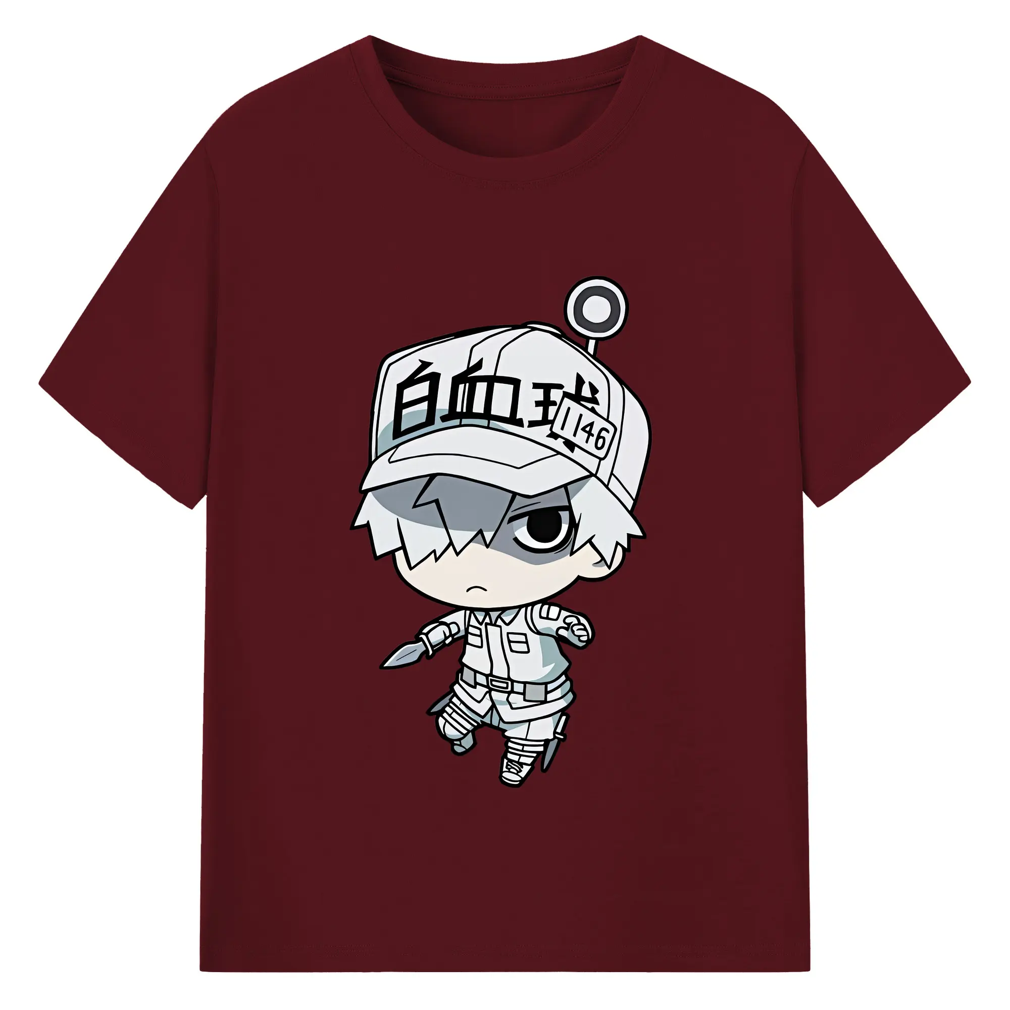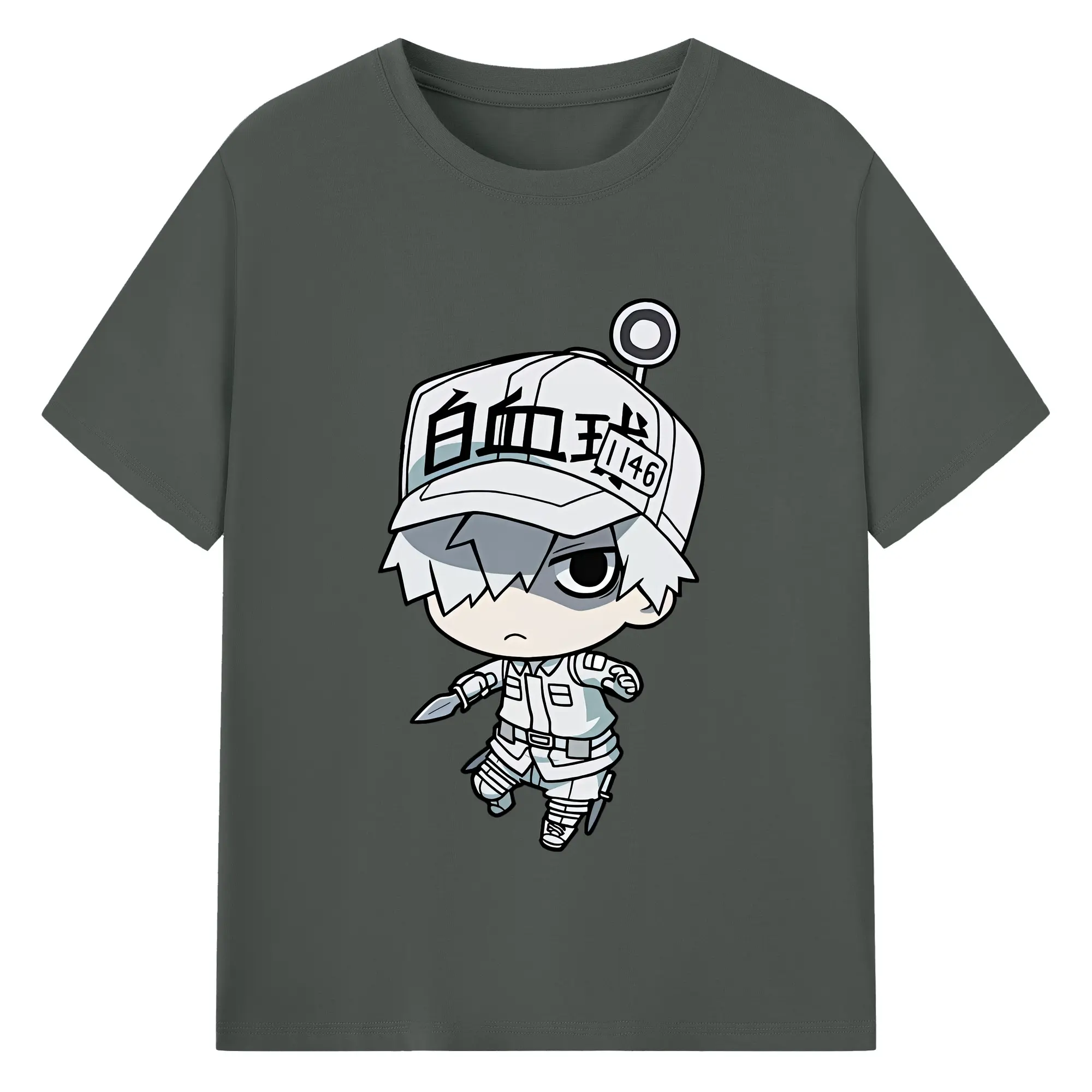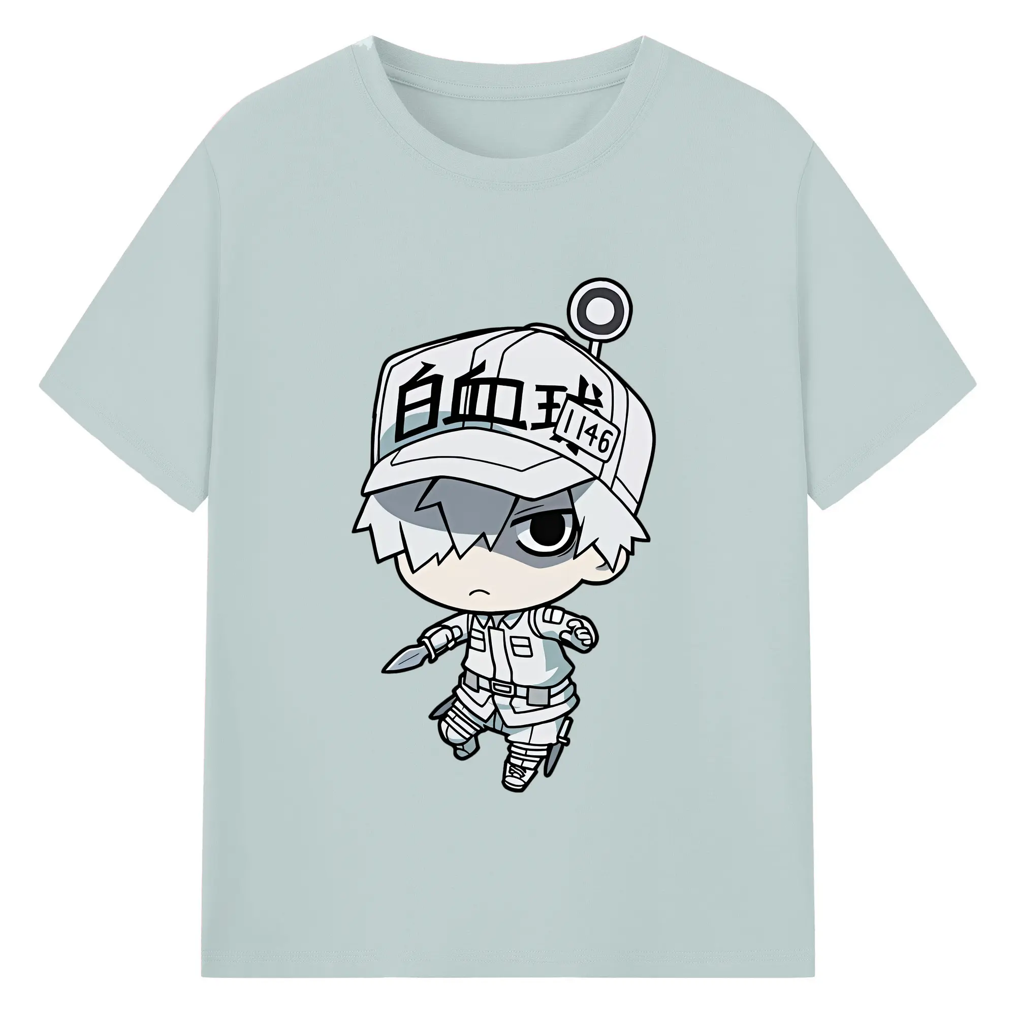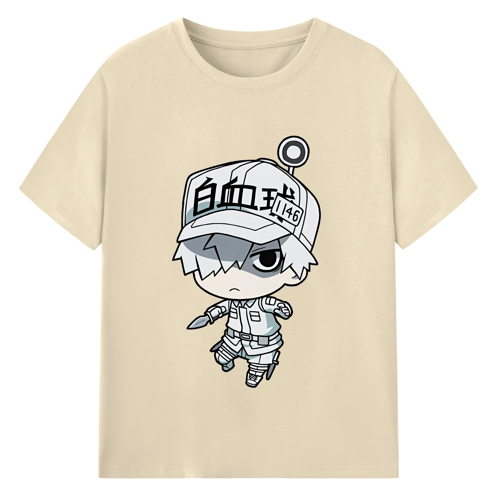 はたらく細胞 グッズ,白血球 - 綿100% ヴィンテージ風 半袖Tシャツ ・ フロントプリント ・ 柔らか肌触り ・ 通気性 快適 ・ スポーツ カジュアル 外出用