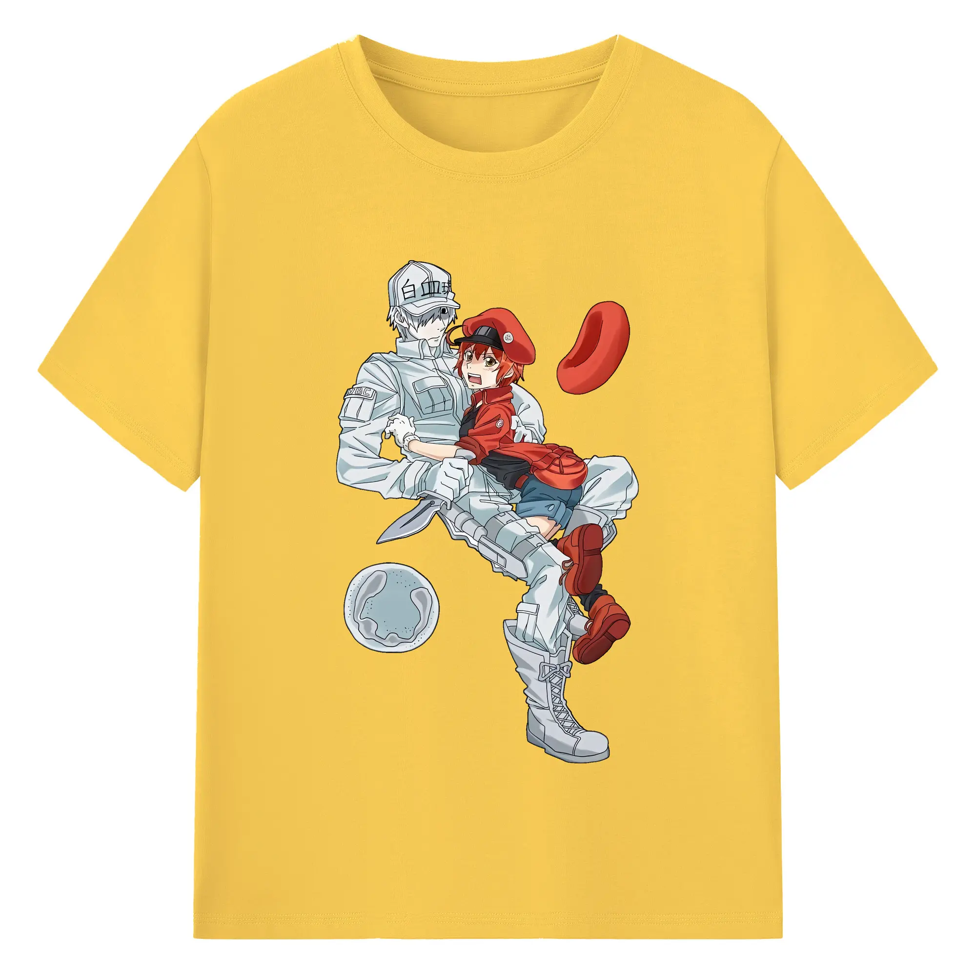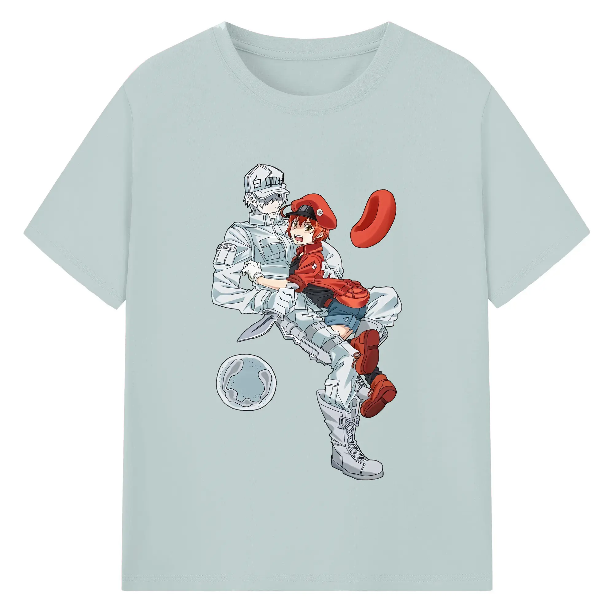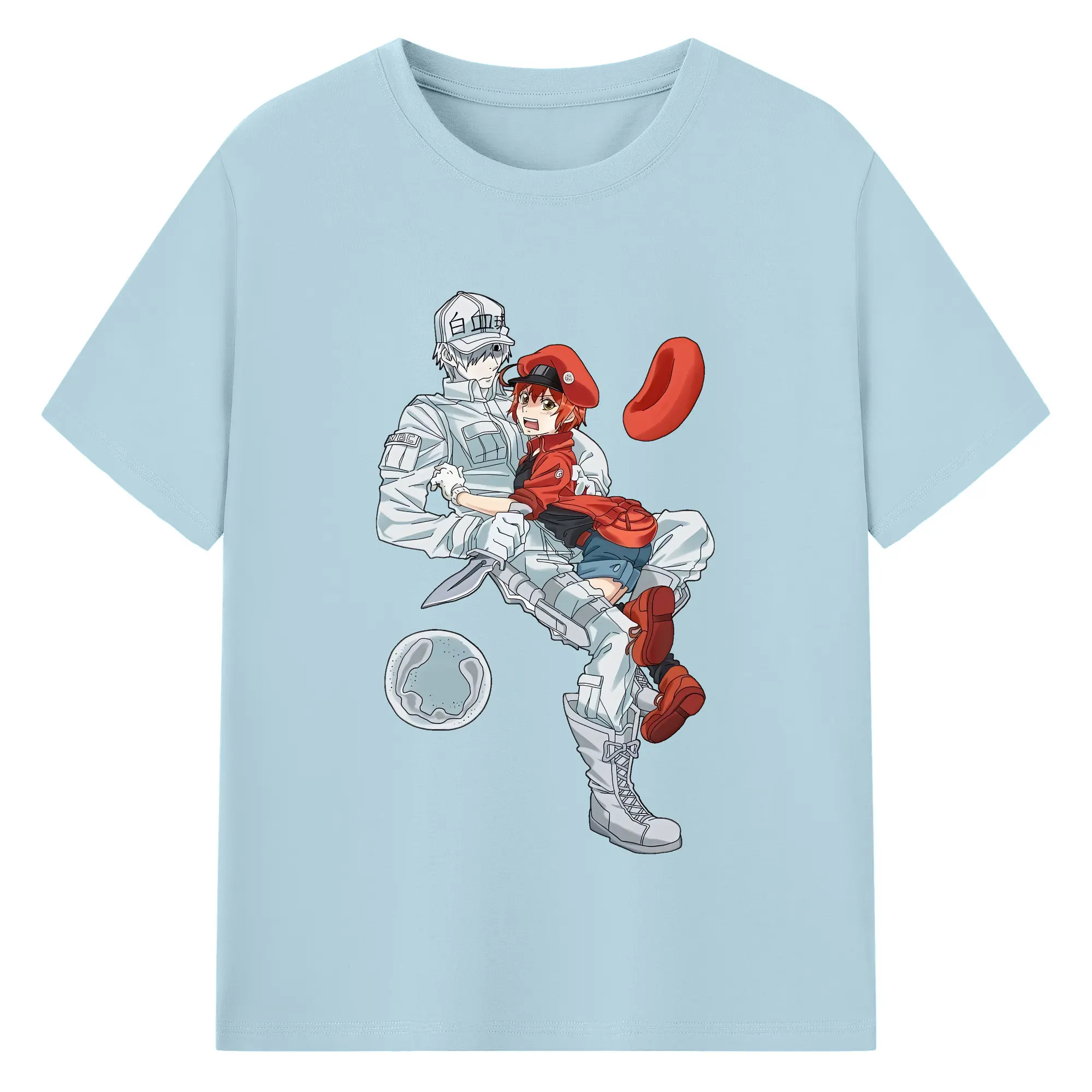 はたらく細胞 グッズ,白血球 - 綿100% 半袖Tシャツ ・ バックプリント ・ 快適 通気性 ・ 日常使い 散歩 スポーツ用