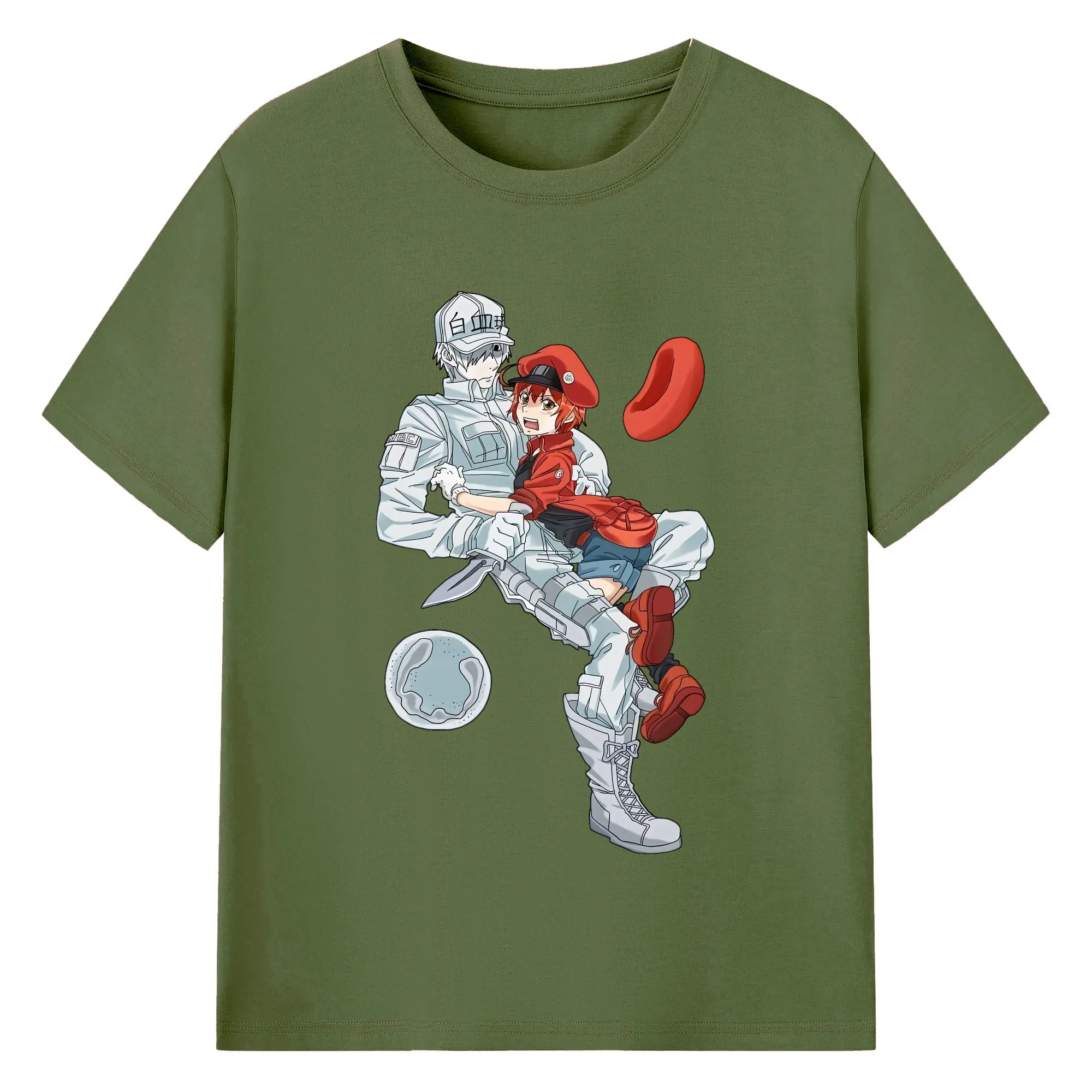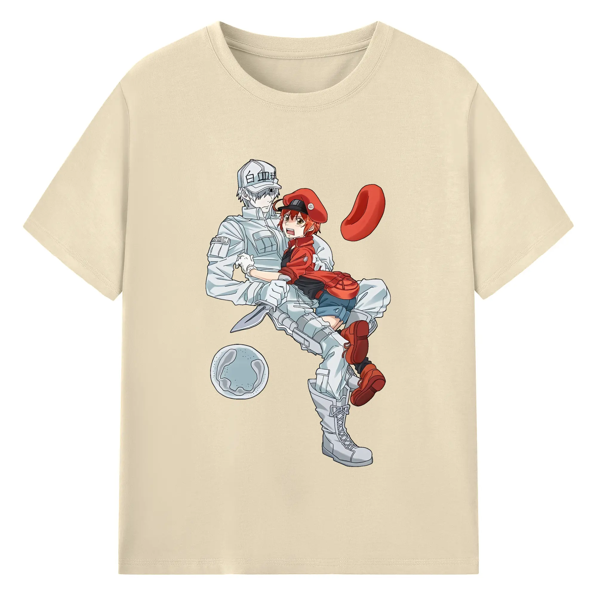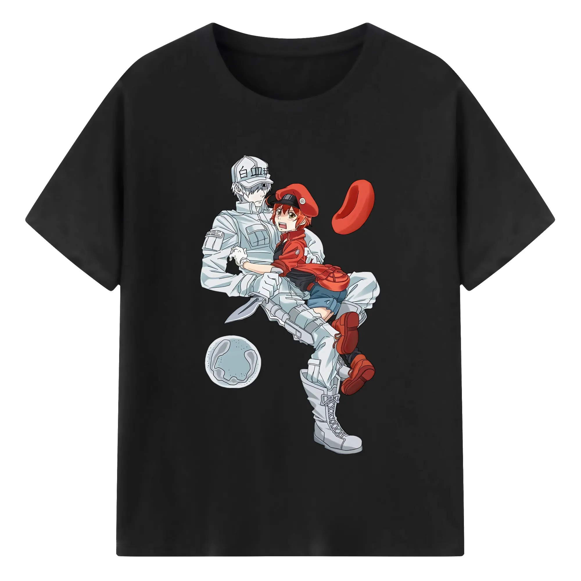 はたらく細胞 グッズ,白血球 - 綿100% 半袖Tシャツ ・ バックプリント ・ 快適 通気性 ・ 日常使い 散歩 スポーツ用