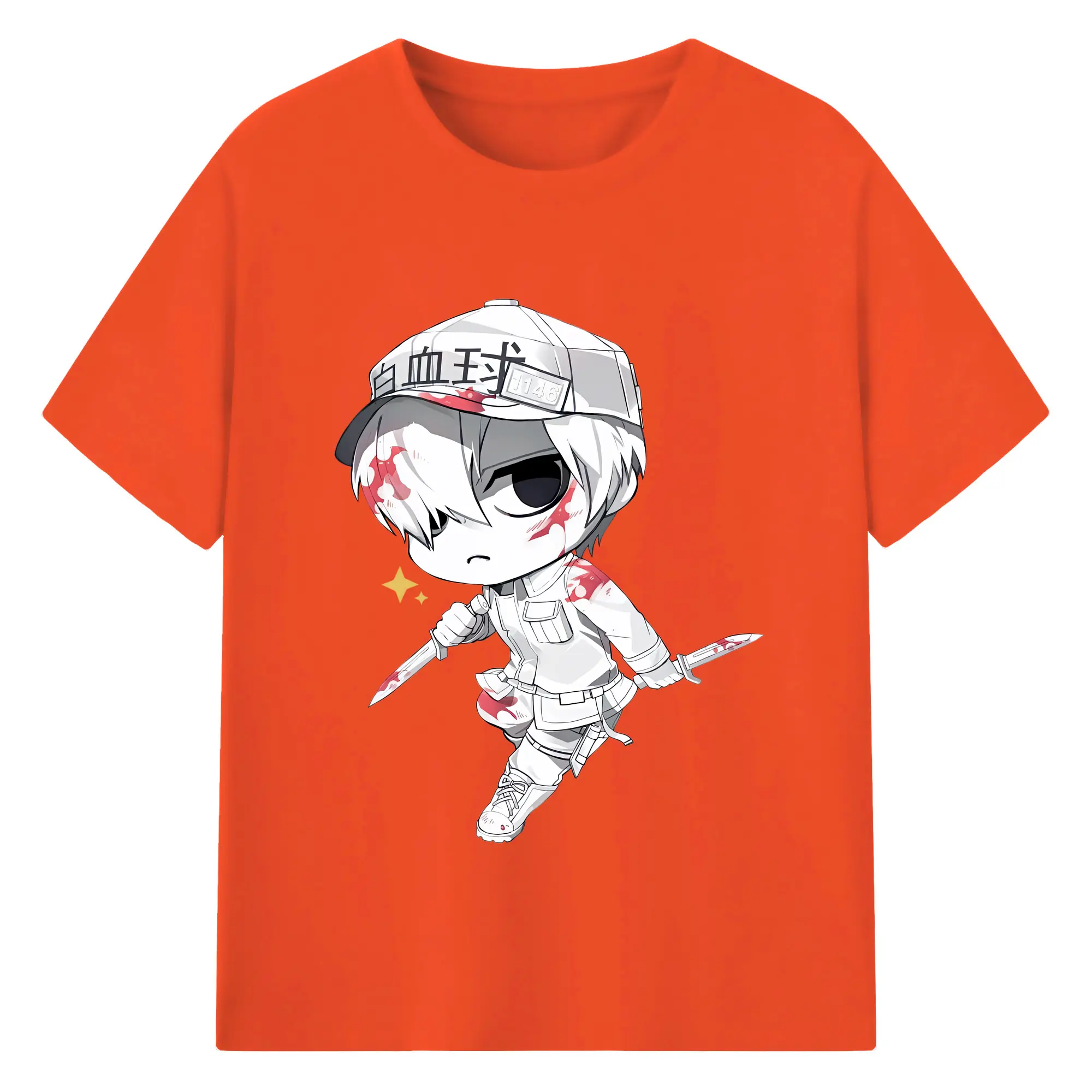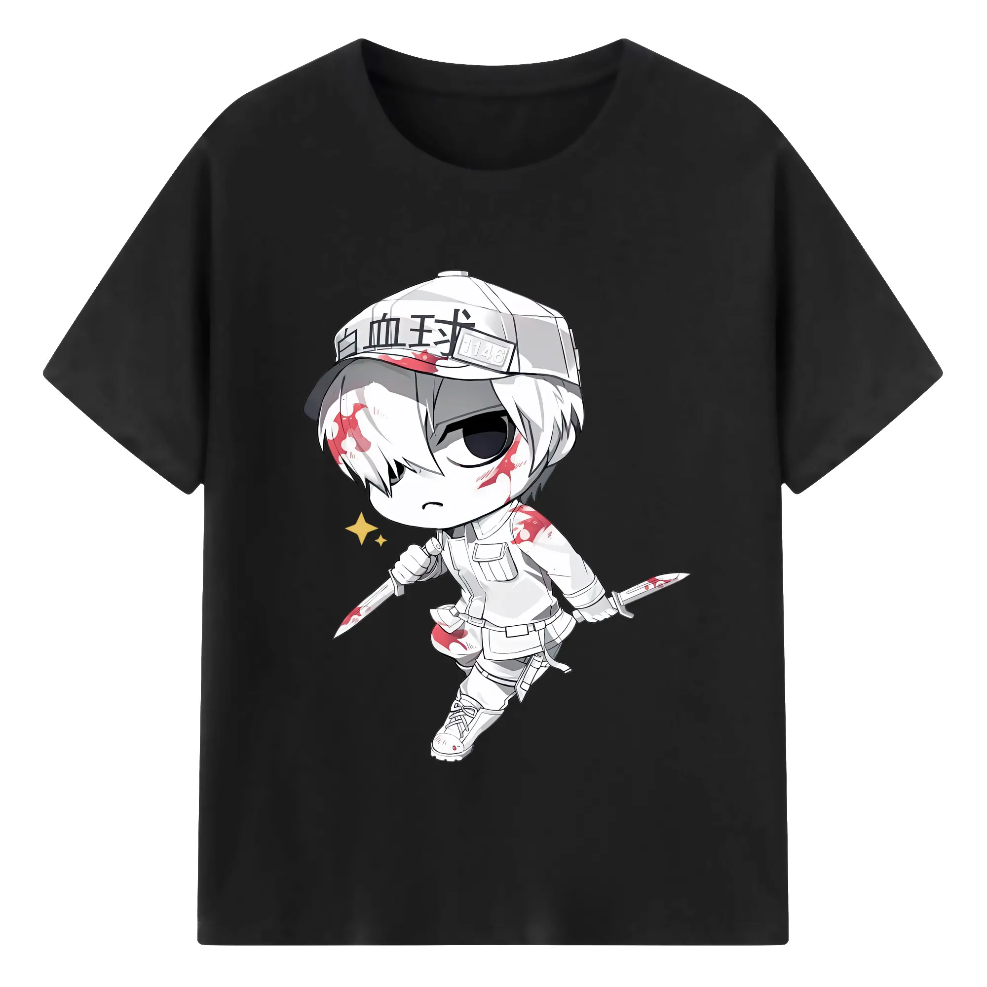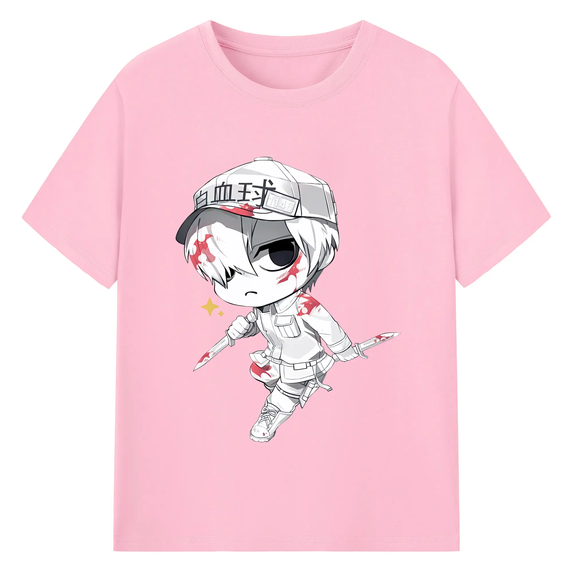 はたらく細胞 グッズ,白血球 - 綿100% 半袖Tシャツ ・ バックプリント ・ 快適 通気性 ・ 日常使い 散歩 スポーツ用