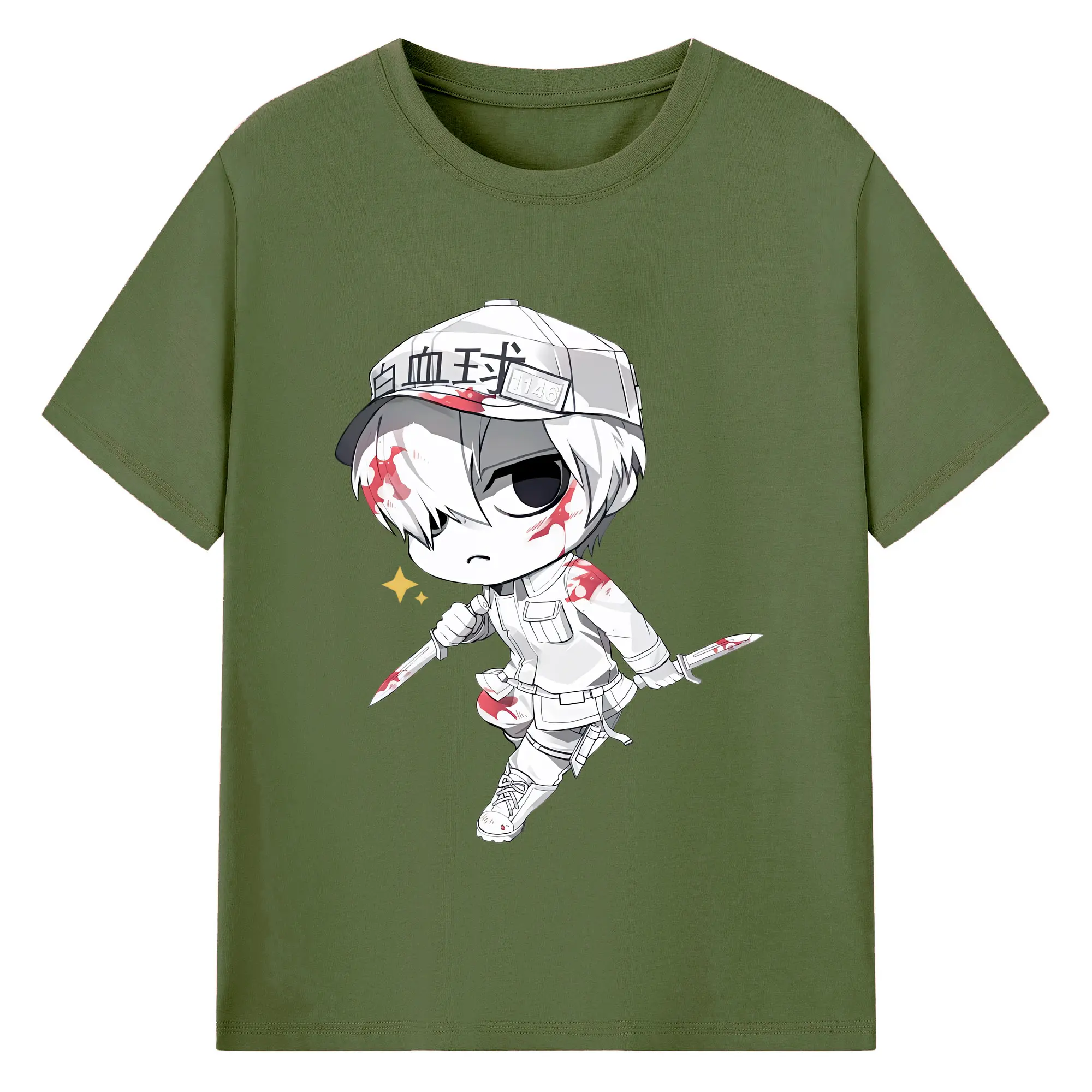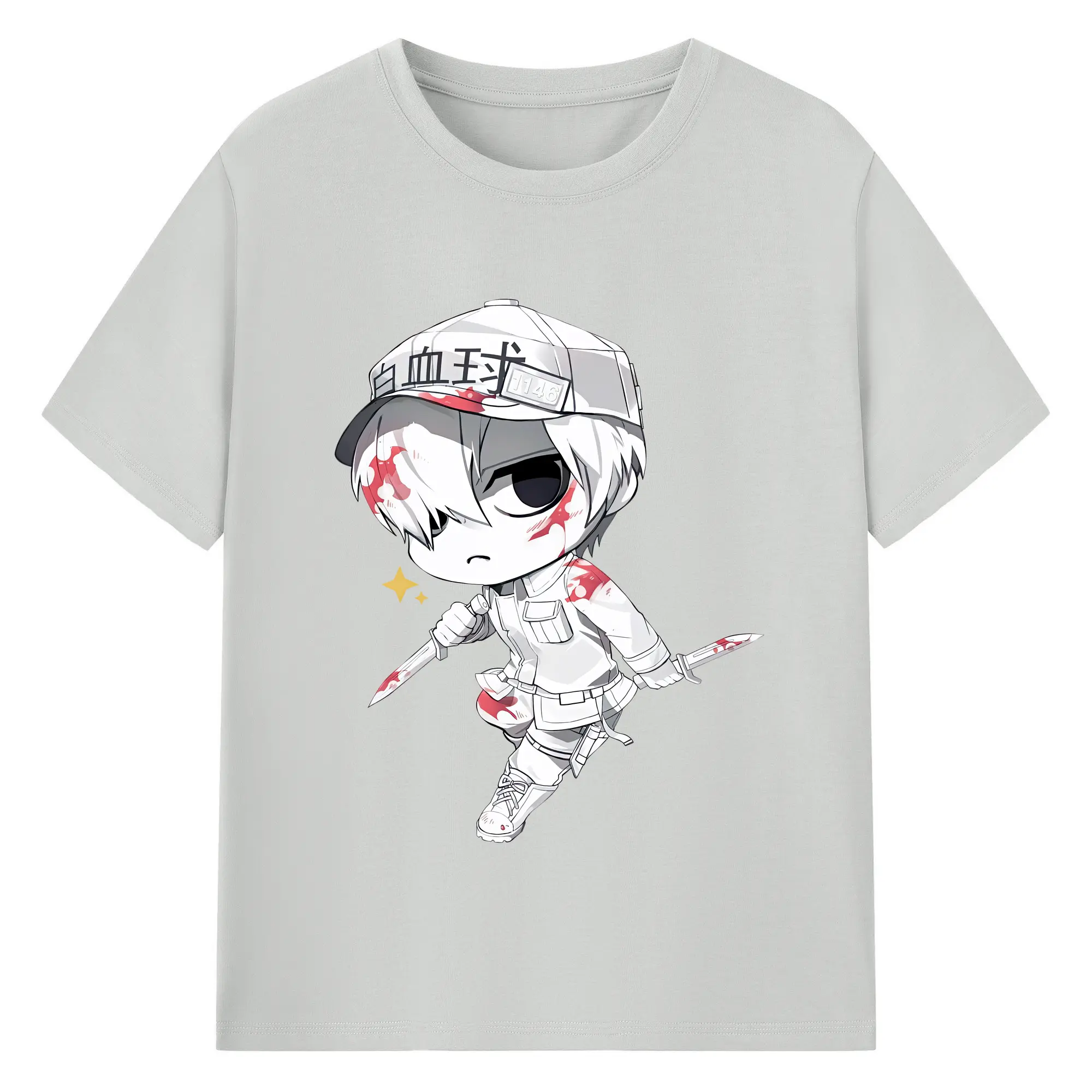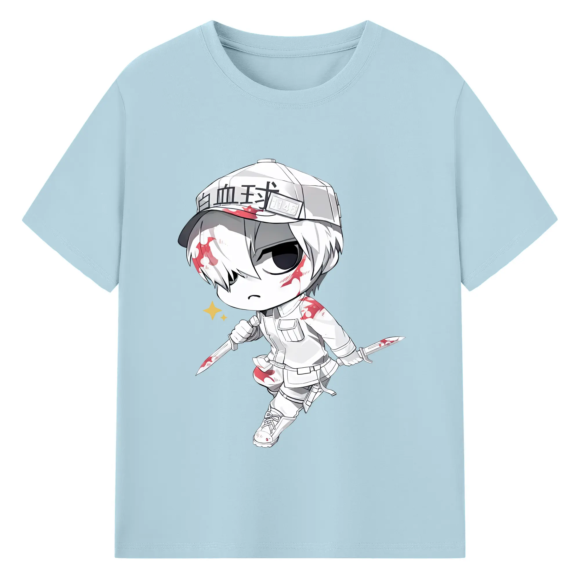 はたらく細胞 グッズ,白血球 - 綿100% 半袖Tシャツ ・ バックプリント ・ 快適 通気性 ・ 日常使い 散歩 スポーツ用