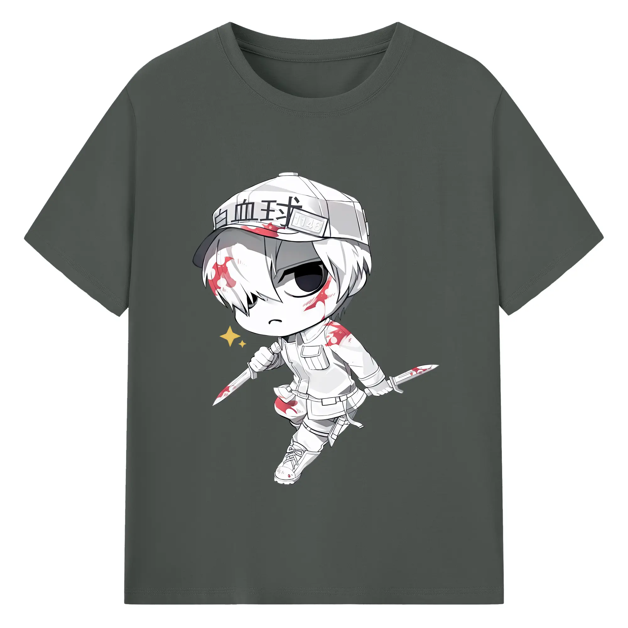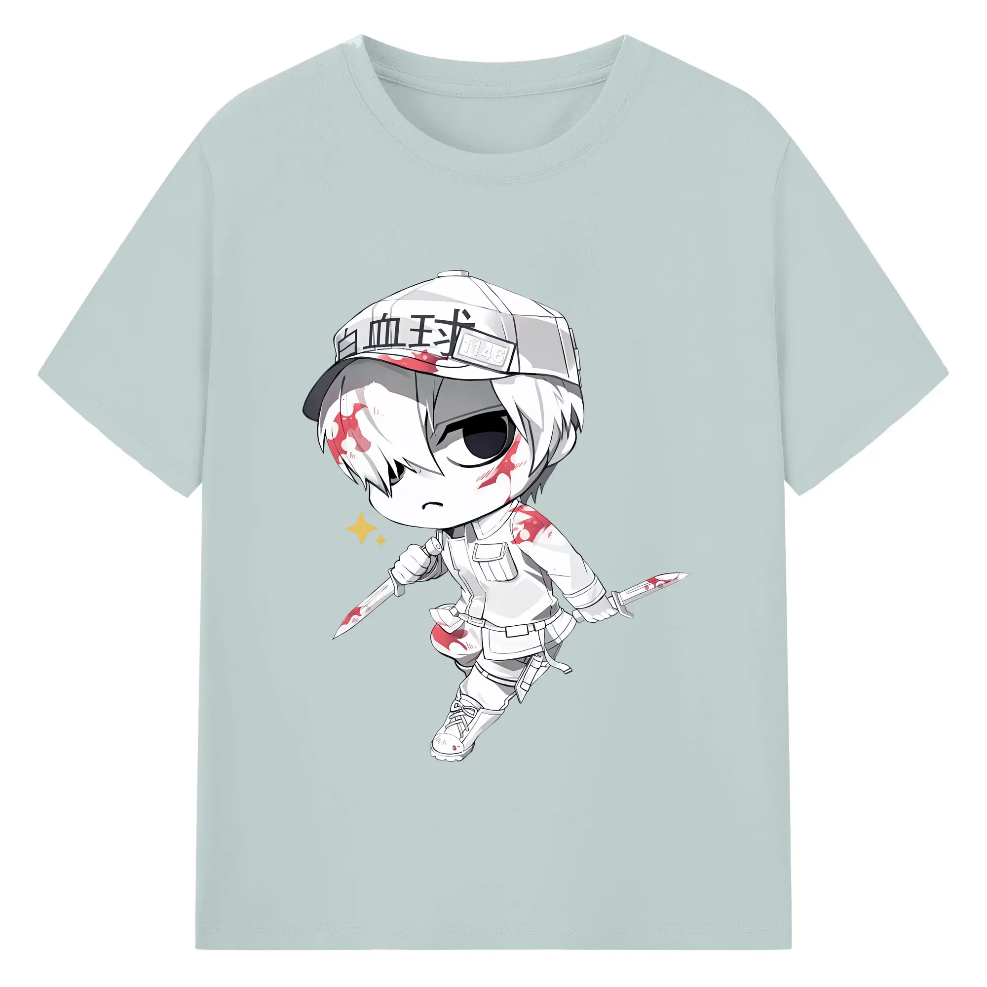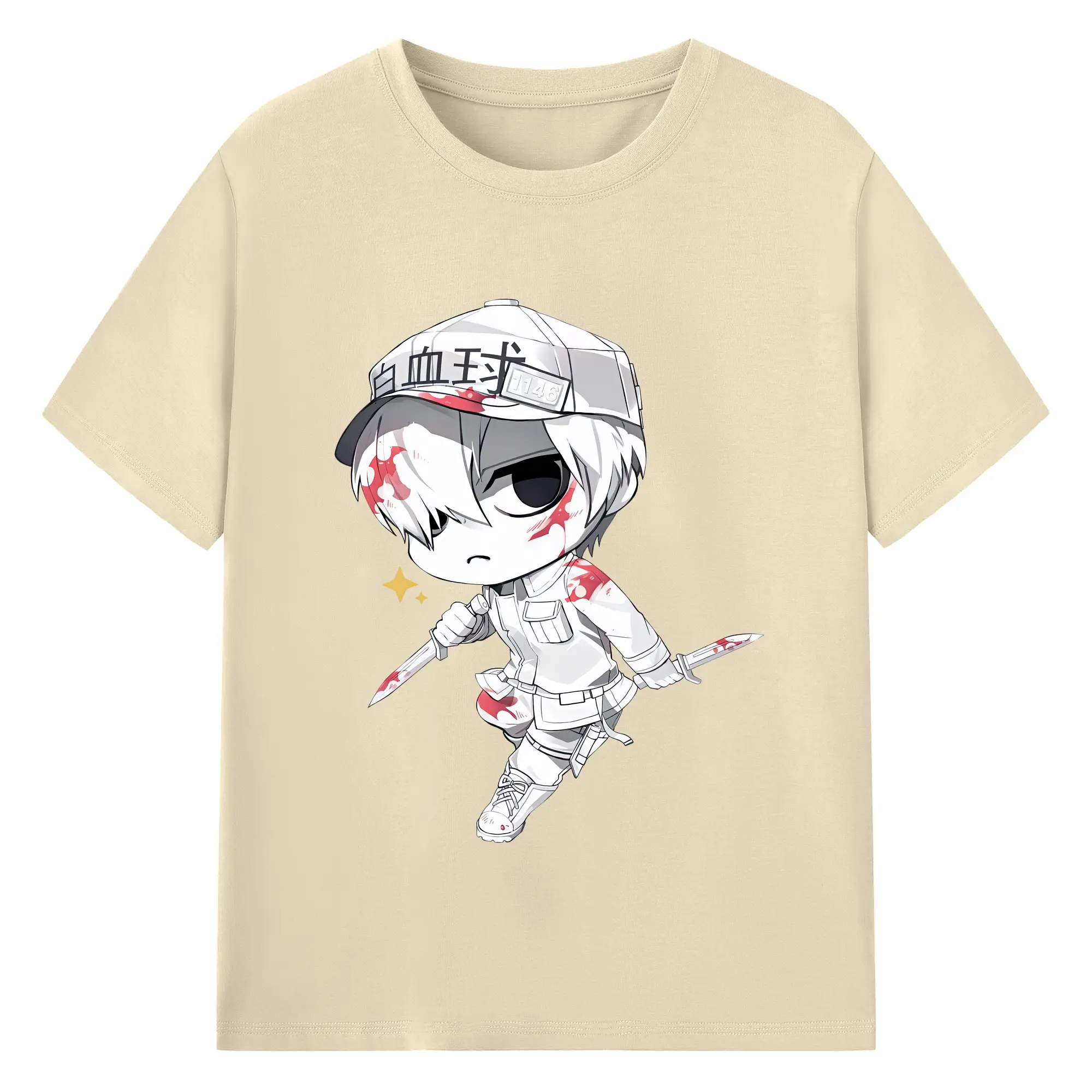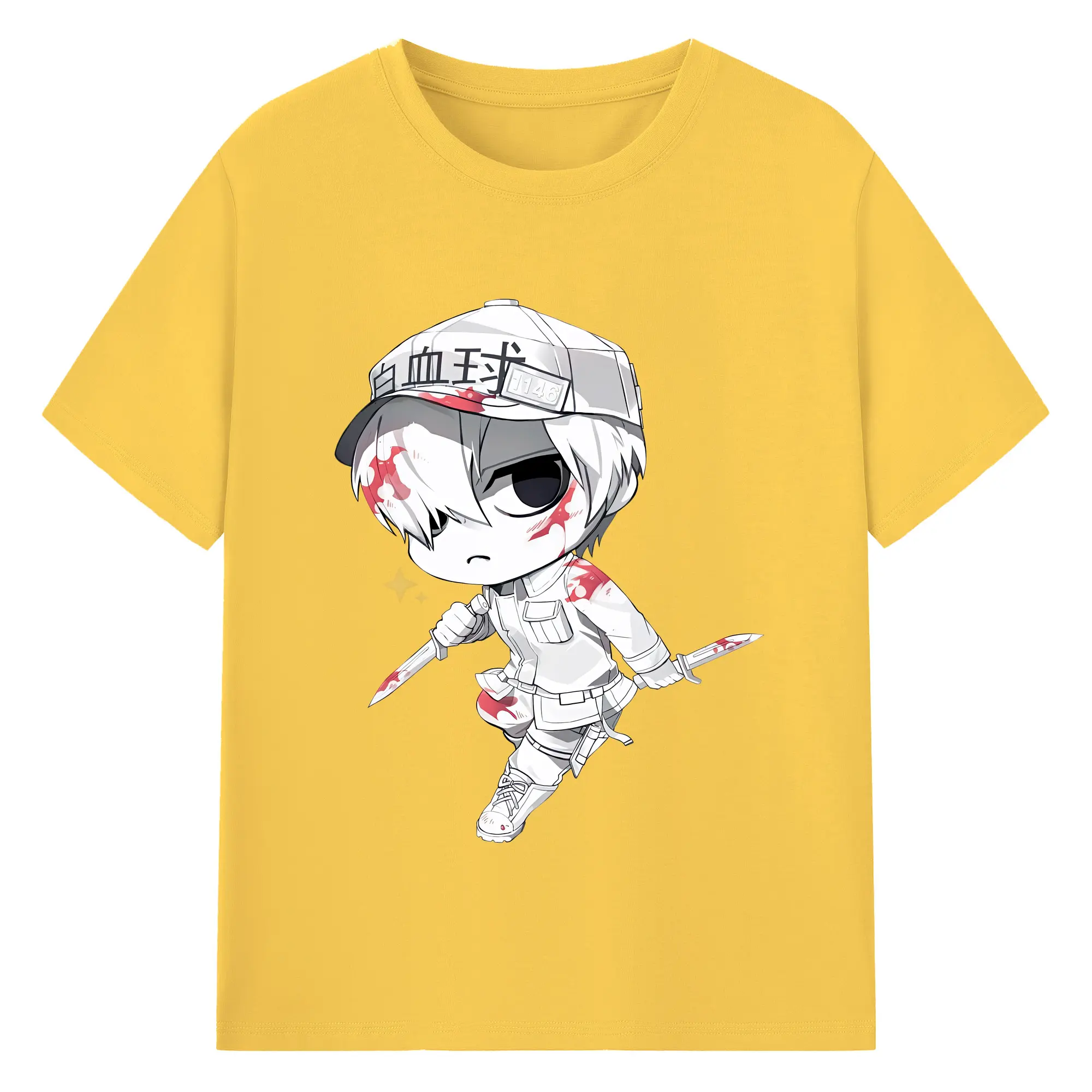 はたらく細胞 グッズ,白血球 - 綿100% ヴィンテージ風 半袖Tシャツ ・ フロントプリント ・ 柔らか肌触り ・ 通気性 快適 ・ スポーツ カジュアル 外出用