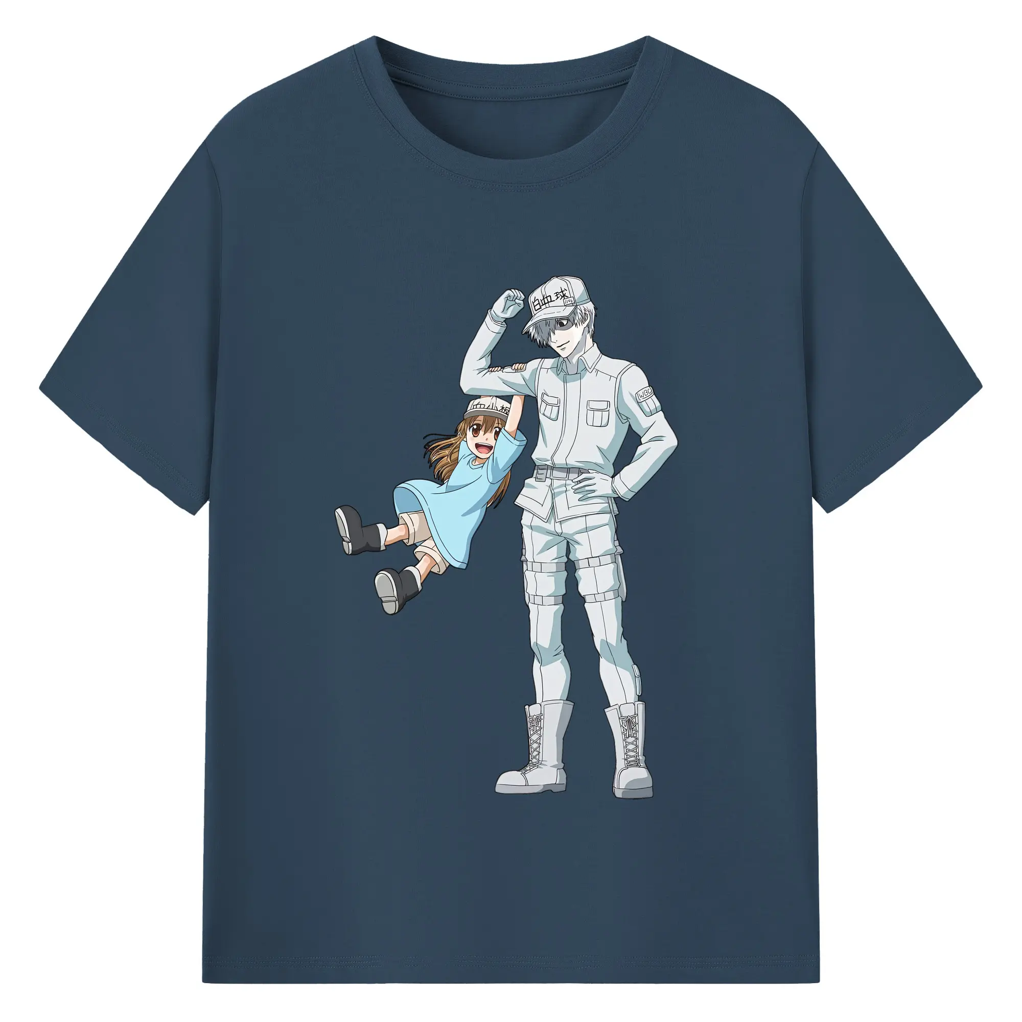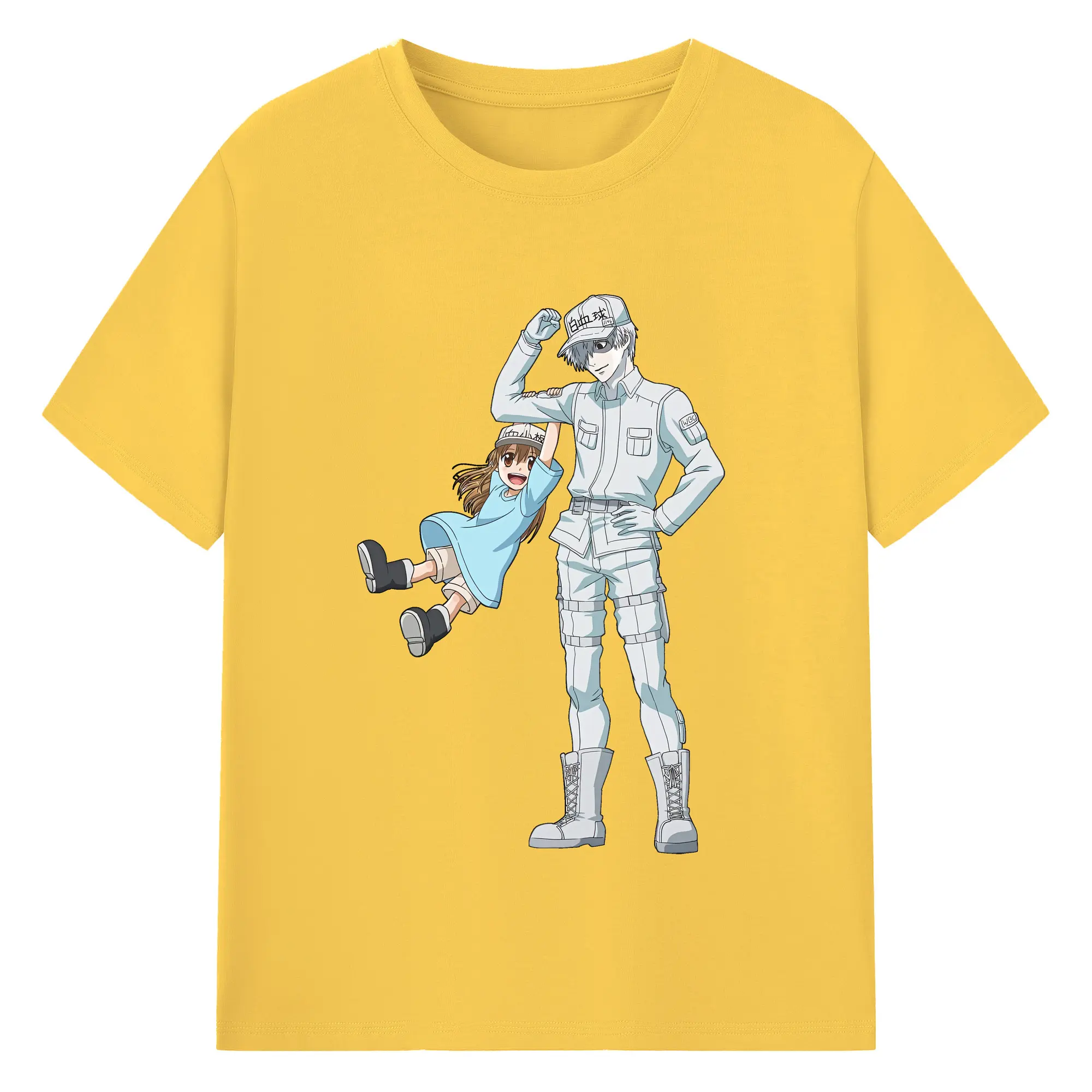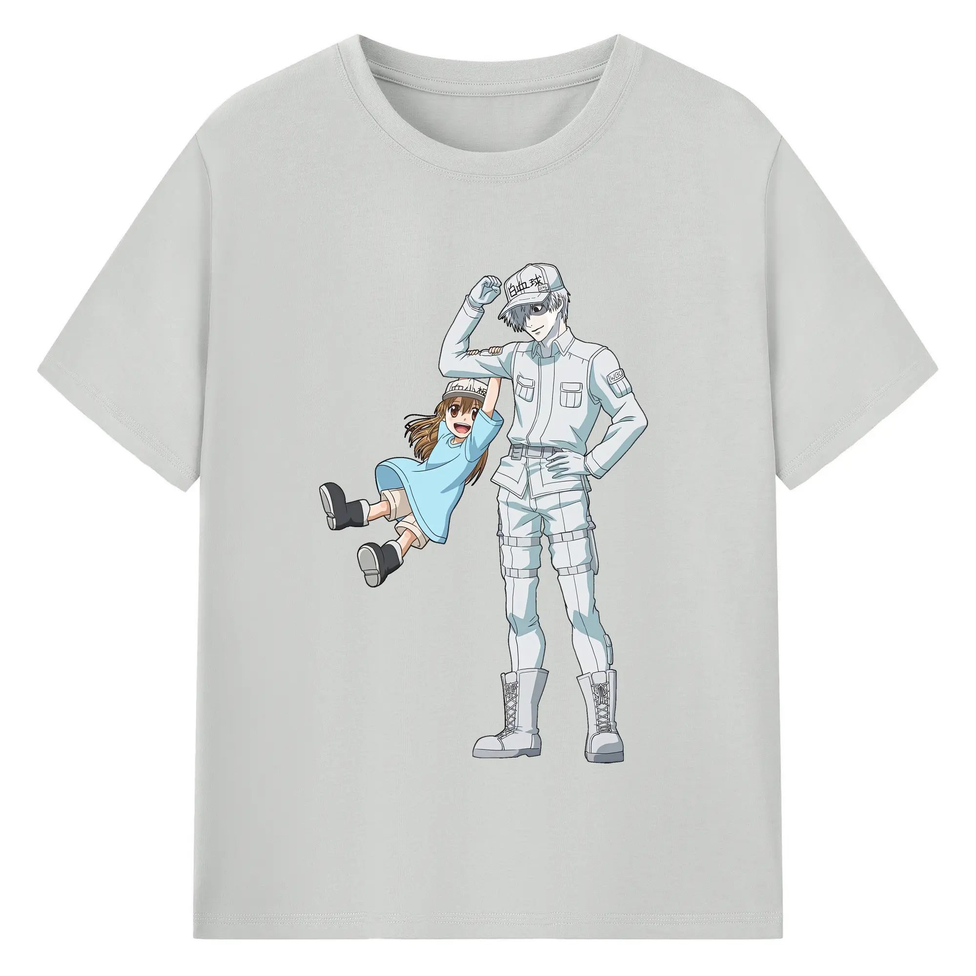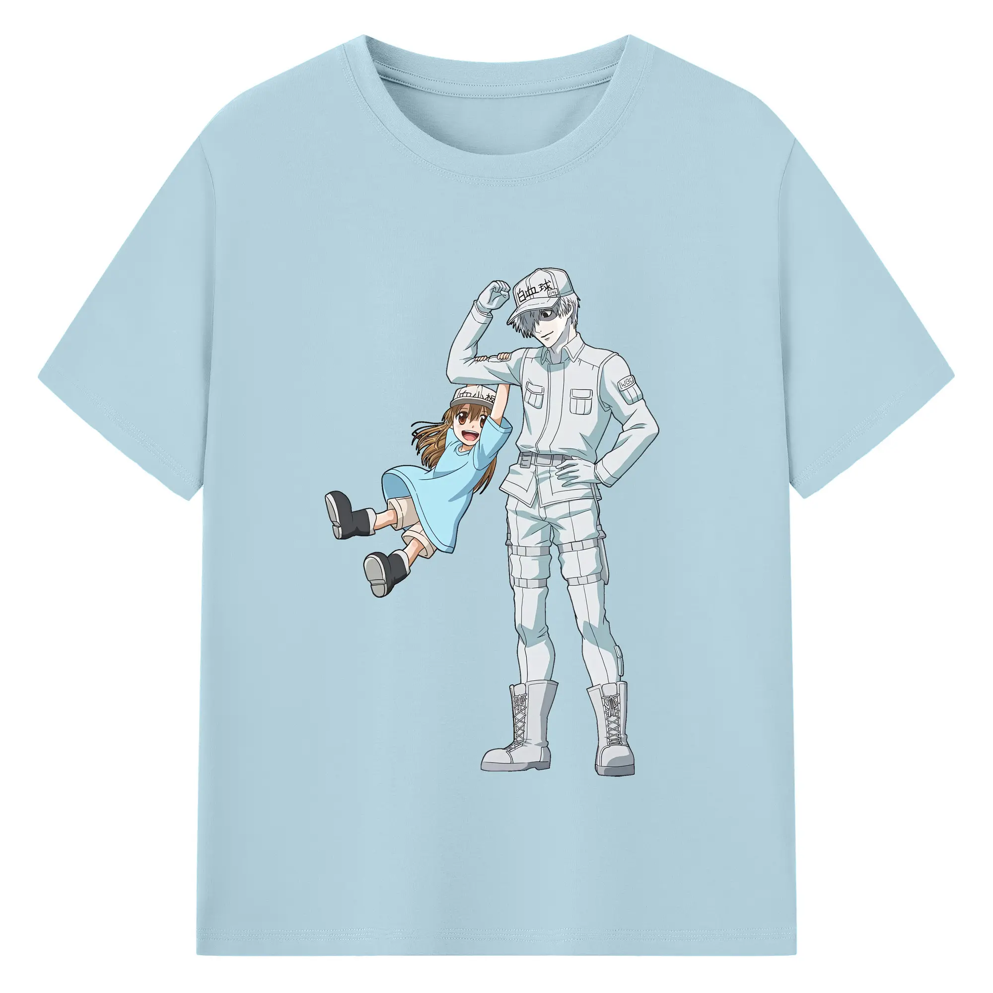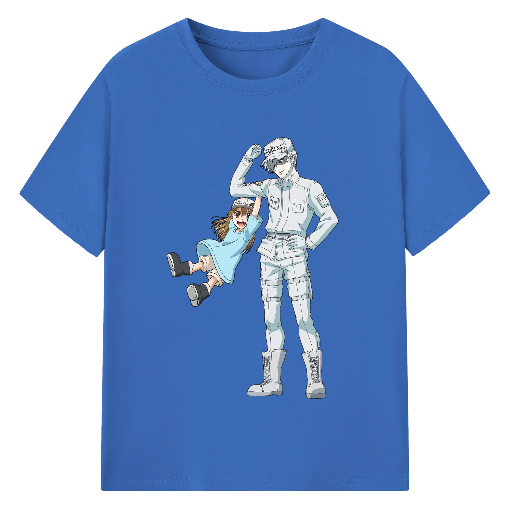 はたらく細胞 グッズ,白血球 - 綿100% 半袖Tシャツ ・ フロントプリント ・ 快適 通気性 ・ 日常使い 散歩 スポーツ用