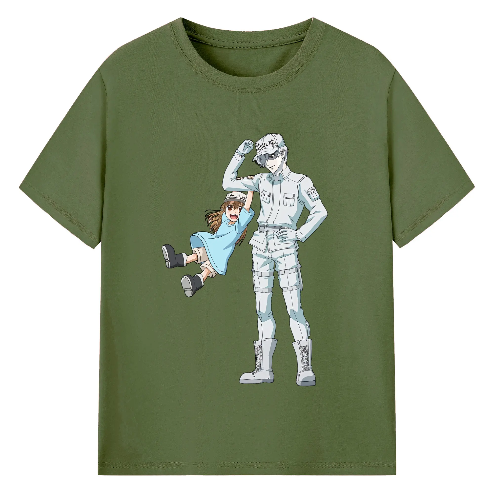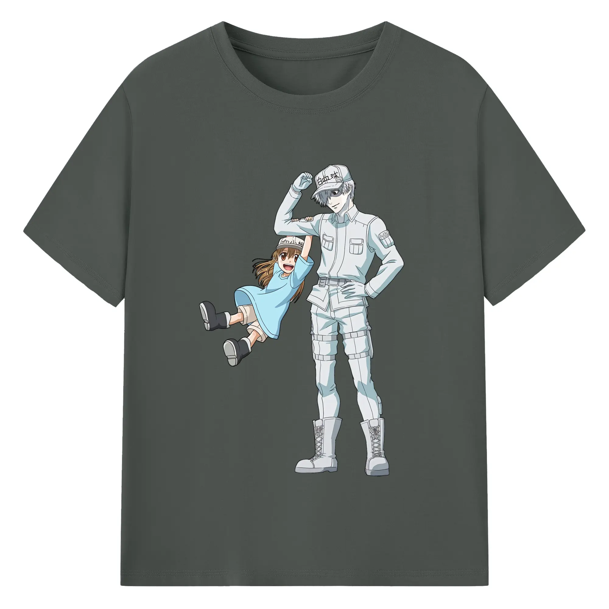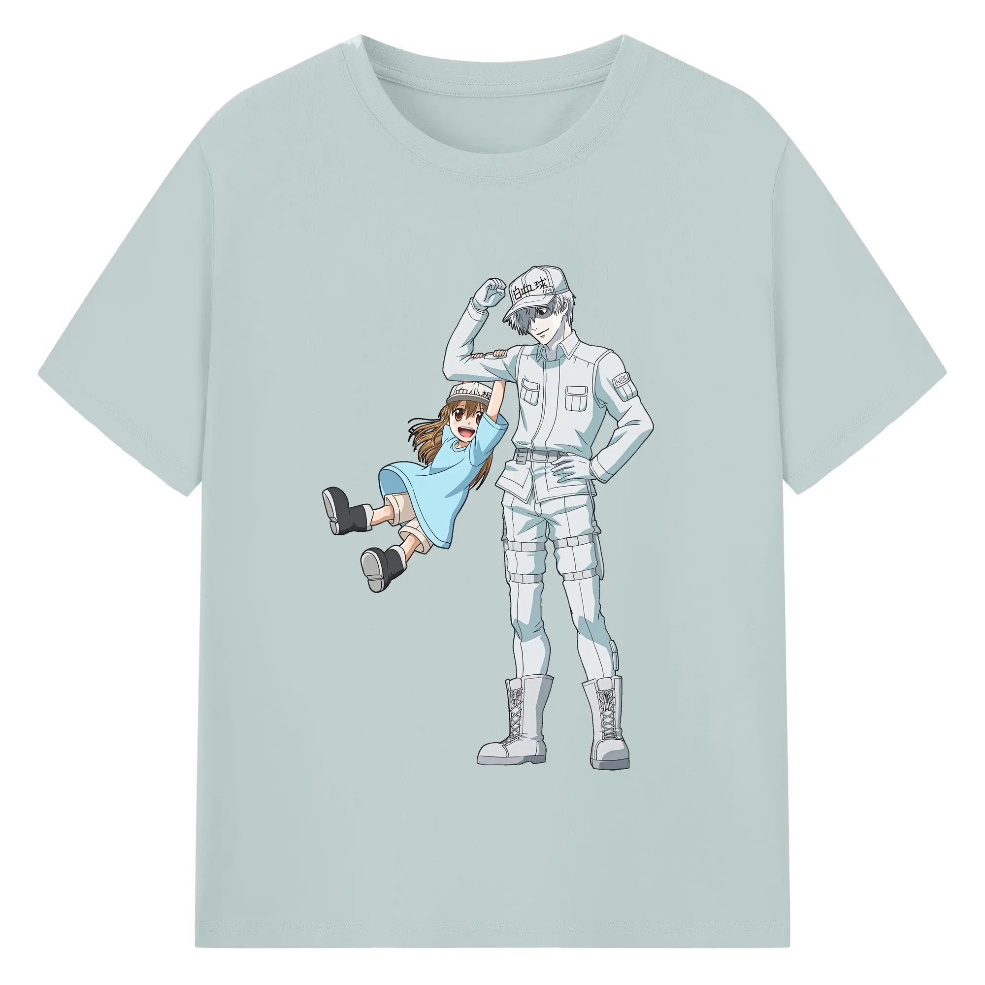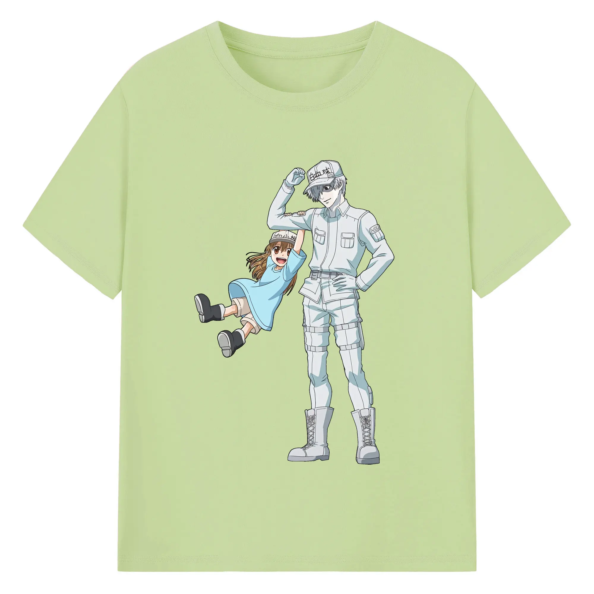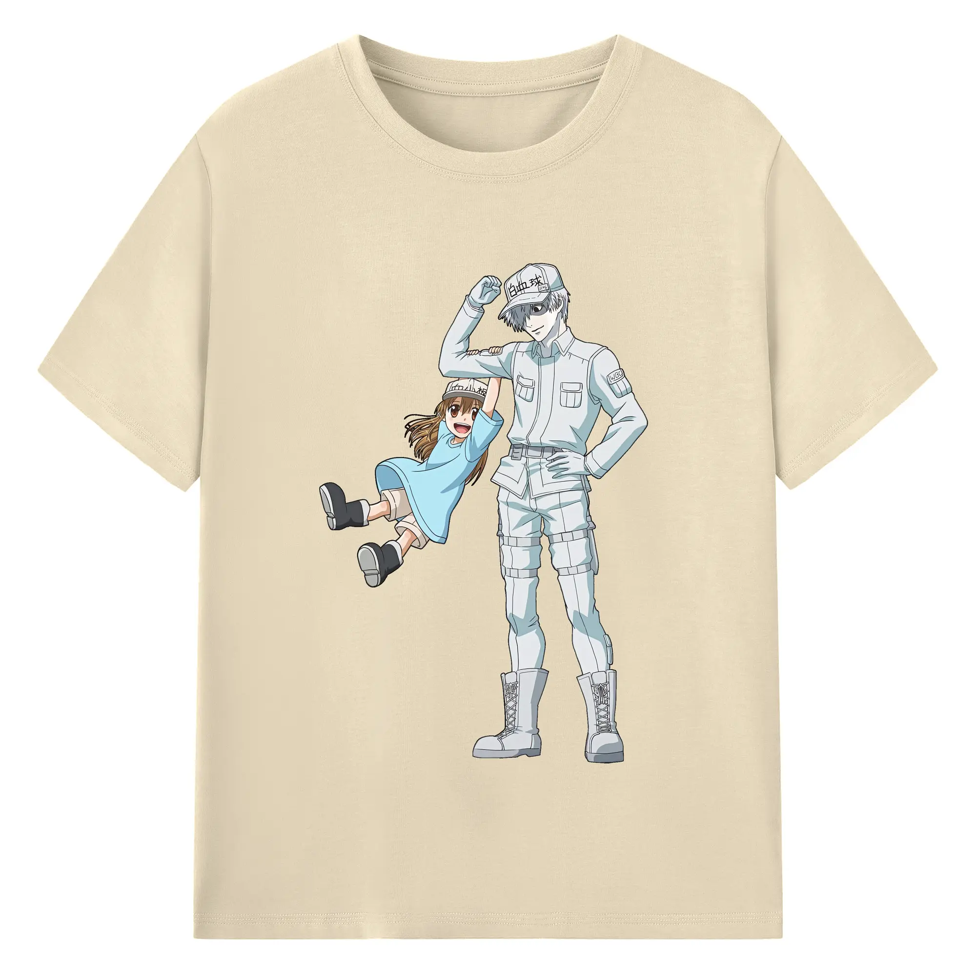 はたらく細胞 グッズ,白血球 - 綿100% 半袖Tシャツ ・ フロントプリント ・ 快適 通気性 ・ 日常使い 散歩 スポーツ用