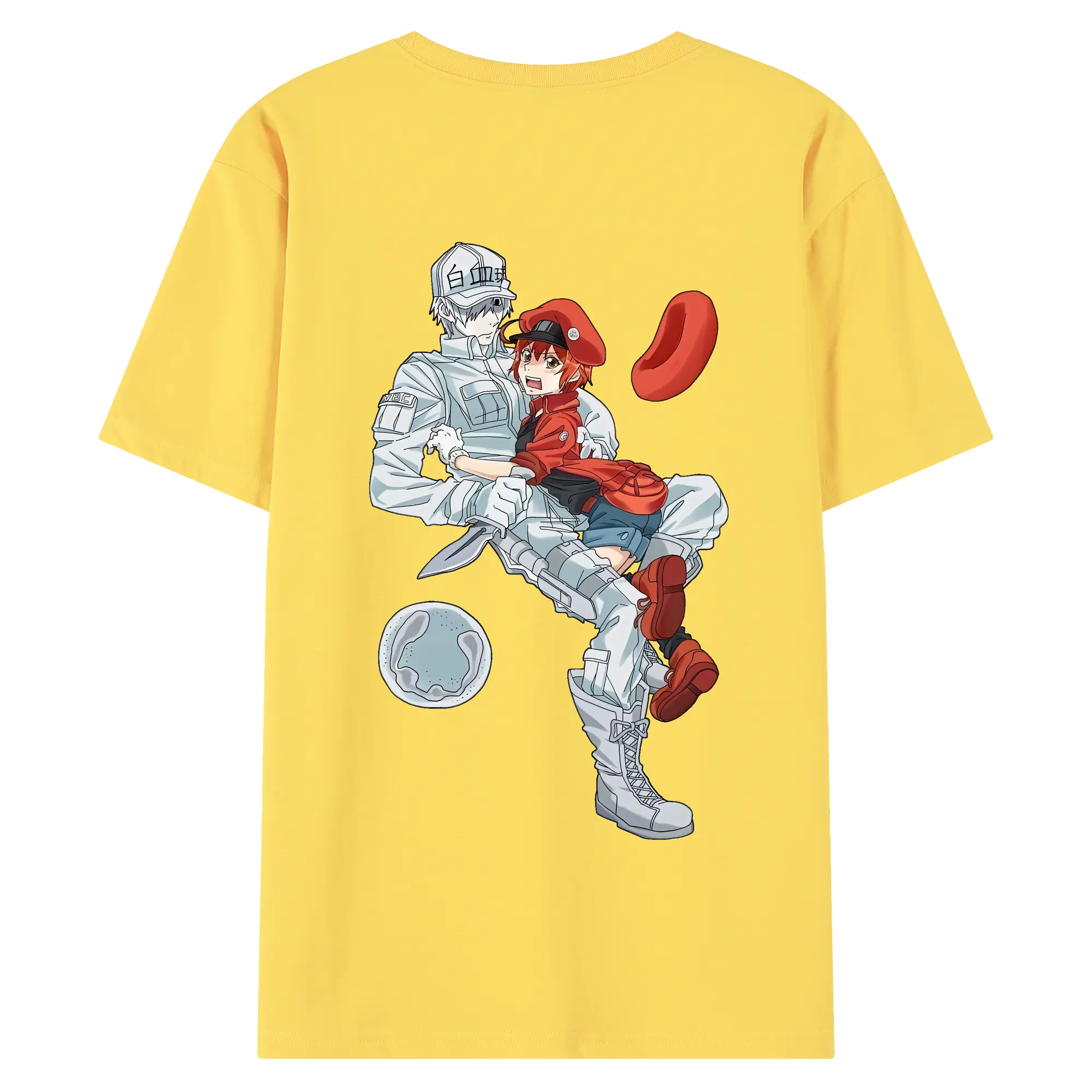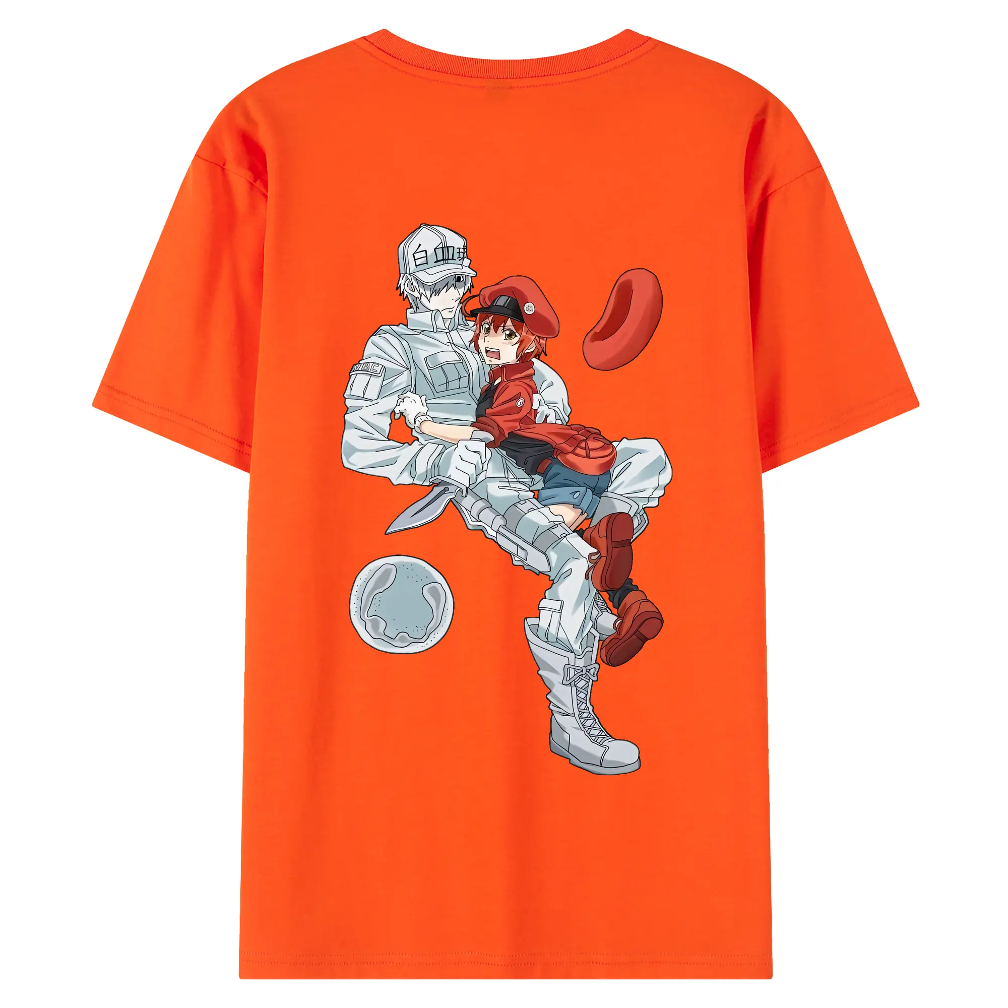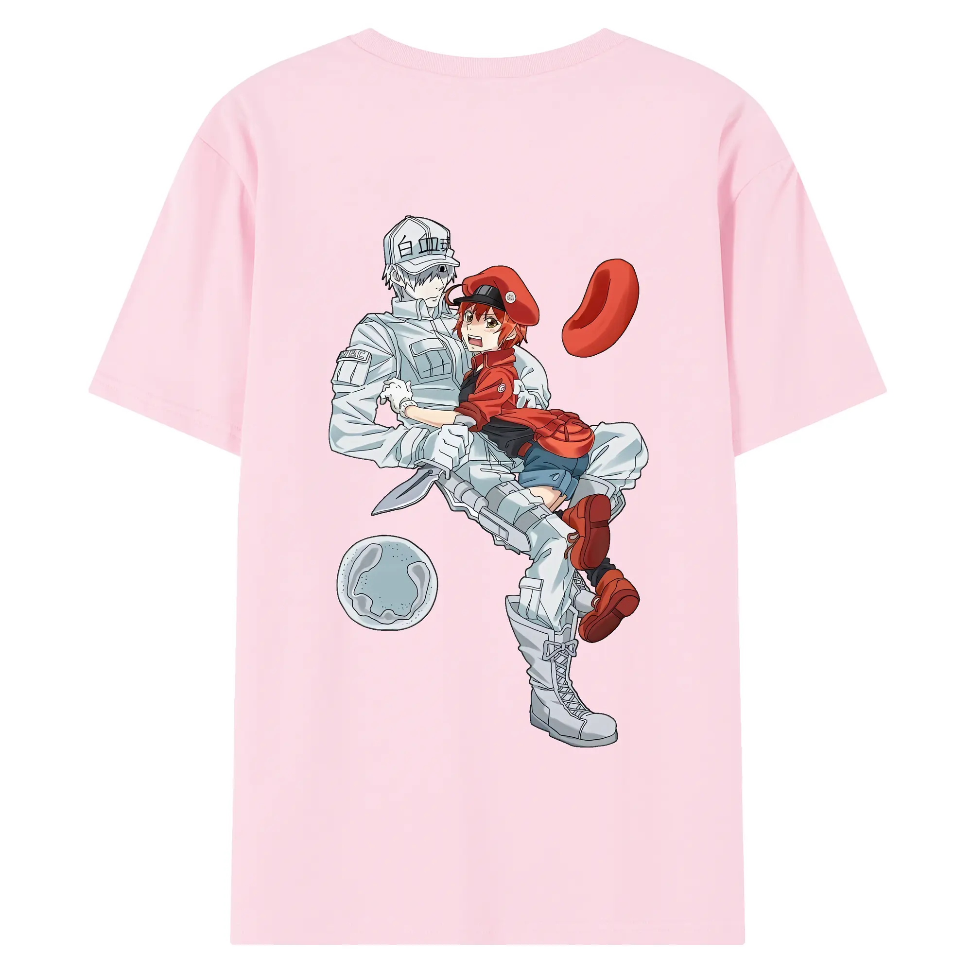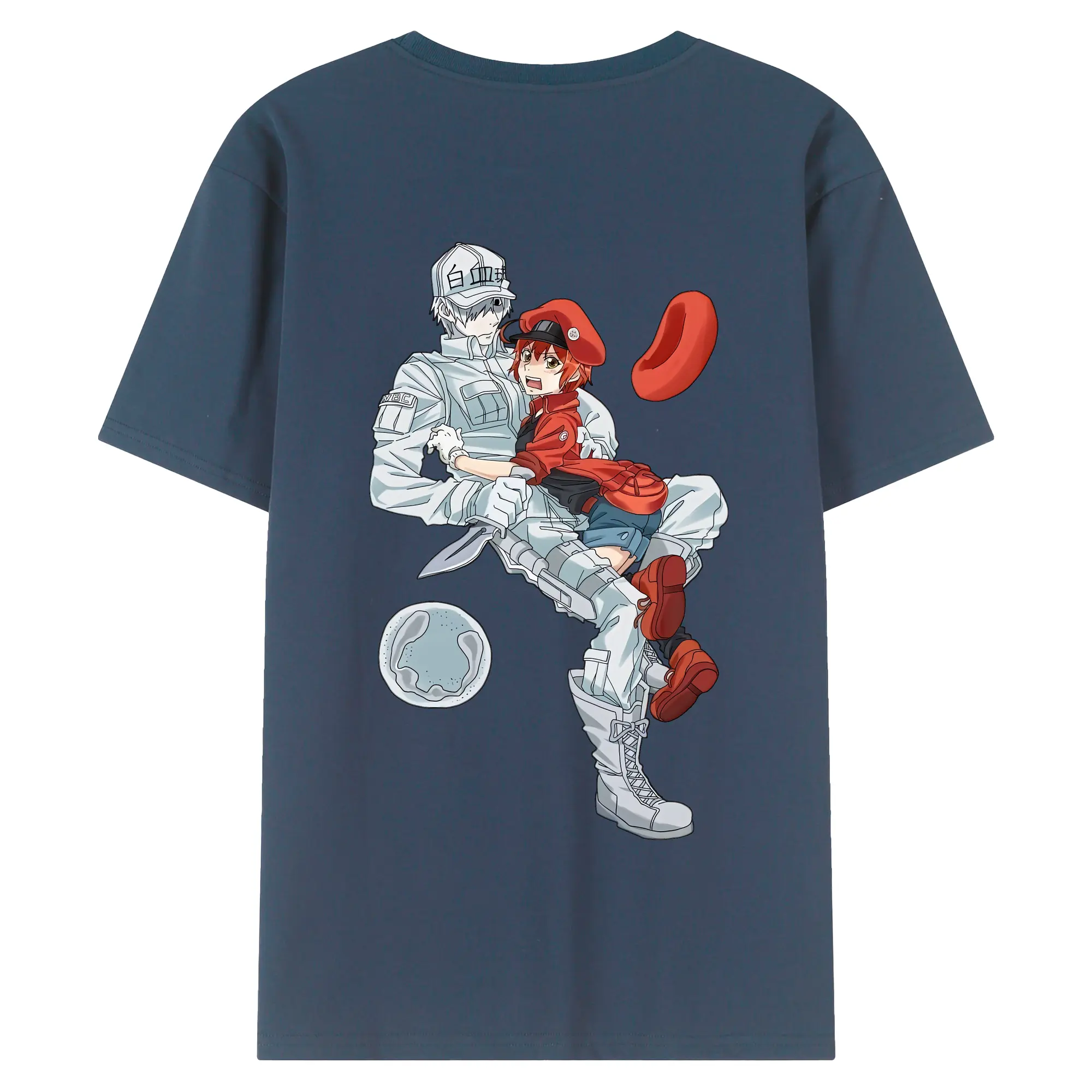 はたらく細胞 グッズ,白血球 - 綿100% ヴィンテージ風 半袖Tシャツ ・ 背面プリント ・ 柔らか肌触り ・ 通気性 快適 ・ スポーツ カジュアル 外出用