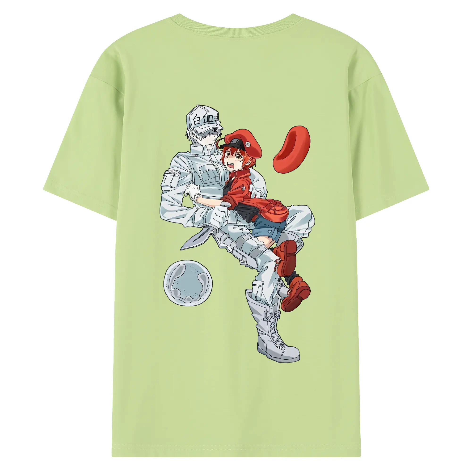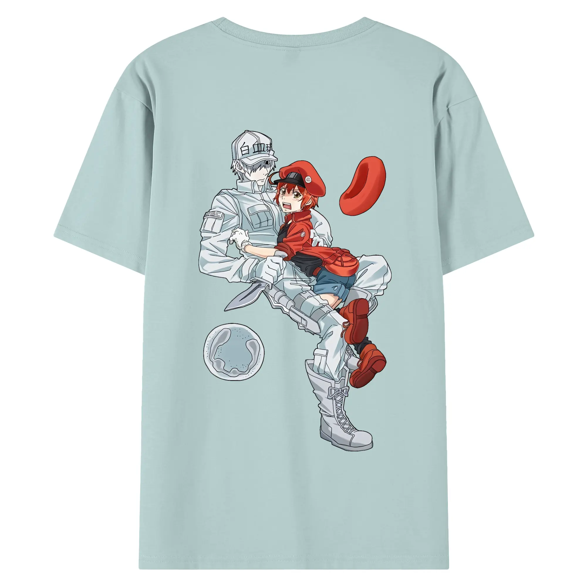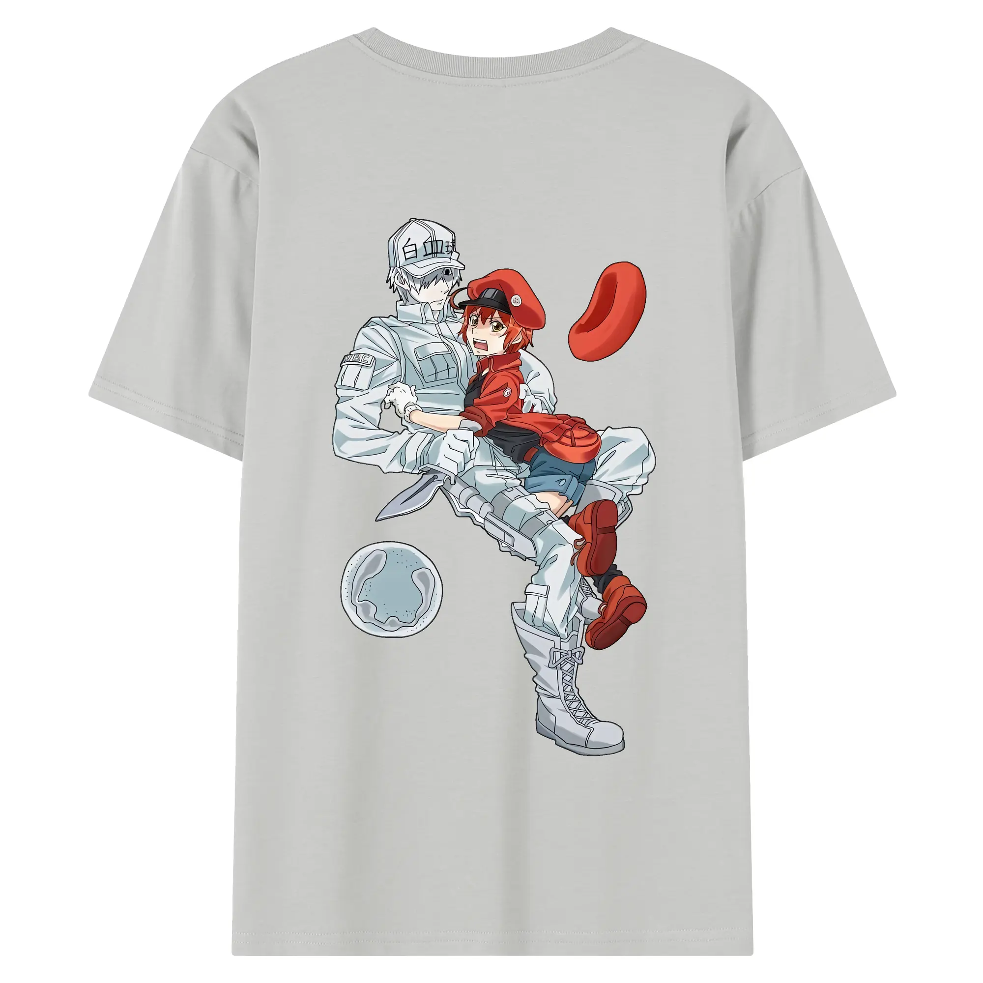 はたらく細胞 グッズ,白血球 - 綿100% ヴィンテージ風 半袖Tシャツ ・ 背面プリント ・ 柔らか肌触り ・ 通気性 快適 ・ スポーツ カジュアル 外出用