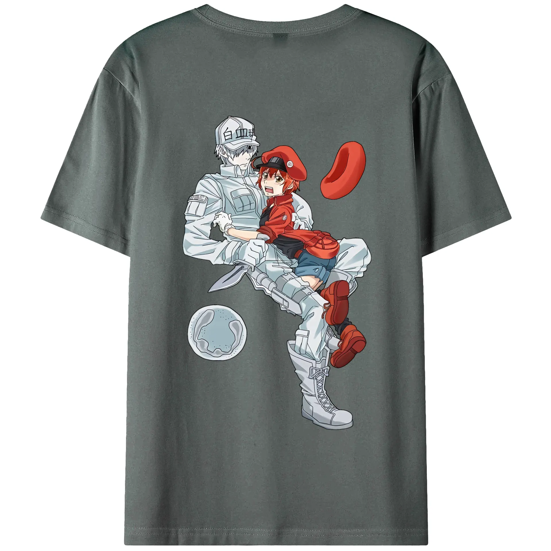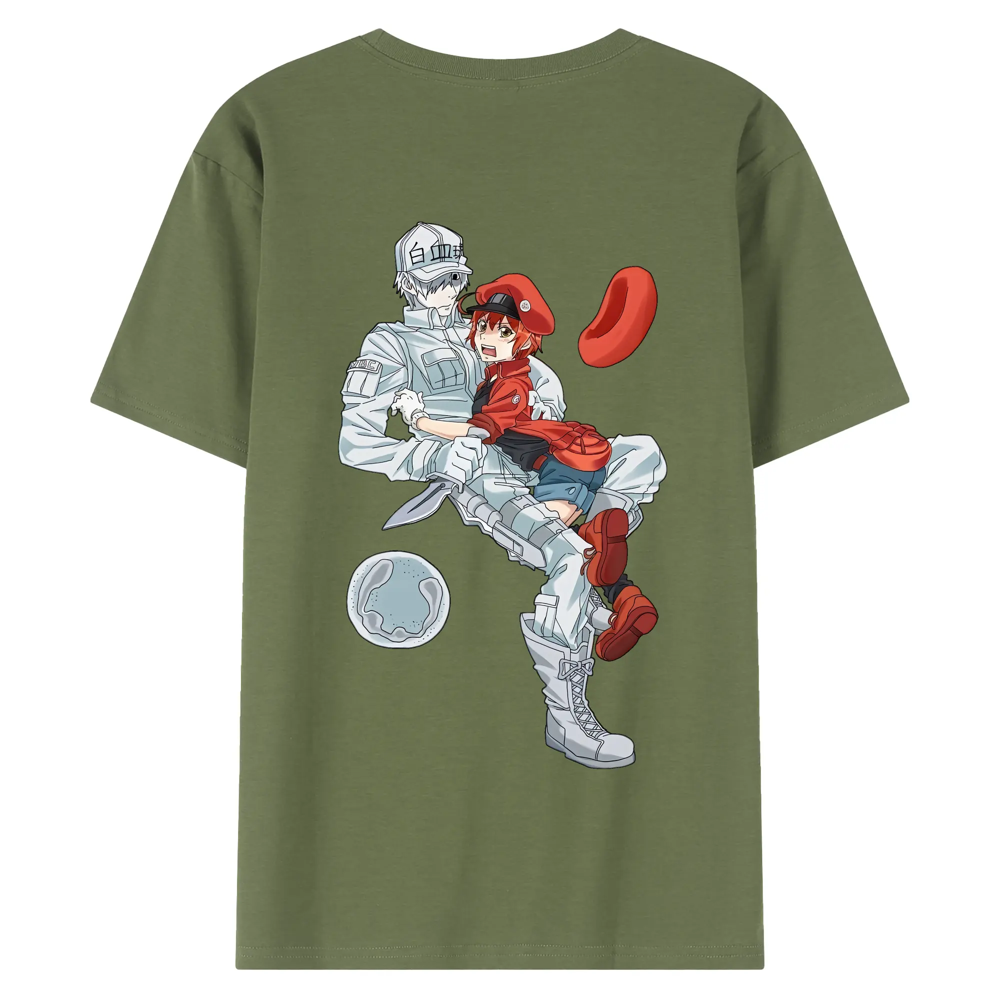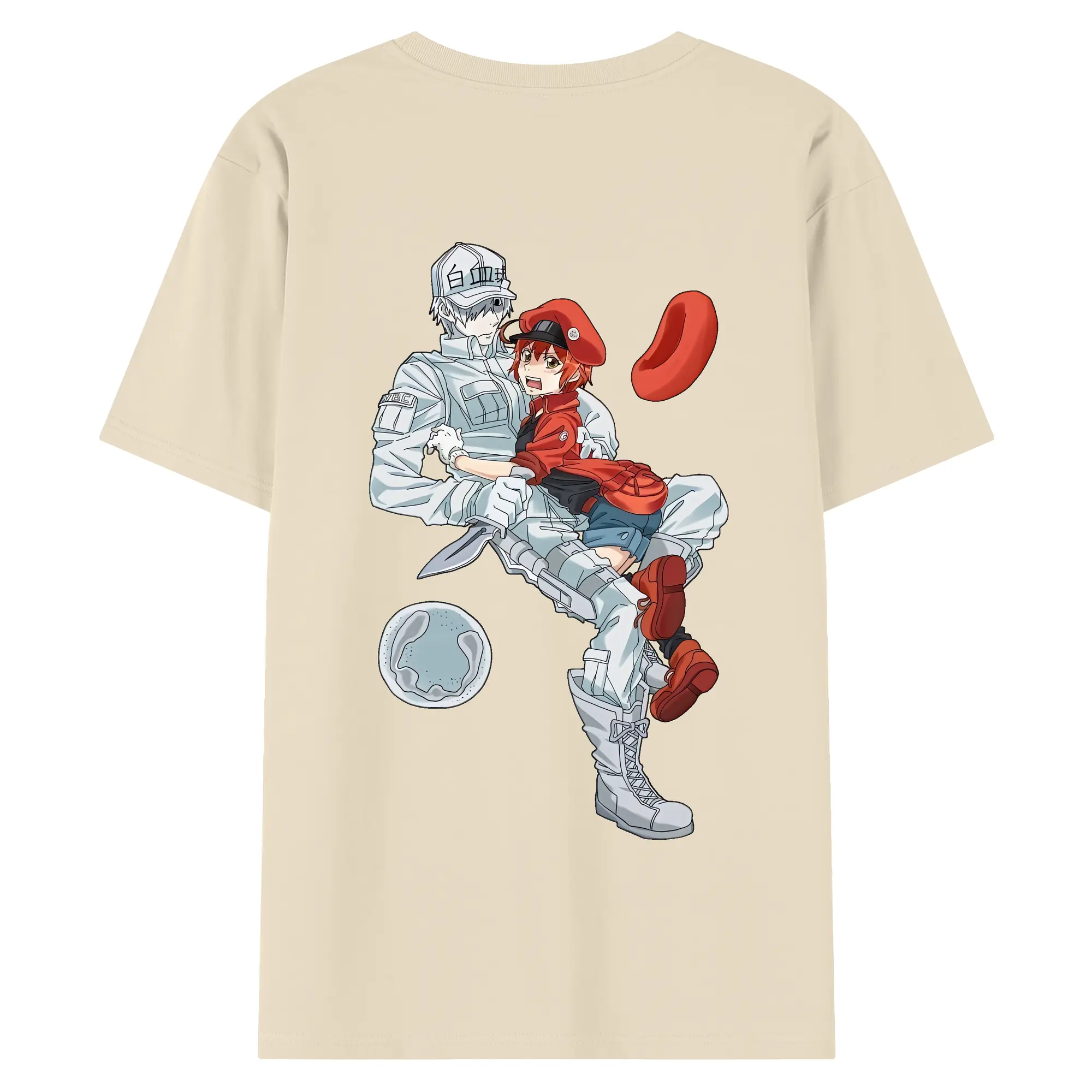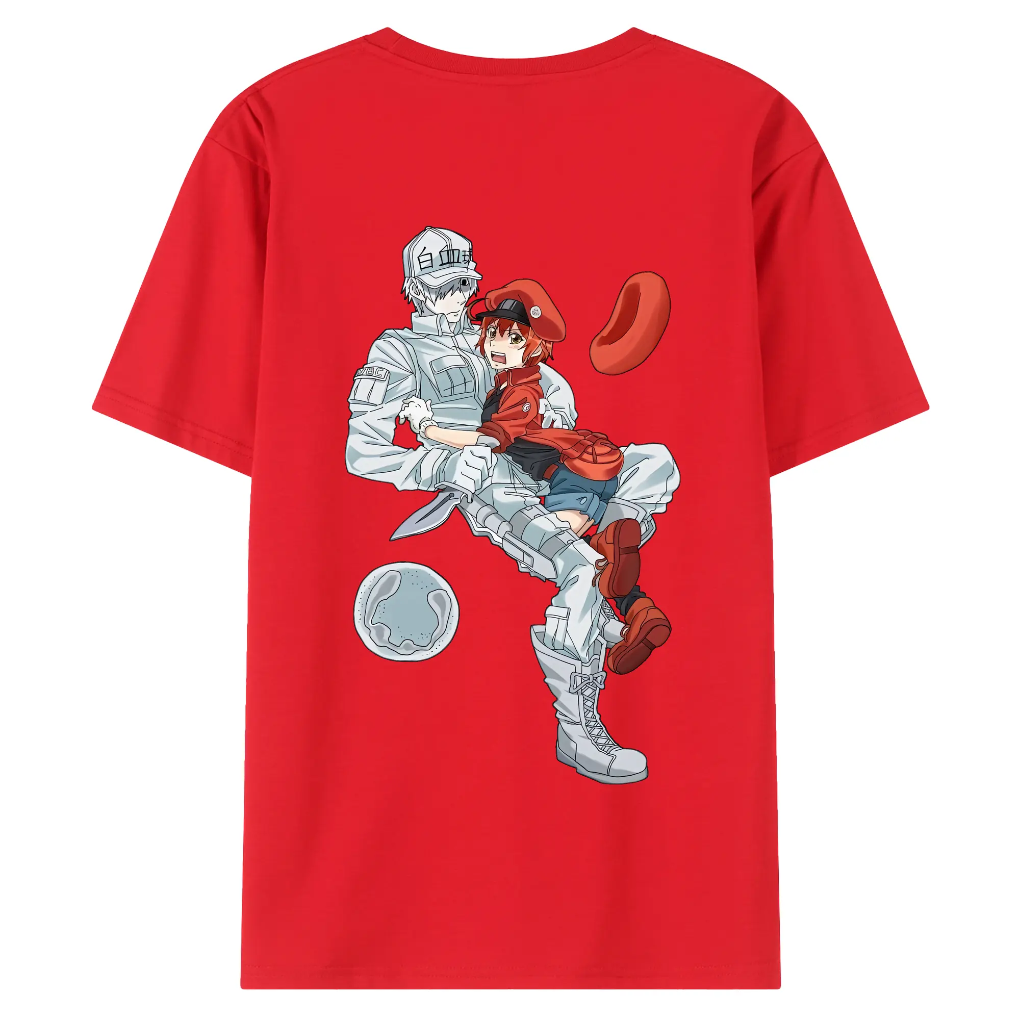 はたらく細胞 グッズ,白血球 - 綿100% ヴィンテージ風 半袖Tシャツ ・ 背面プリント ・ 柔らか肌触り ・ 通気性 快適 ・ スポーツ カジュアル 外出用