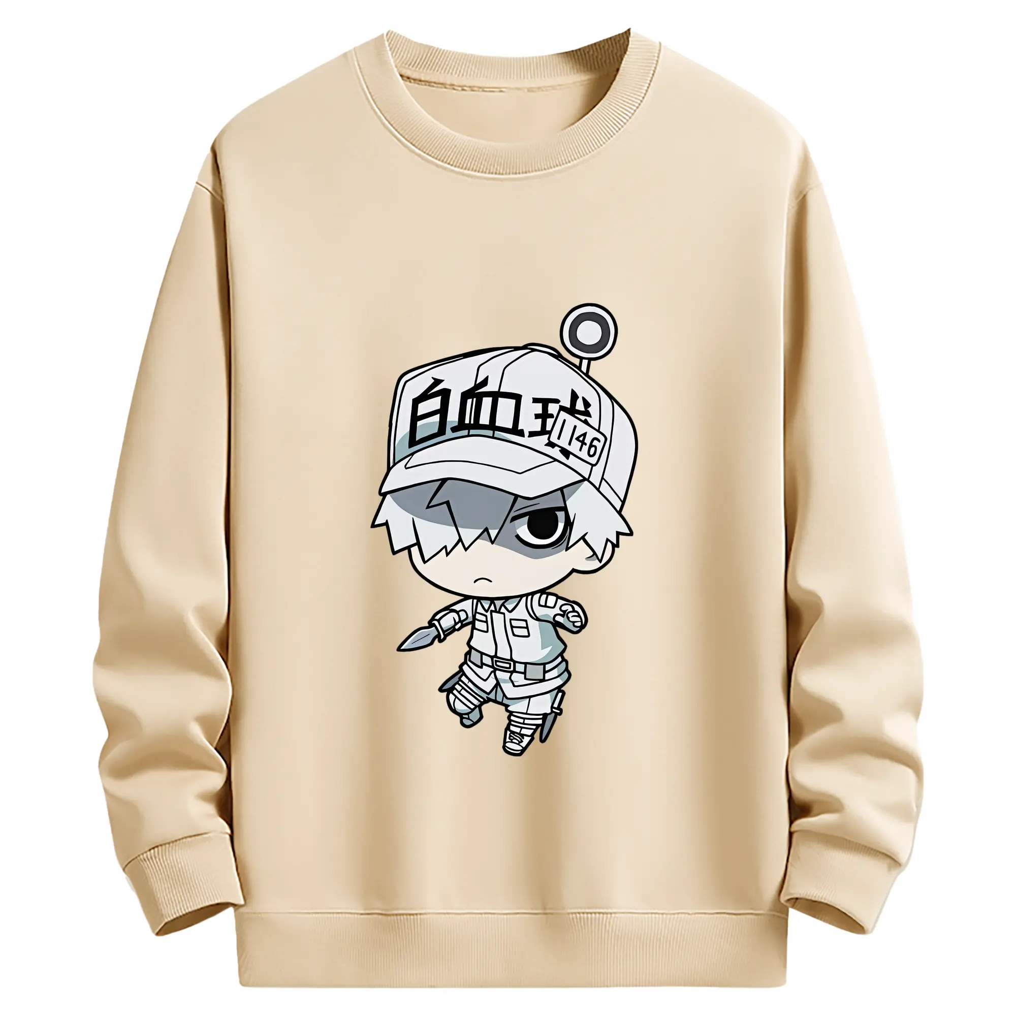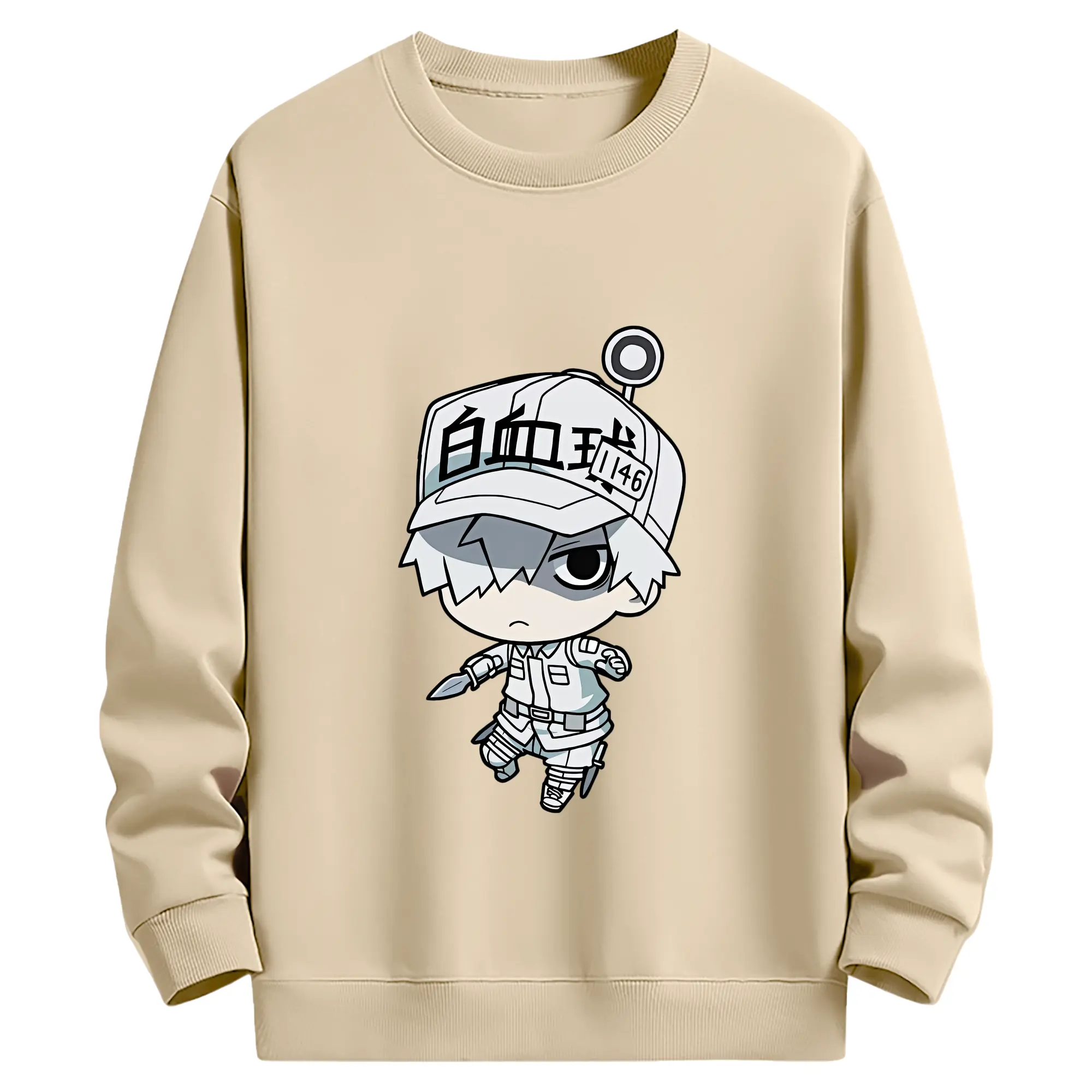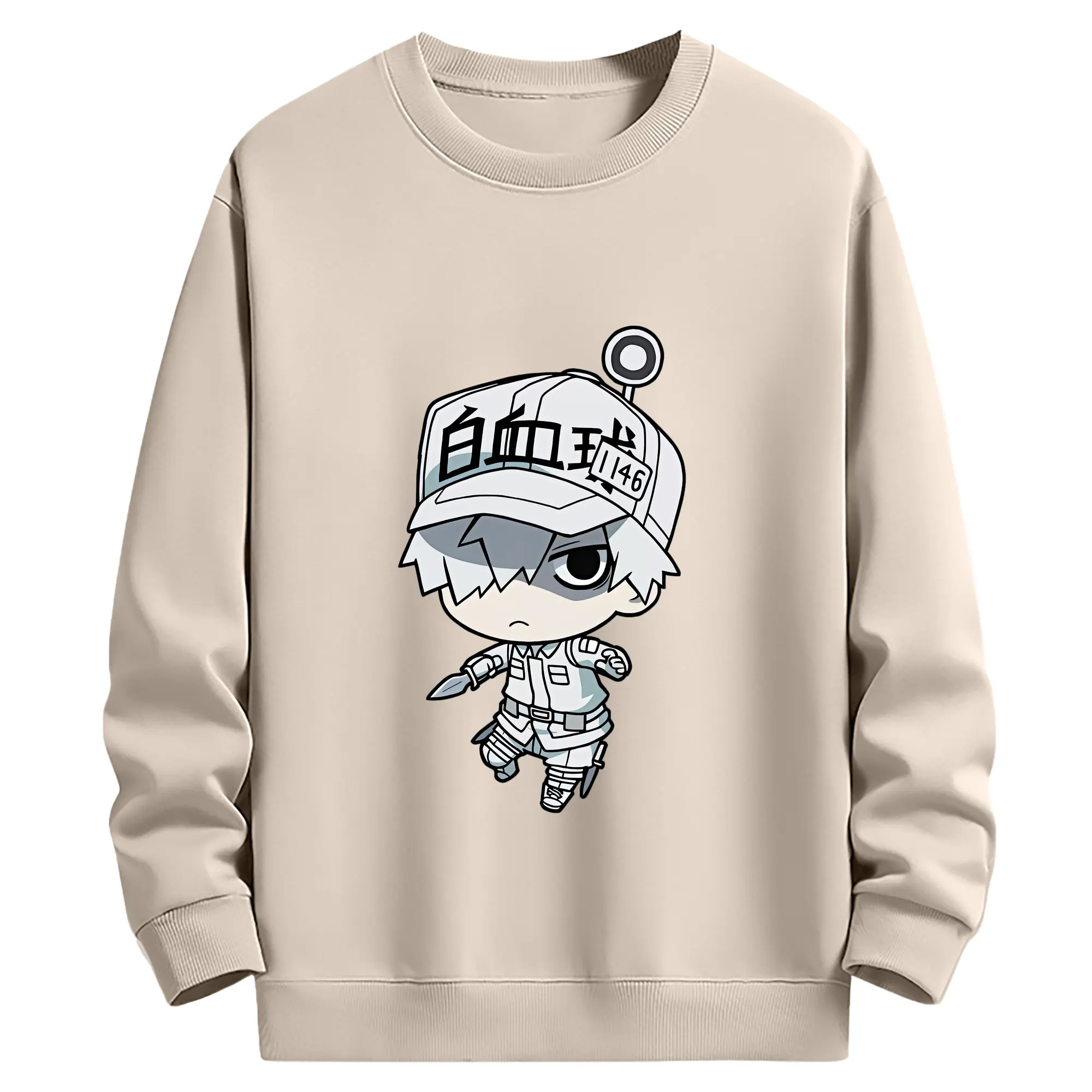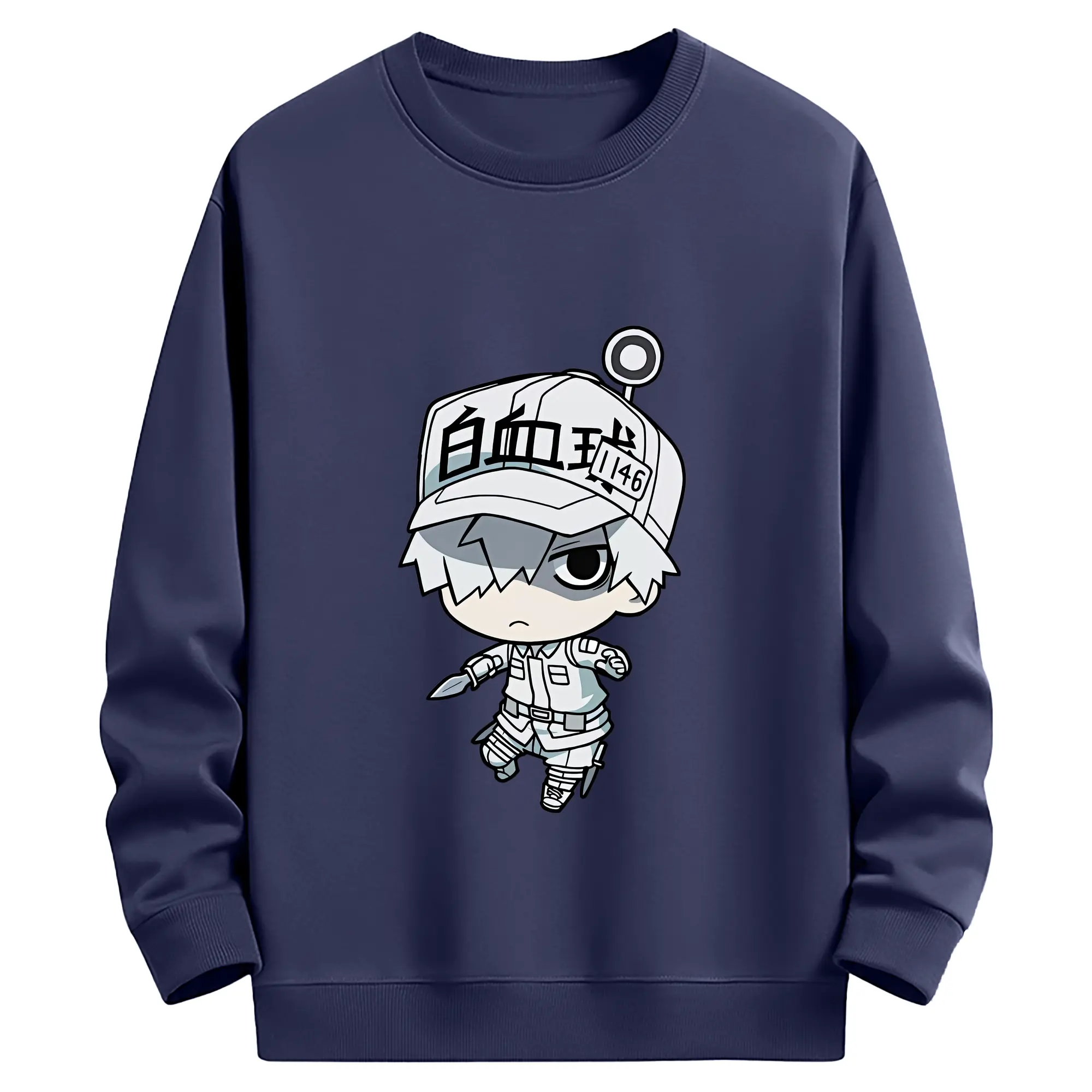 はたらく細胞 グッズ,白血球 - 薄手 クルーネック スウェット 裏毛260g · ポリエステル 春秋向け カジュアル 男女兼用 · トレーナー デイリー スポーツ 散歩に最適