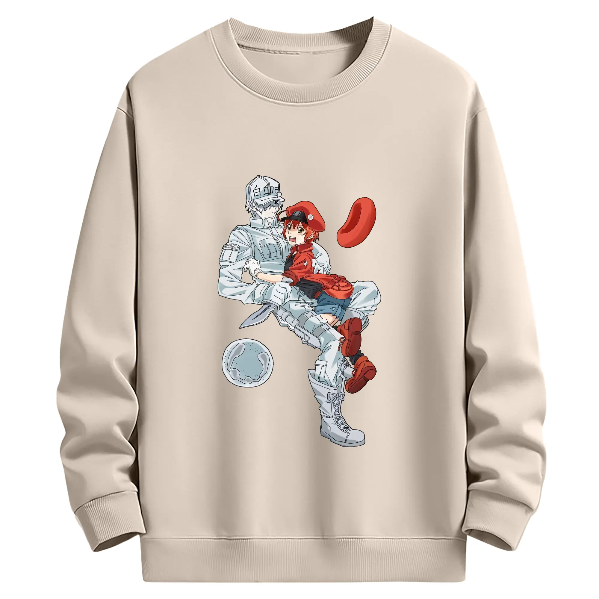 はたらく細胞 グッズ,白血球 - 薄手 クルーネック スウェット 裏毛260g · ポリエステル 春秋向け カジュアル 男女兼用 · トレーナー デイリー スポーツ 散歩に最適