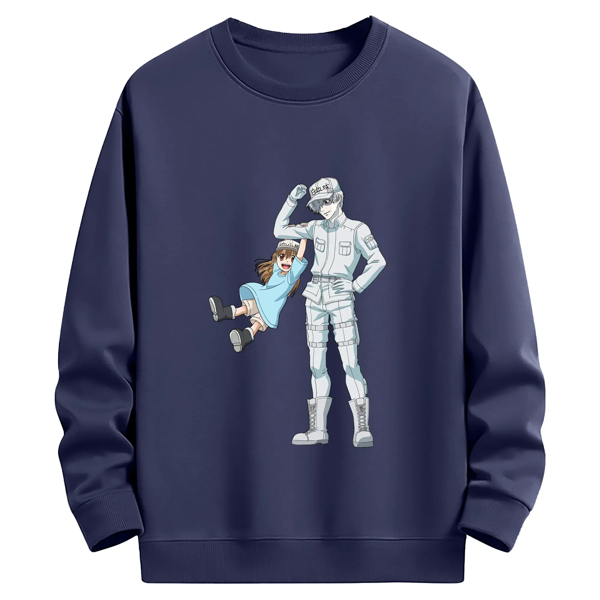はたらく細胞 グッズ,白血球 - 薄手 クルーネック スウェット 裏毛260g · ポリエステル 春秋向け カジュアル 男女兼用 · トレーナー デイリー スポーツ 散歩に最適