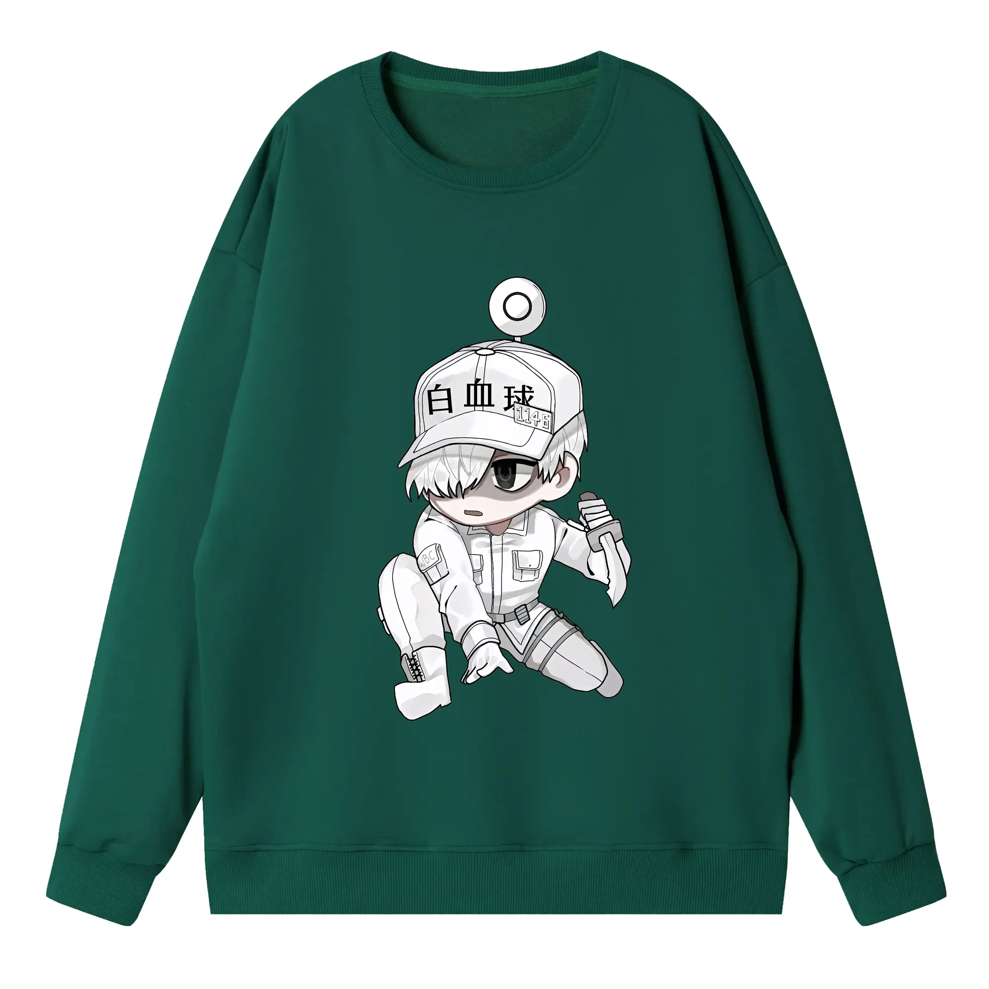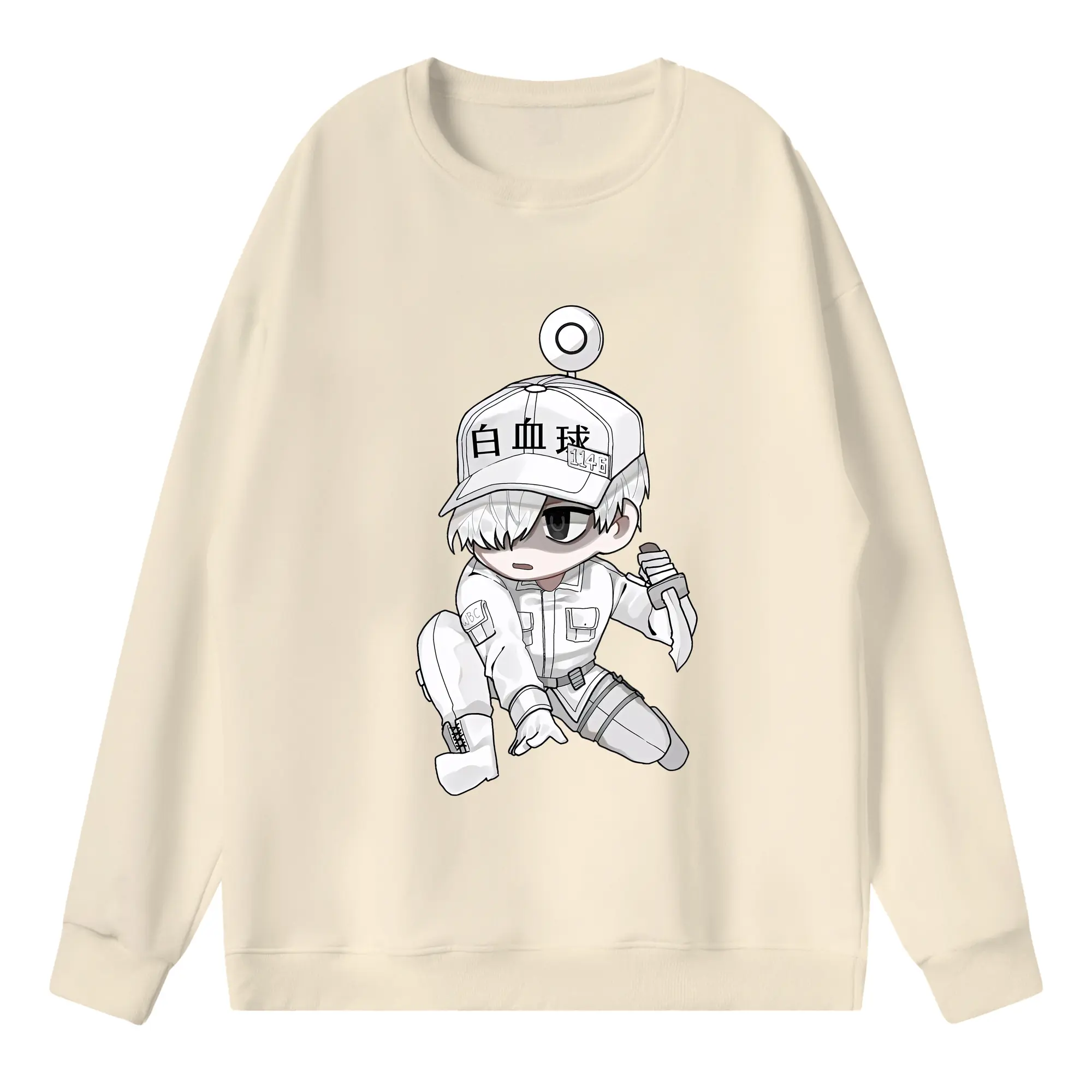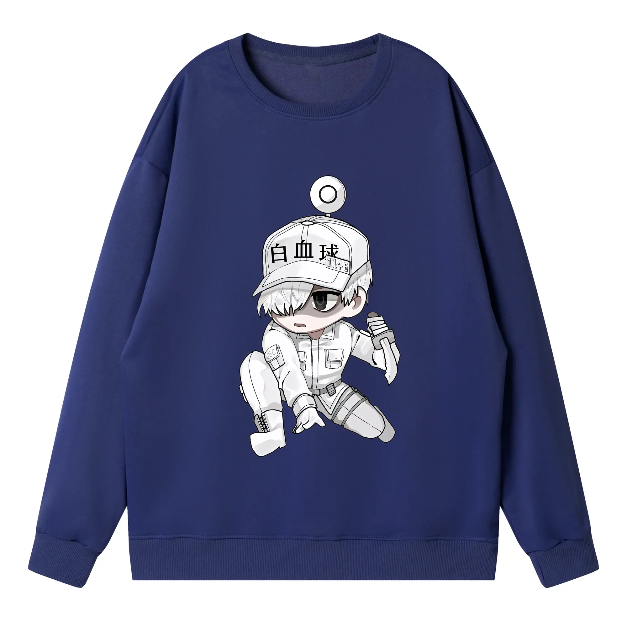 はたらく細胞 グッズ,白血球 - 高品質 クルーネック スウェット ・ コットン59% ポリエステル41% ・ ユニセックス 長袖 トレーナー ・ カジュアル デイリー スポーツ 散歩用