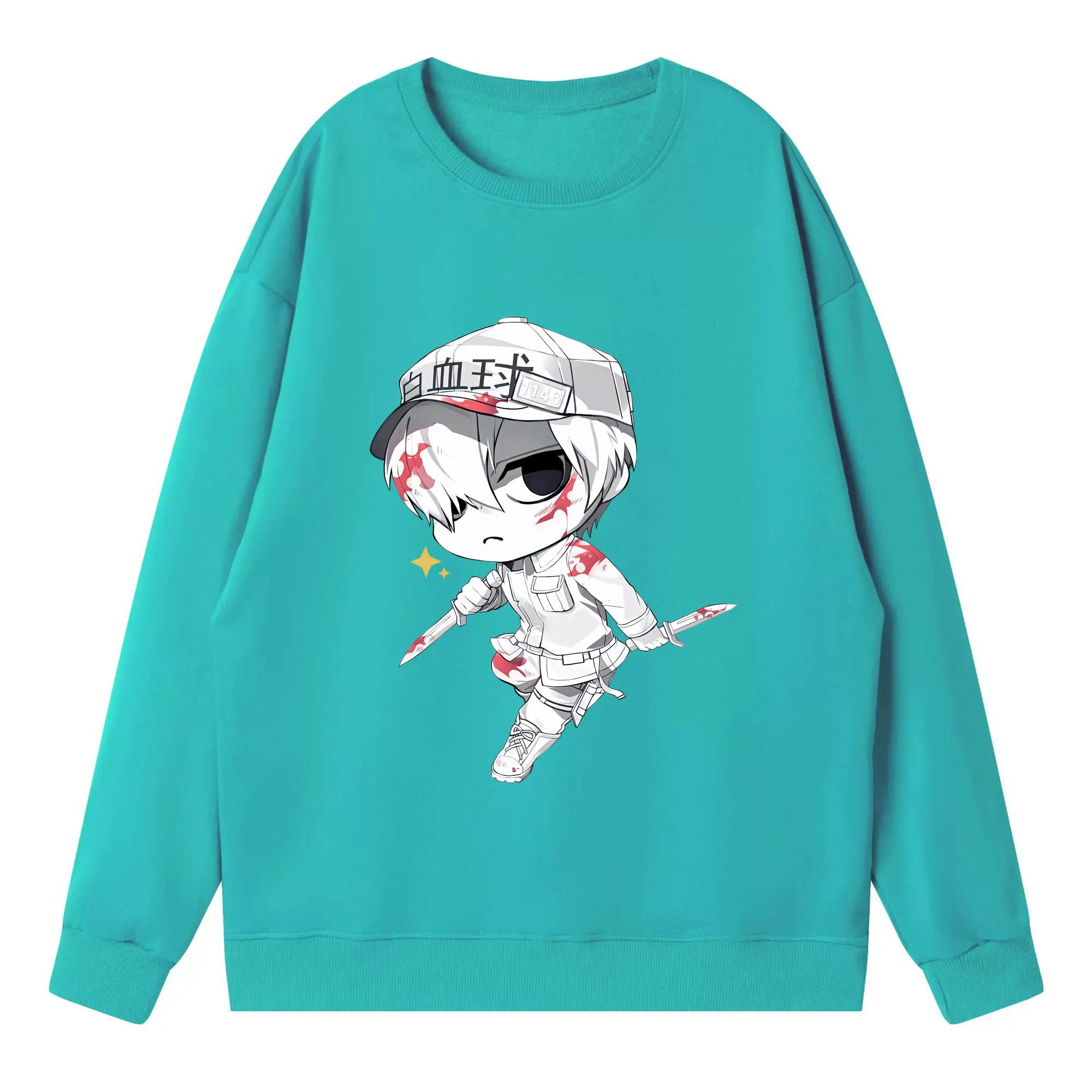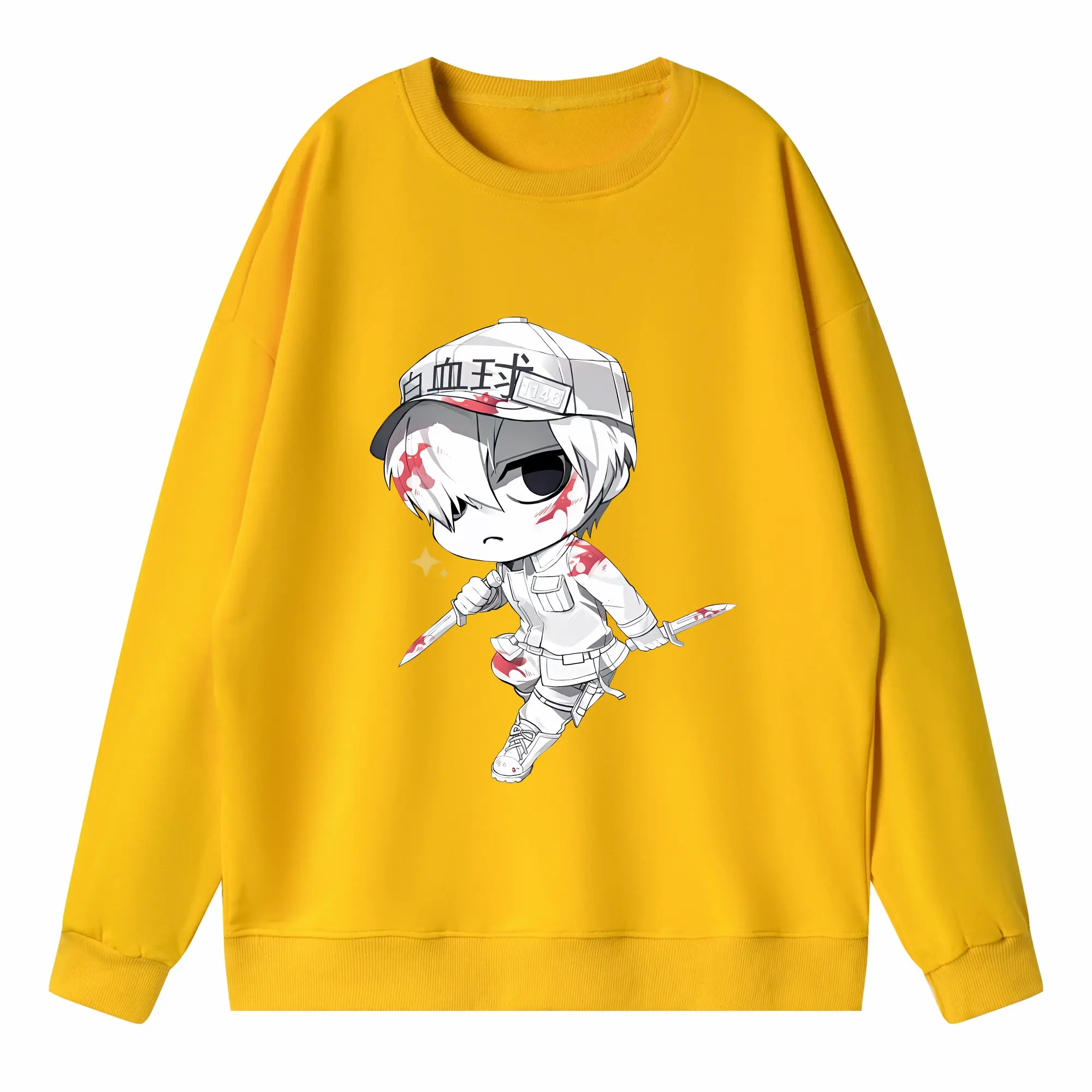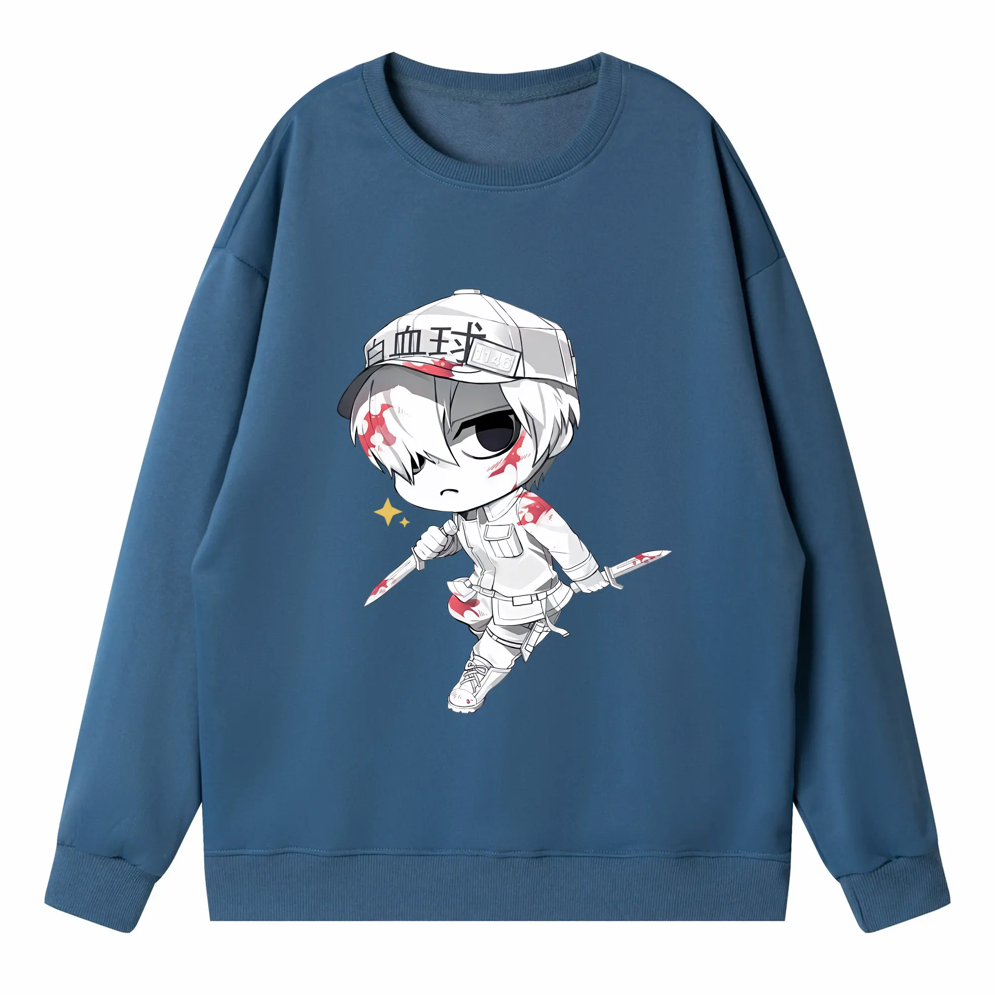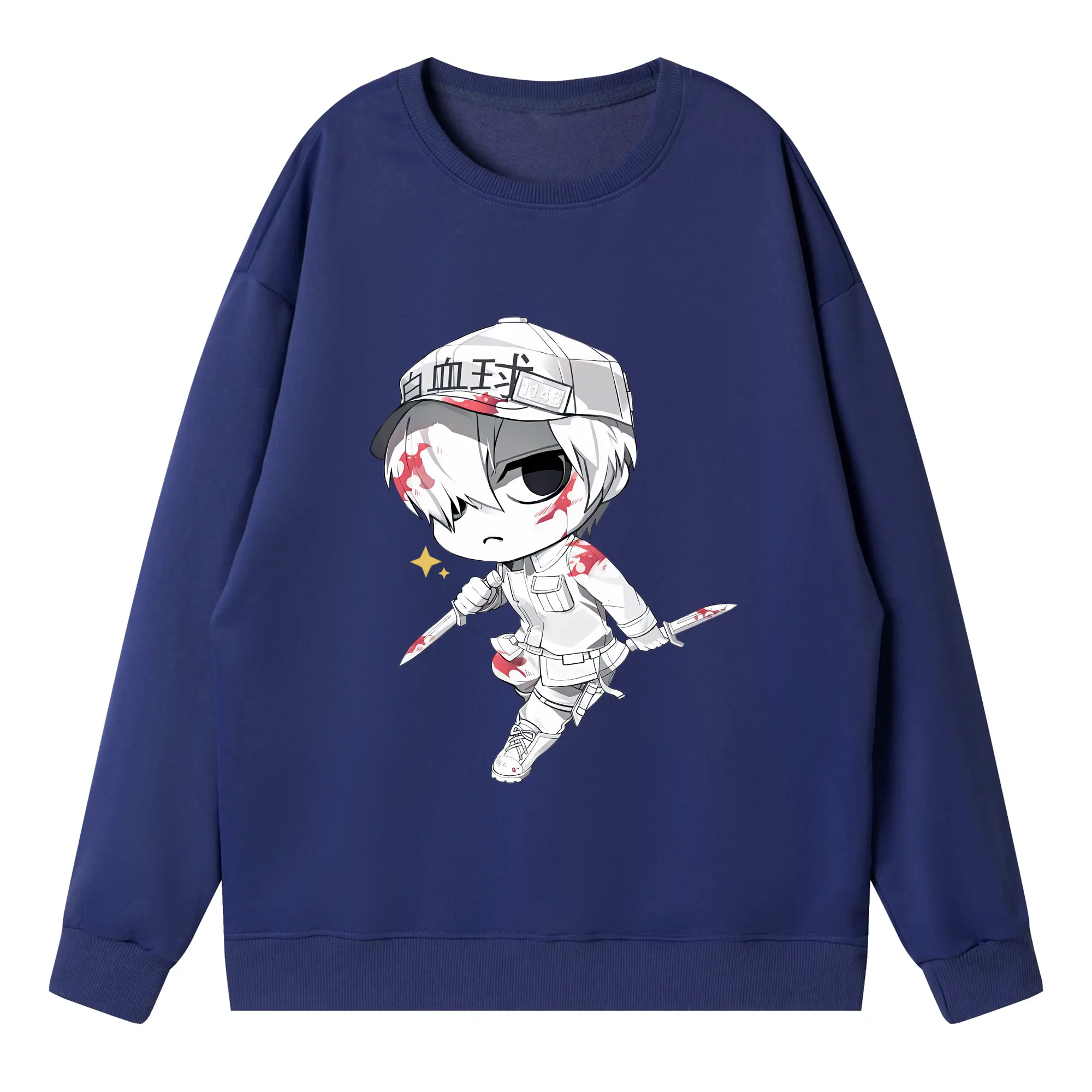 はたらく細胞 グッズ,白血球 - 高品質 クルーネック スウェット ・ コットン59% ポリエステル41% ・ ユニセックス 長袖 トレーナー ・ カジュアル デイリー スポーツ 散歩用
