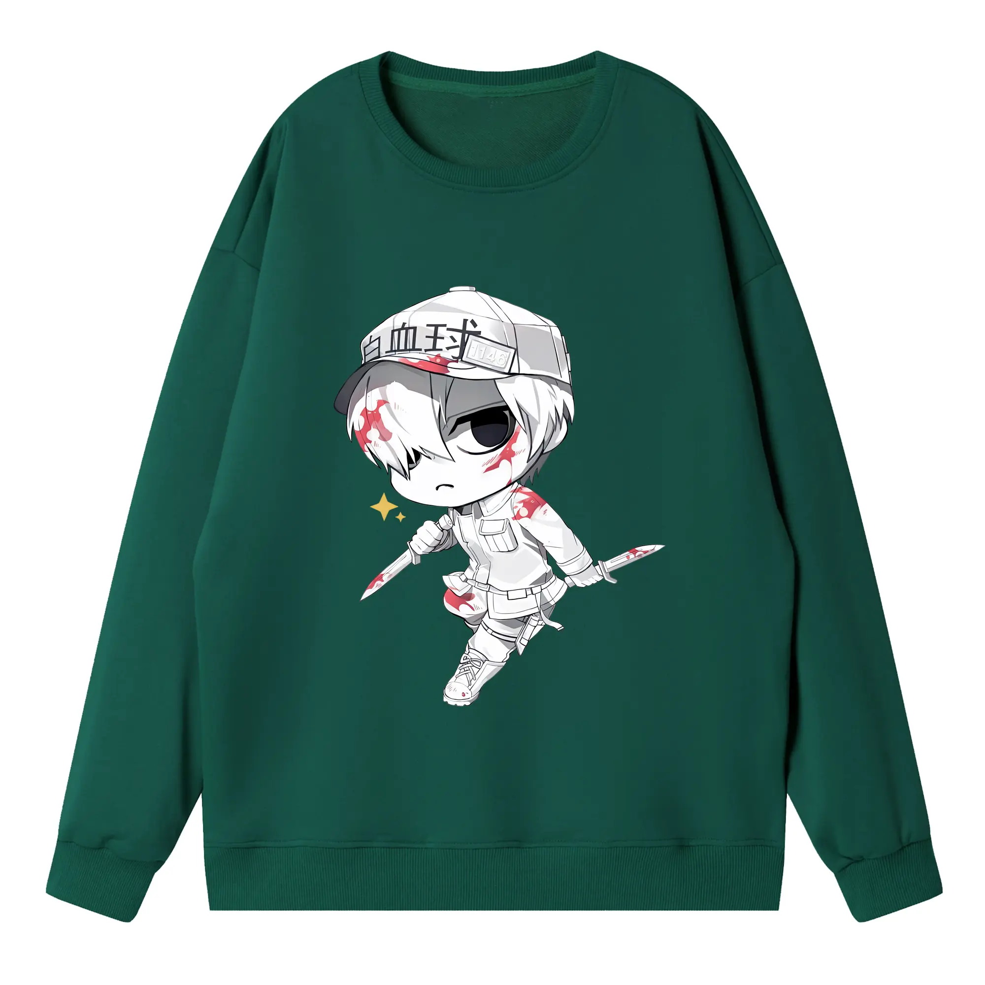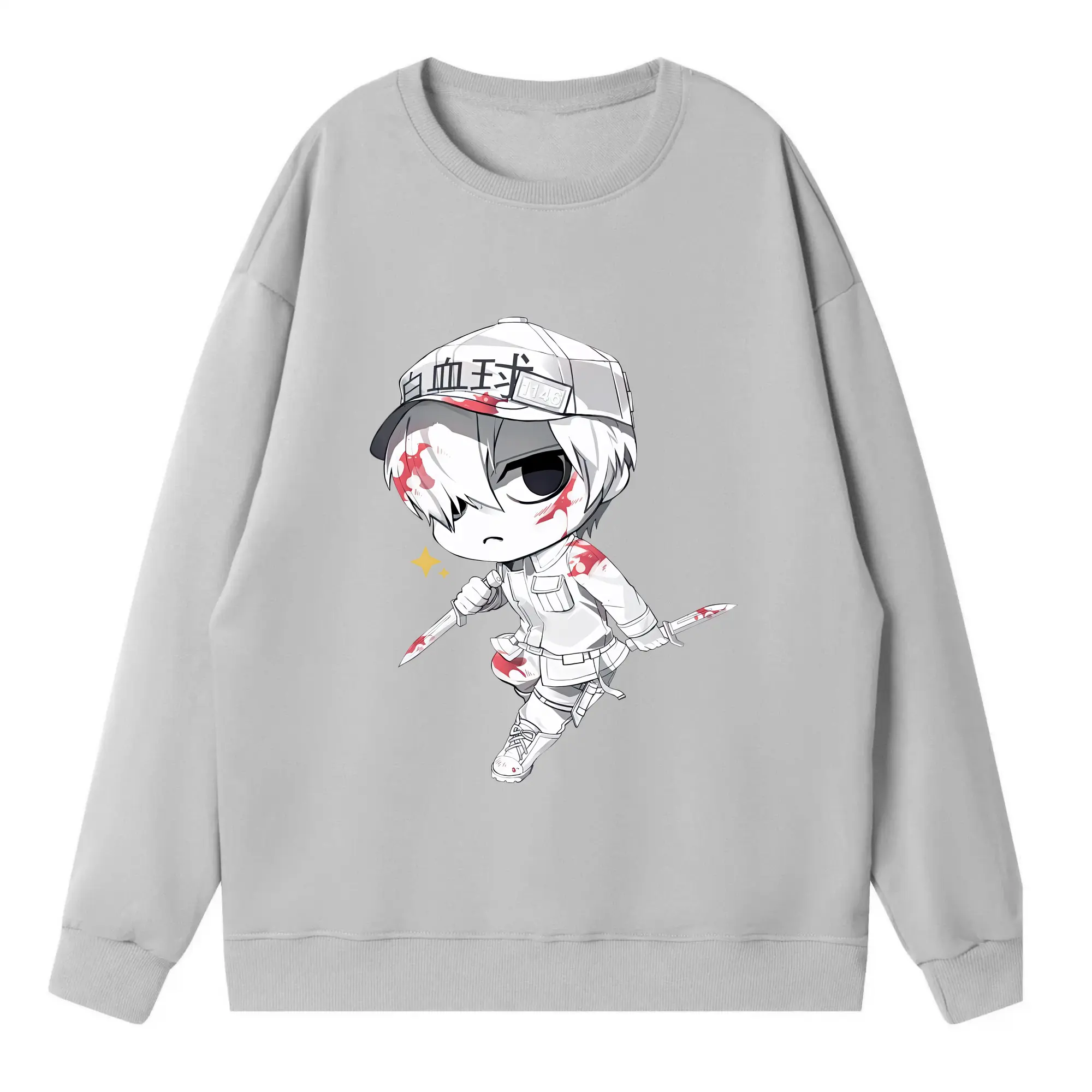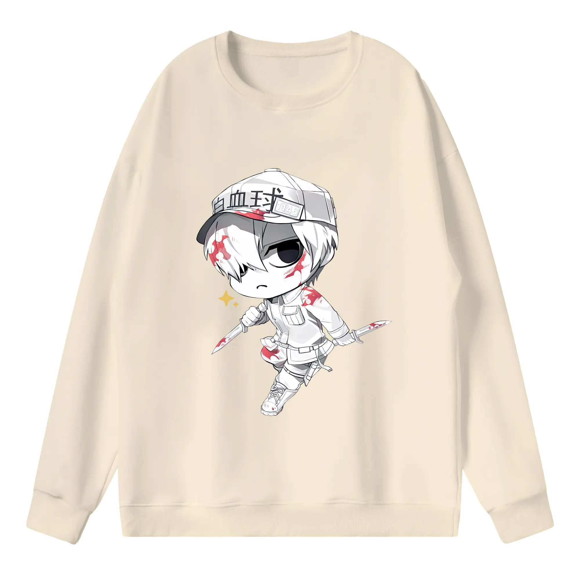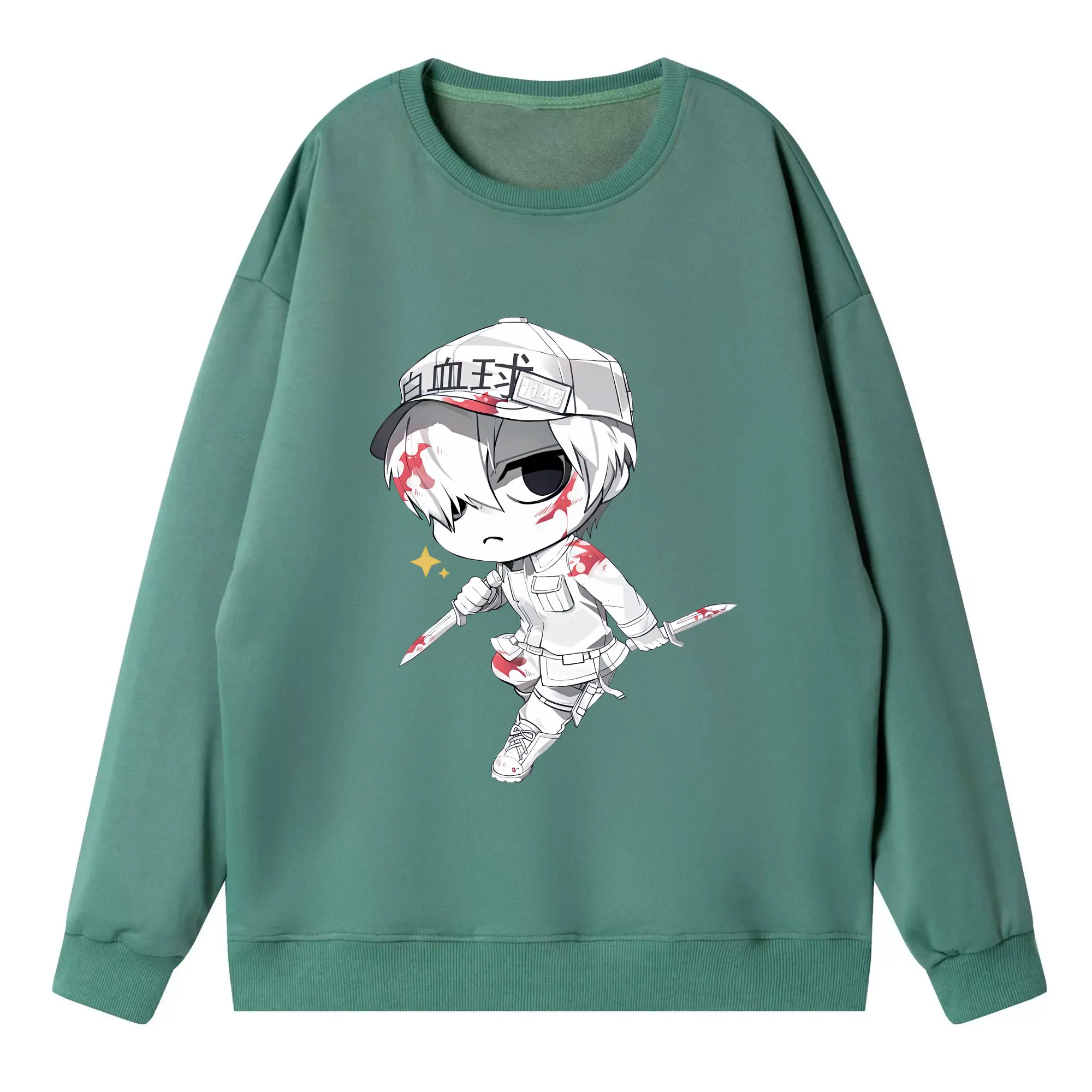 はたらく細胞 グッズ,白血球 - 高品質 クルーネック スウェット ・ コットン59% ポリエステル41% ・ ユニセックス 長袖 トレーナー ・ カジュアル デイリー スポーツ 散歩用