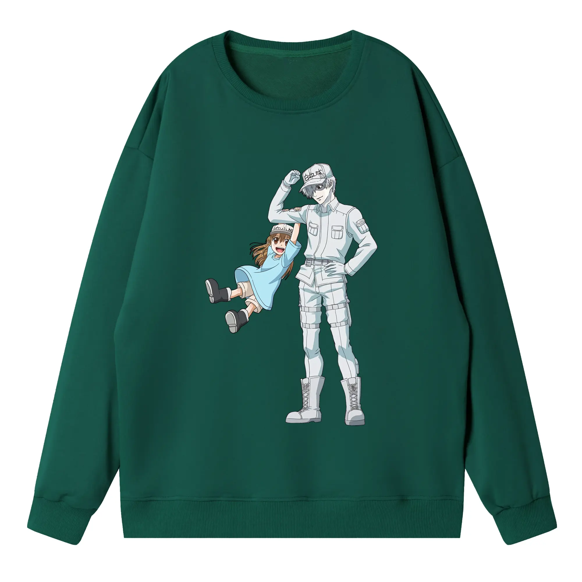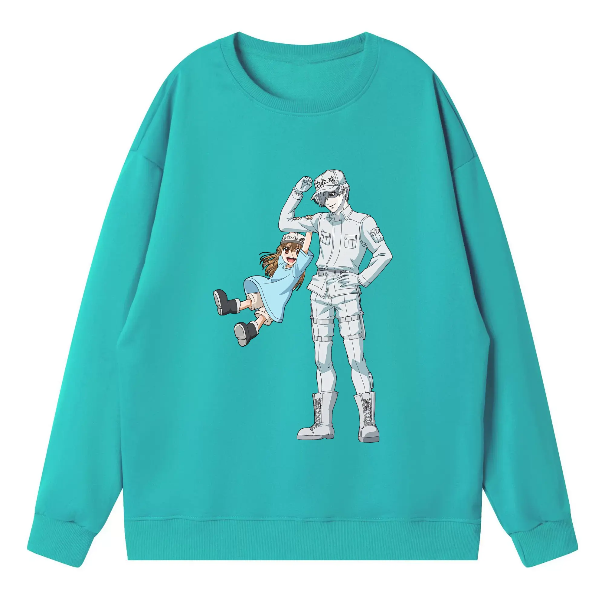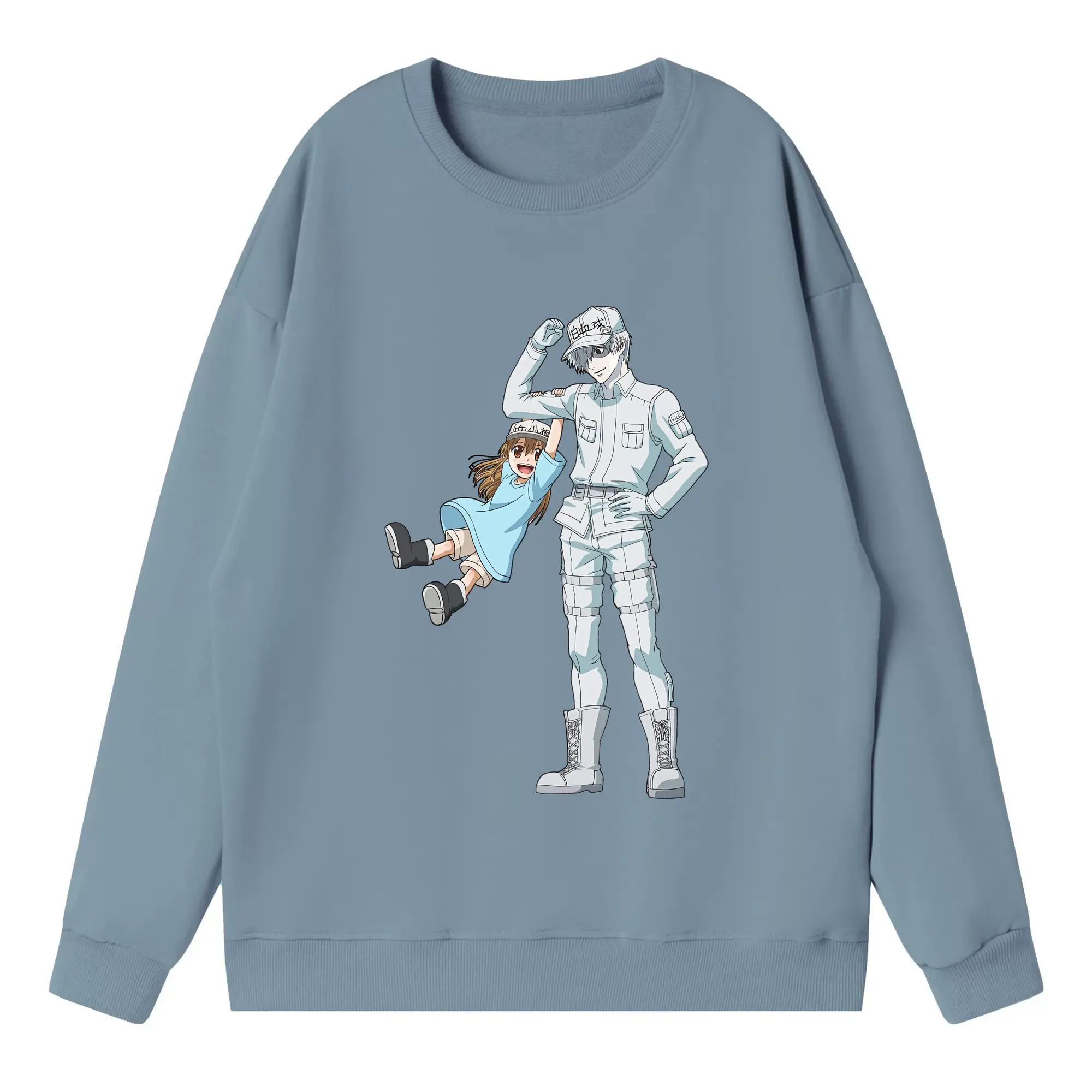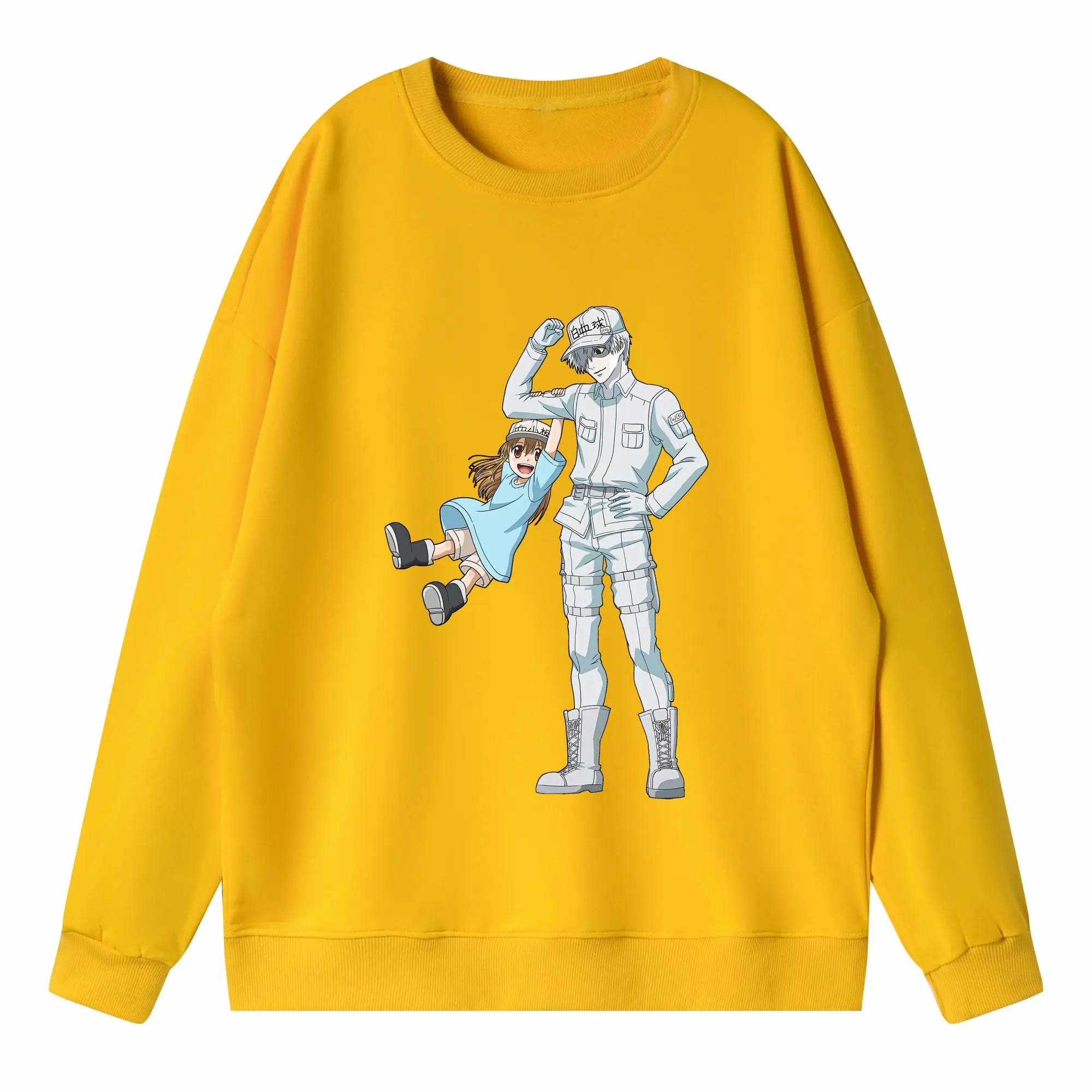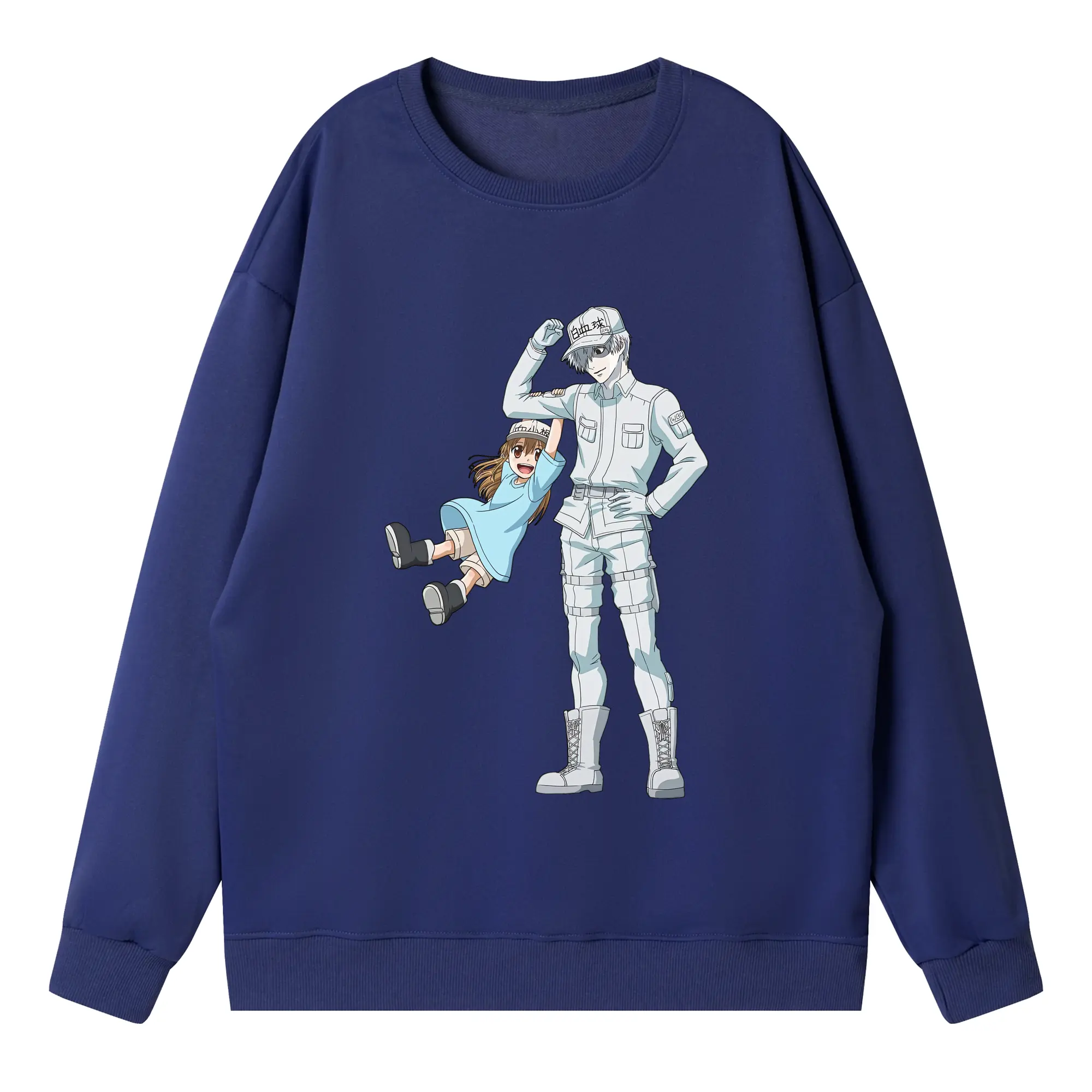 はたらく細胞 グッズ,白血球 - 高品質 クルーネック スウェット ・ コットン59% ポリエステル41% ・ ユニセックス 長袖 トレーナー ・ カジュアル デイリー スポーツ 散歩用