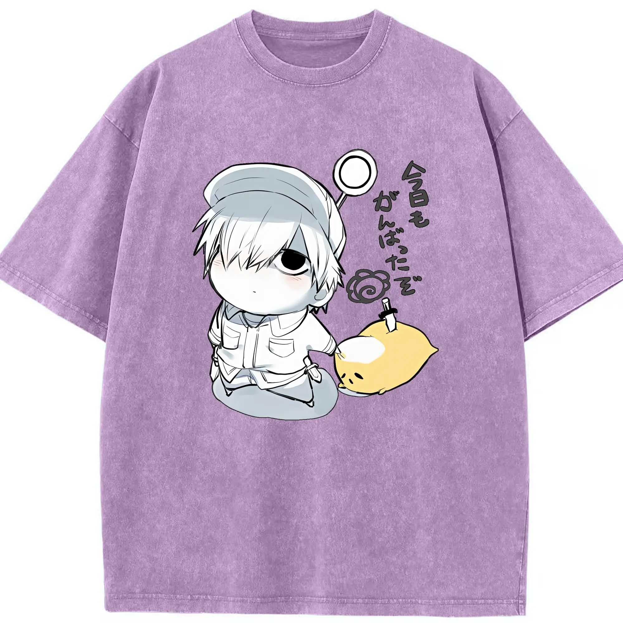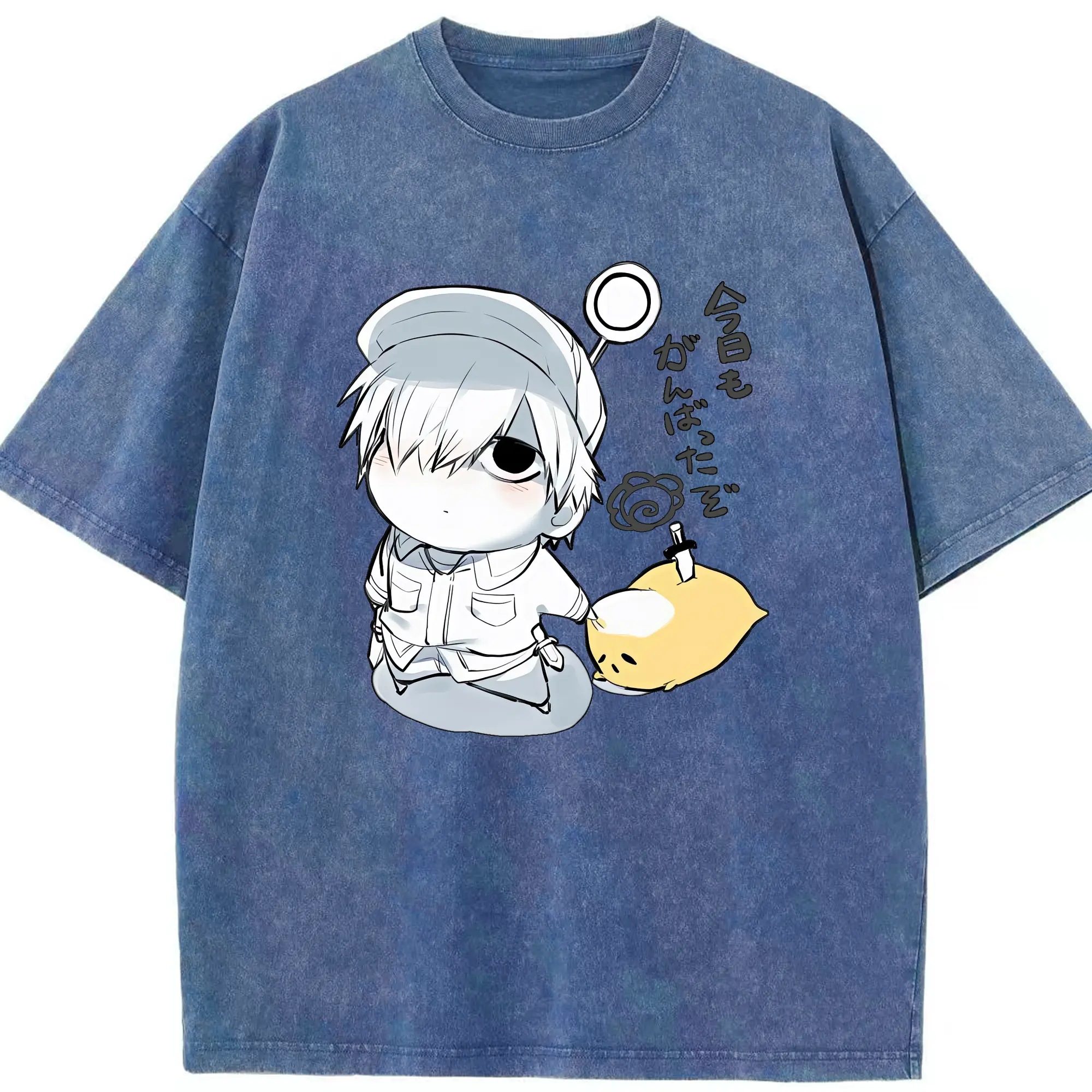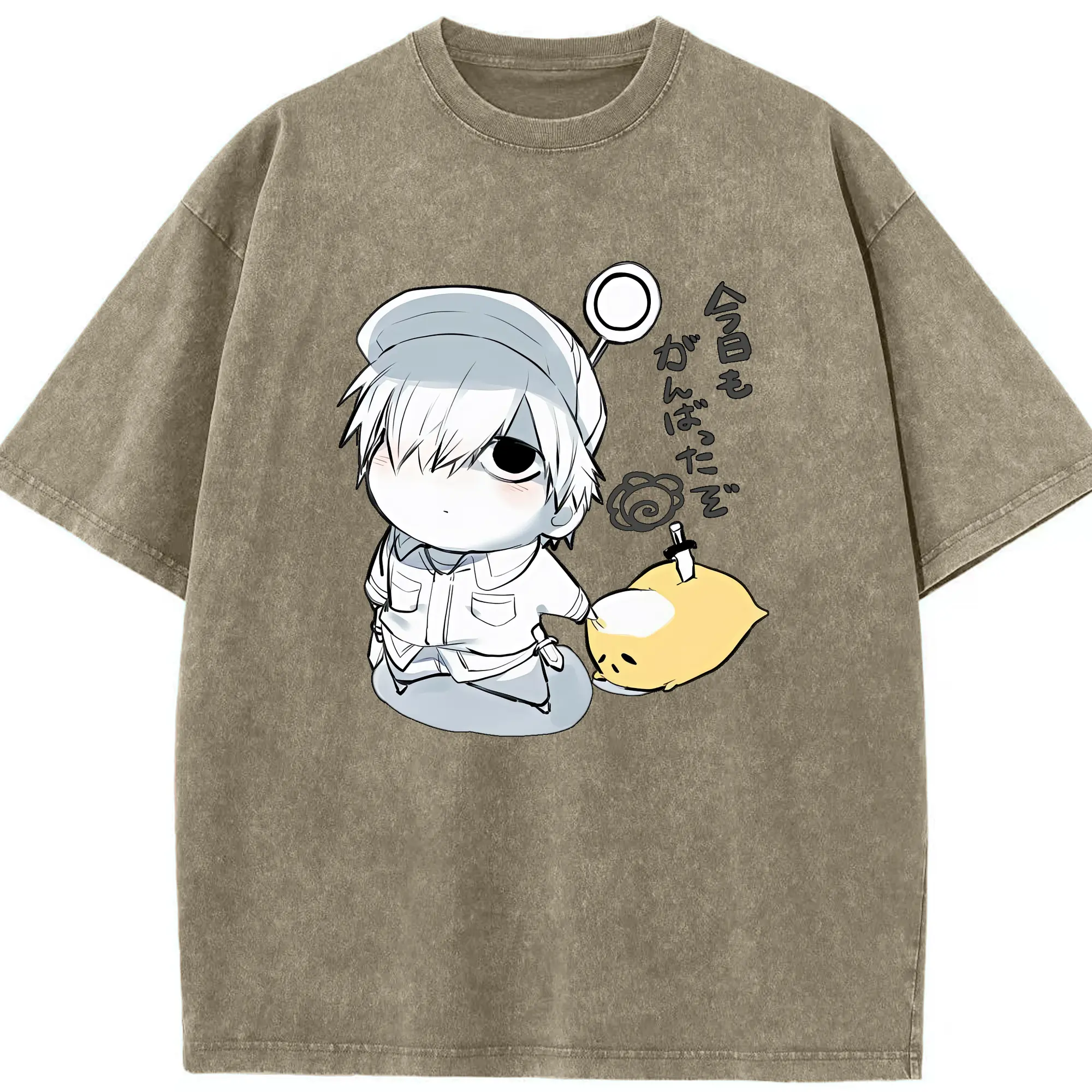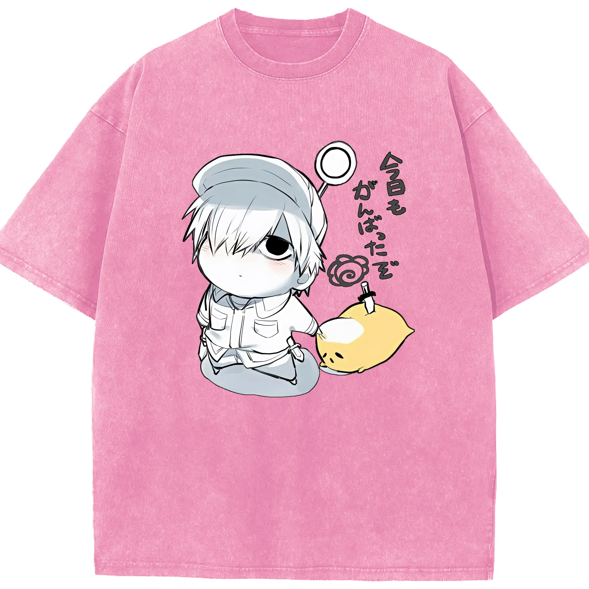 はたらく細胞 グッズ,白血球 - 綿100% ヴィンテージ風 半袖Tシャツ ・ 背面プリント ・ 柔らか肌触り ・ 通気性 快適 ・ スポーツ カジュアル 外出用