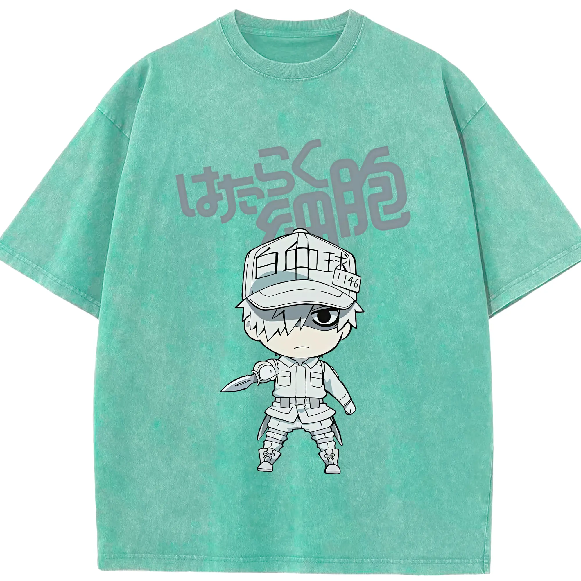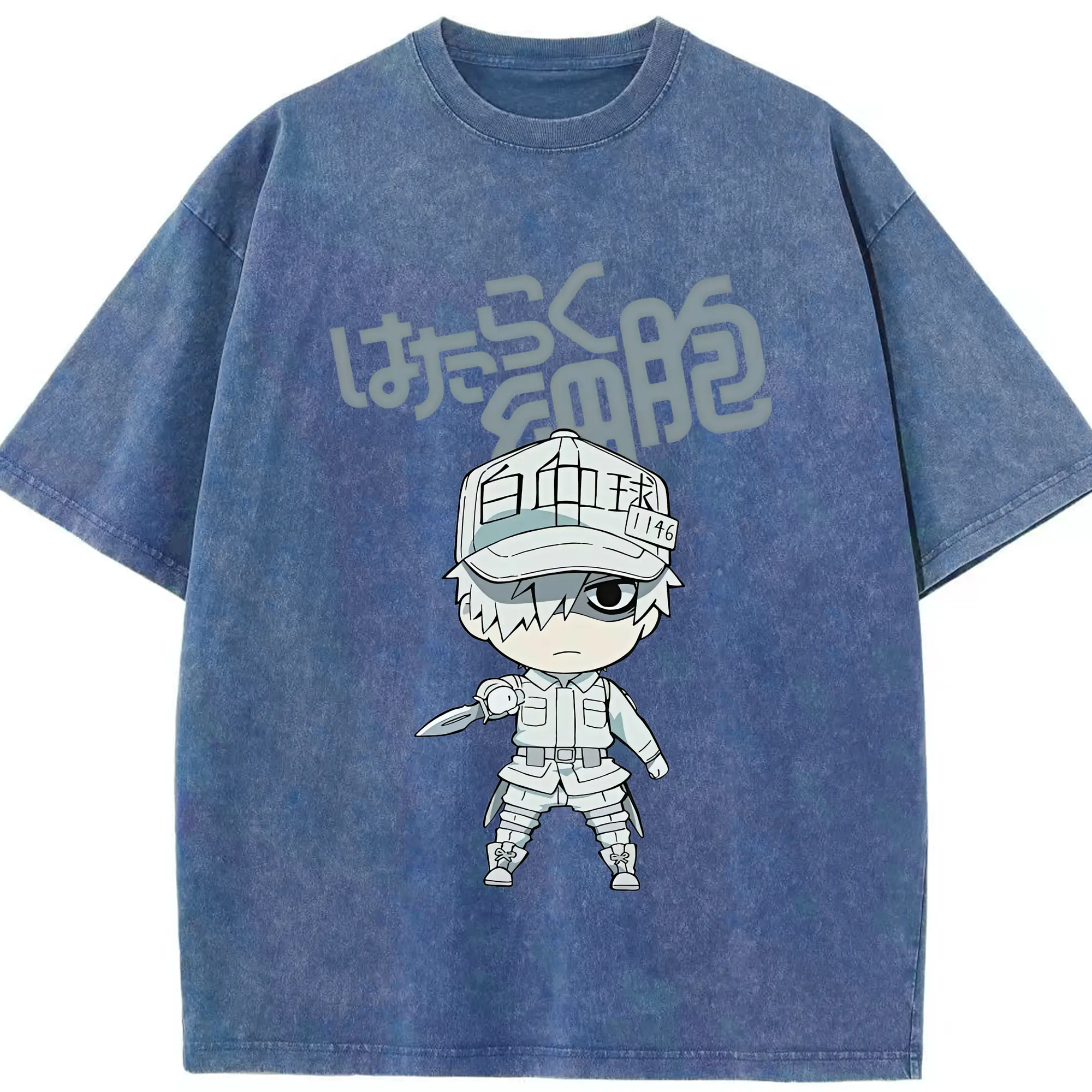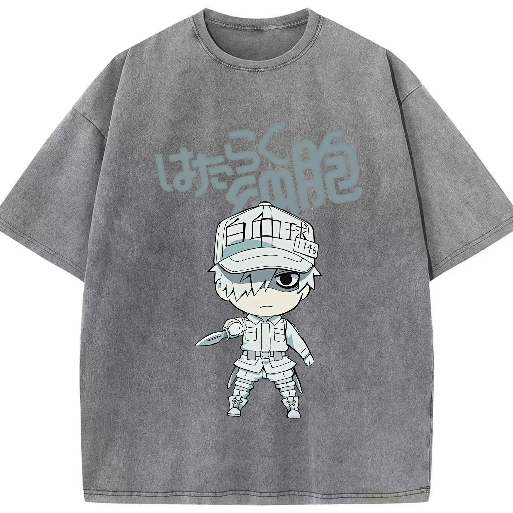 はたらく細胞 グッズ,白血球 - 綿100% ヴィンテージ風 半袖Tシャツ ・ 背面プリント ・ 柔らか肌触り ・ 通気性 快適 ・ スポーツ カジュアル 外出用