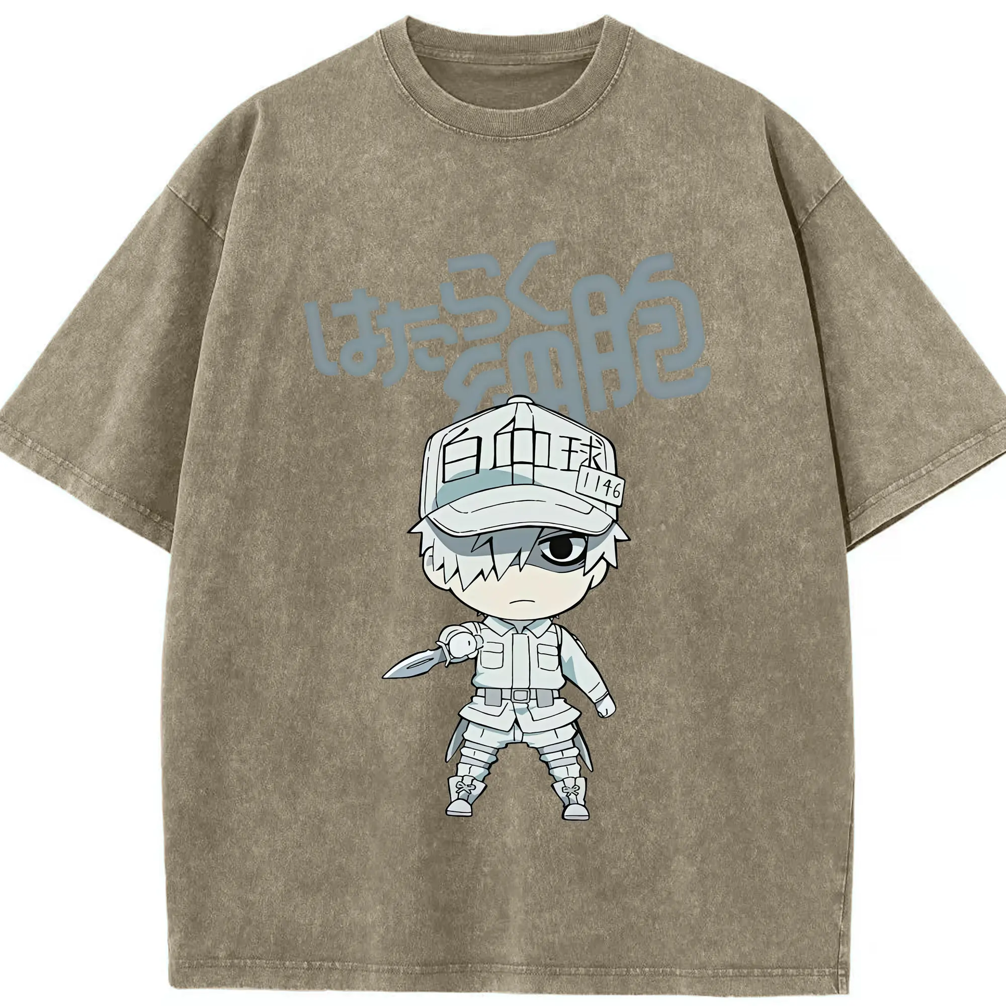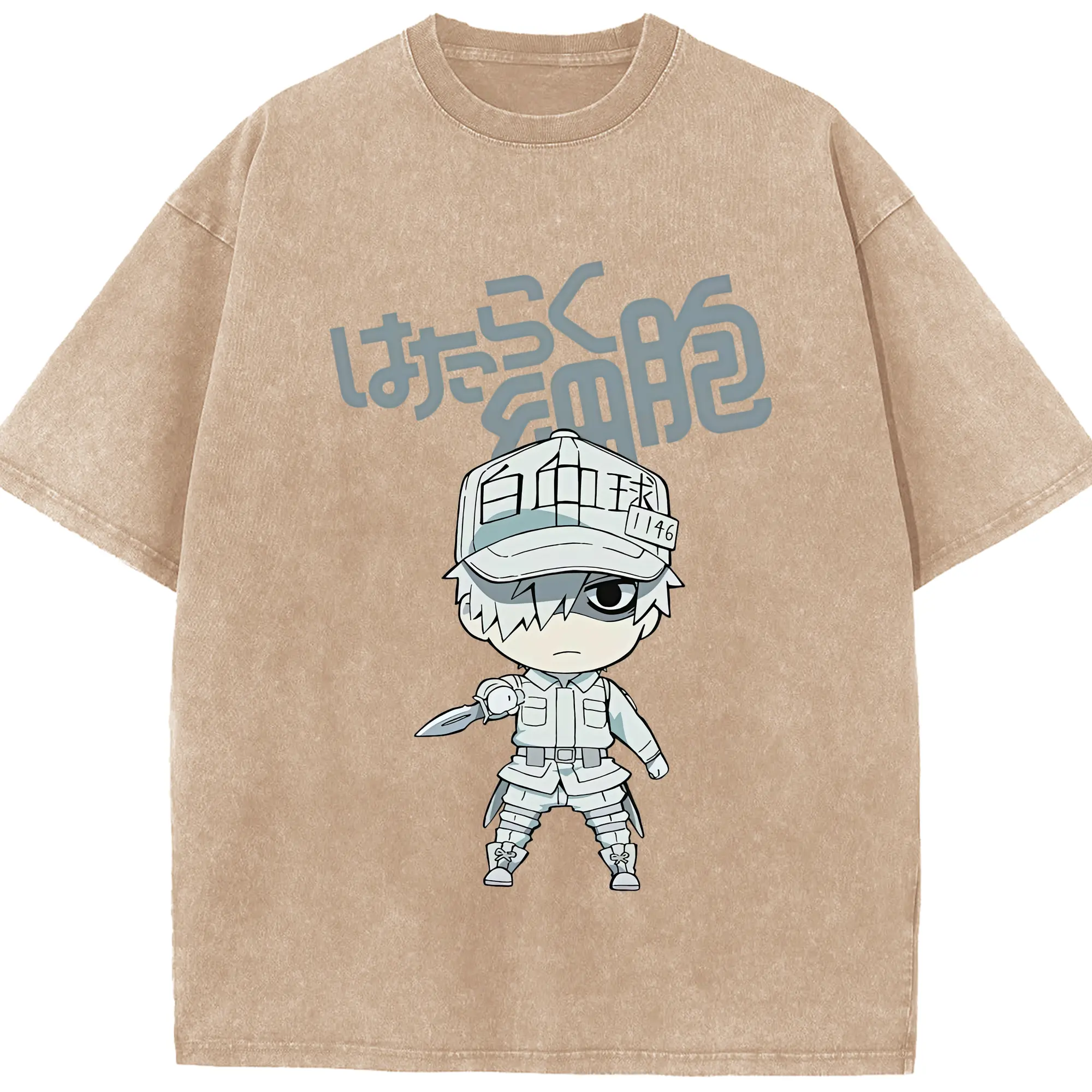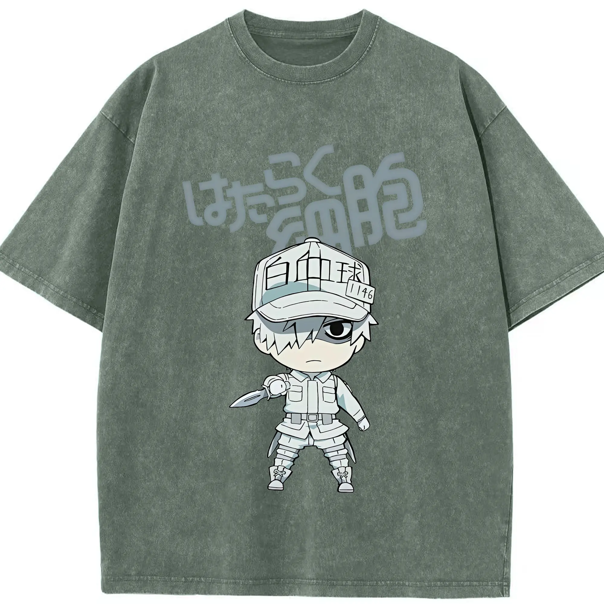 はたらく細胞 グッズ,白血球 - 綿100% ヴィンテージ風 半袖Tシャツ ・ 背面プリント ・ 柔らか肌触り ・ 通気性 快適 ・ スポーツ カジュアル 外出用