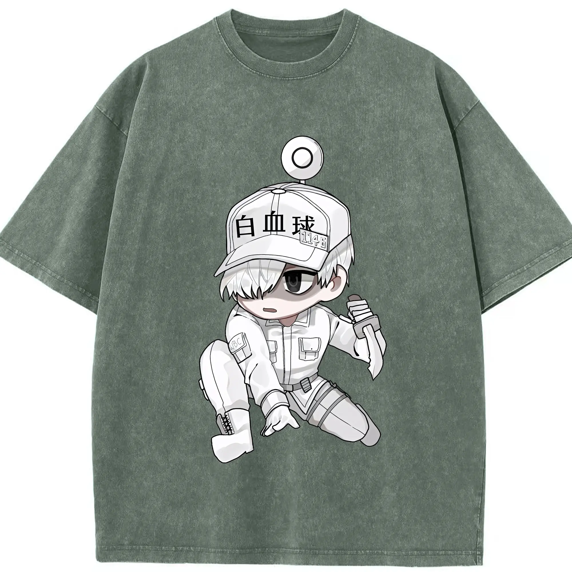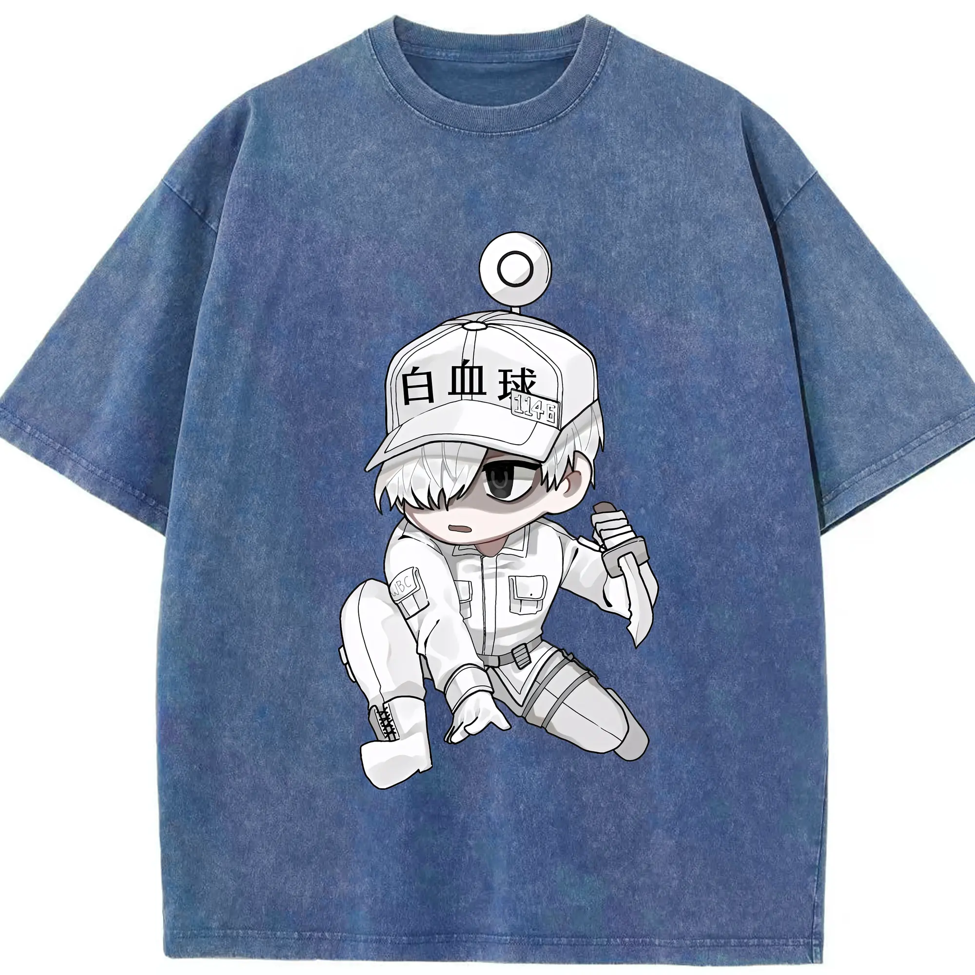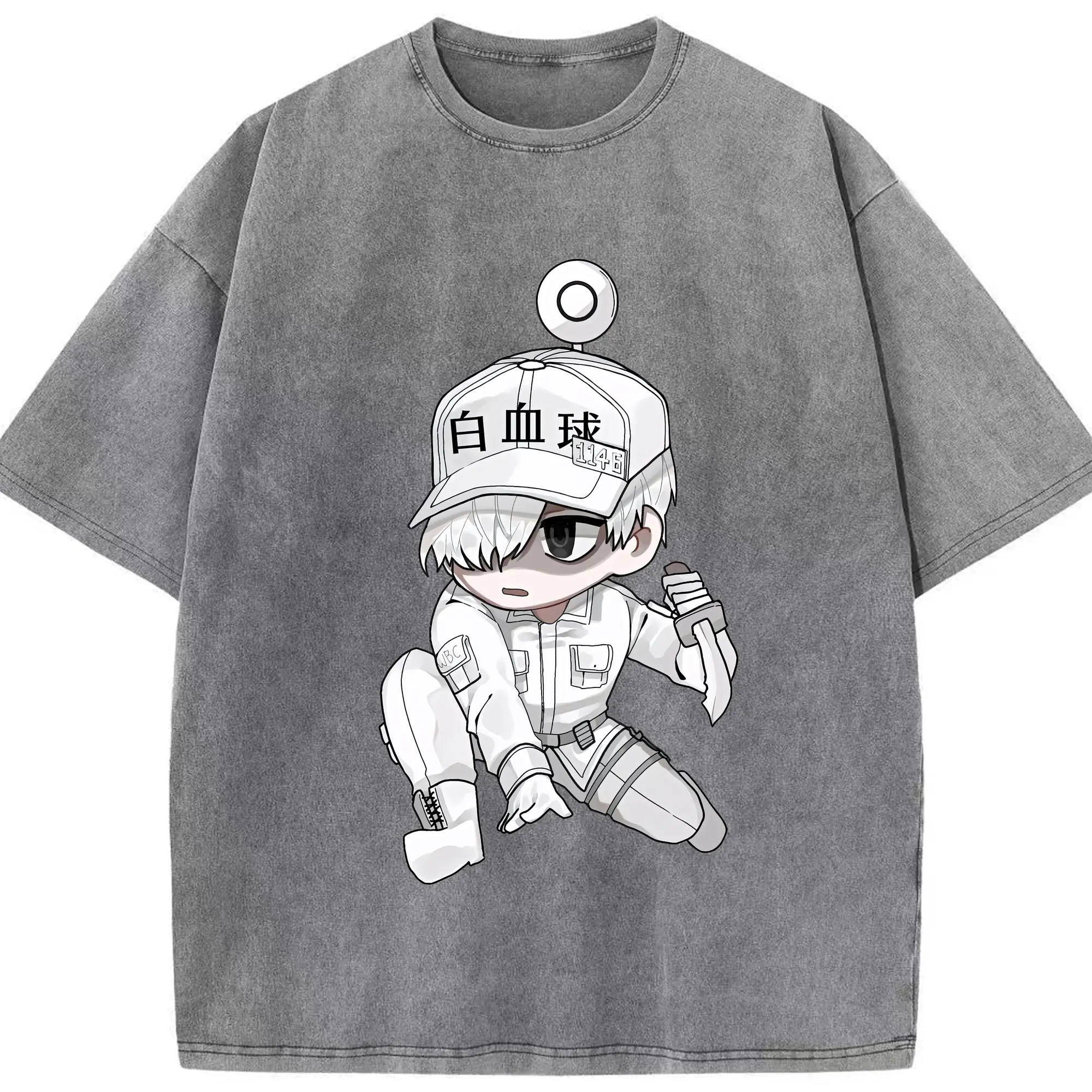 はたらく細胞 グッズ,白血球 - 綿100% ヴィンテージ風 半袖Tシャツ ・ 背面プリント ・ 柔らか肌触り ・ 通気性 快適 ・ スポーツ カジュアル 外出用