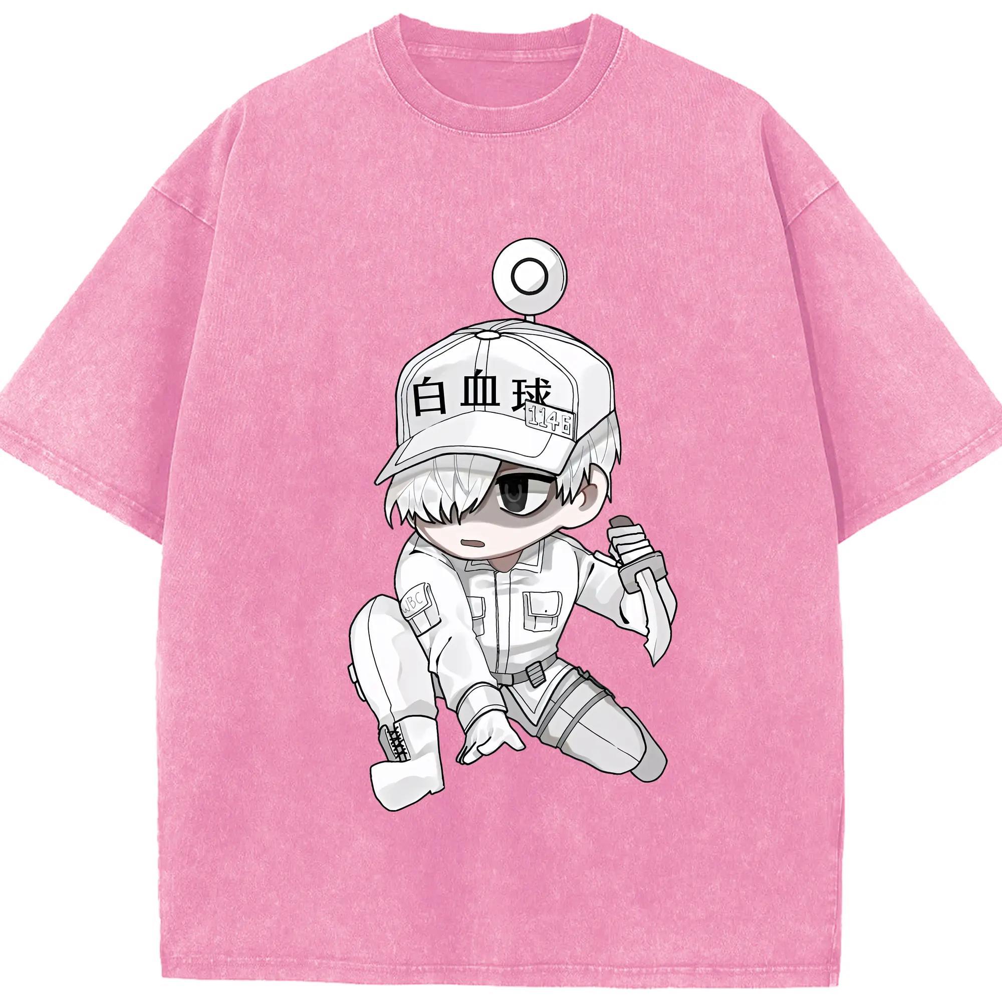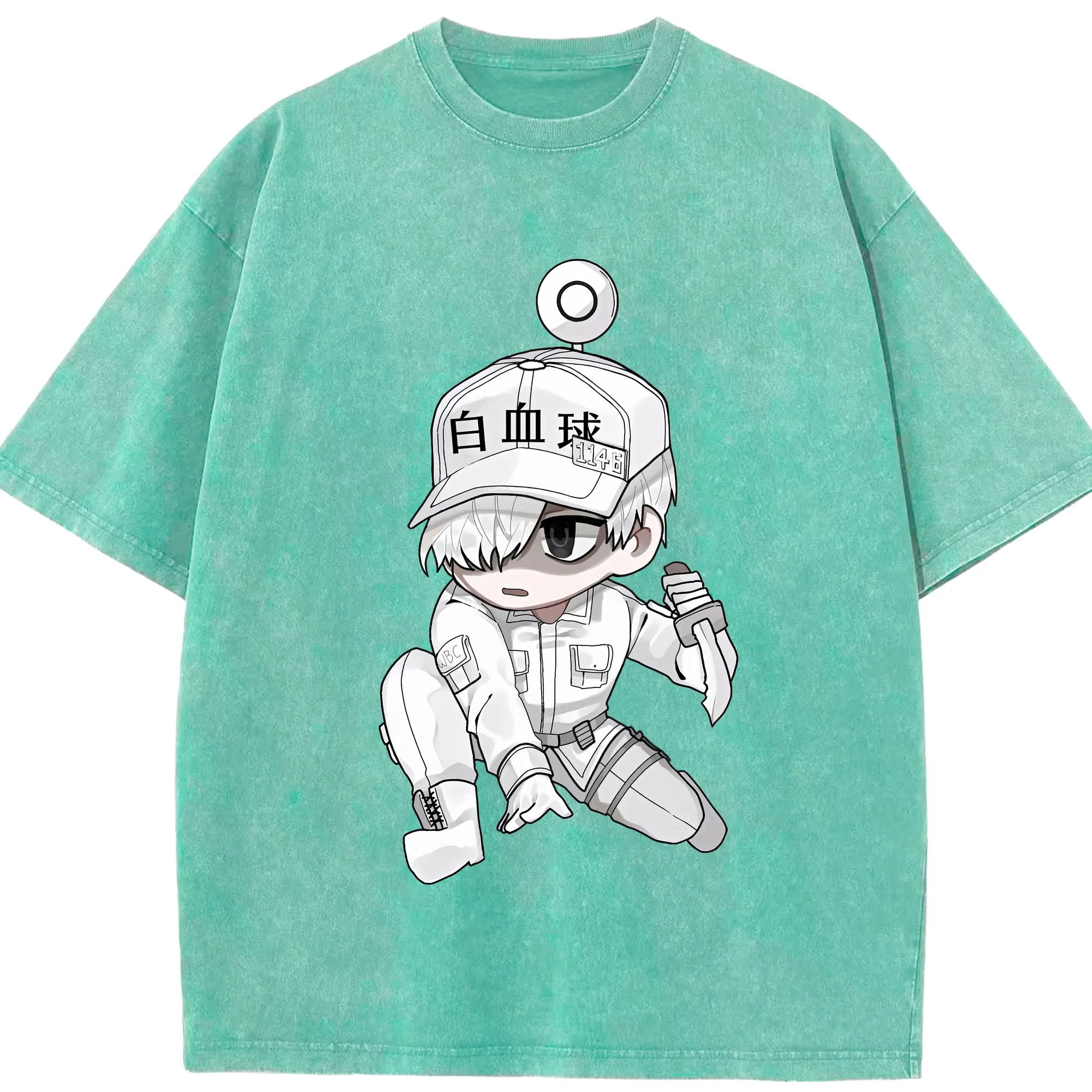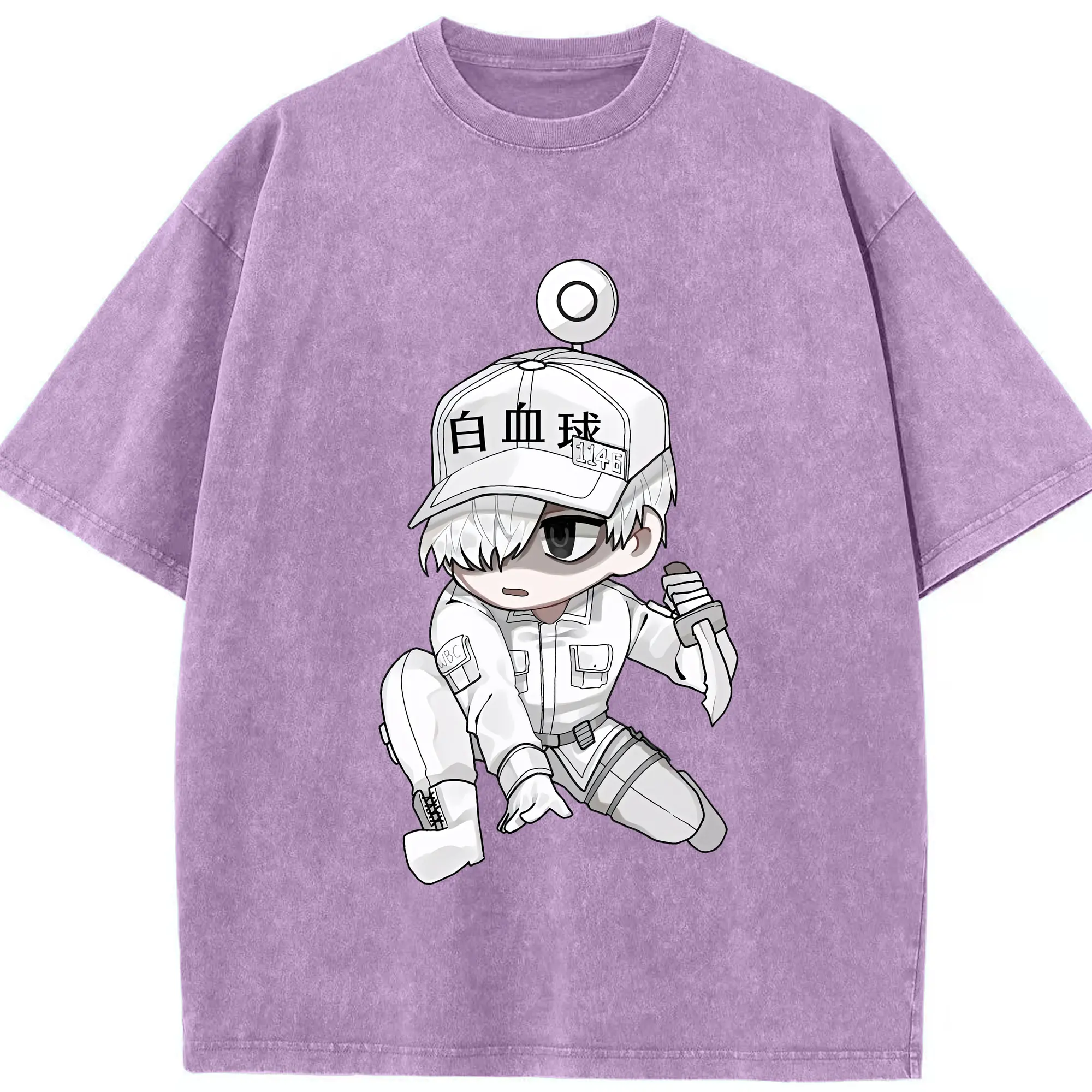 はたらく細胞 グッズ,白血球 - 綿100% ヴィンテージ風 半袖Tシャツ ・ 背面プリント ・ 柔らか肌触り ・ 通気性 快適 ・ スポーツ カジュアル 外出用
