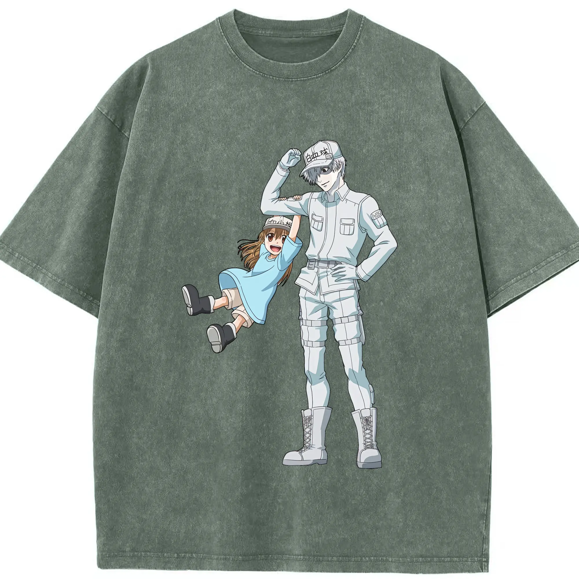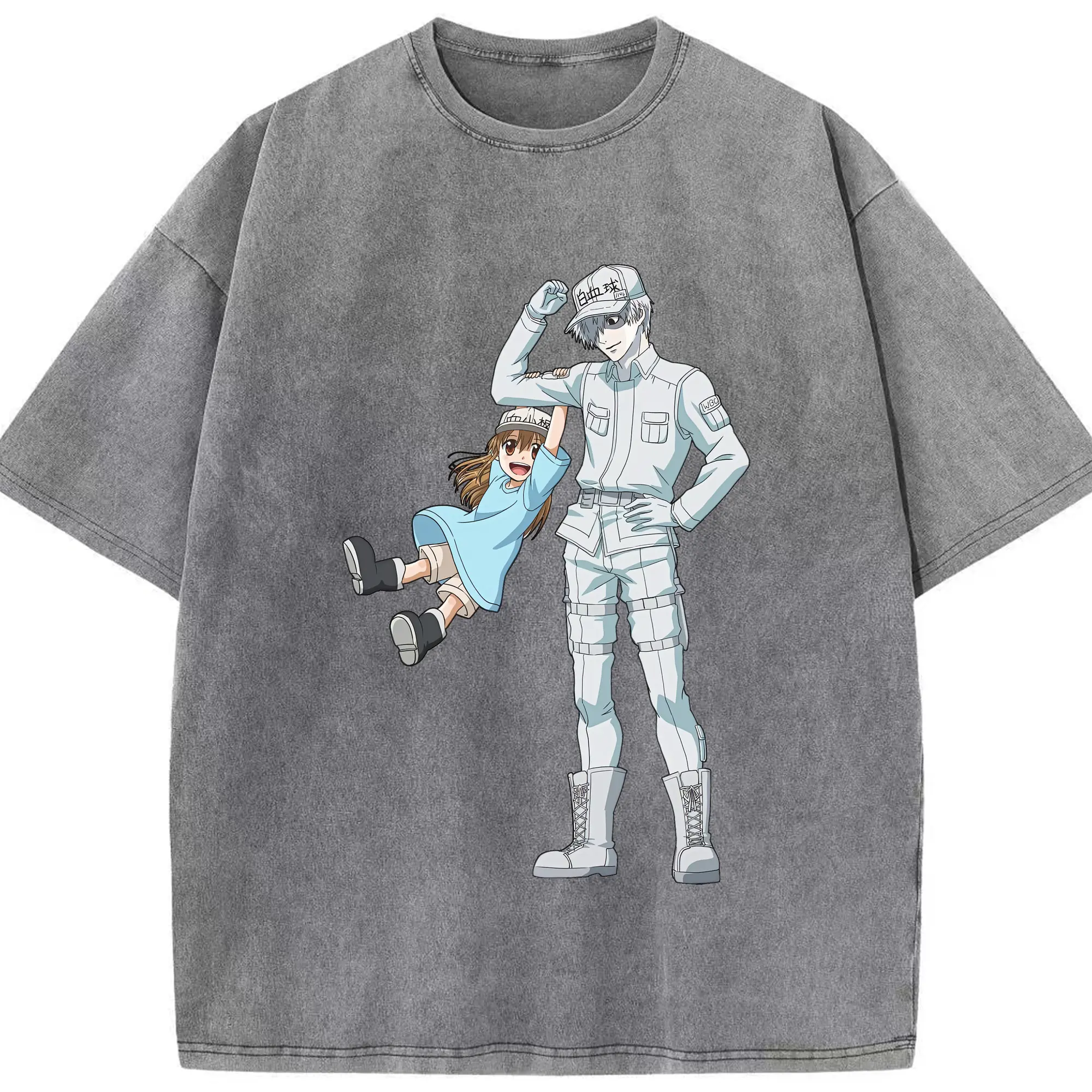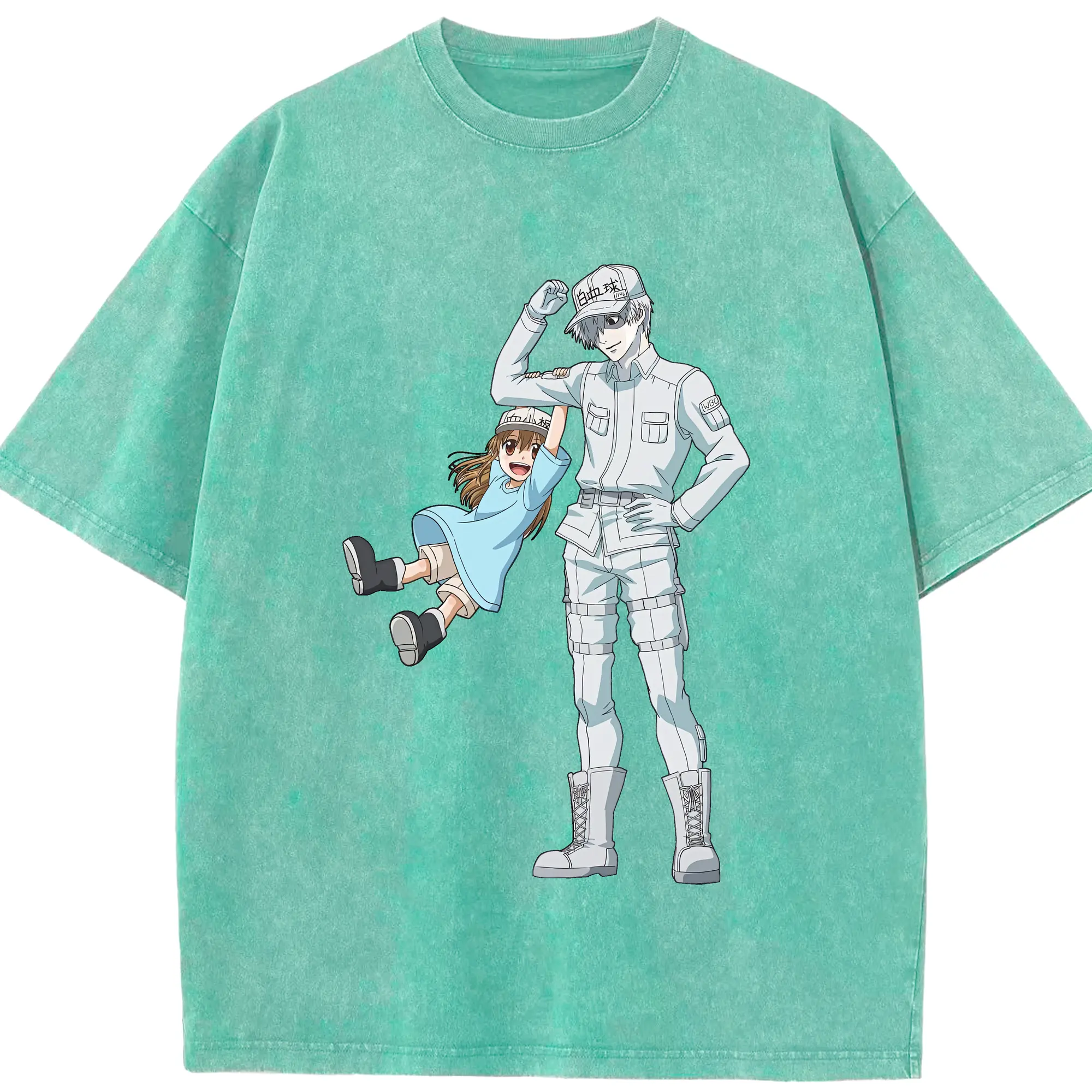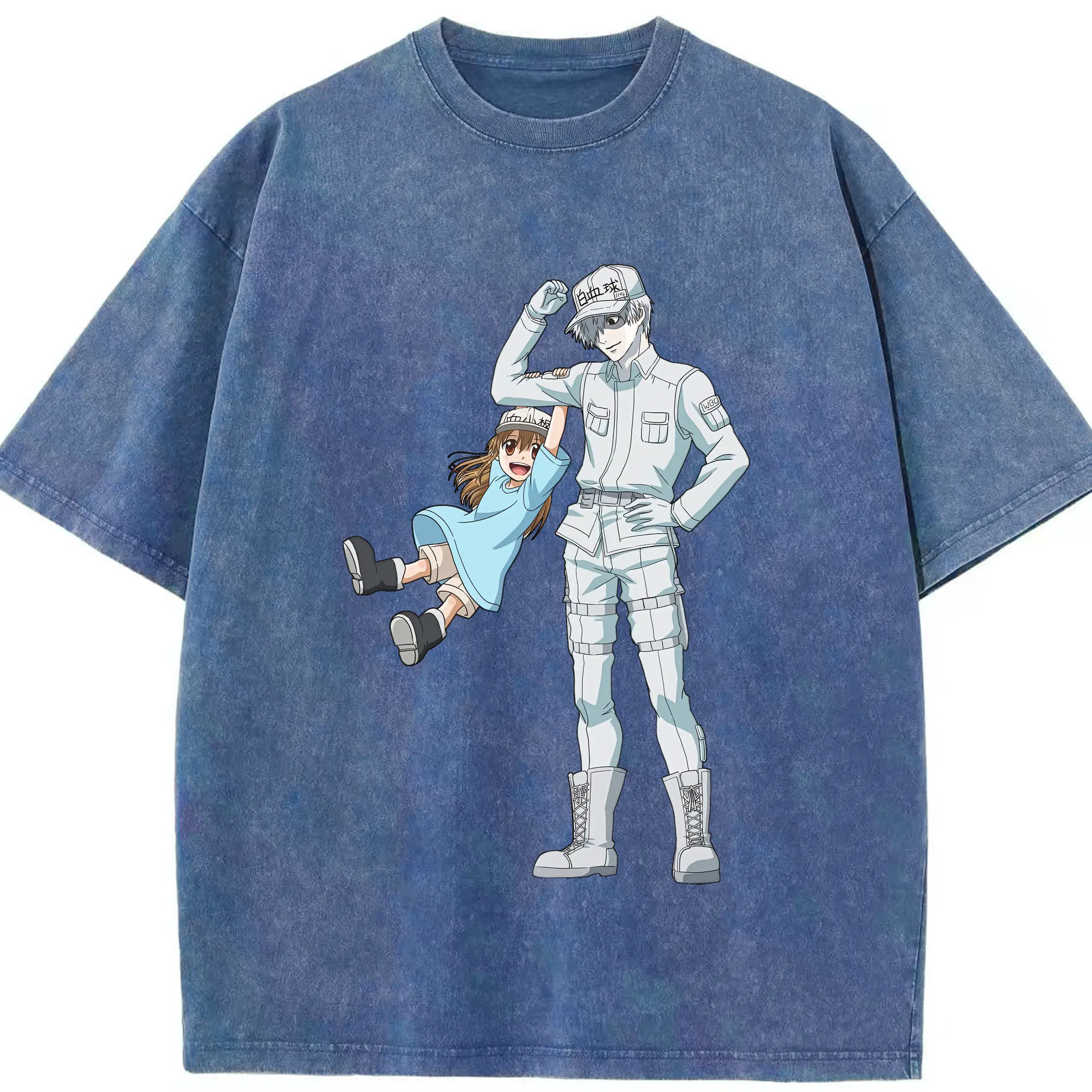 はたらく細胞 グッズ,白血球 - 綿100% ヴィンテージ風 半袖Tシャツ ・ 背面プリント ・ 柔らか肌触り ・ 通気性 快適 ・ スポーツ カジュアル 外出用