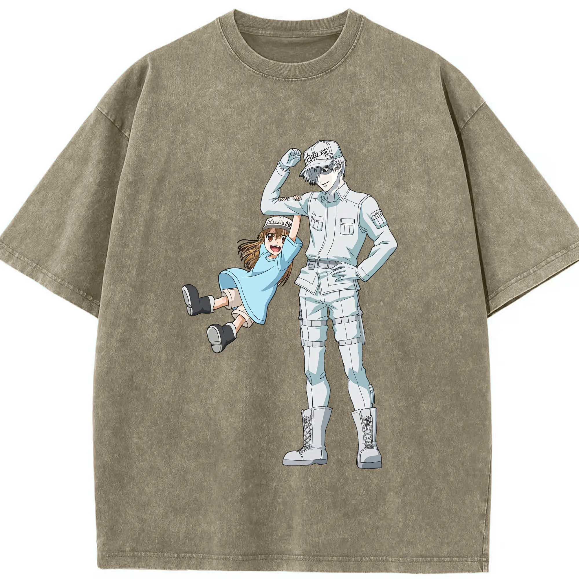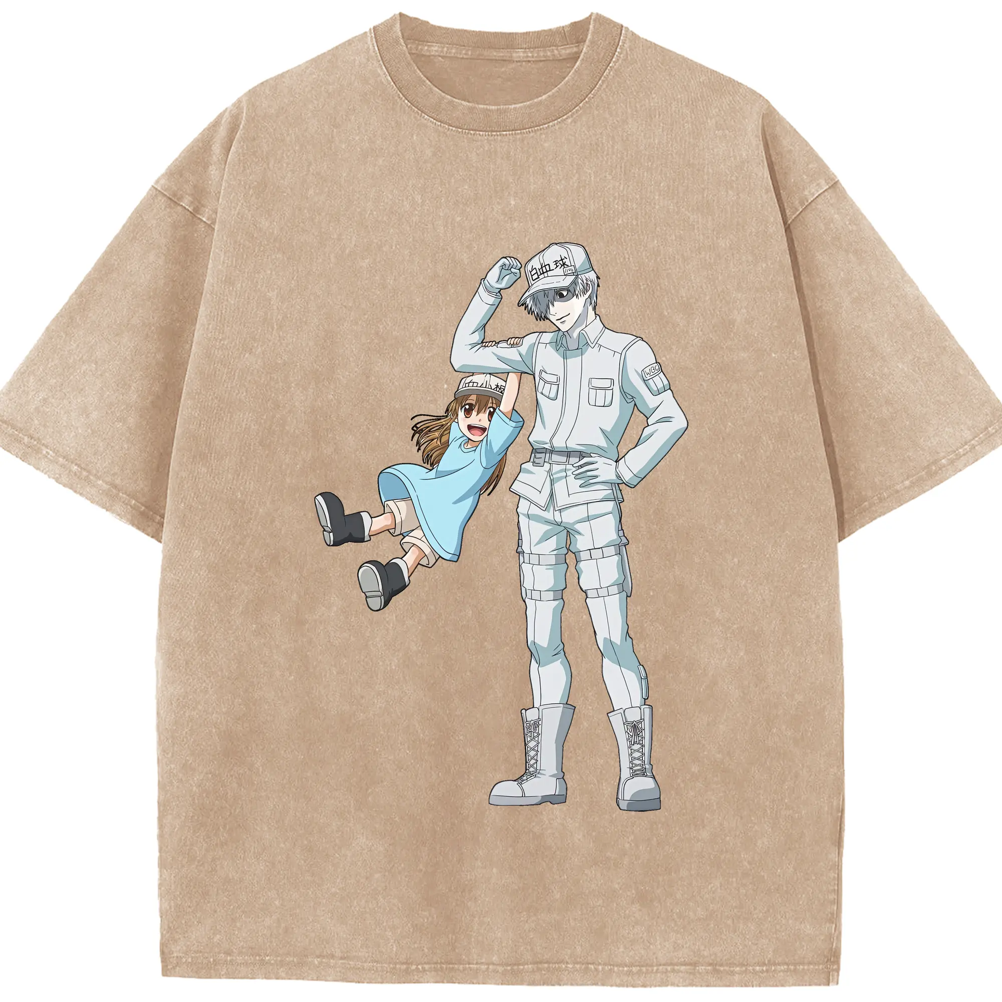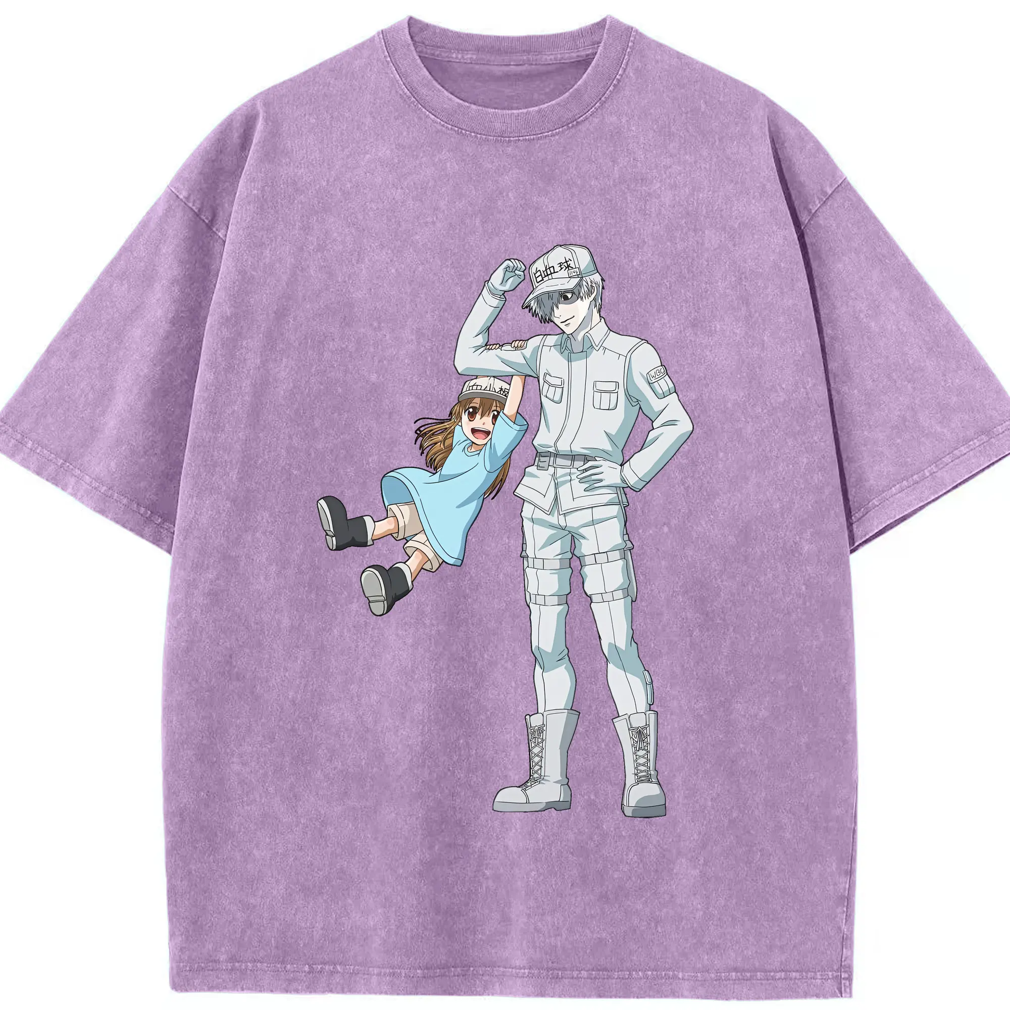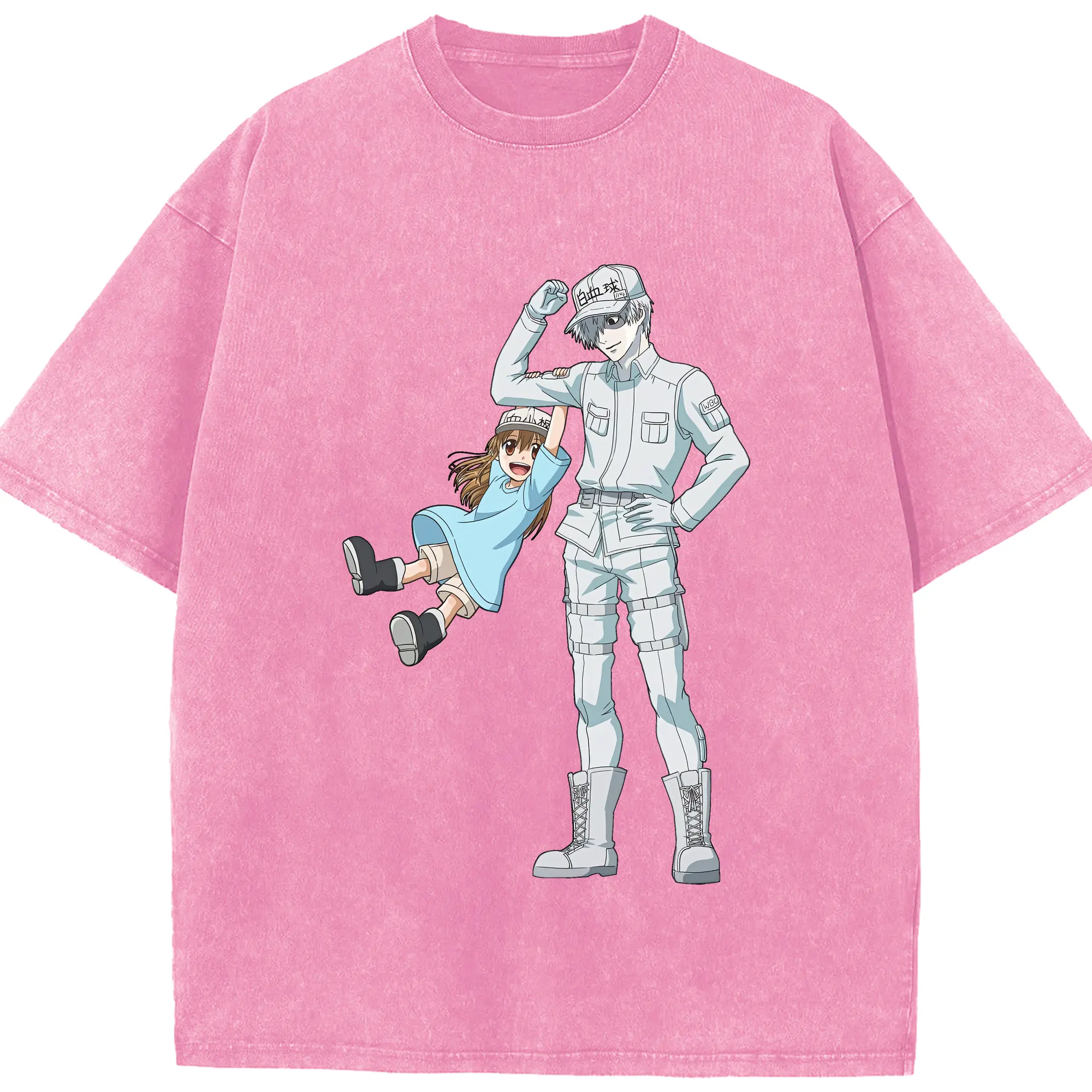はたらく細胞 グッズ,白血球 - 綿100% ヴィンテージ風 半袖Tシャツ ・ 背面プリント ・ 柔らか肌触り ・ 通気性 快適 ・ スポーツ カジュアル 外出用