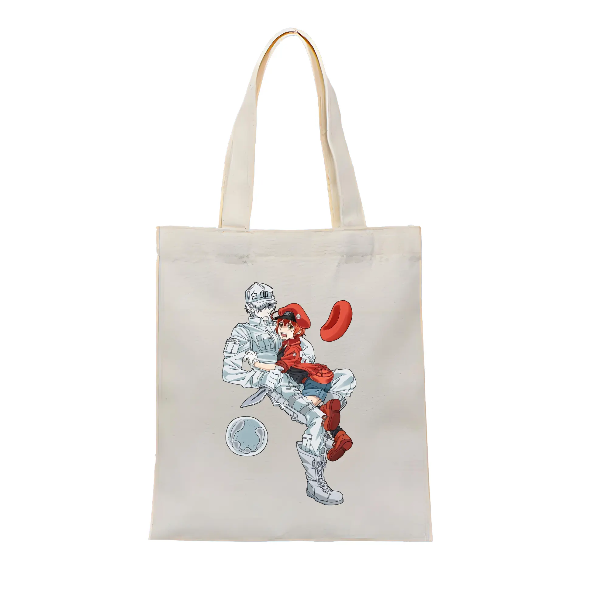 はたらく細胞 グッズ,白血球 - 縦型キャンバス手提げバッグ(トートバッグ) ・ キャンバス素材 ・ ショッピング用 ・ 軽量 丈夫 お手入れ簡単