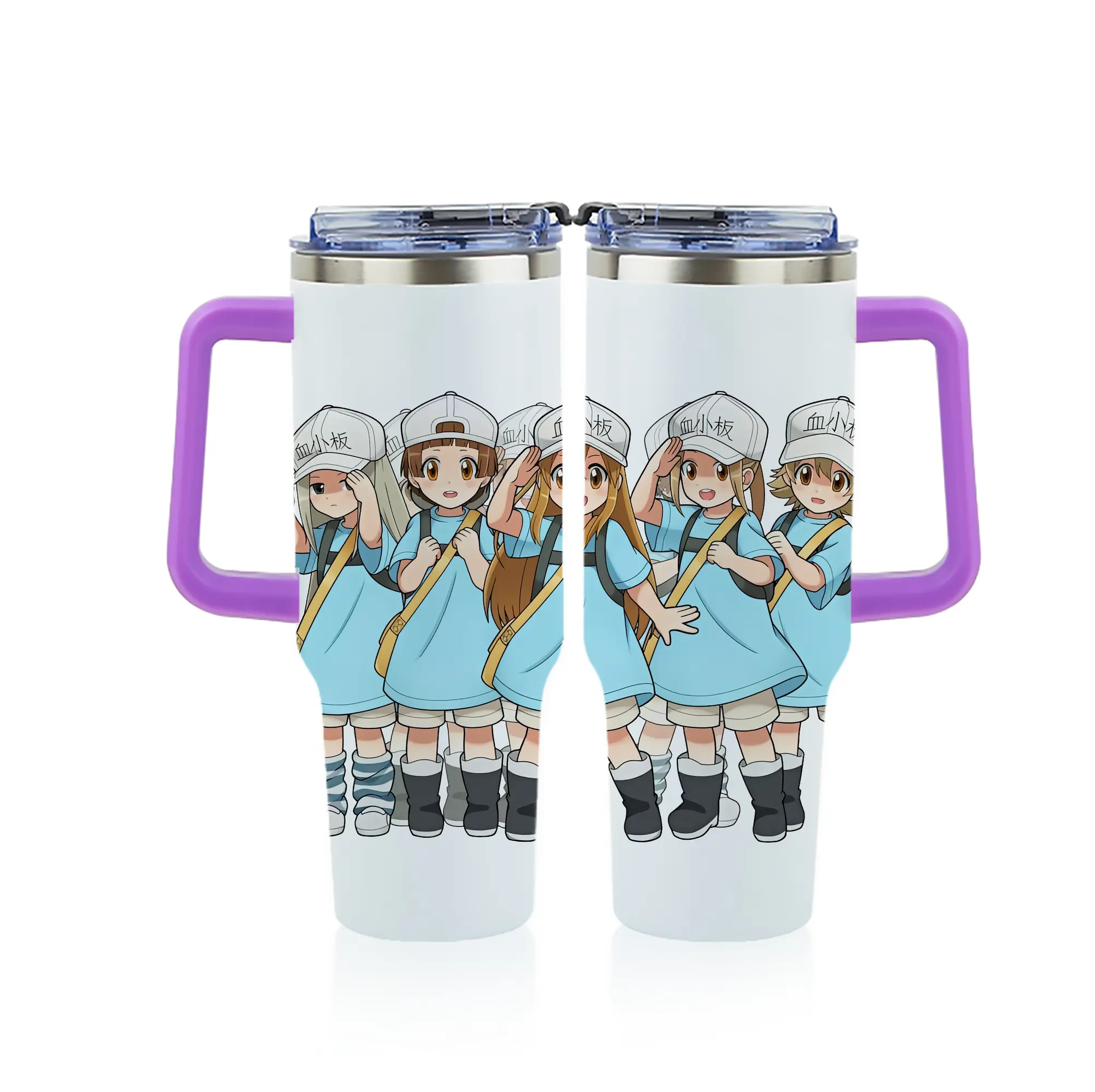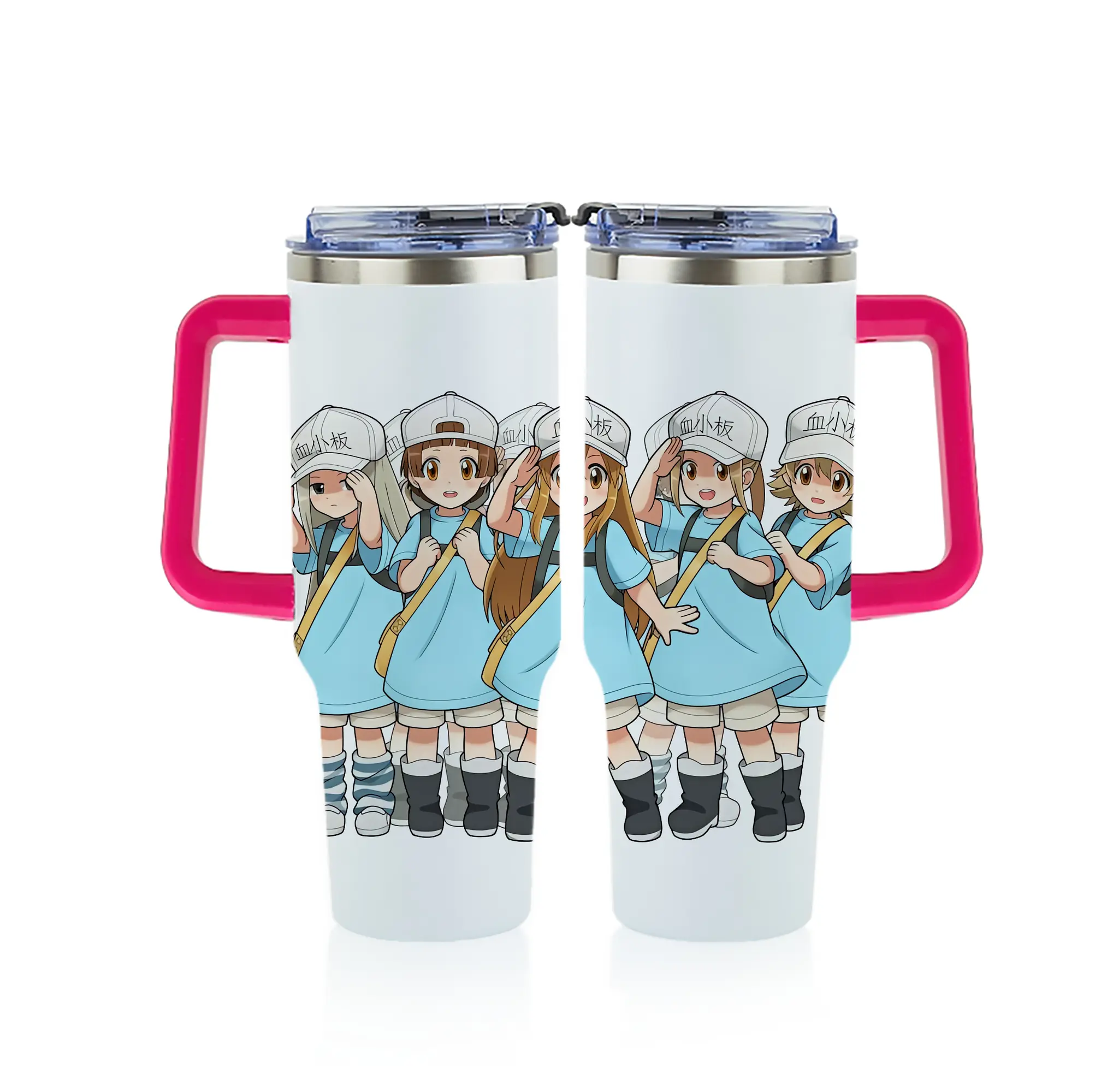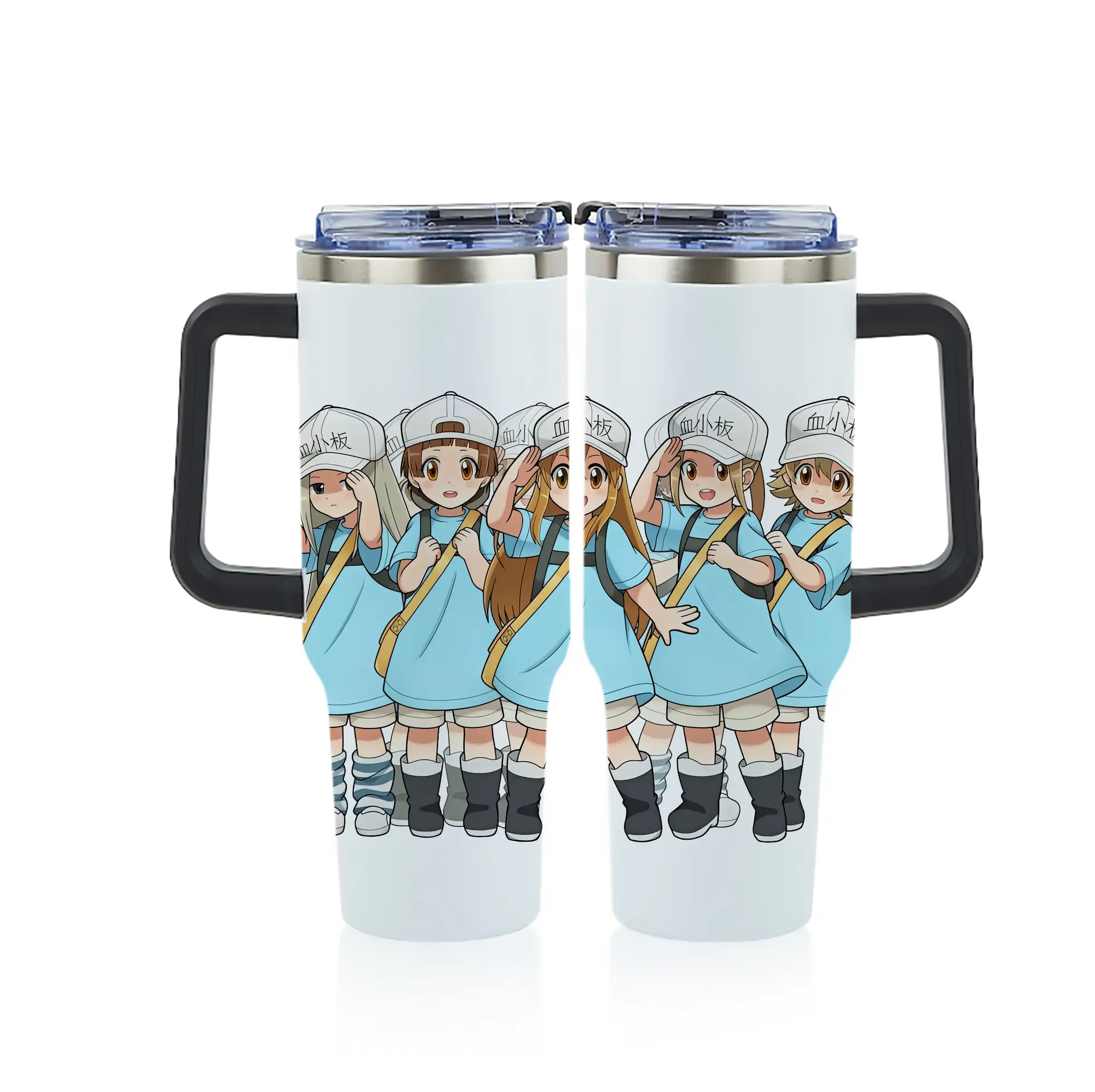 はたらく細胞 グッズ,血小板 - 1200mL フルプリント車用タンブラー ・ 304ステンレス 内側 ・ 201ステンレス 外側 ・ 保温 保冷 ・ 通勤 ドライブ アウトドア用